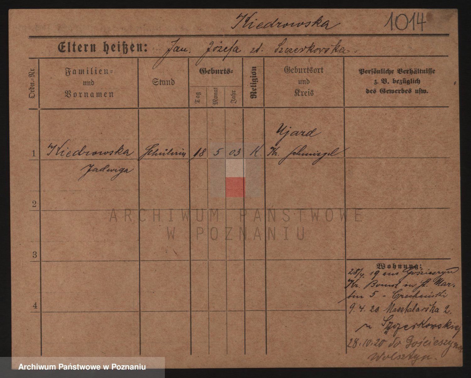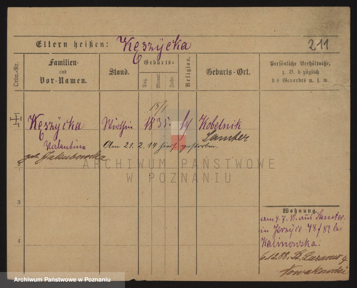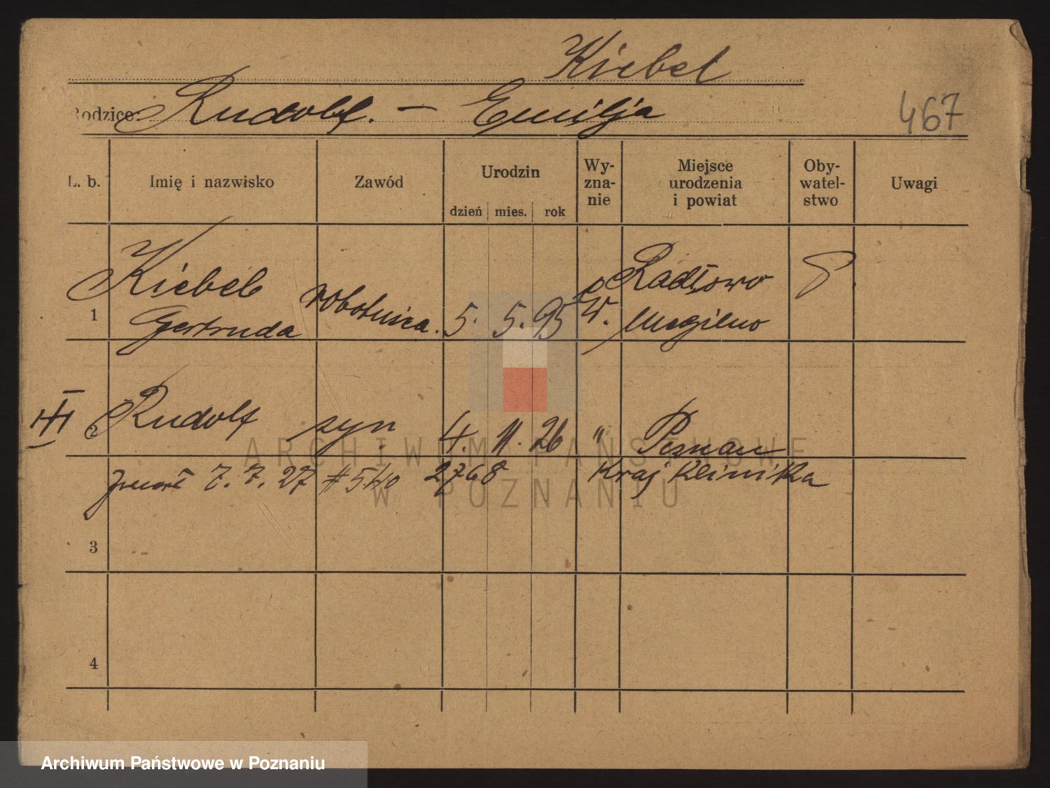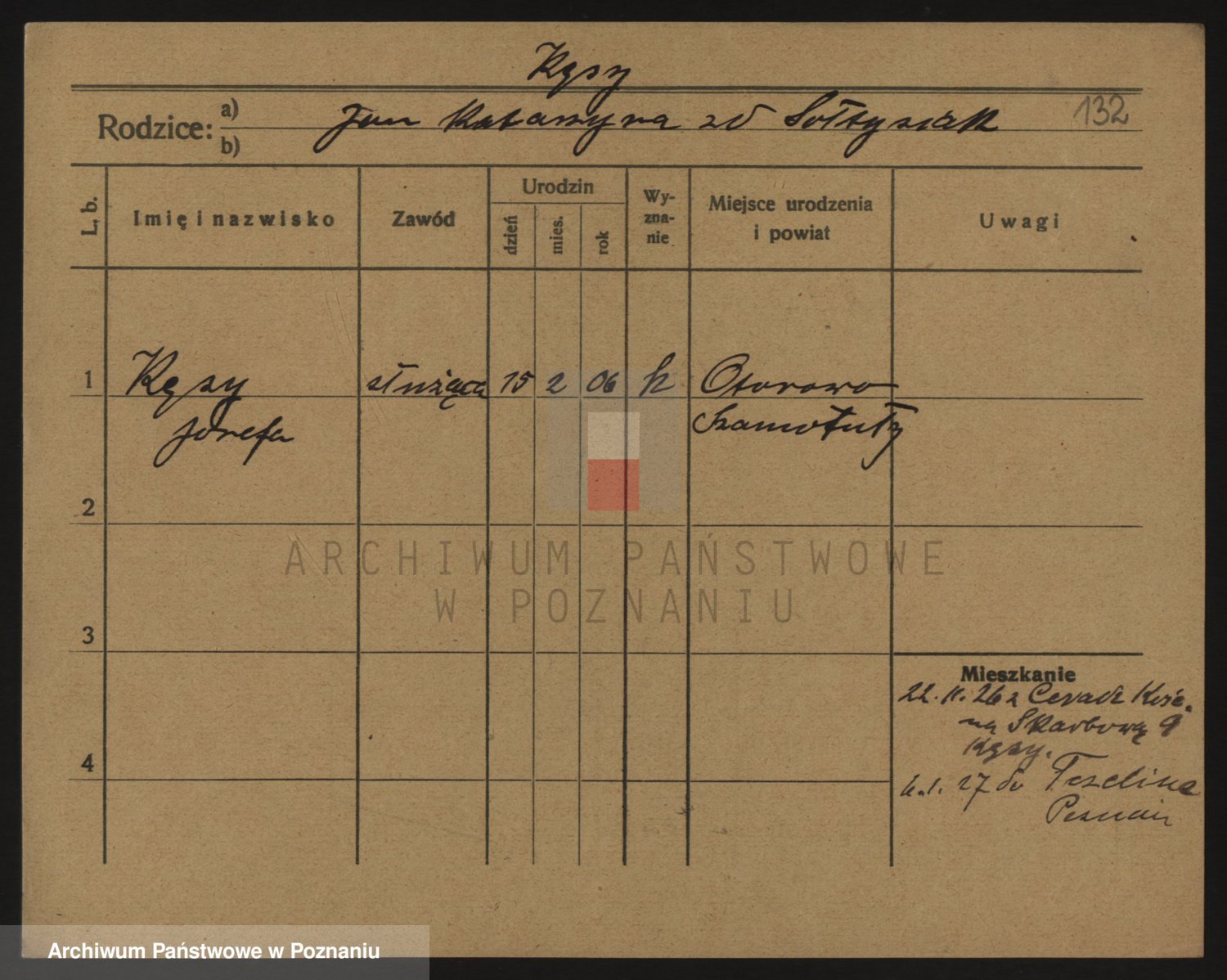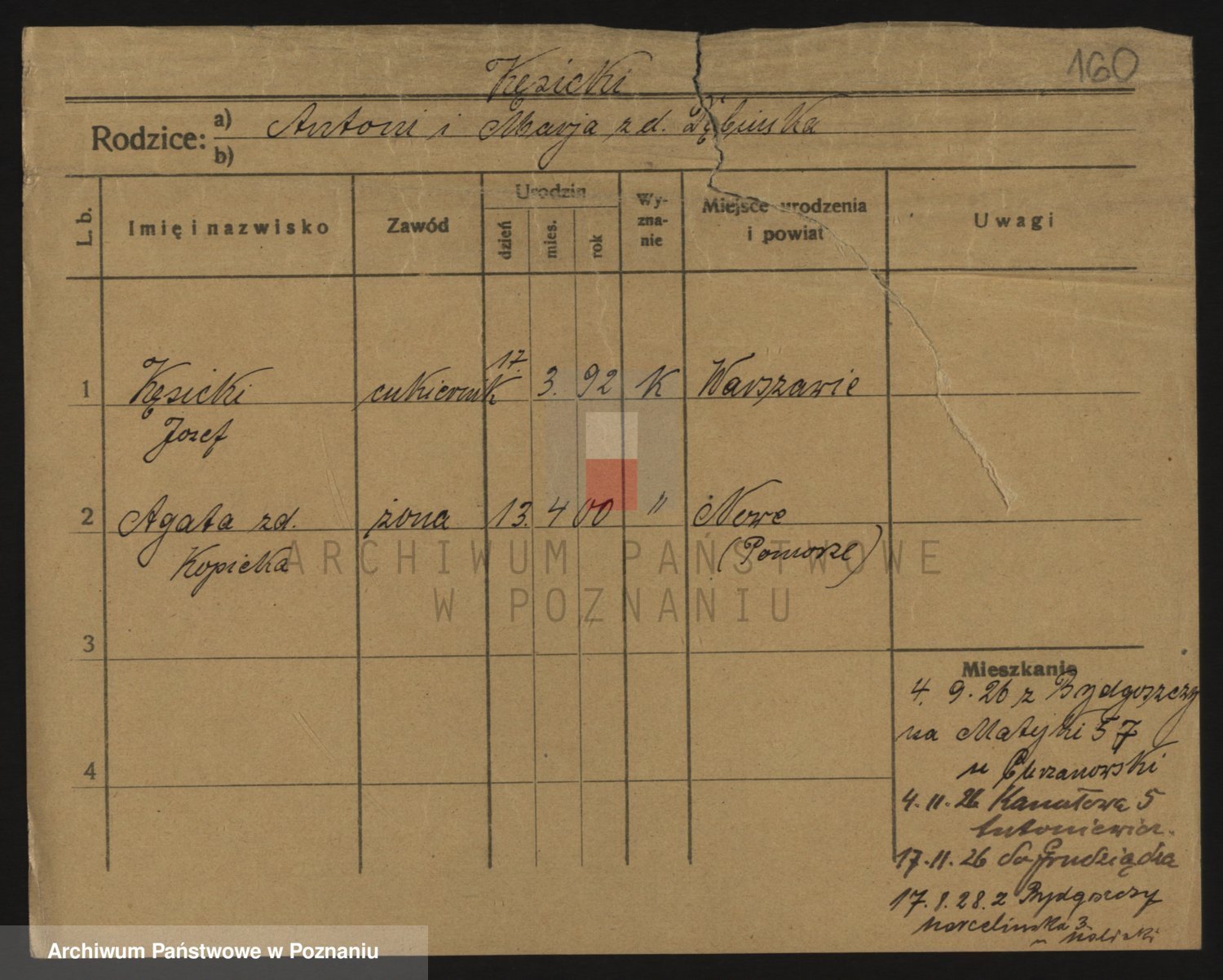 Podgląd karty osobowej dostępny jest po kliknięciu na nazwisko lub ikonkę karty. Można dokonywać powiększenia (ikony na górze) lub przechodzić między kolejnymi skanami (strzałki po bokach).