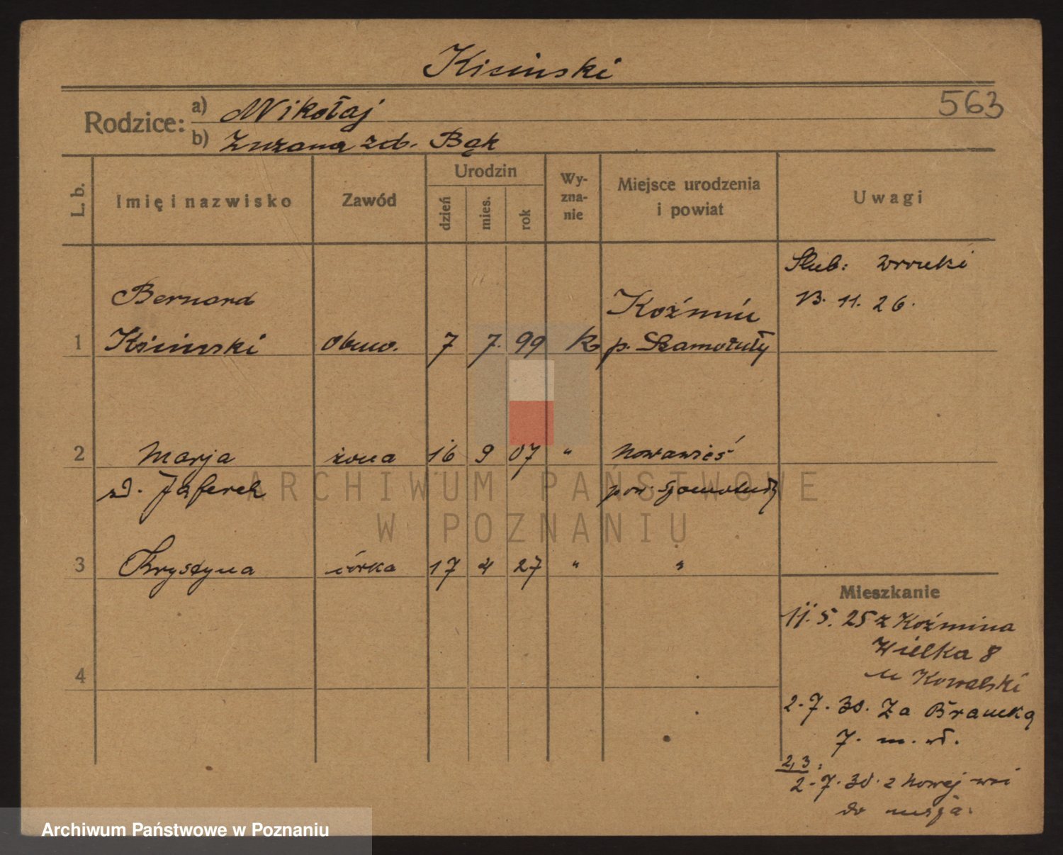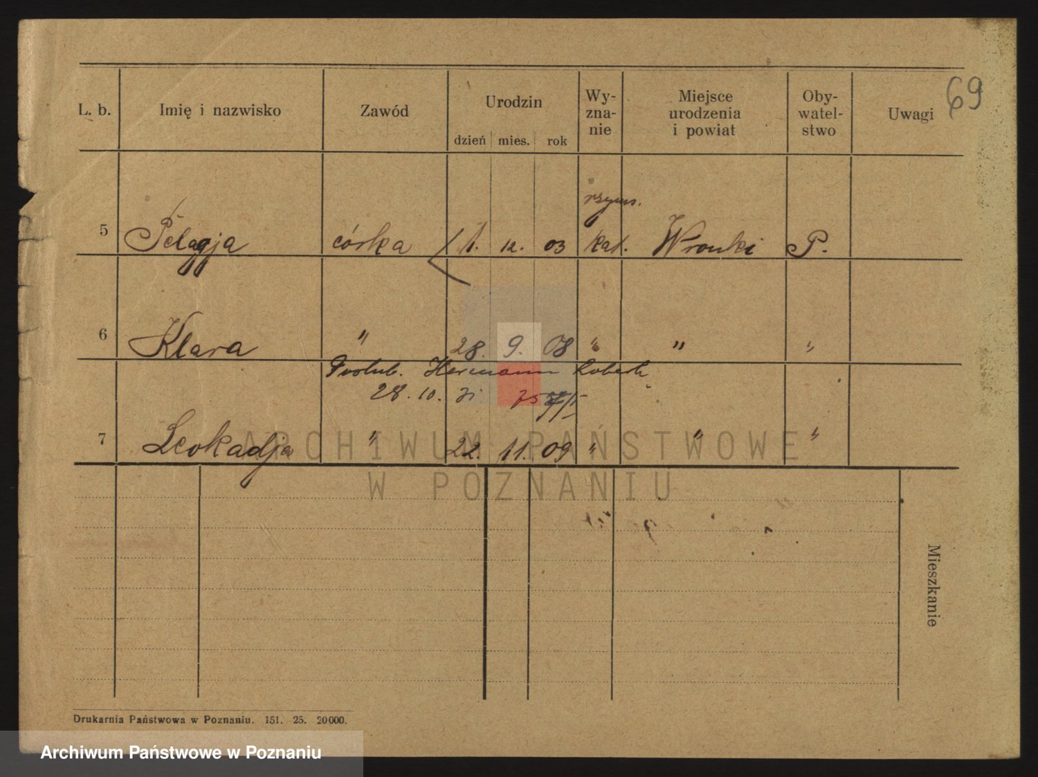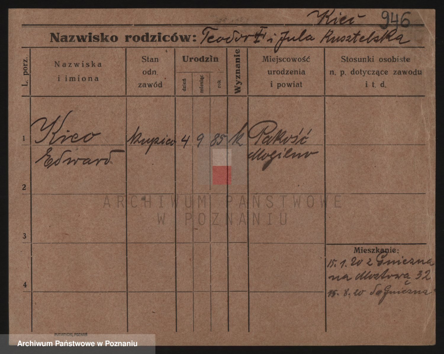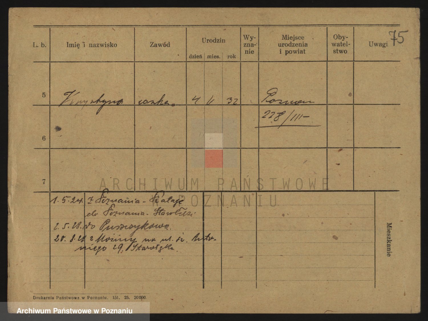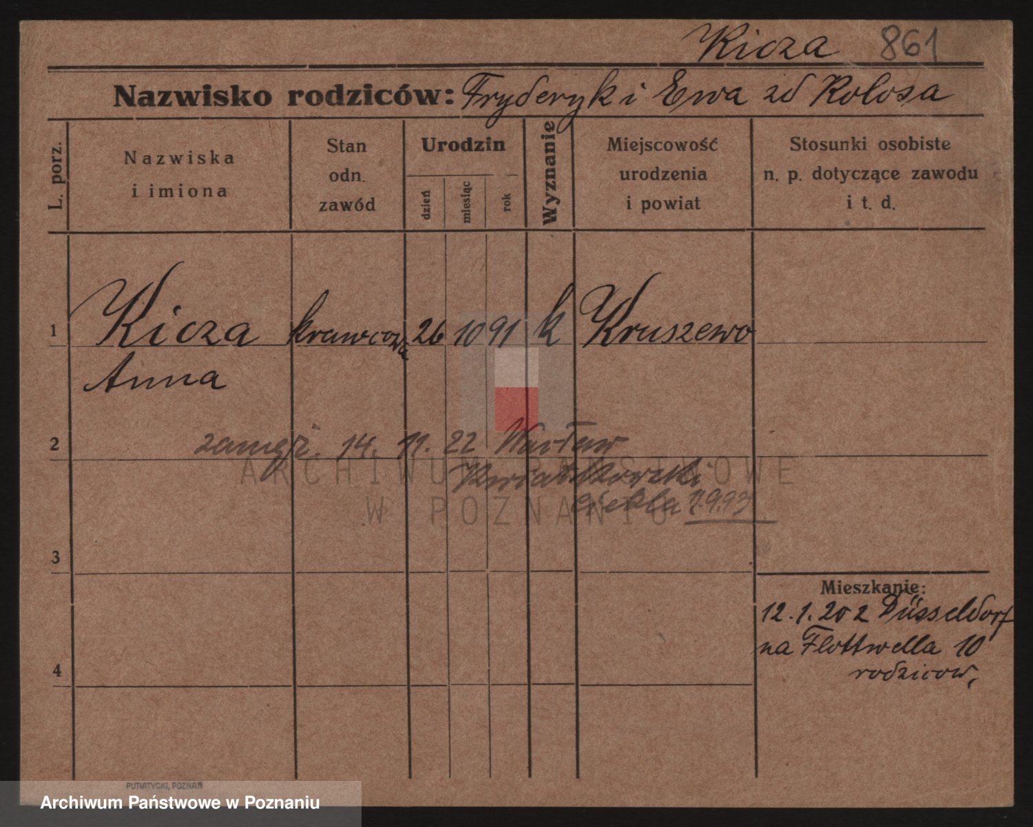 Podgląd karty osobowej dostępny jest po kliknięciu na nazwisko lub ikonkę karty. Można dokonywać powiększenia (ikony na górze) lub przechodzić między kolejnymi skanami (strzałki po bokach).
