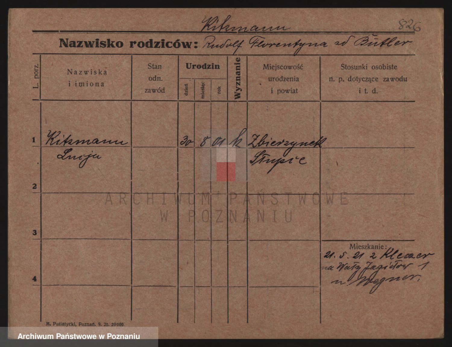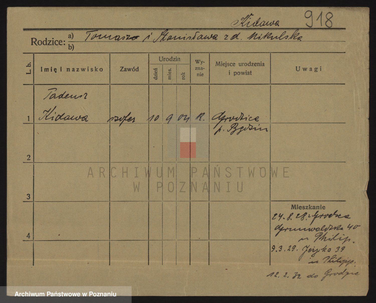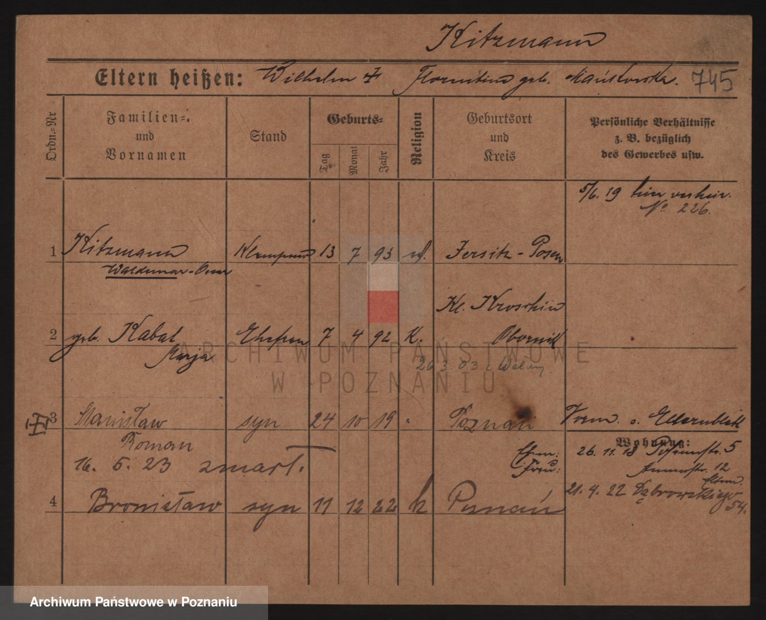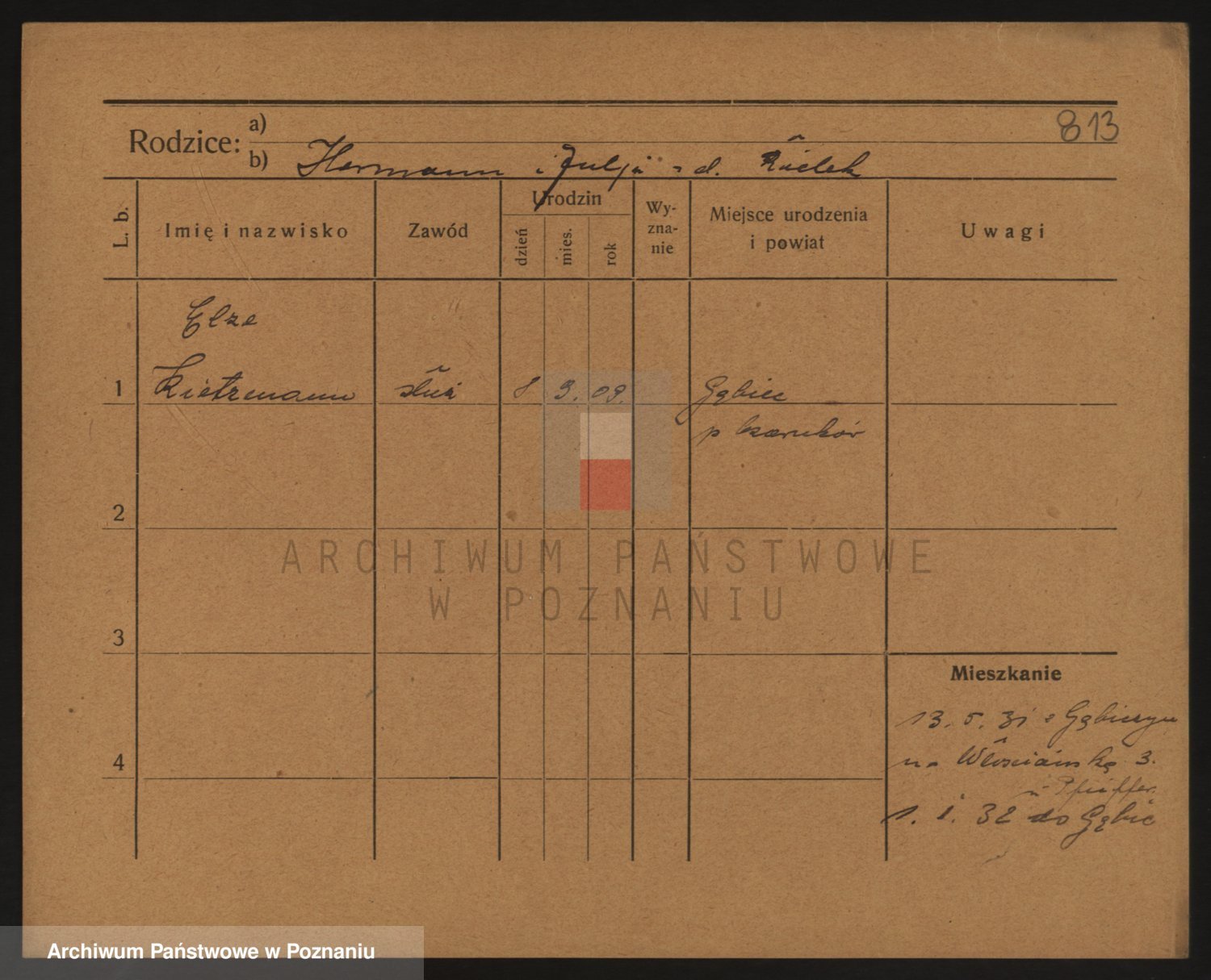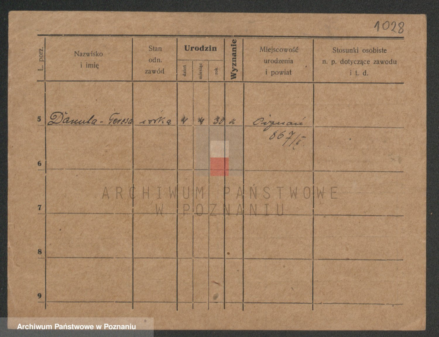 Podgląd karty osobowej dostępny jest po kliknięciu na nazwisko lub ikonkę karty. Można dokonywać powiększenia (ikony na górze) lub przechodzić między kolejnymi skanami (strzałki po bokach).