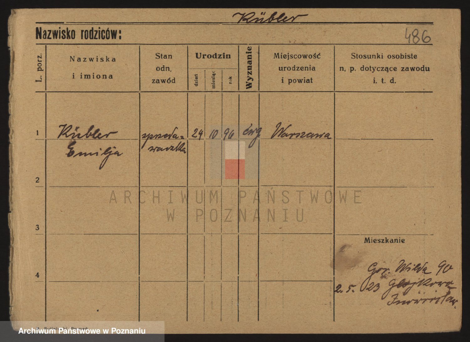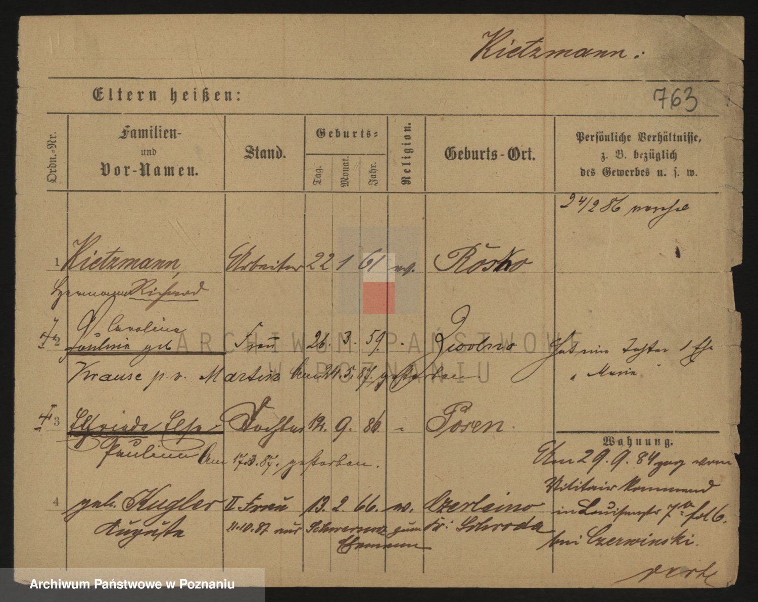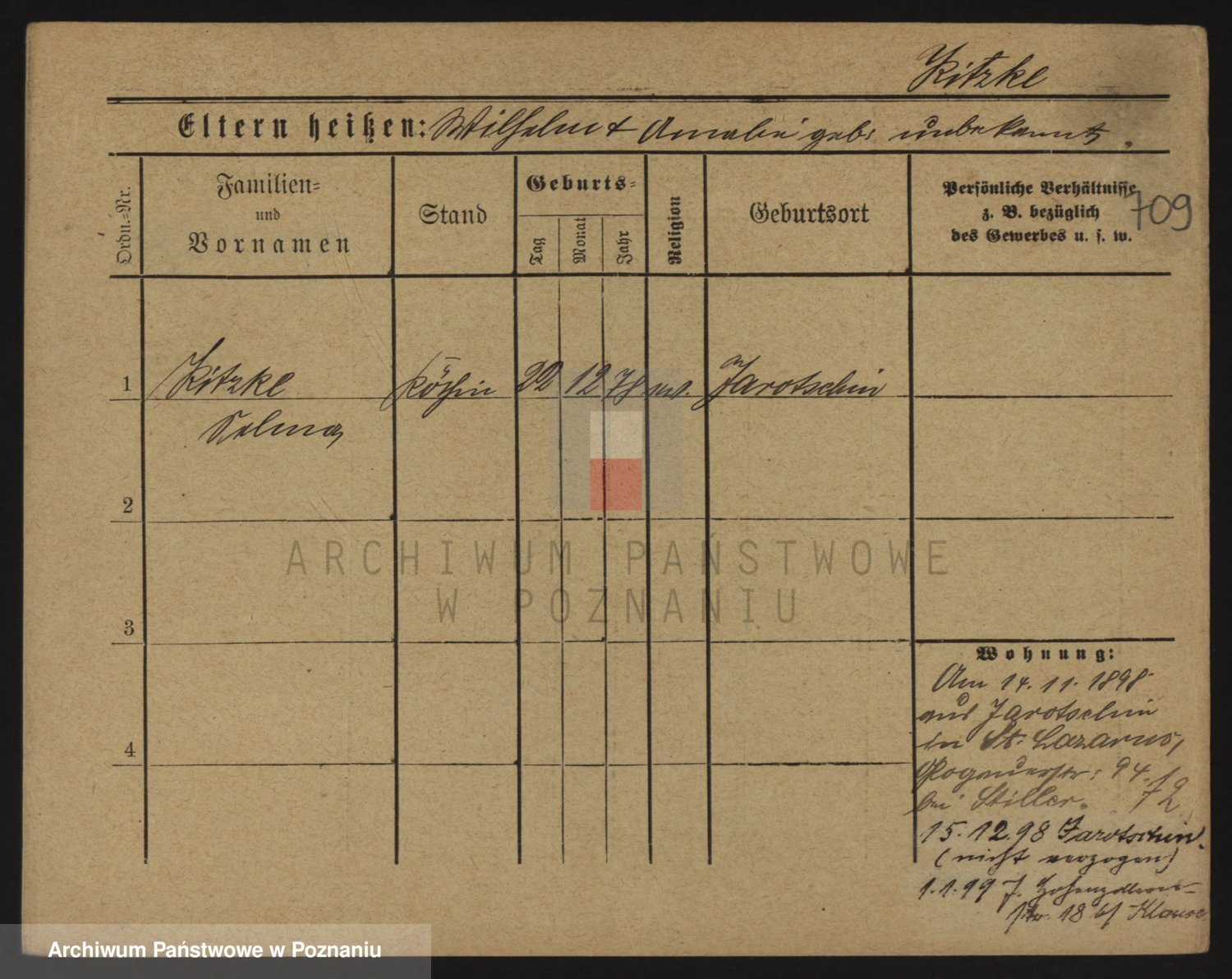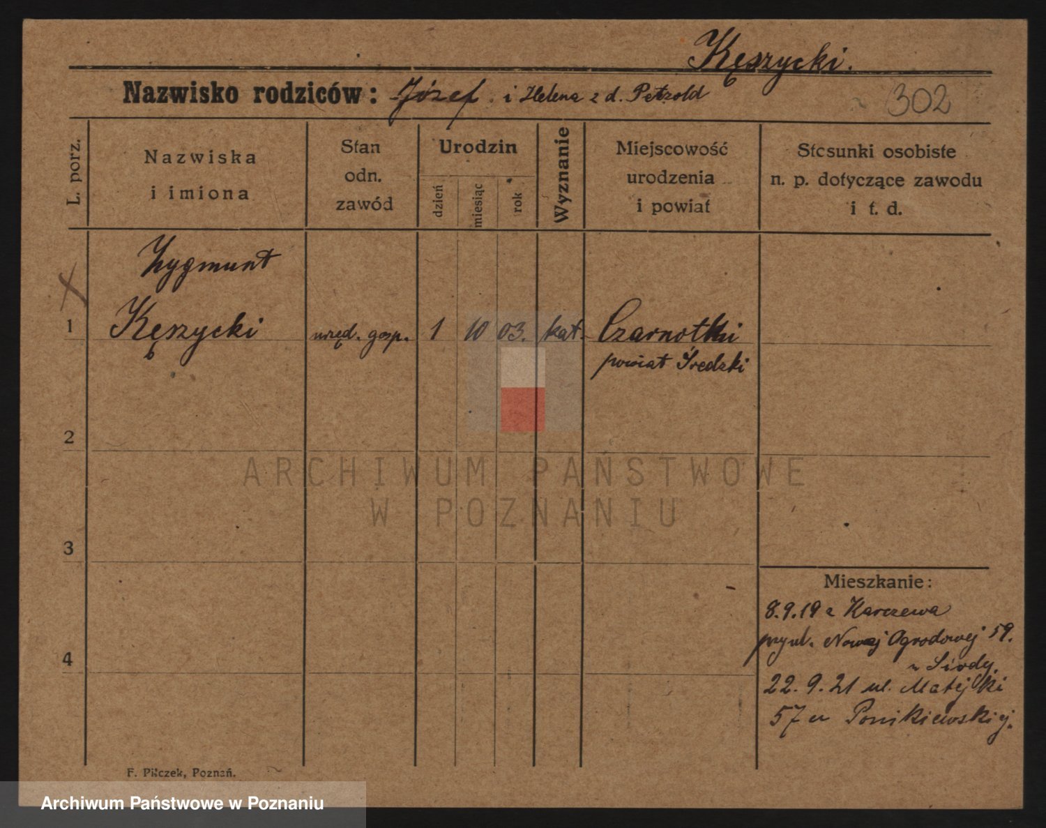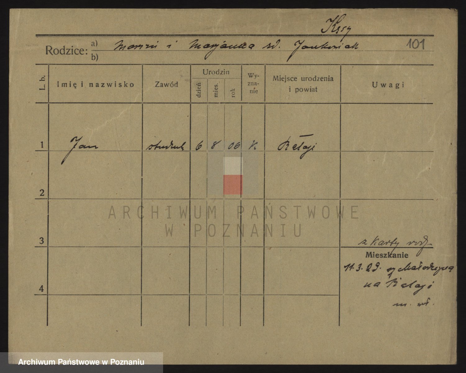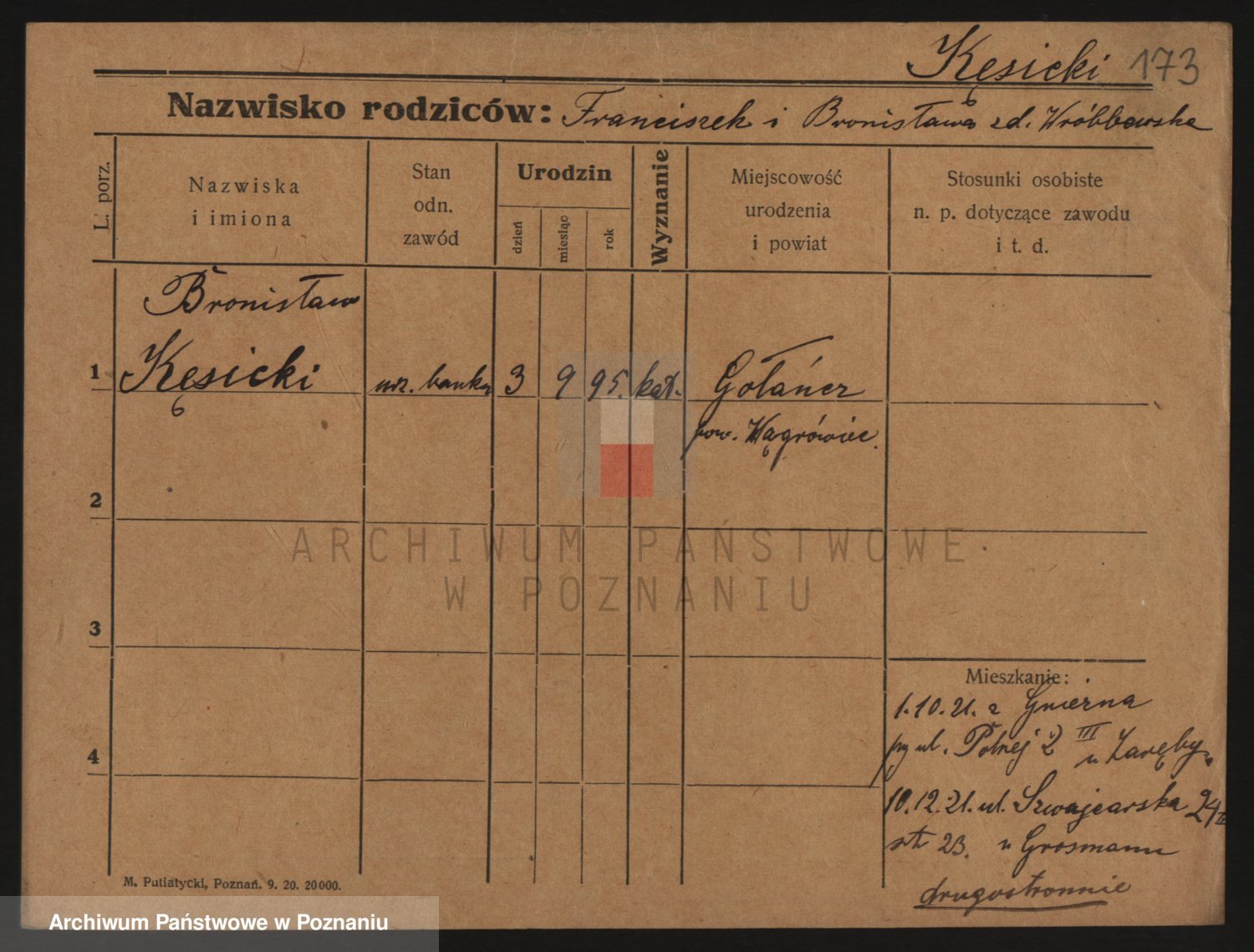 Podgląd karty osobowej dostępny jest po kliknięciu na nazwisko lub ikonkę karty. Można dokonywać powiększenia (ikony na górze) lub przechodzić między kolejnymi skanami (strzałki po bokach).