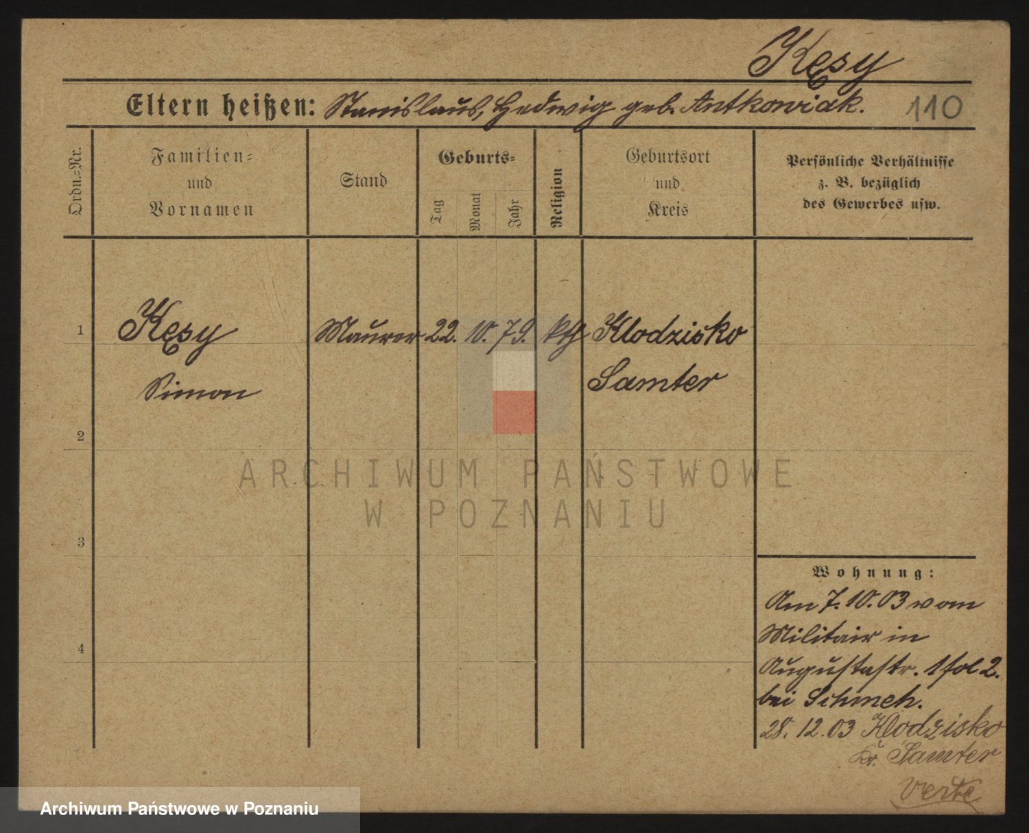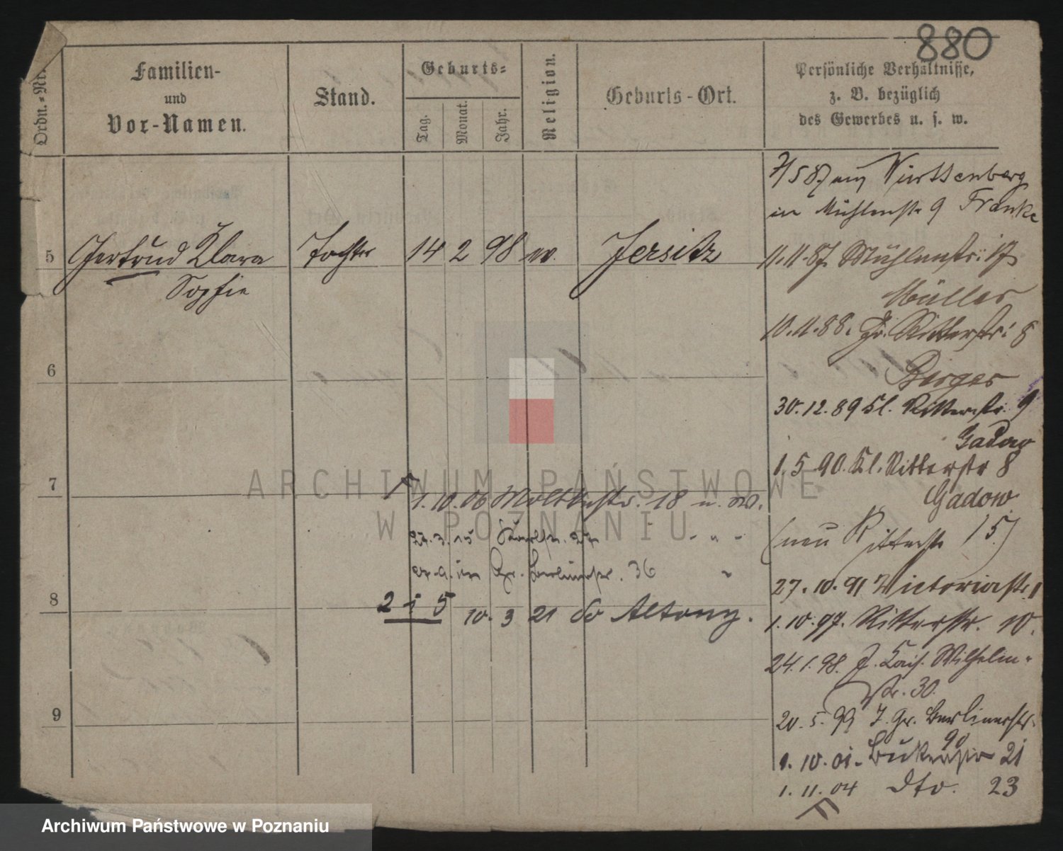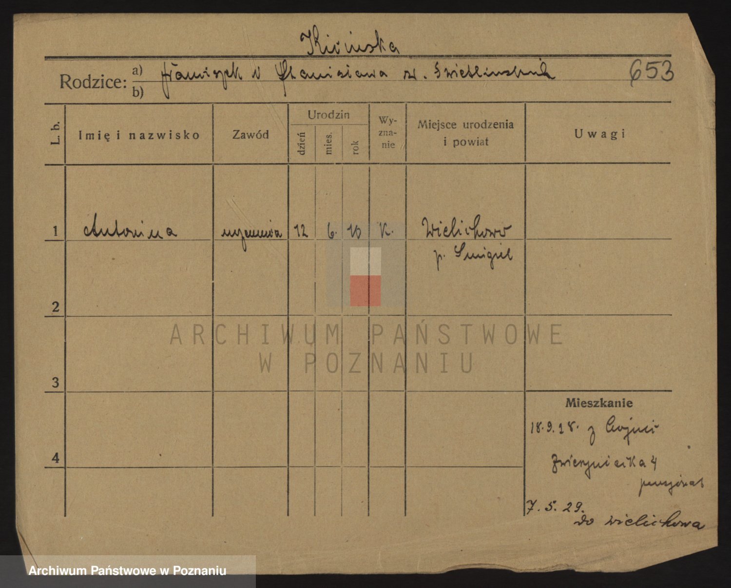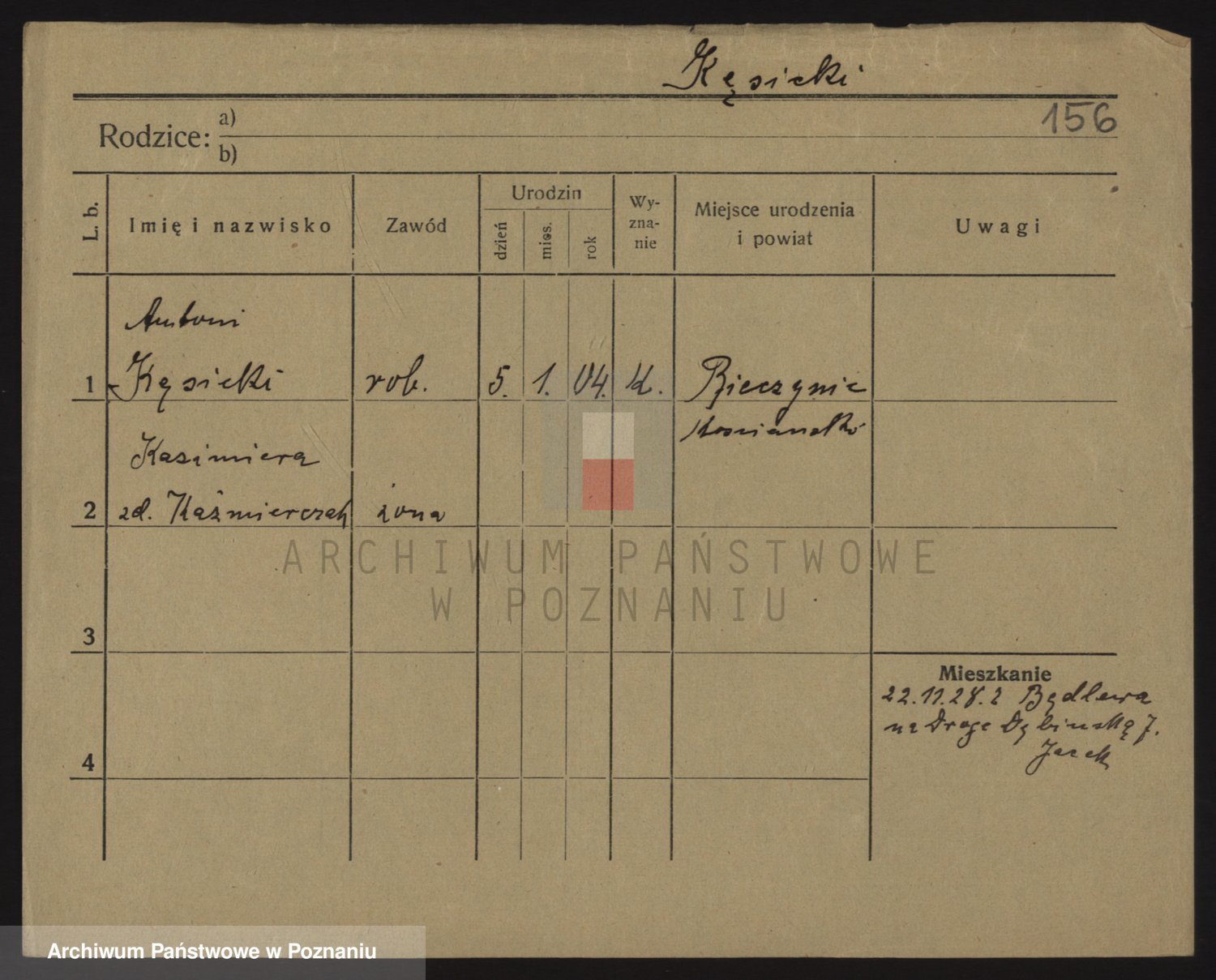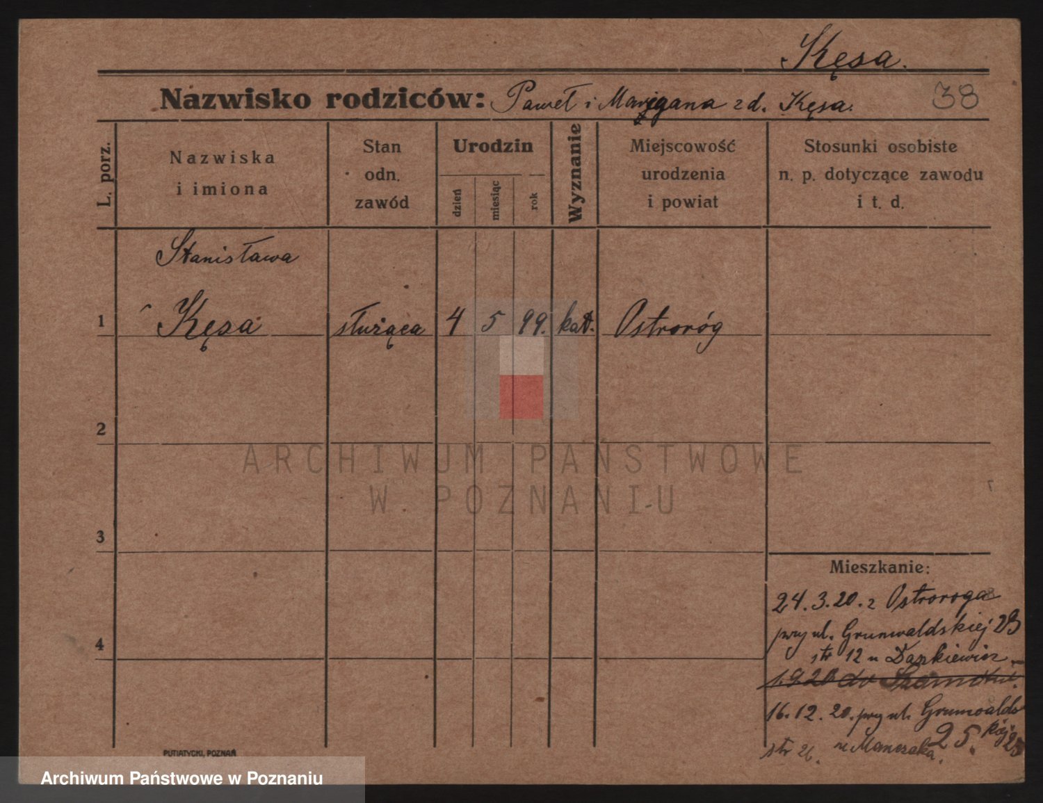 Podgląd karty osobowej dostępny jest po kliknięciu na nazwisko lub ikonkę karty. Można dokonywać powiększenia (ikony na górze) lub przechodzić między kolejnymi skanami (strzałki po bokach).