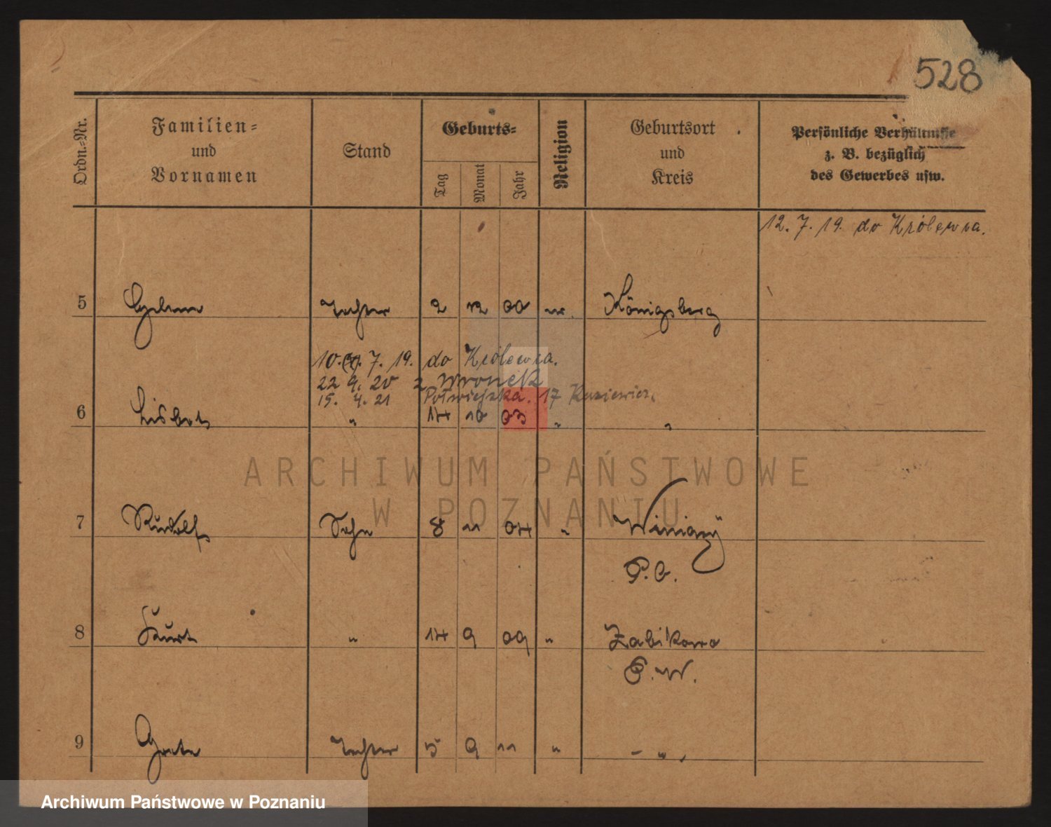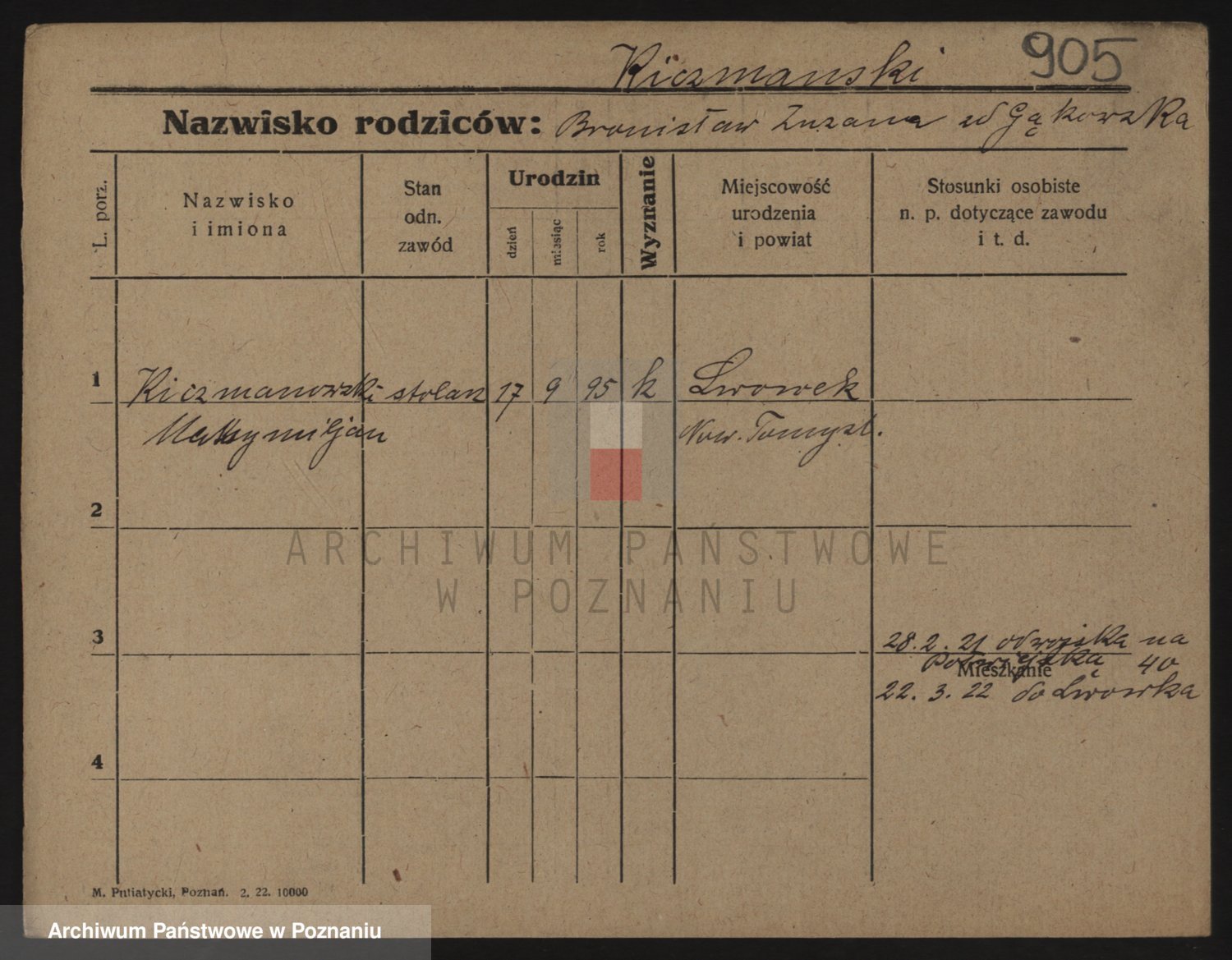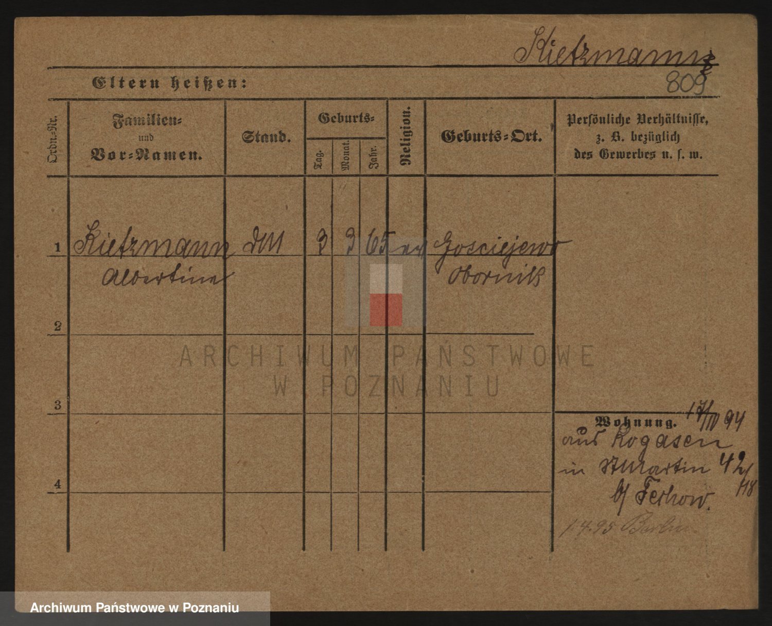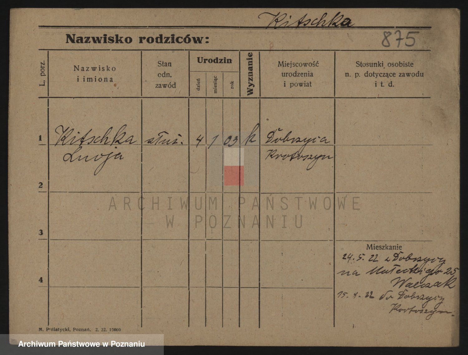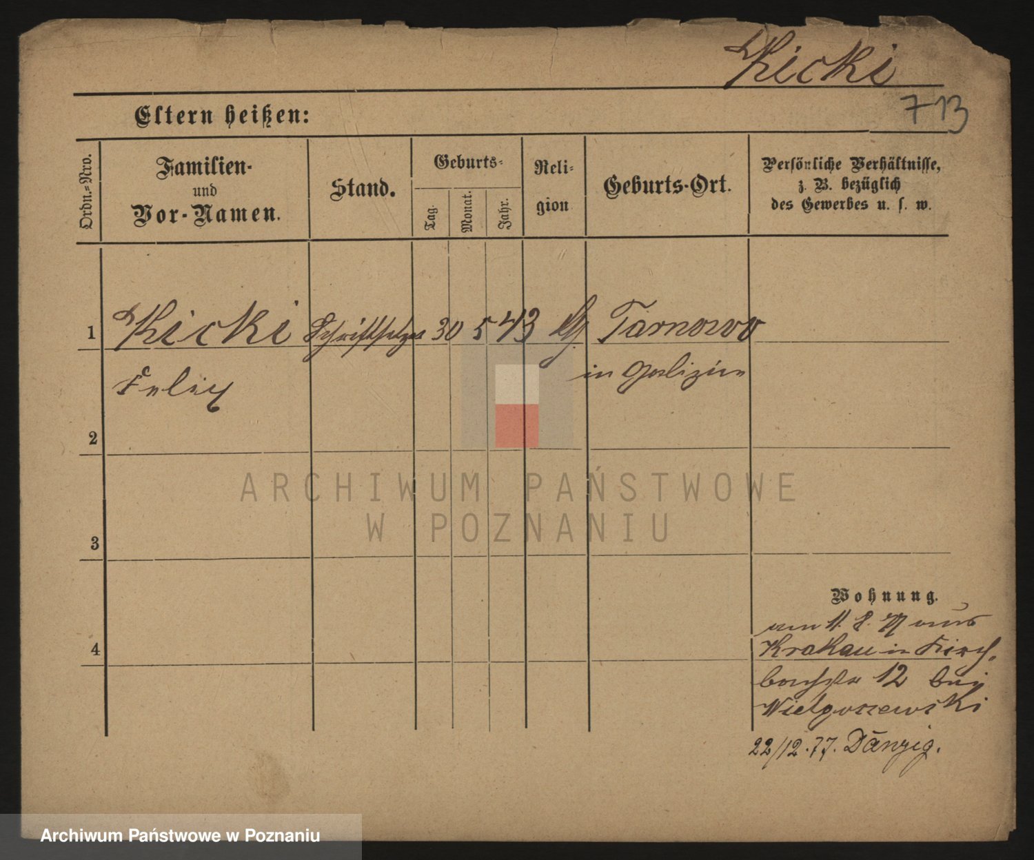 Podgląd karty osobowej dostępny jest po kliknięciu na nazwisko lub ikonkę karty. Można dokonywać powiększenia (ikony na górze) lub przechodzić między kolejnymi skanami (strzałki po bokach).
