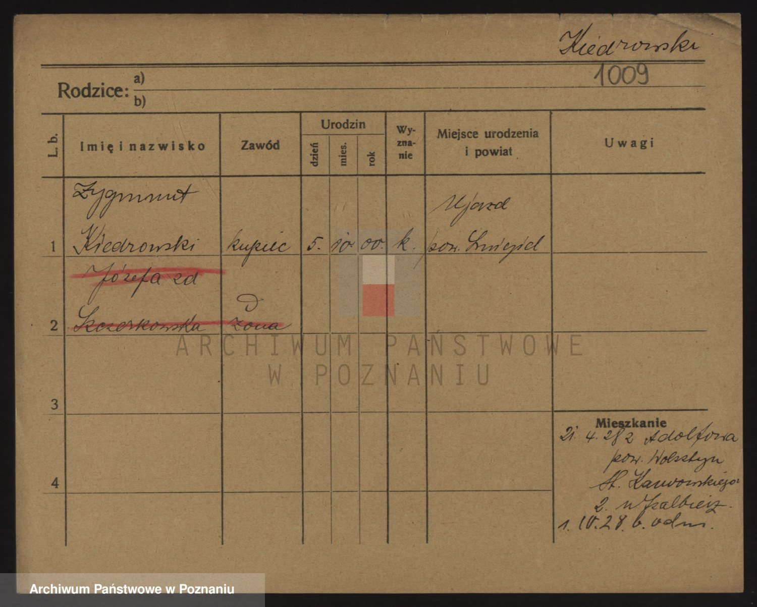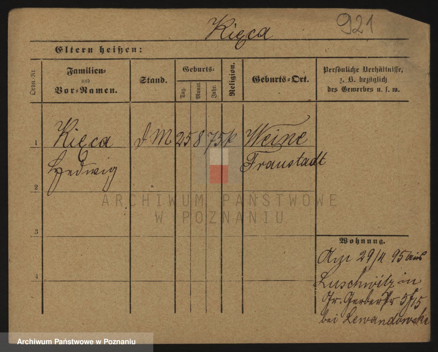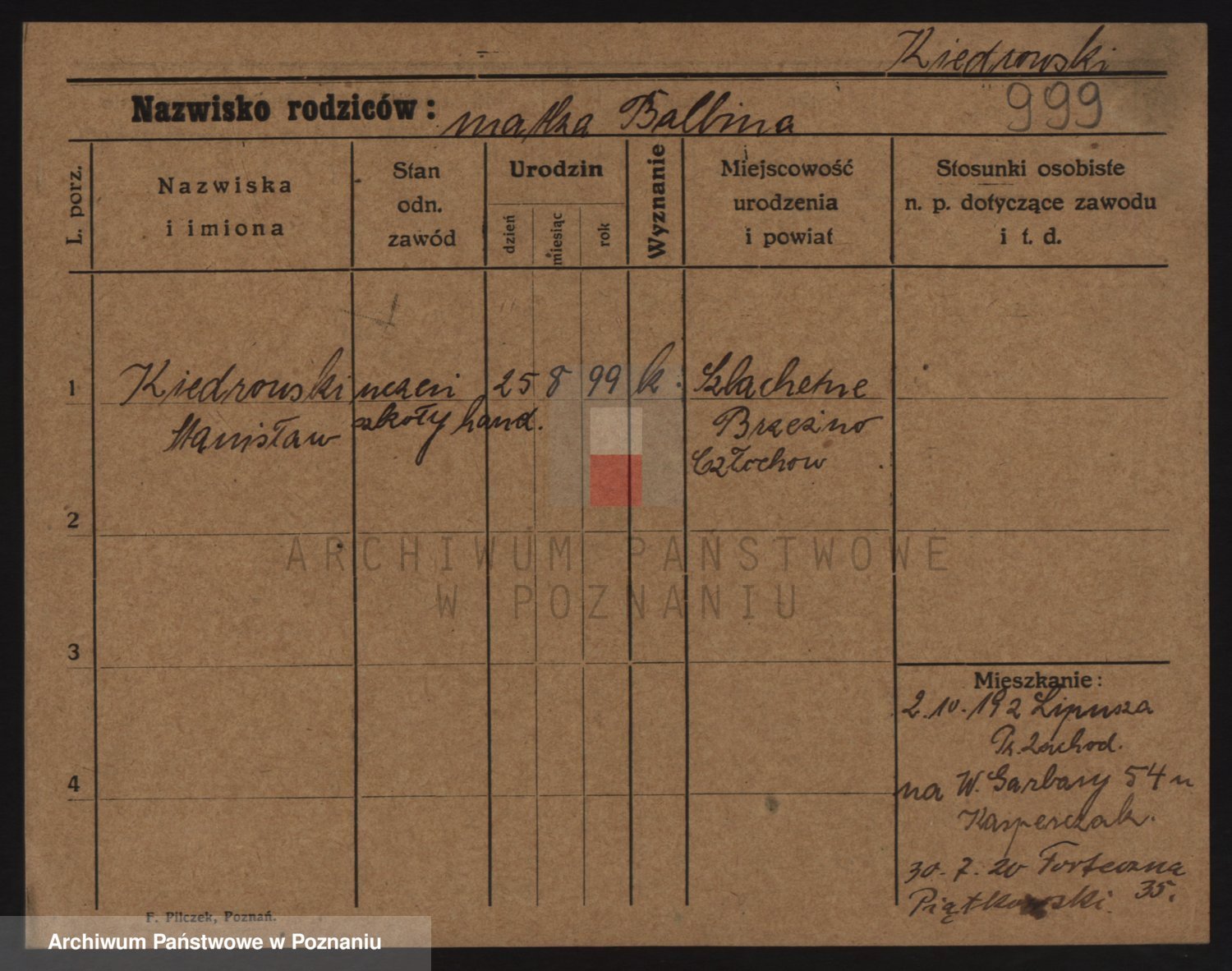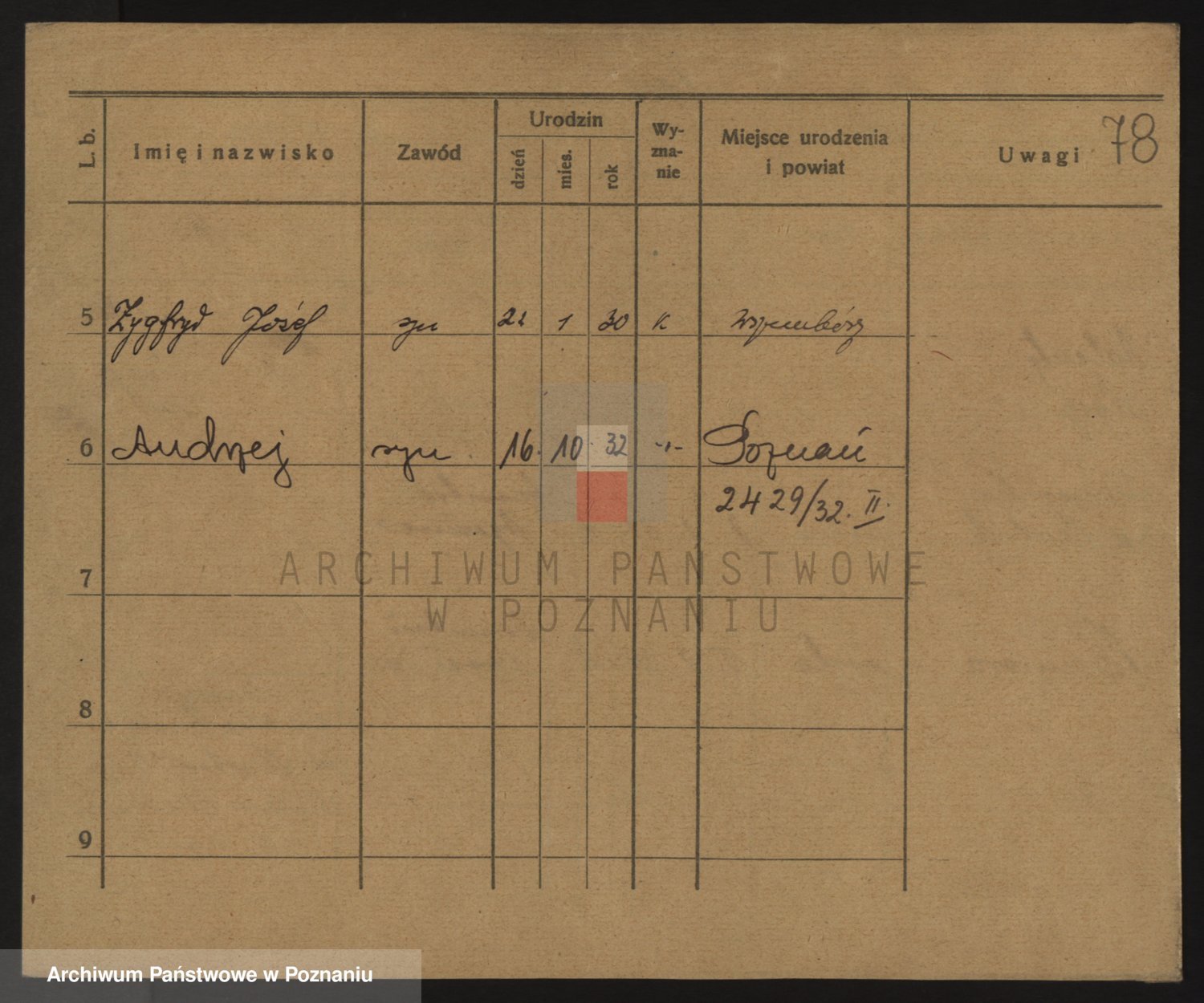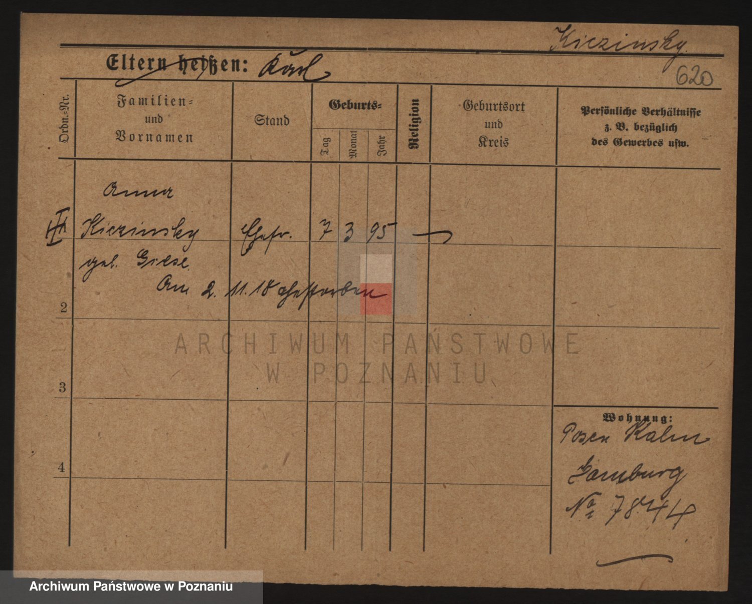 Podgląd karty osobowej dostępny jest po kliknięciu na nazwisko lub ikonkę karty. Można dokonywać powiększenia (ikony na górze) lub przechodzić między kolejnymi skanami (strzałki po bokach).