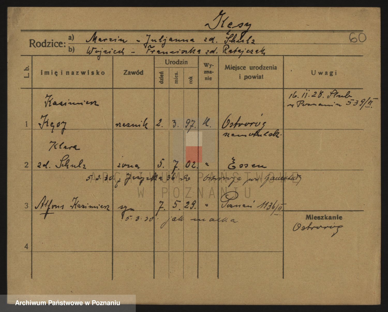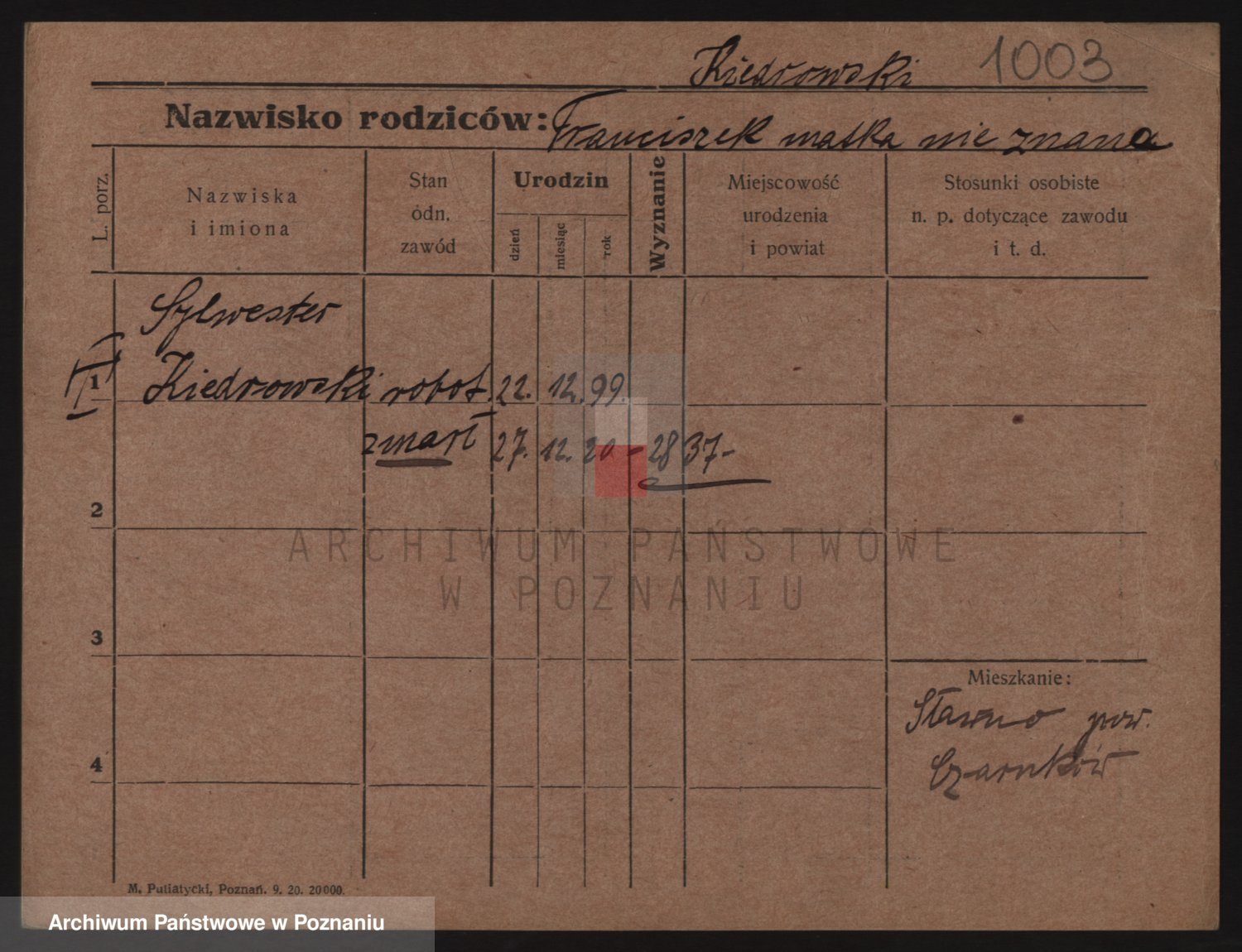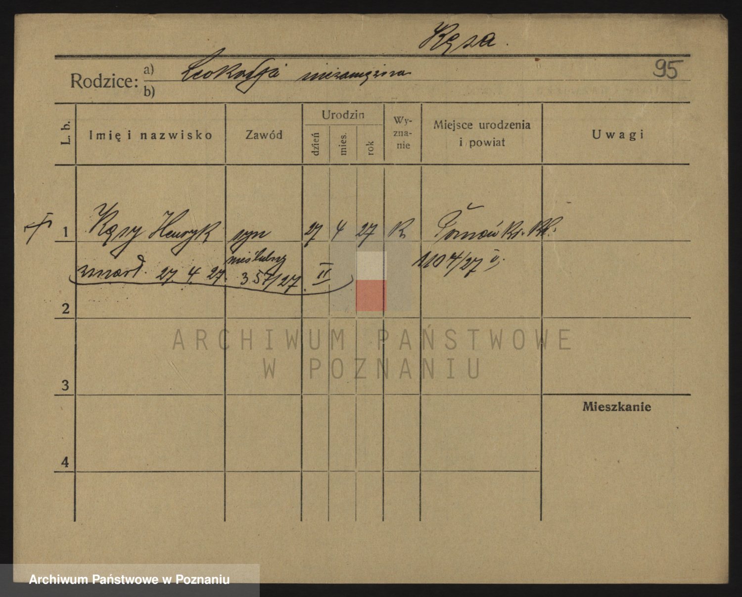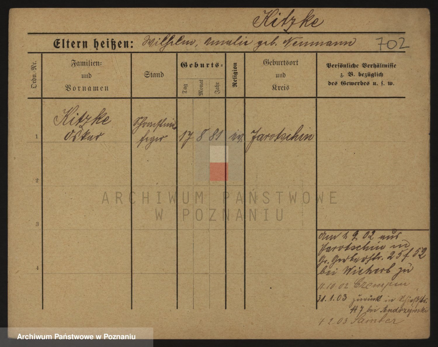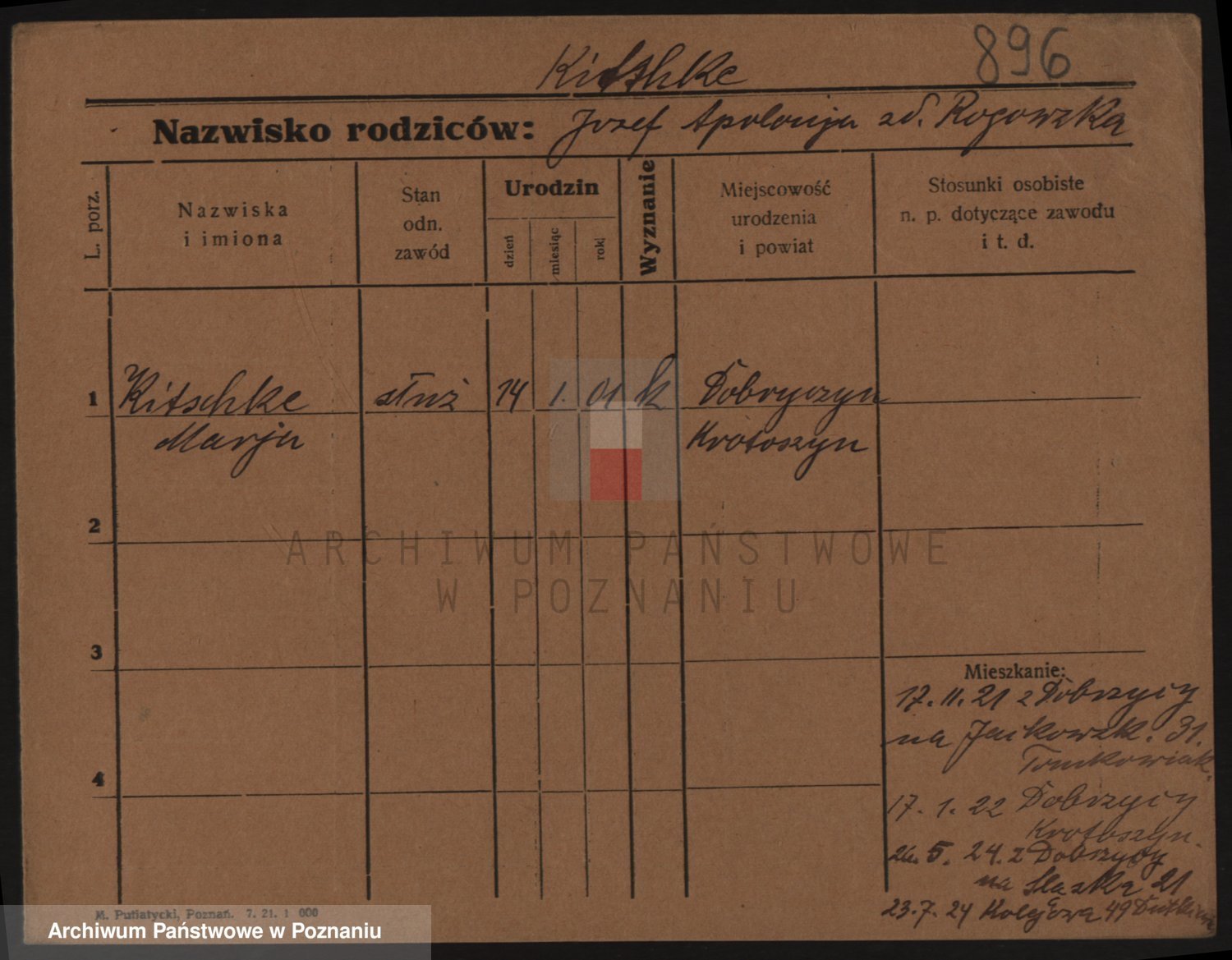 Podgląd karty osobowej dostępny jest po kliknięciu na nazwisko lub ikonkę karty. Można dokonywać powiększenia (ikony na górze) lub przechodzić między kolejnymi skanami (strzałki po bokach).