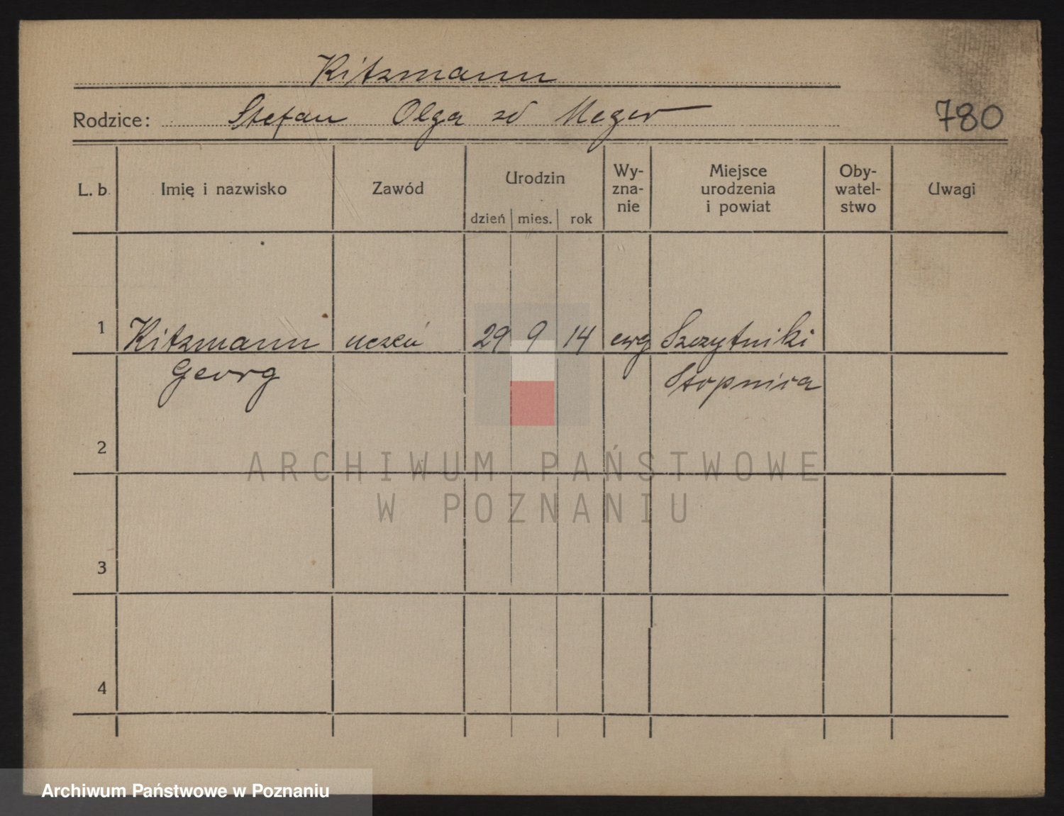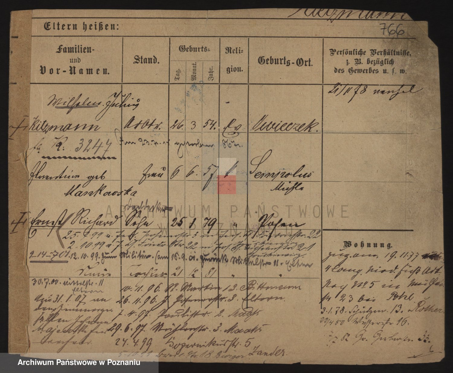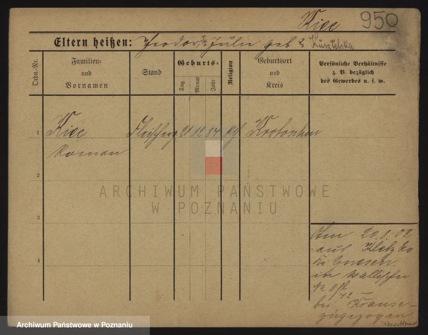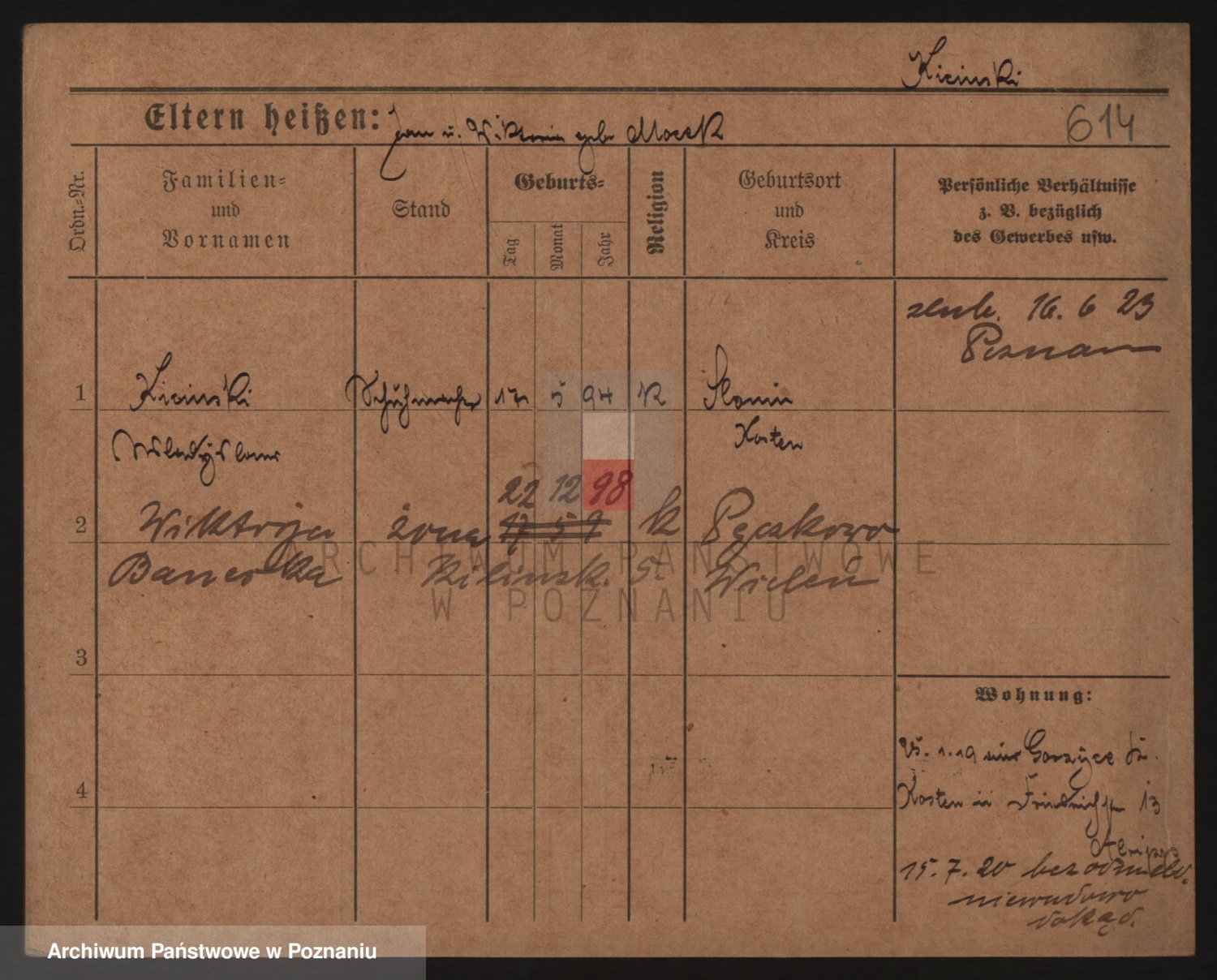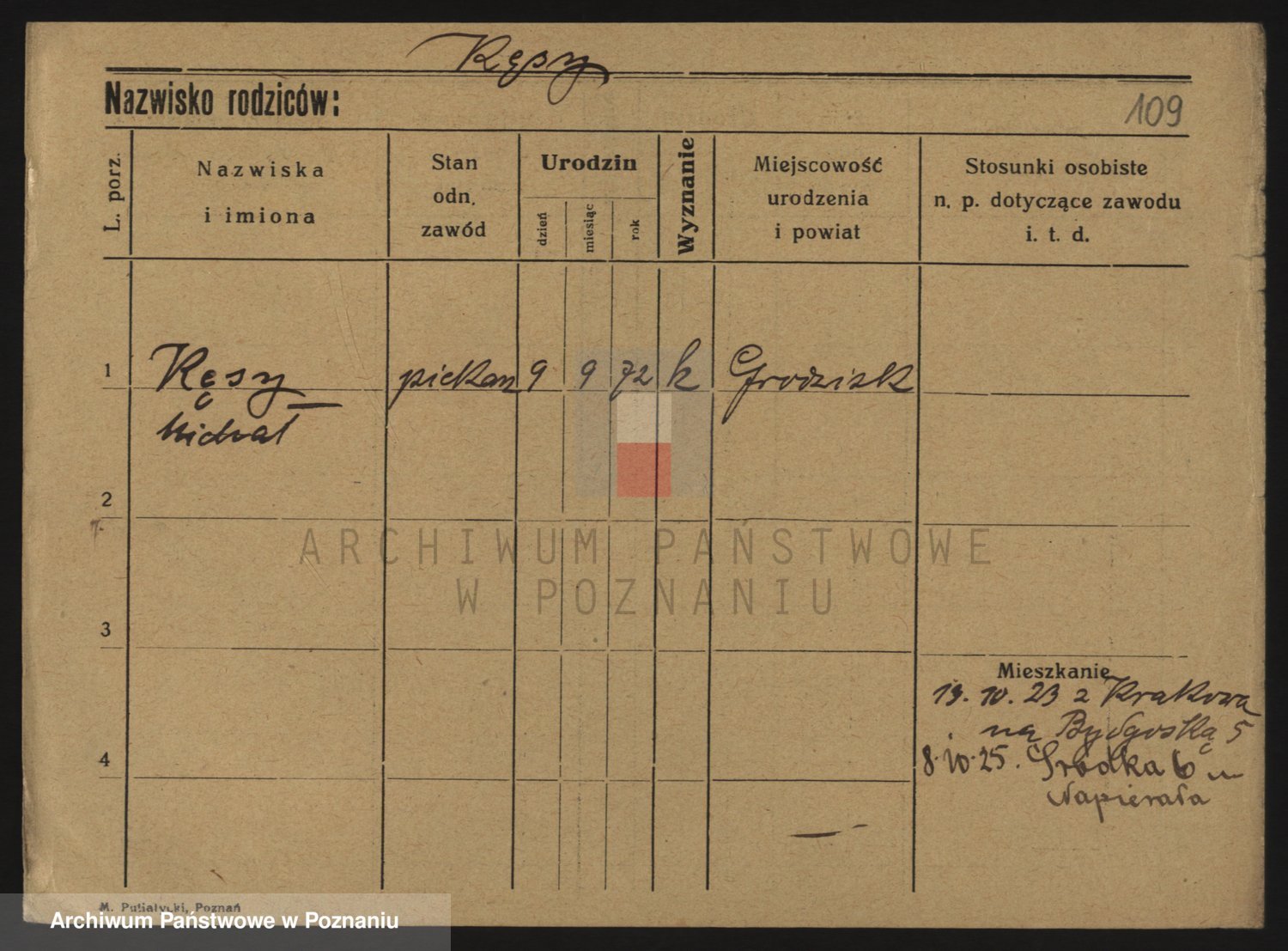Podgląd karty osobowej dostępny jest po kliknięciu na nazwisko lub ikonkę karty. Można dokonywać powiększenia (ikony na górze) lub przechodzić między kolejnymi skanami (strzałki po bokach).
