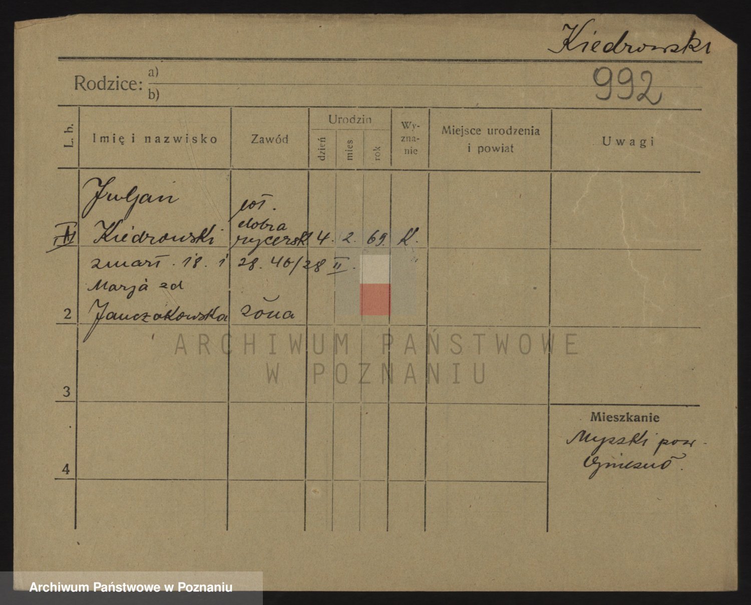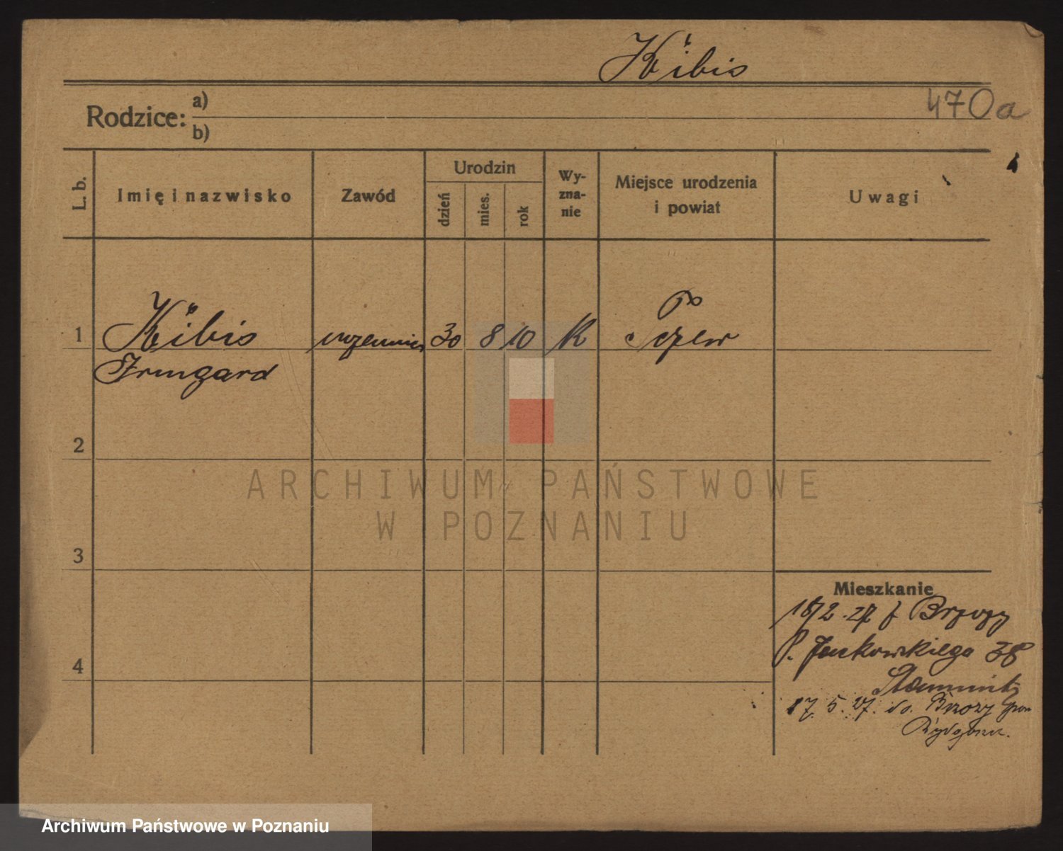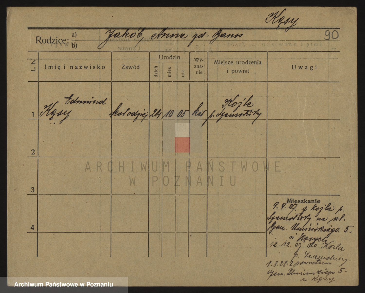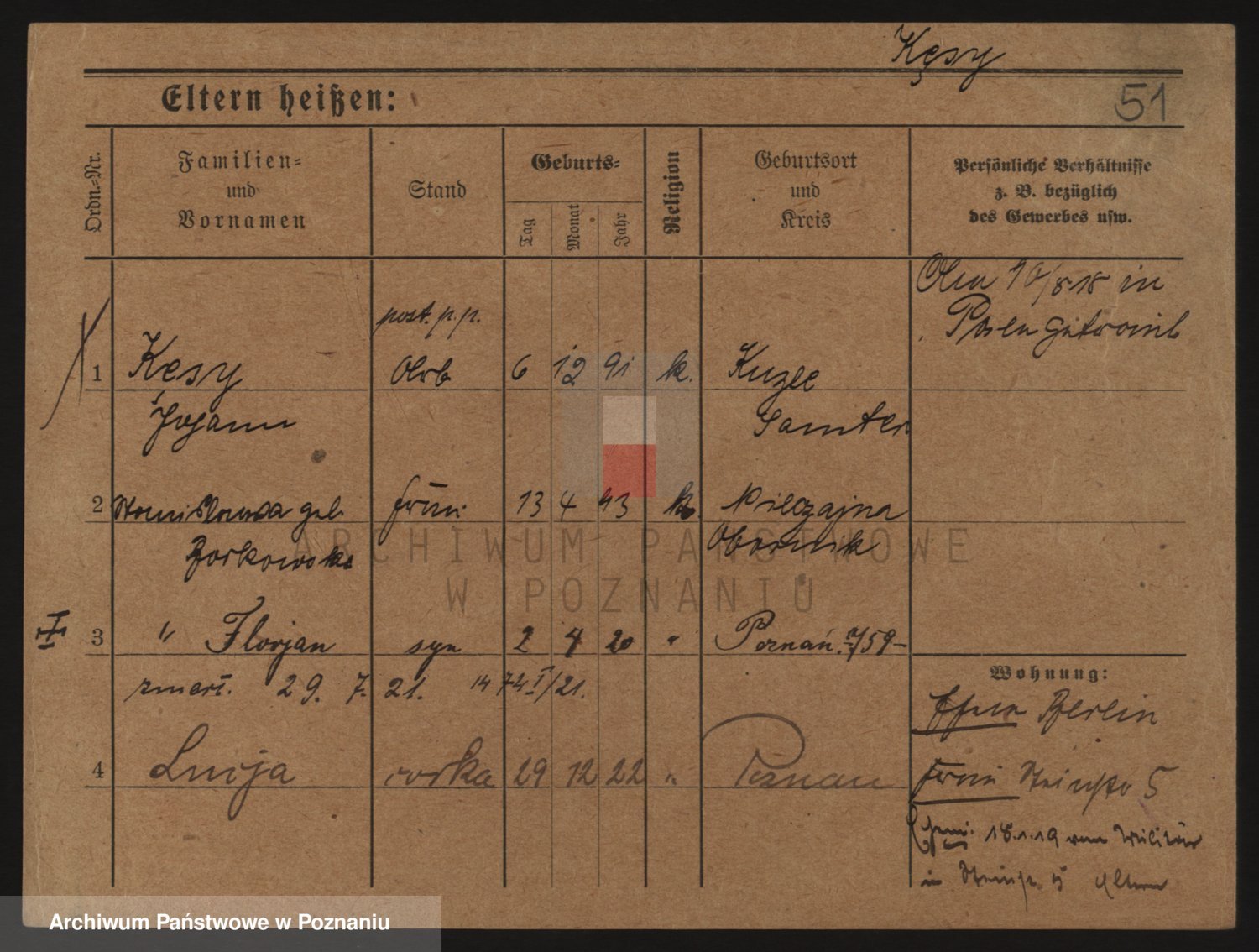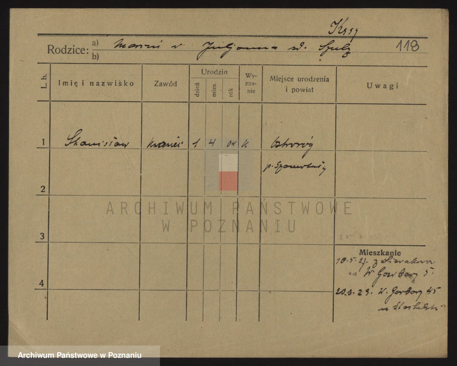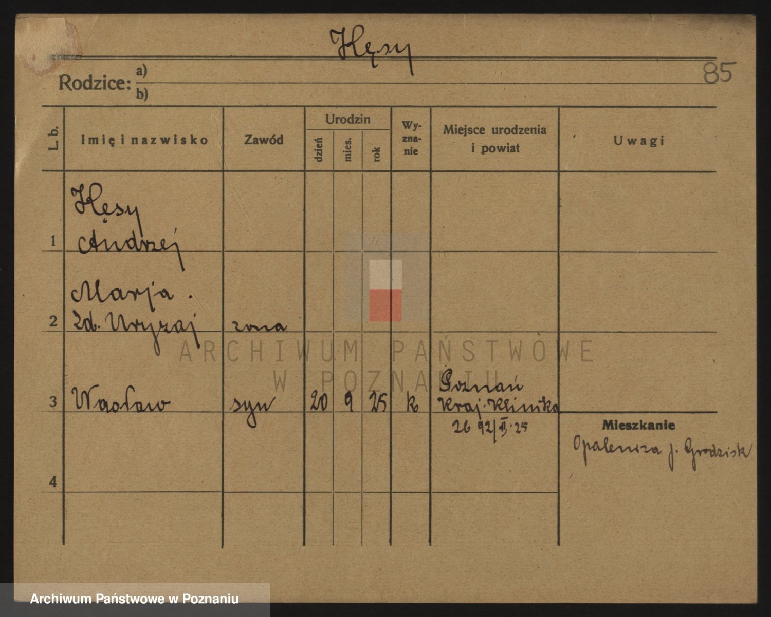 Podgląd karty osobowej dostępny jest po kliknięciu na nazwisko lub ikonkę karty. Można dokonywać powiększenia (ikony na górze) lub przechodzić między kolejnymi skanami (strzałki po bokach).