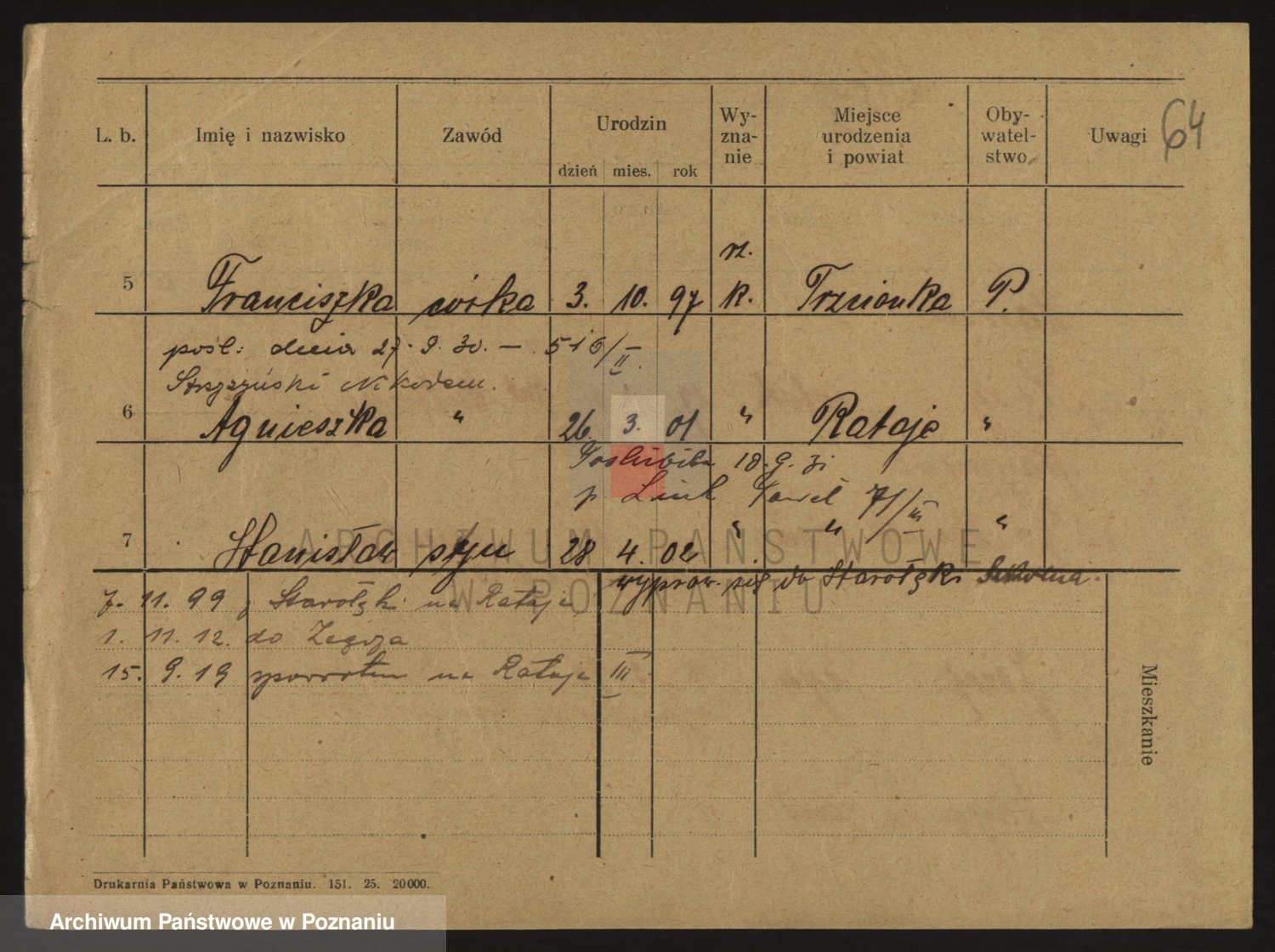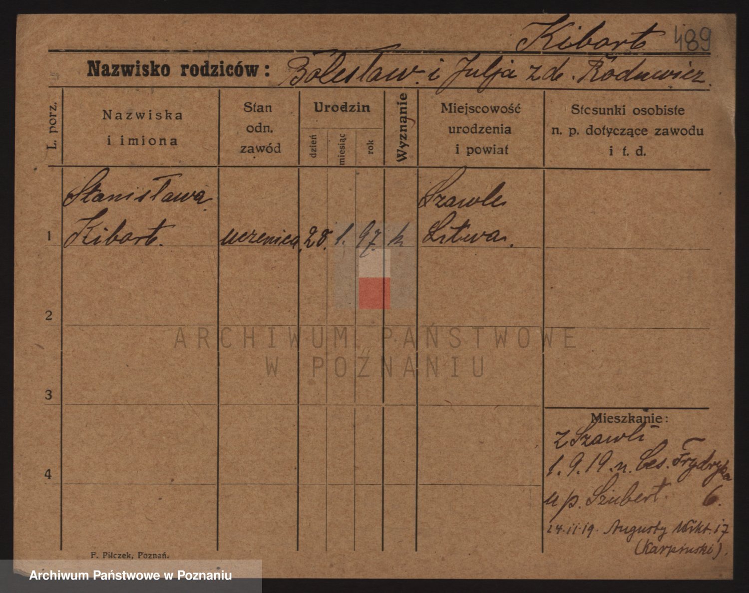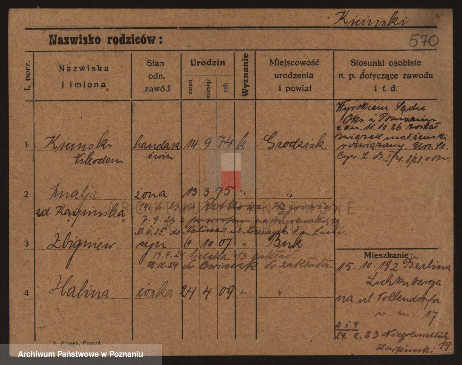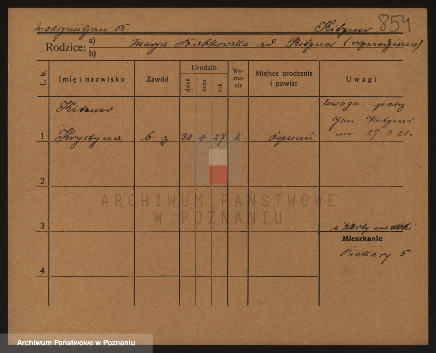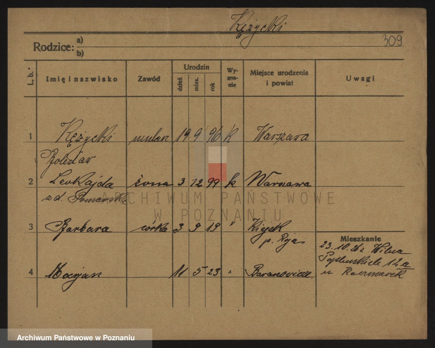 Podgląd karty osobowej dostępny jest po kliknięciu na nazwisko lub ikonkę karty. Można dokonywać powiększenia (ikony na górze) lub przechodzić między kolejnymi skanami (strzałki po bokach).