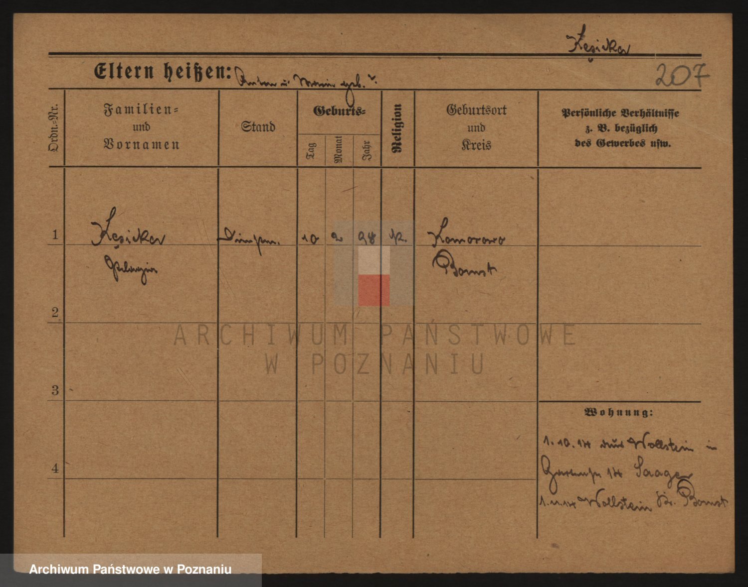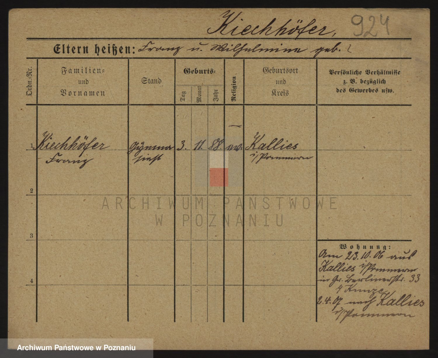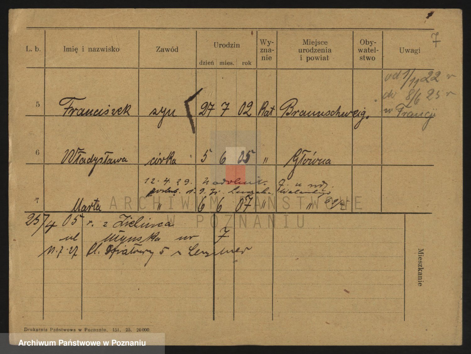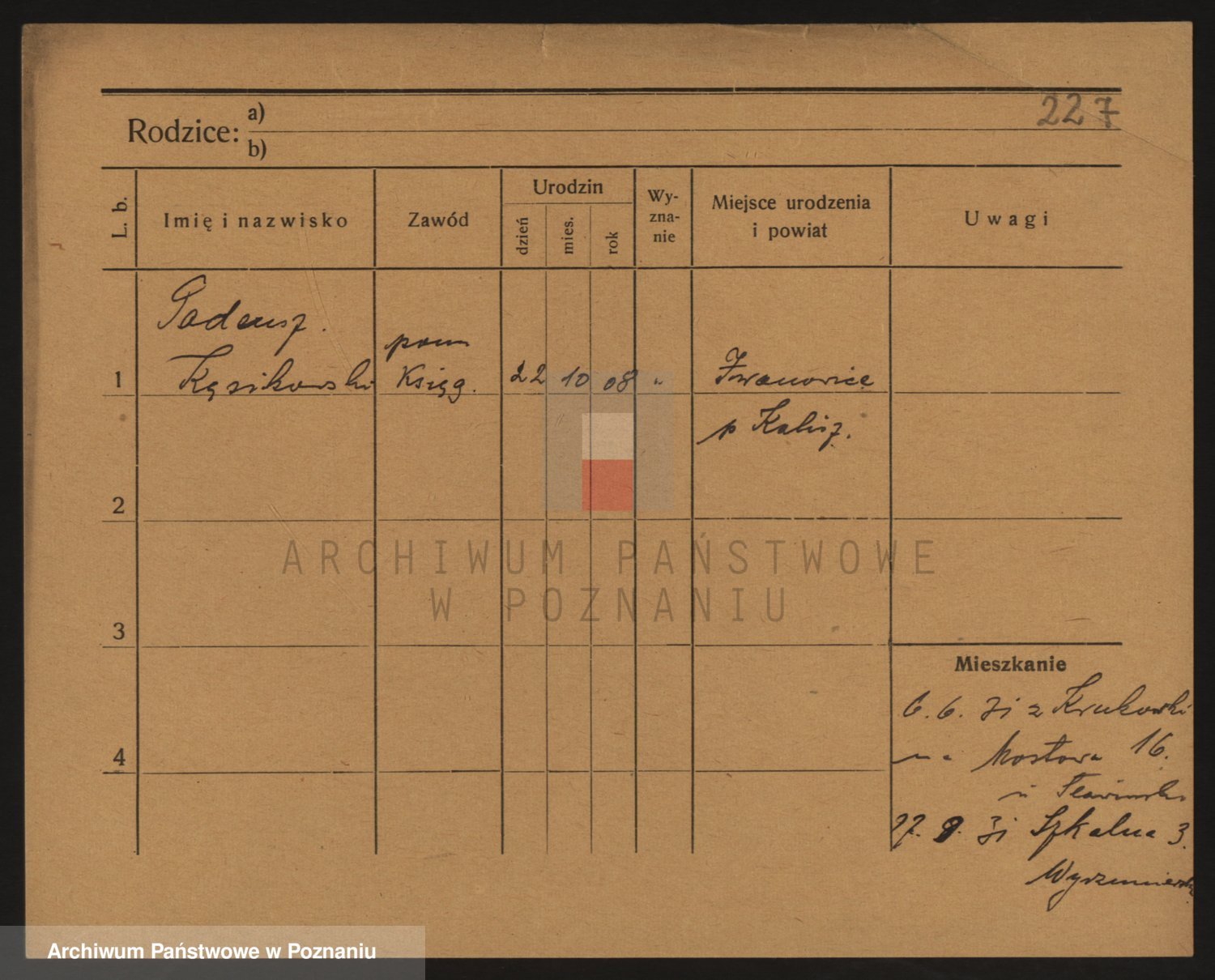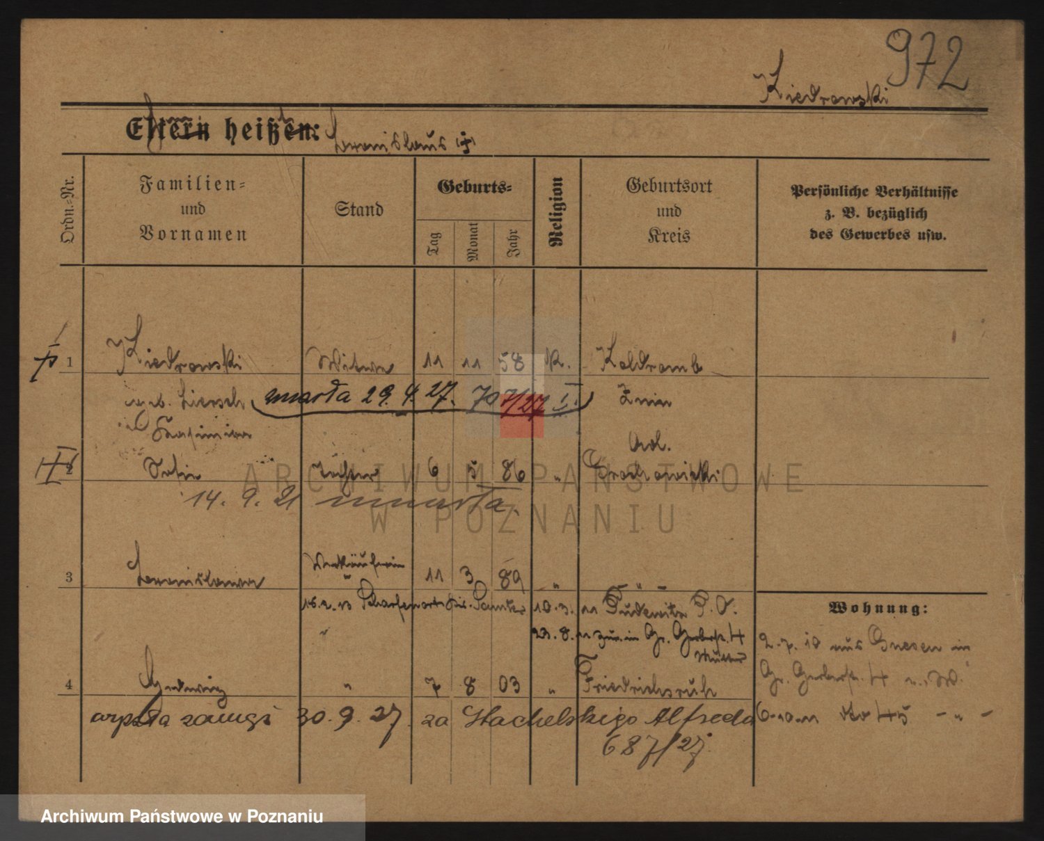 Podgląd karty osobowej dostępny jest po kliknięciu na nazwisko lub ikonkę karty. Można dokonywać powiększenia (ikony na górze) lub przechodzić między kolejnymi skanami (strzałki po bokach).
