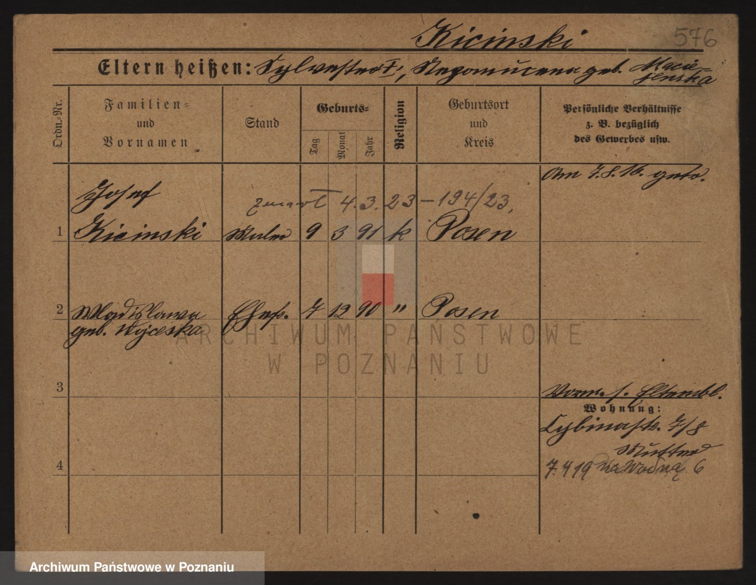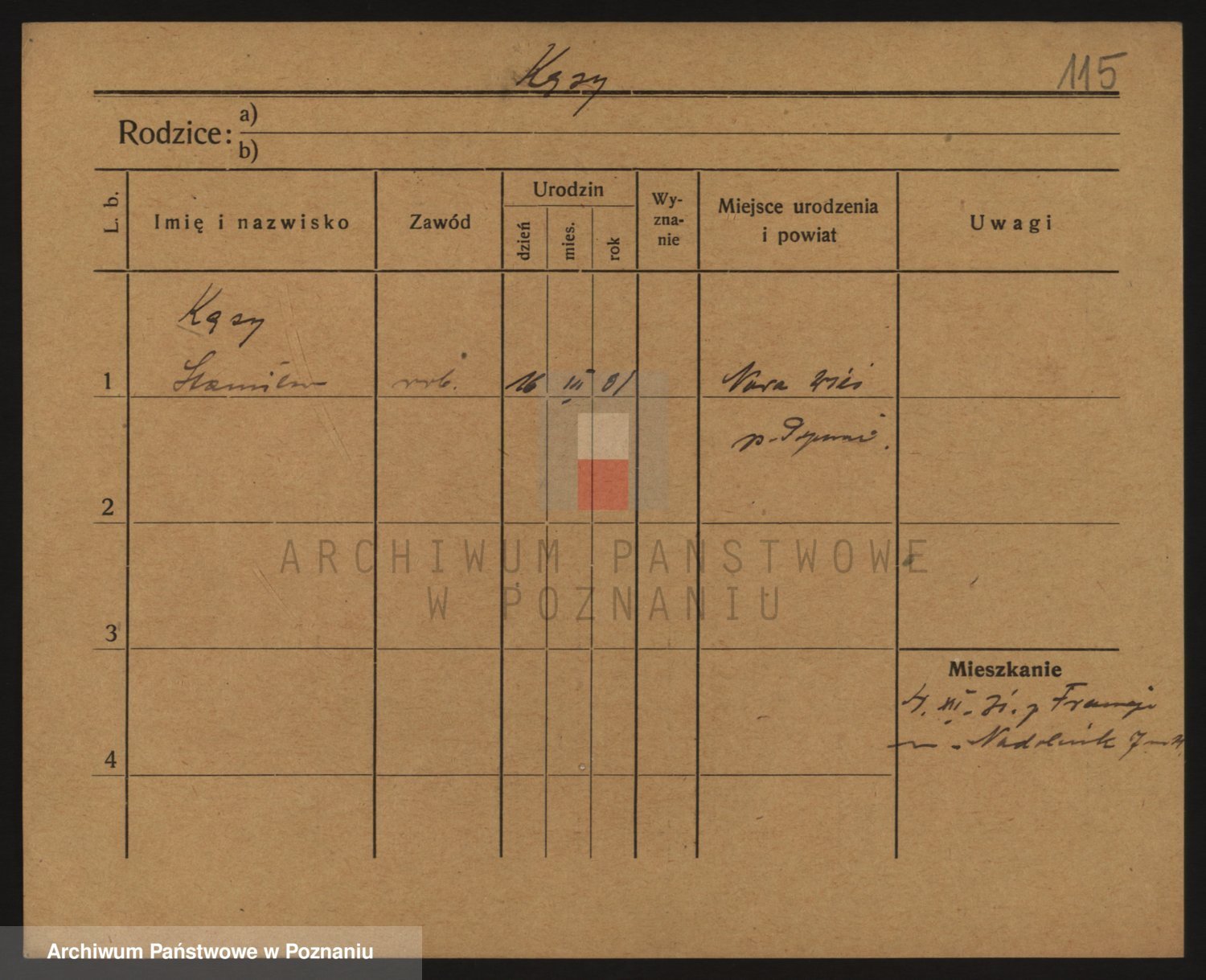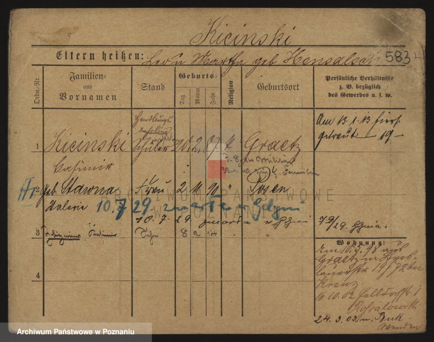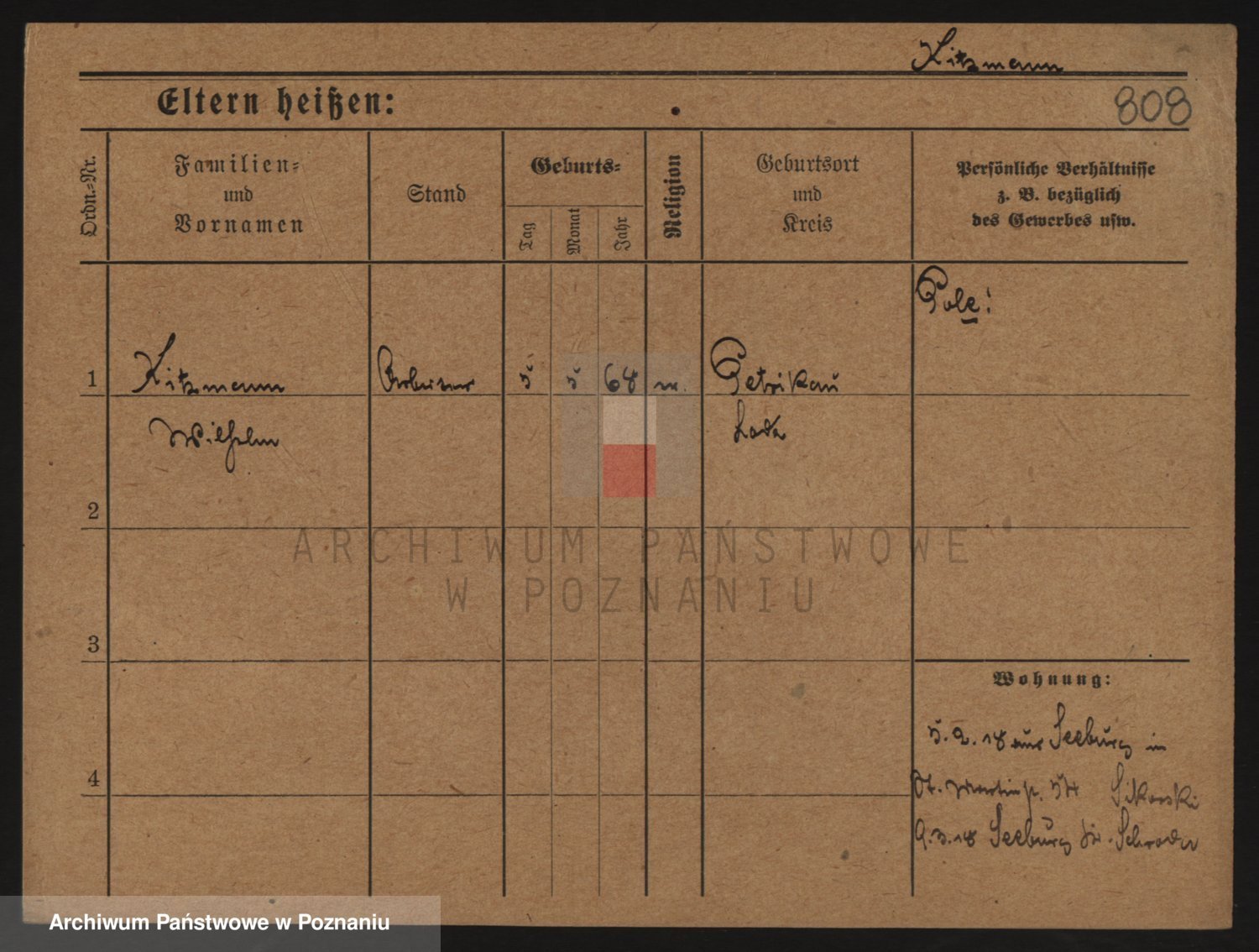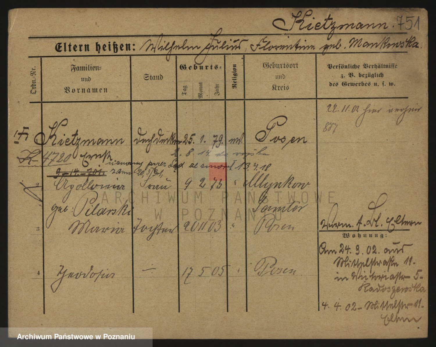 Podgląd karty osobowej dostępny jest po kliknięciu na nazwisko lub ikonkę karty. Można dokonywać powiększenia (ikony na górze) lub przechodzić między kolejnymi skanami (strzałki po bokach).