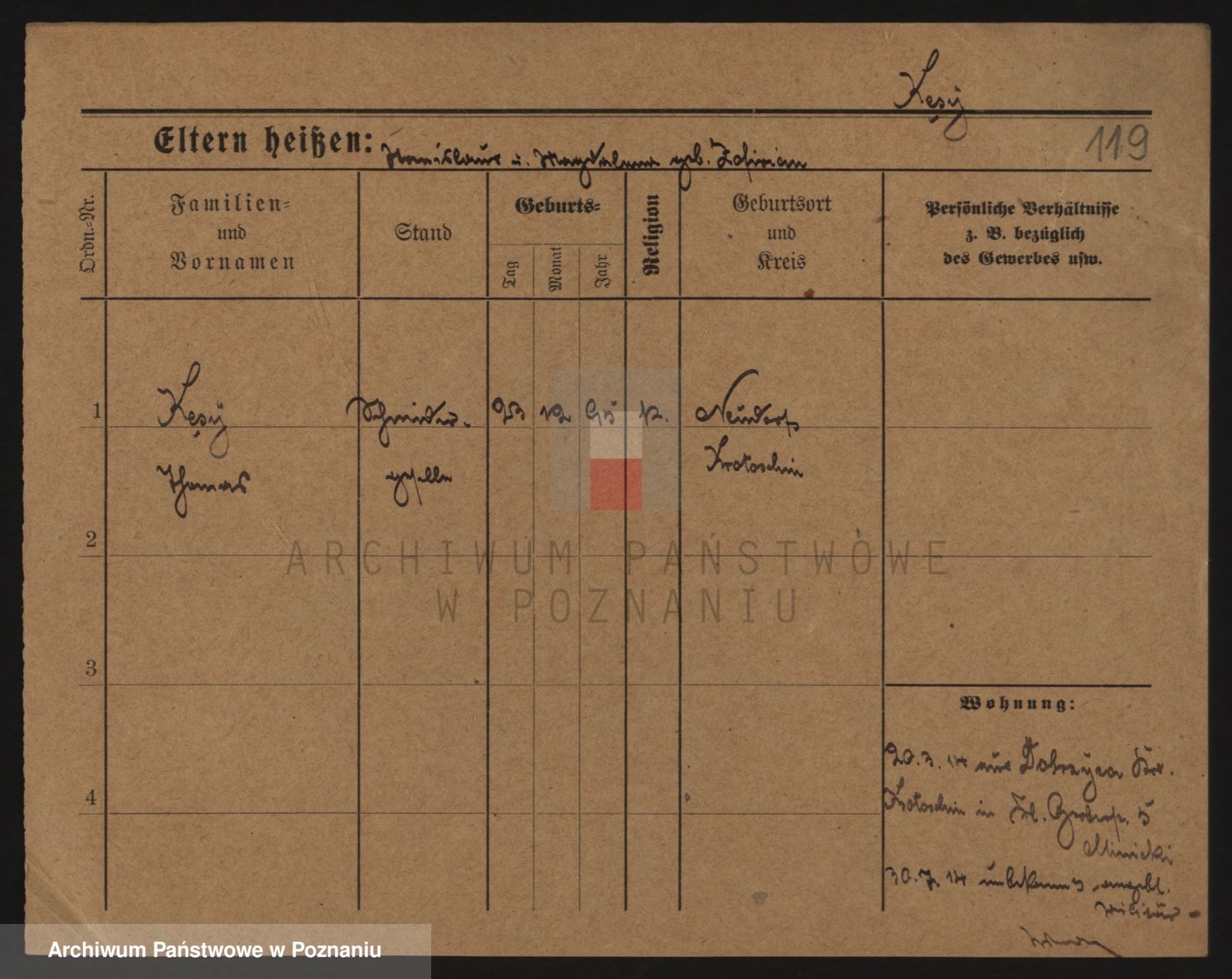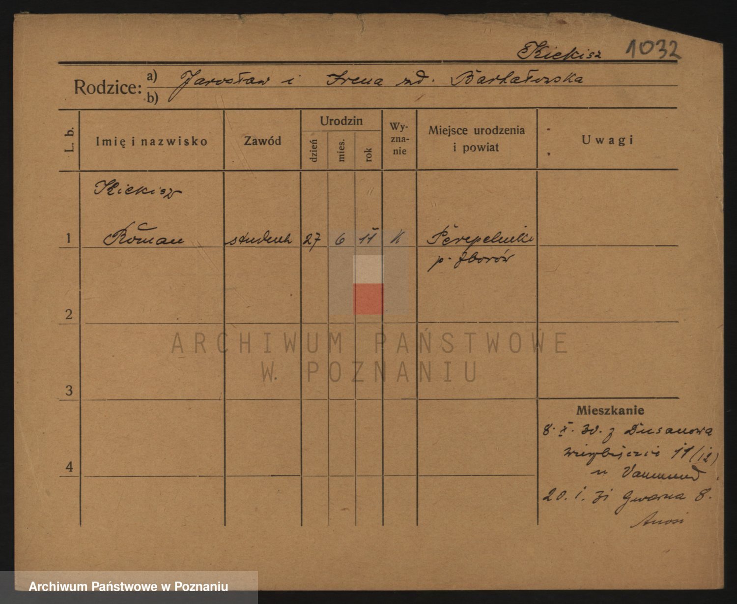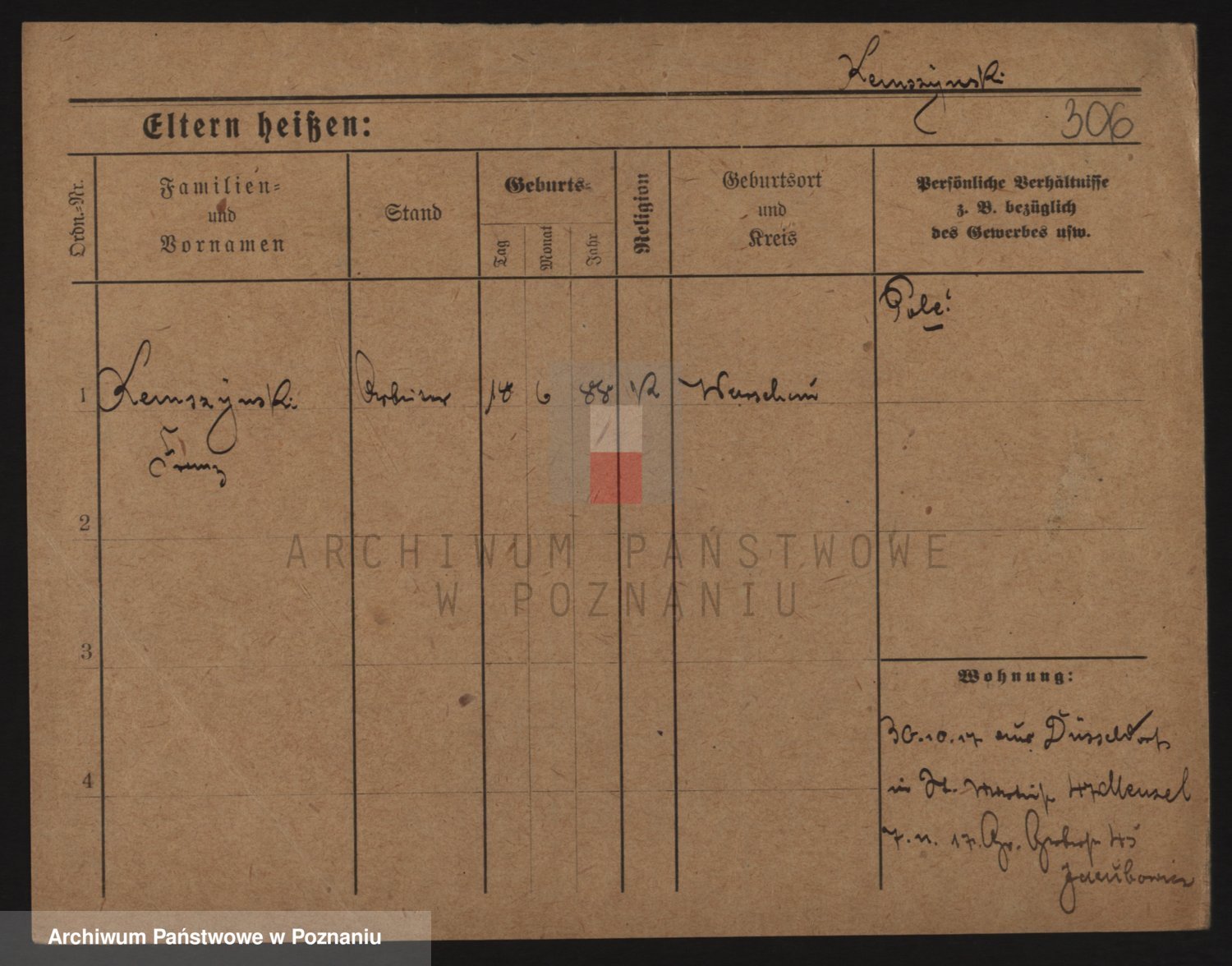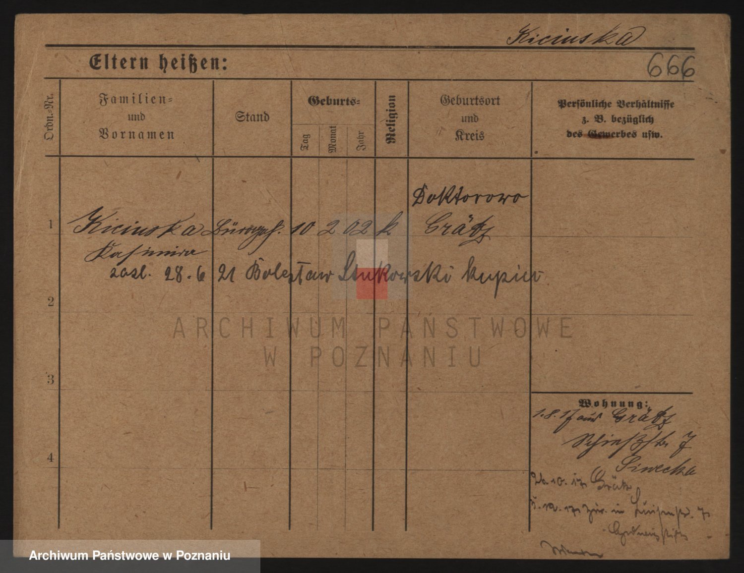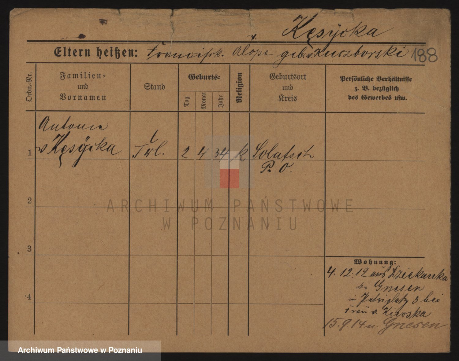 Podgląd karty osobowej dostępny jest po kliknięciu na nazwisko lub ikonkę karty. Można dokonywać powiększenia (ikony na górze) lub przechodzić między kolejnymi skanami (strzałki po bokach).