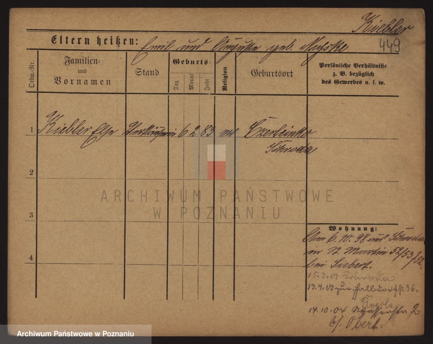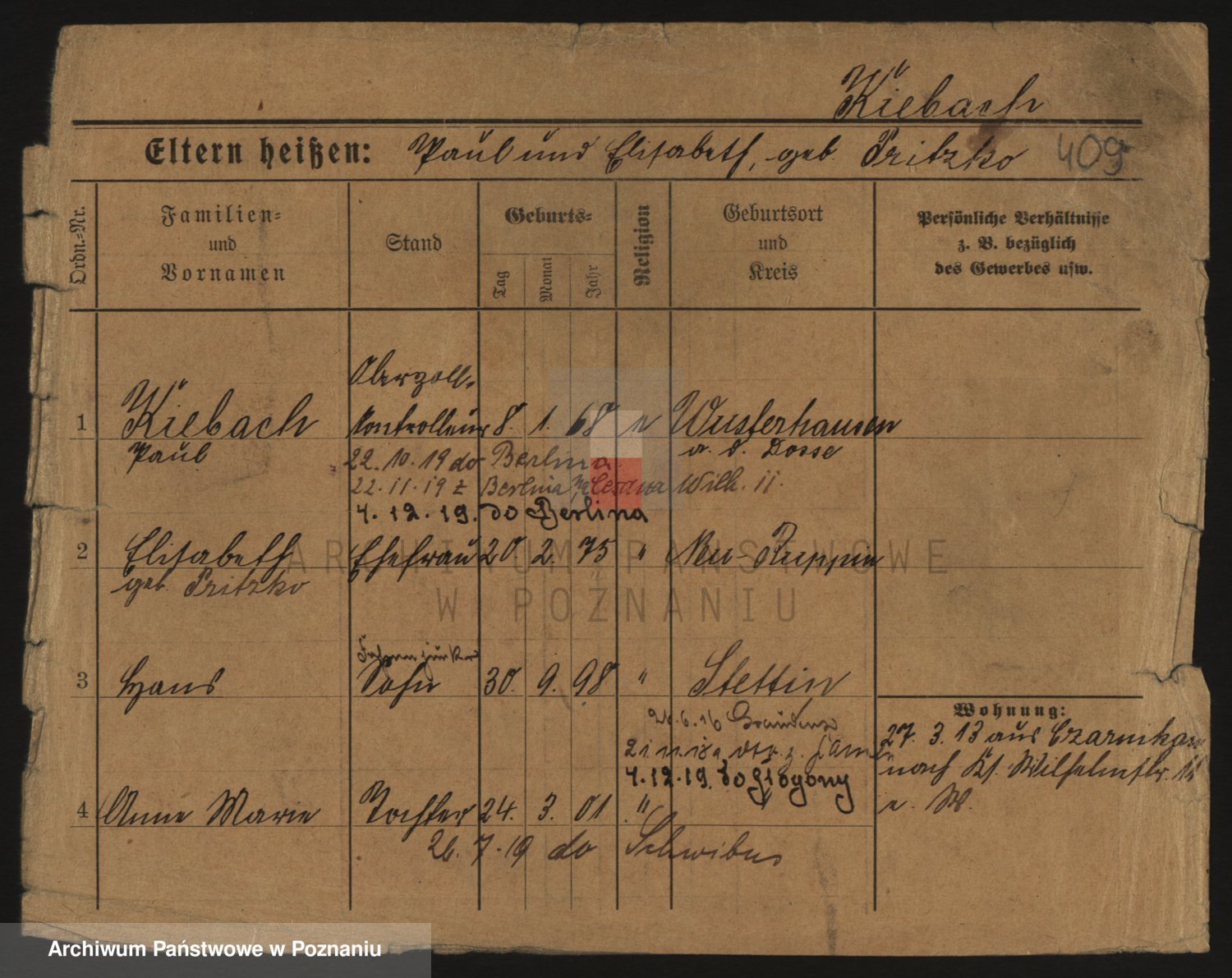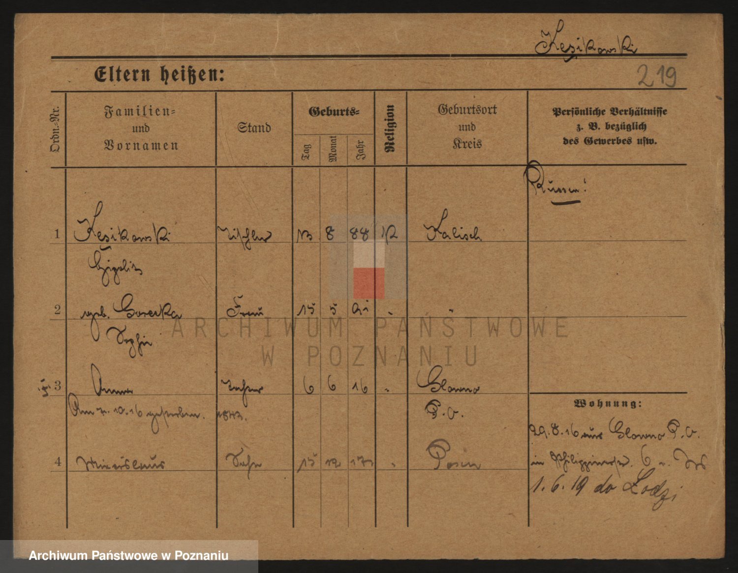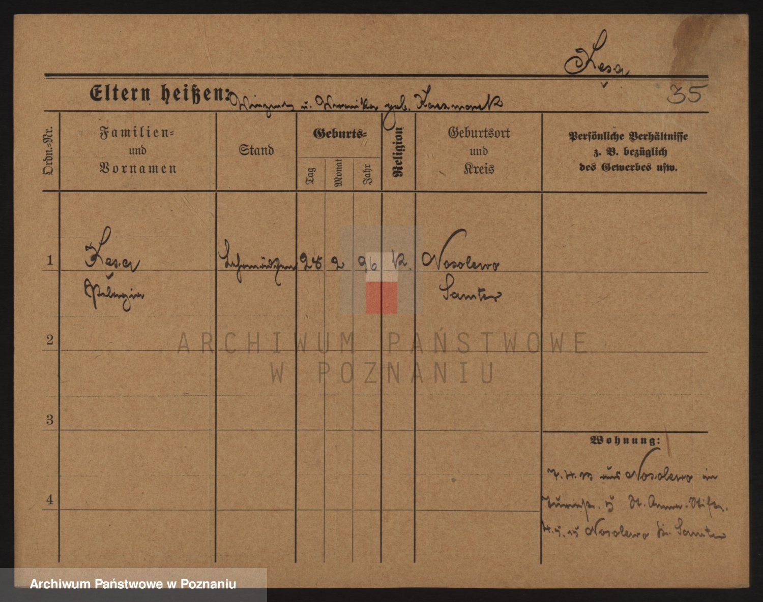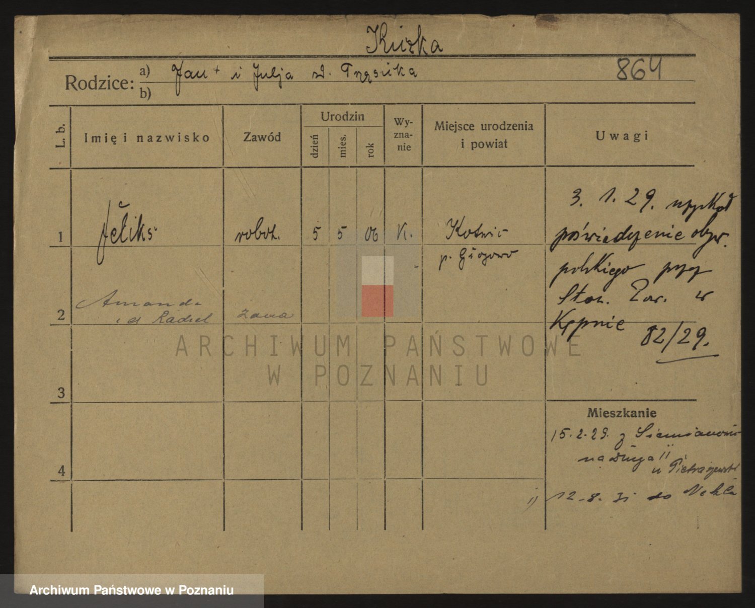 Podgląd karty osobowej dostępny jest po kliknięciu na nazwisko lub ikonkę karty. Można dokonywać powiększenia (ikony na górze) lub przechodzić między kolejnymi skanami (strzałki po bokach).