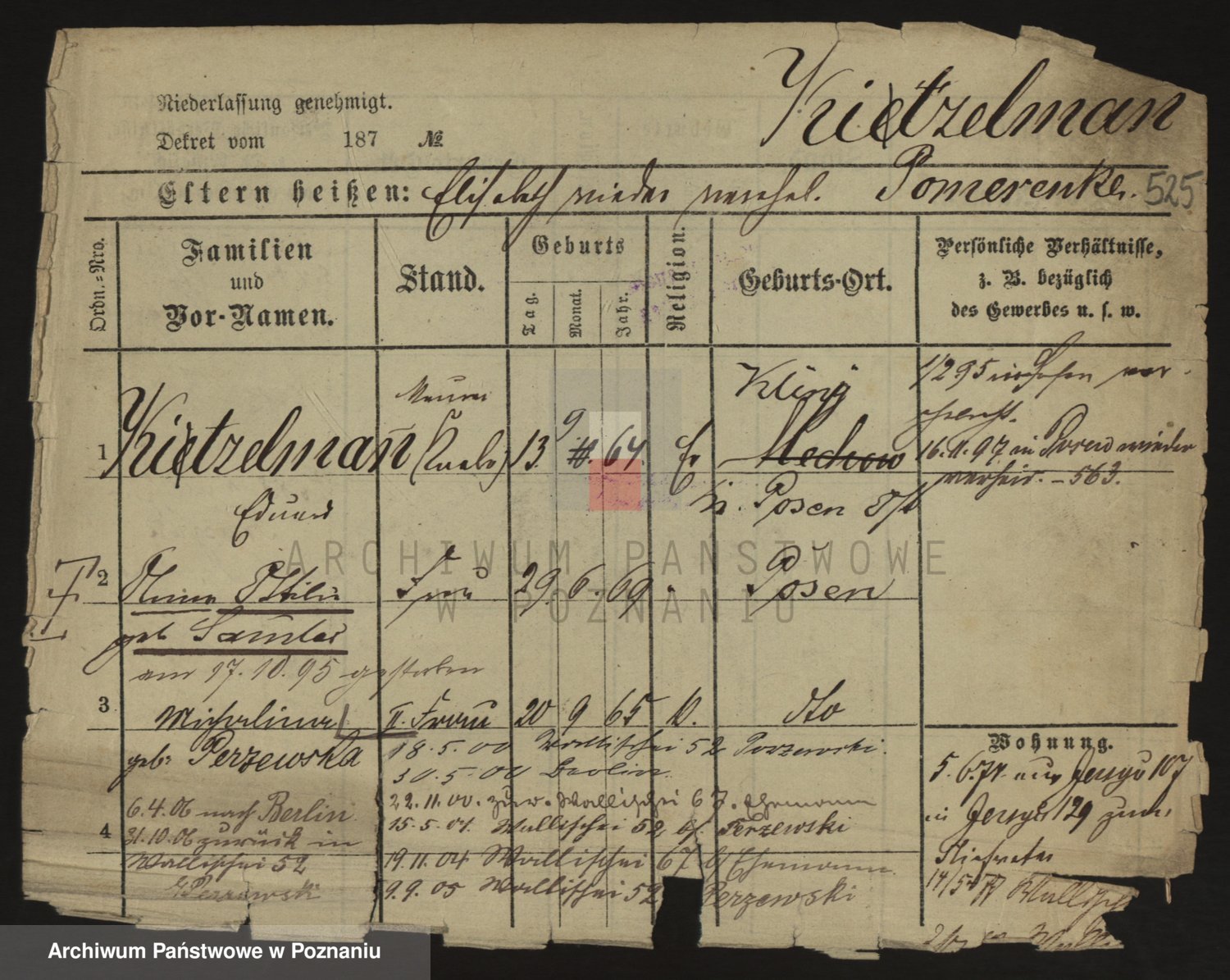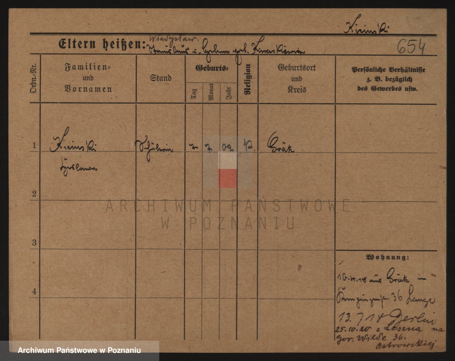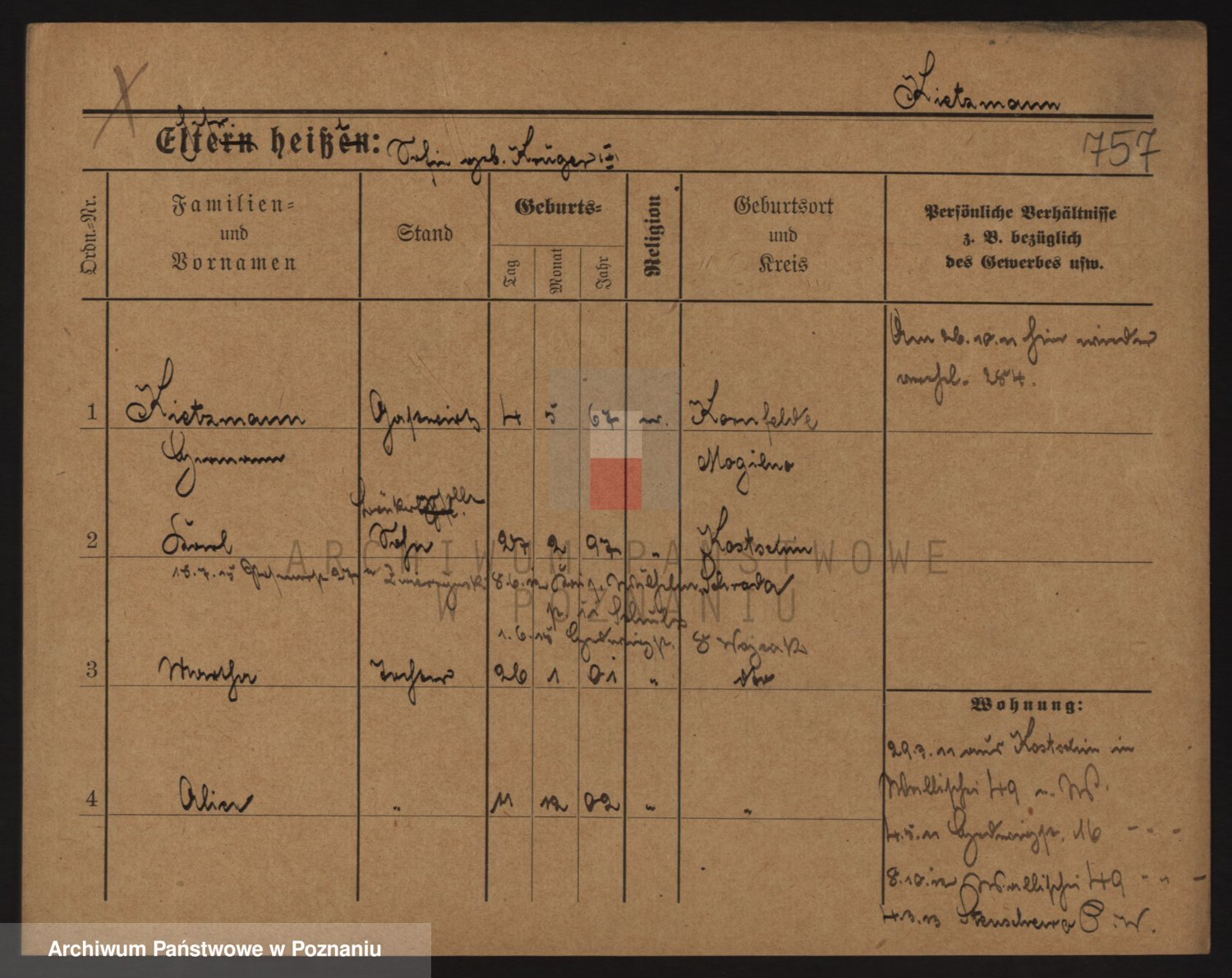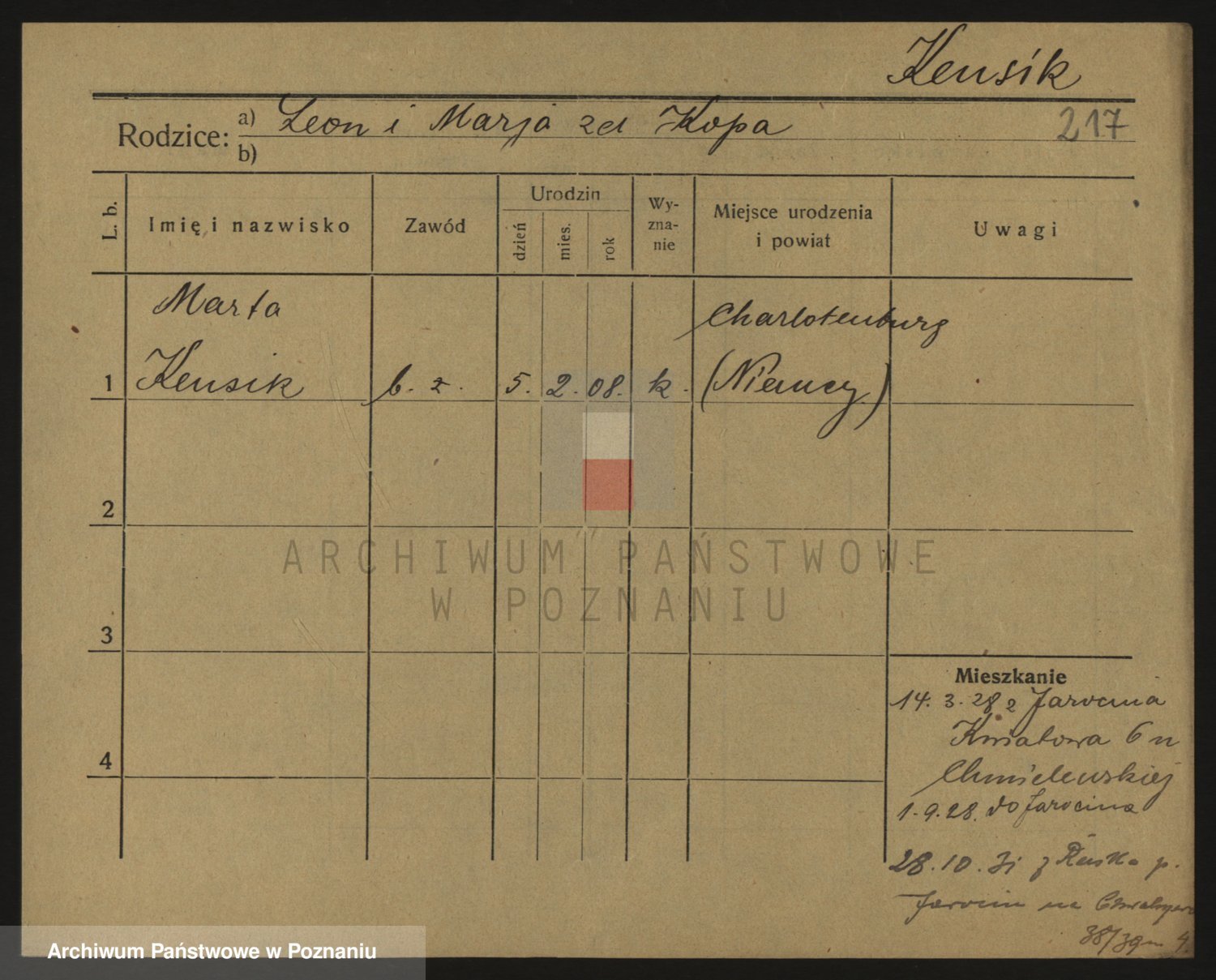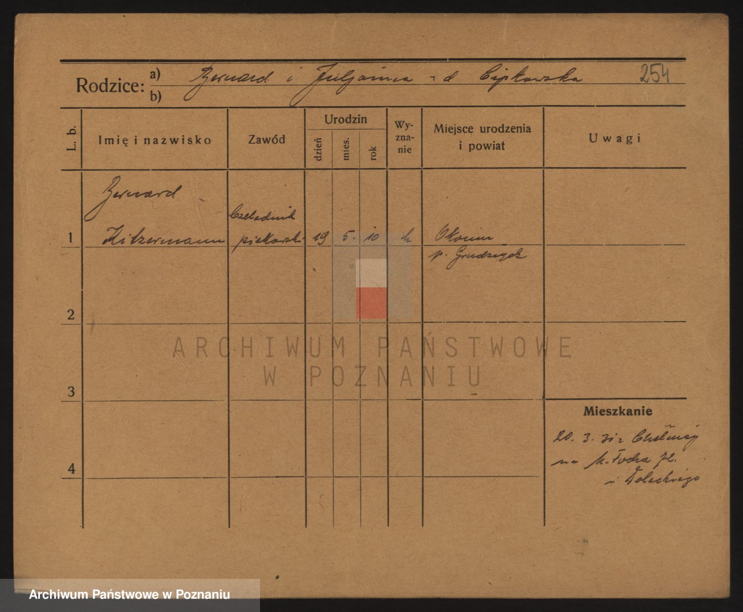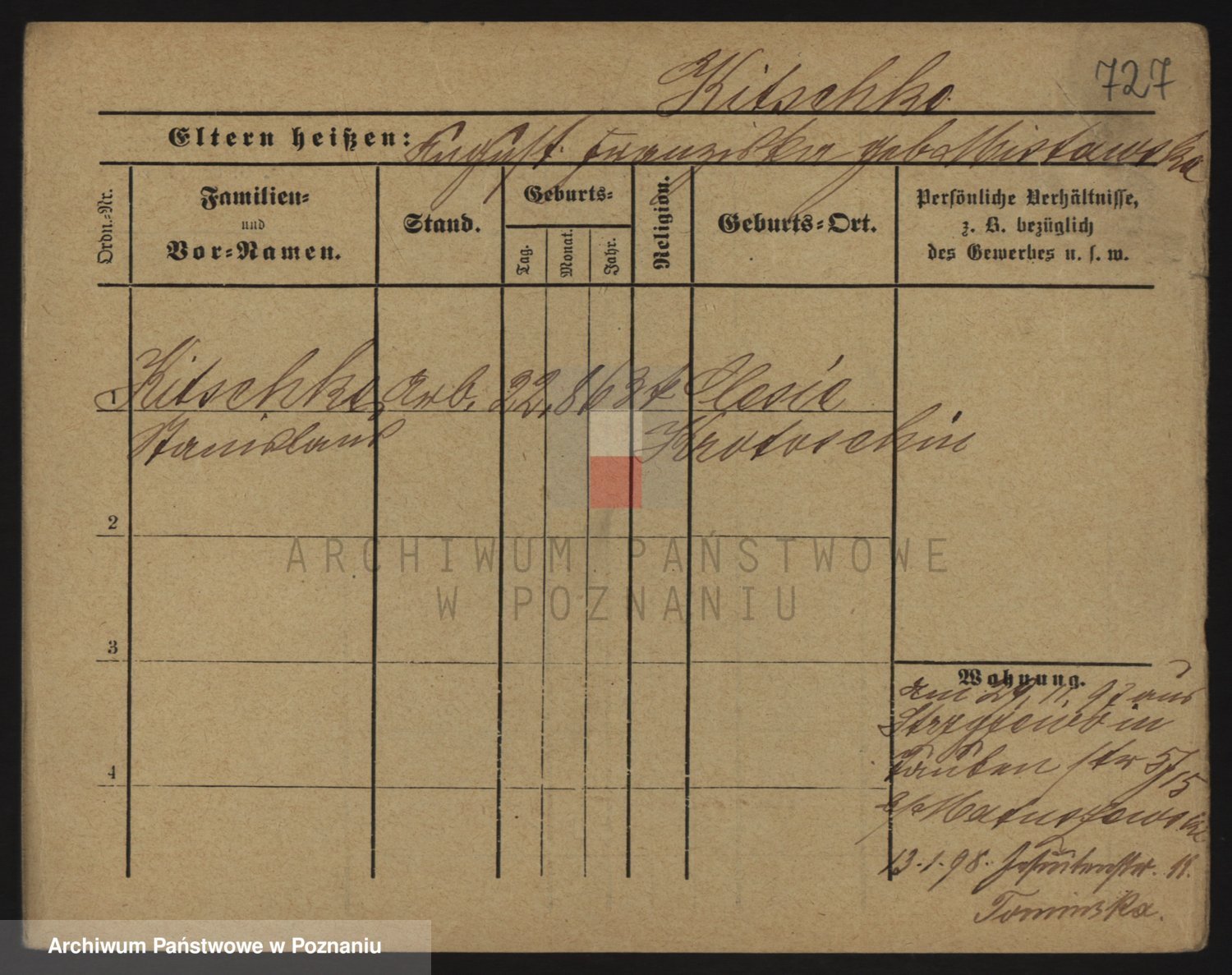 Podgląd karty osobowej dostępny jest po kliknięciu na nazwisko lub ikonkę karty. Można dokonywać powiększenia (ikony na górze) lub przechodzić między kolejnymi skanami (strzałki po bokach).