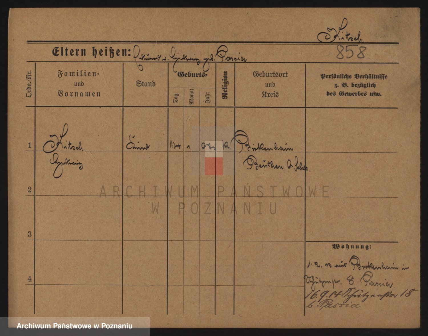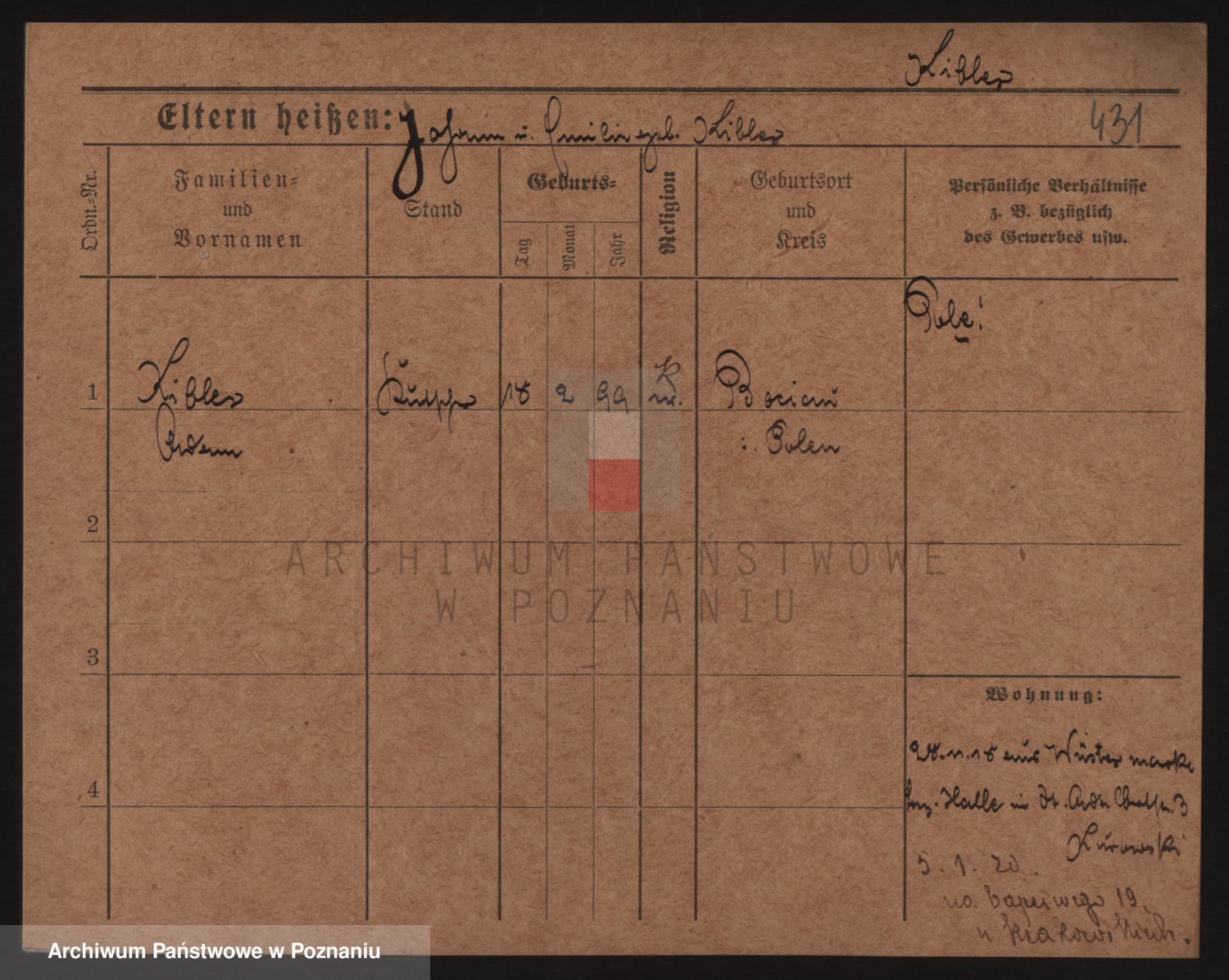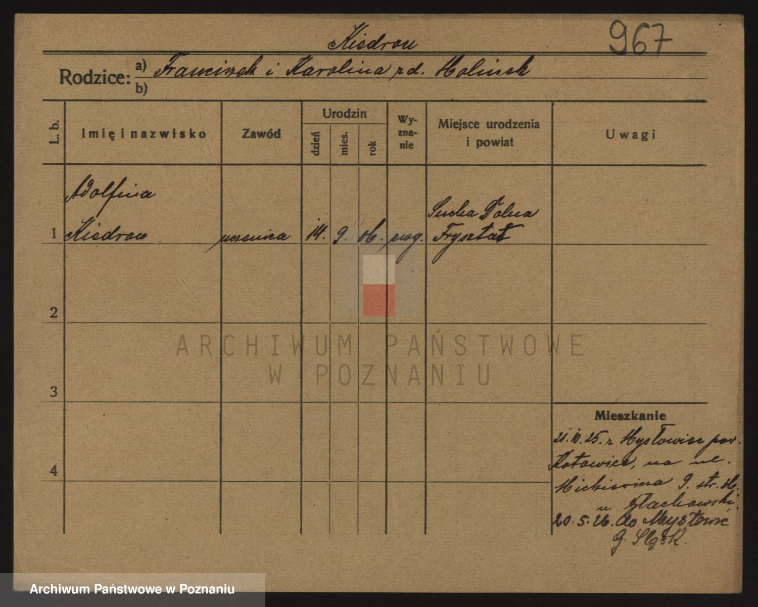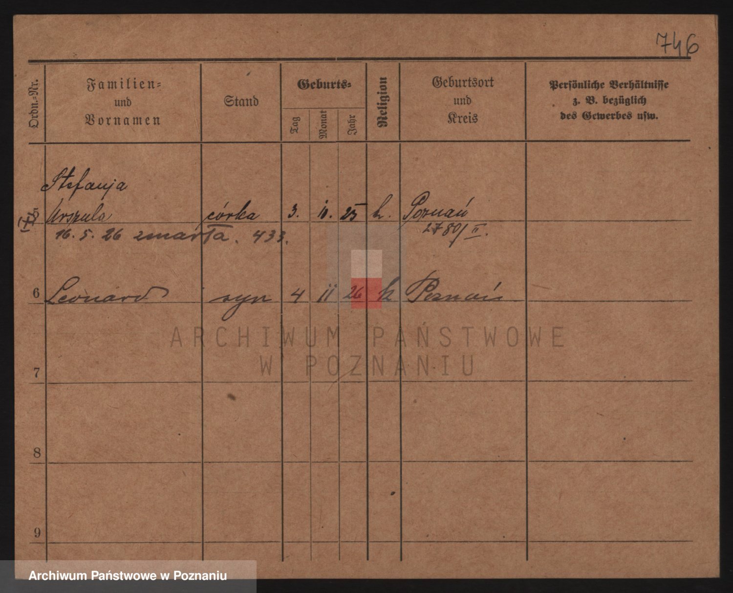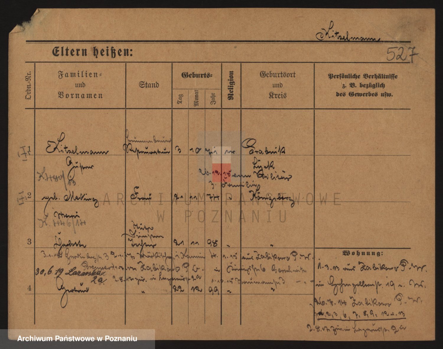 Podgląd karty osobowej dostępny jest po kliknięciu na nazwisko lub ikonkę karty. Można dokonywać powiększenia (ikony na górze) lub przechodzić między kolejnymi skanami (strzałki po bokach).