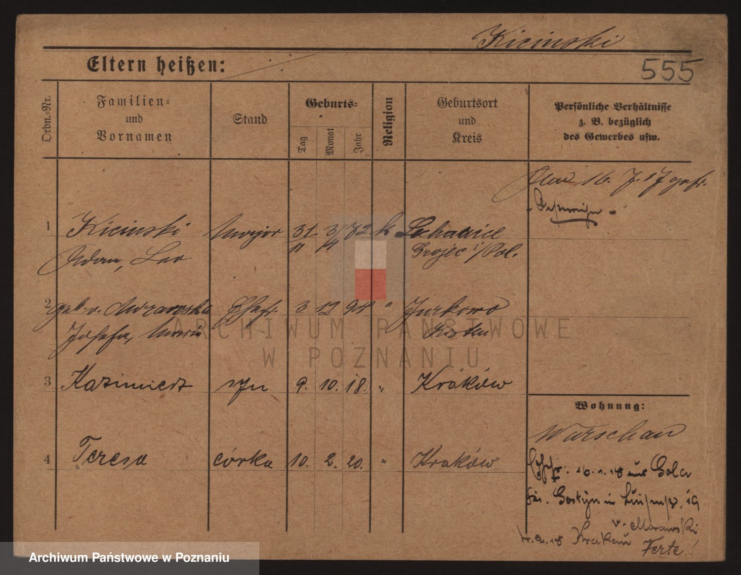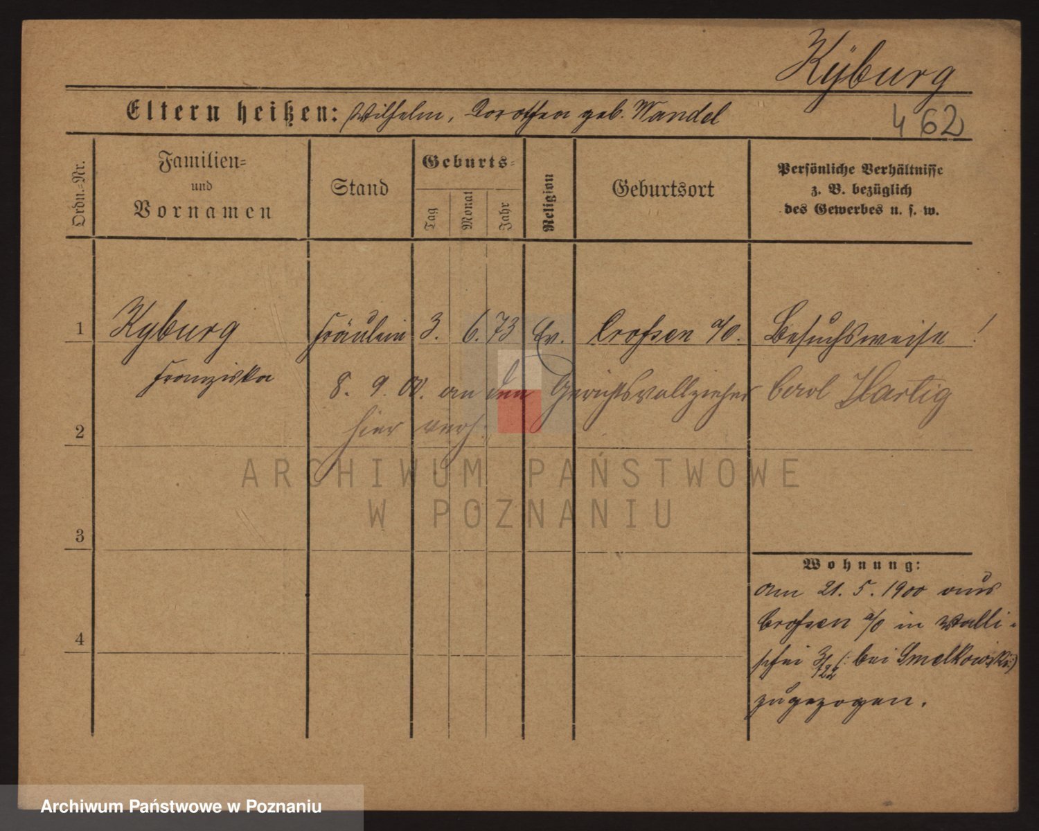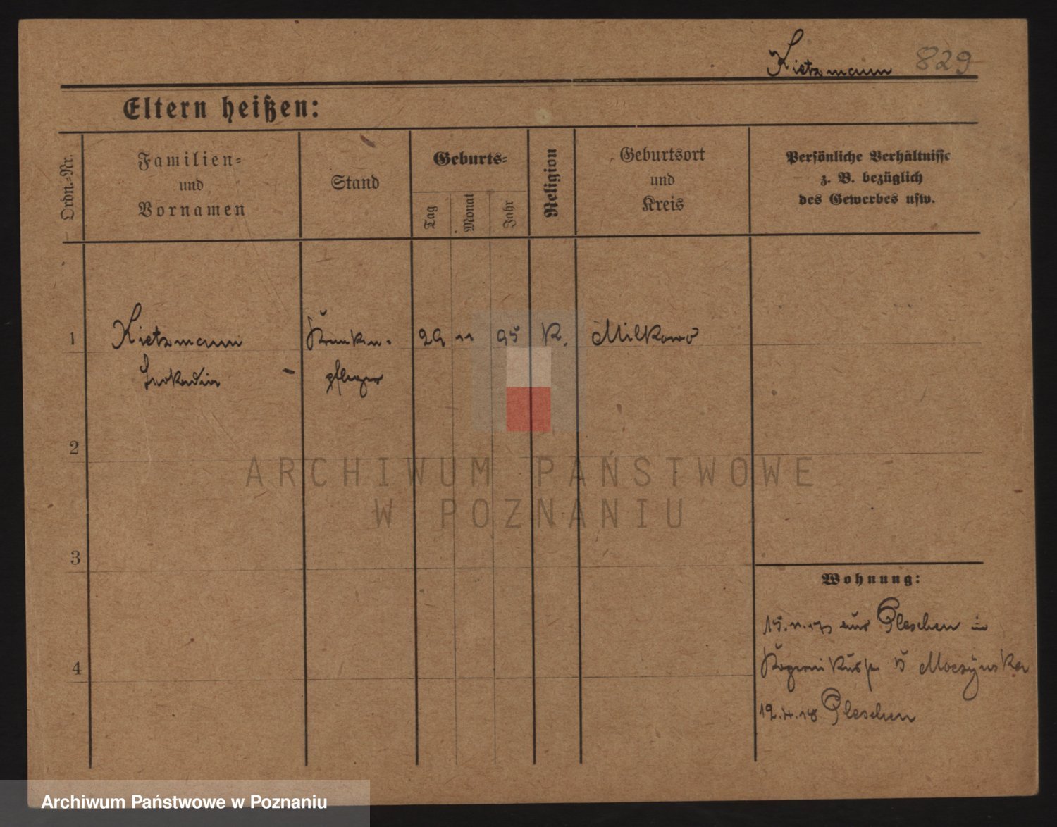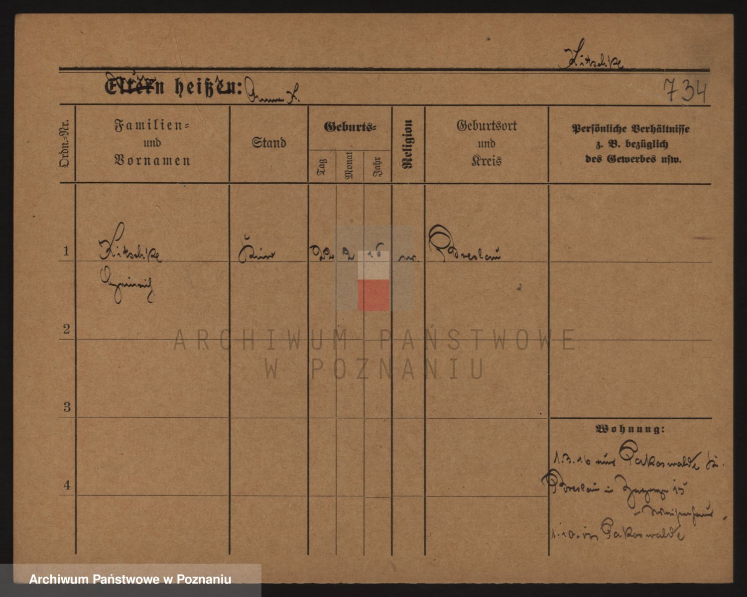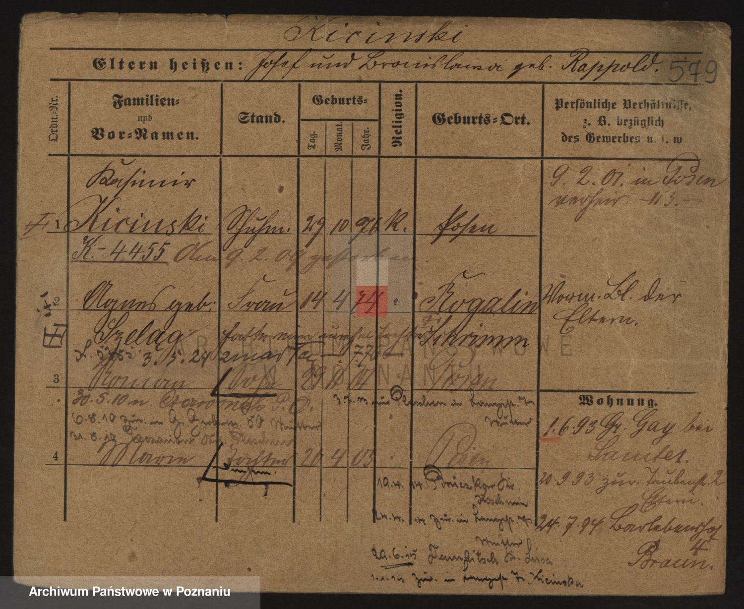 Podgląd karty osobowej dostępny jest po kliknięciu na nazwisko lub ikonkę karty. Można dokonywać powiększenia (ikony na górze) lub przechodzić między kolejnymi skanami (strzałki po bokach).