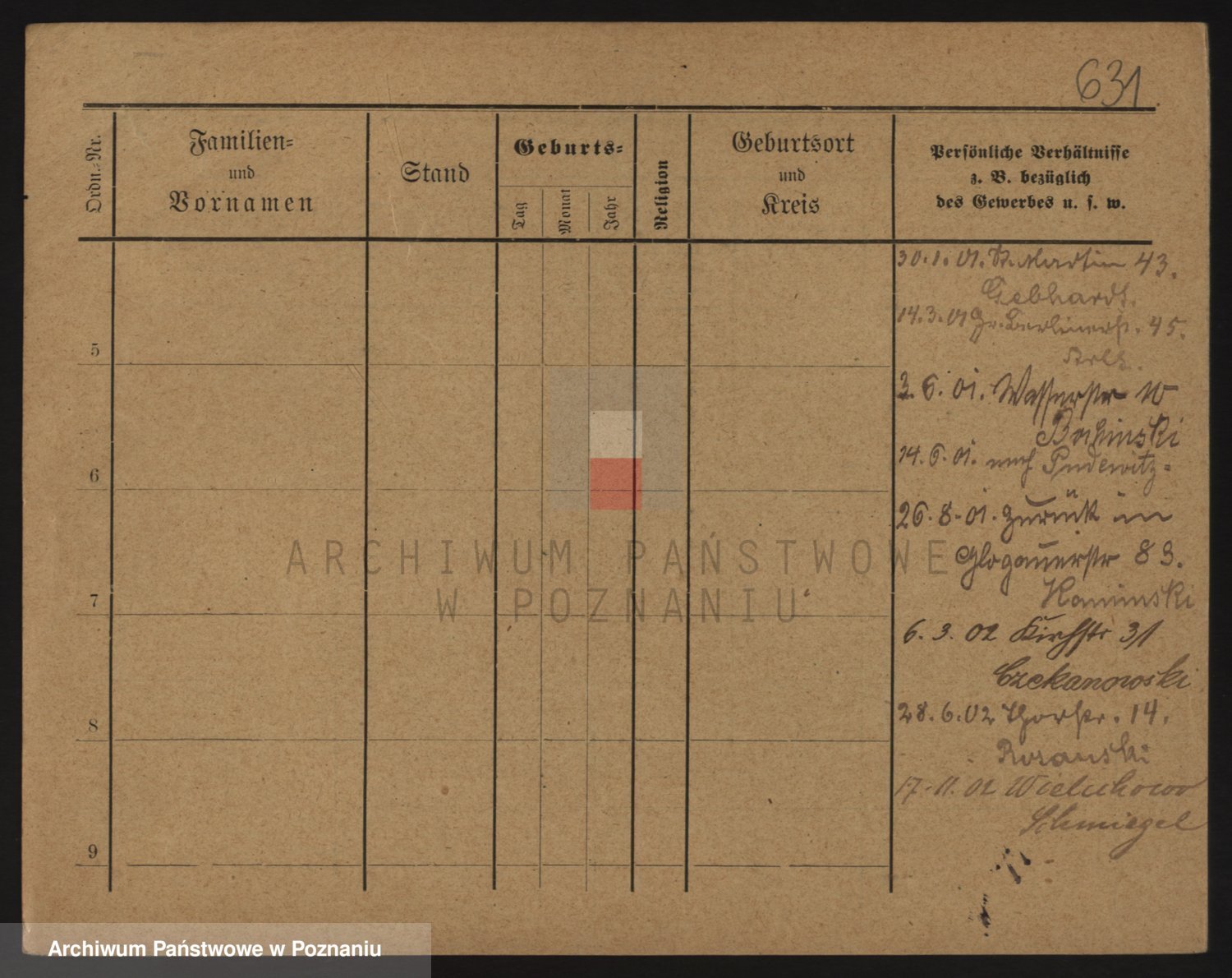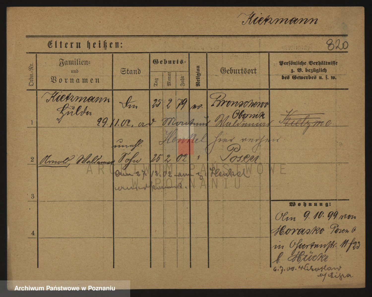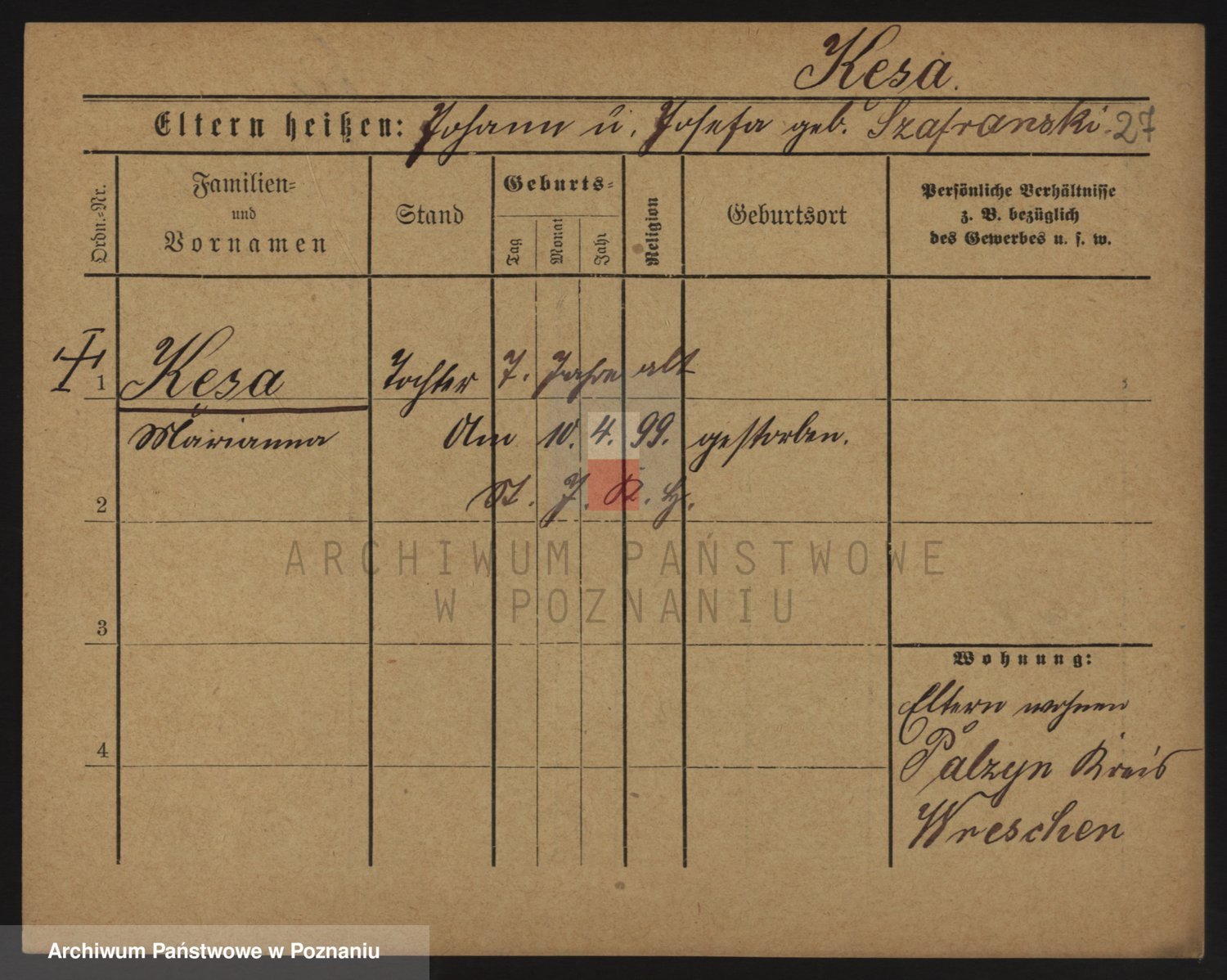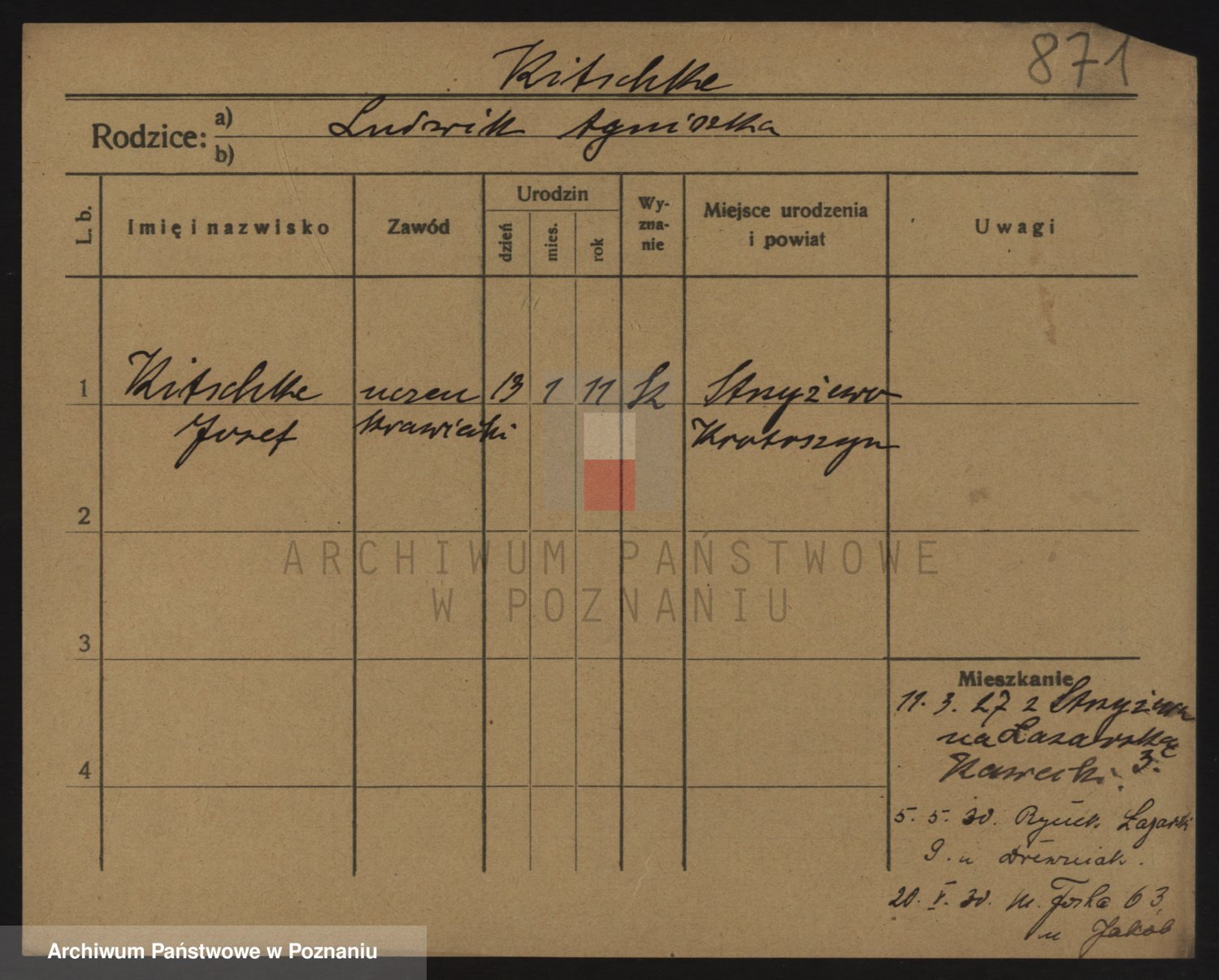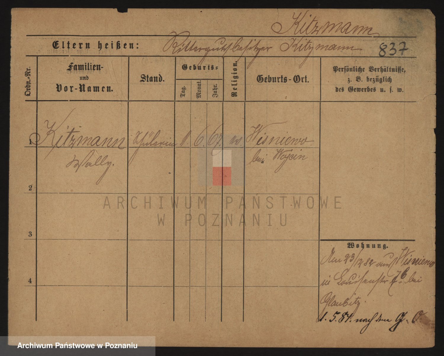 Podgląd karty osobowej dostępny jest po kliknięciu na nazwisko lub ikonkę karty. Można dokonywać powiększenia (ikony na górze) lub przechodzić między kolejnymi skanami (strzałki po bokach).