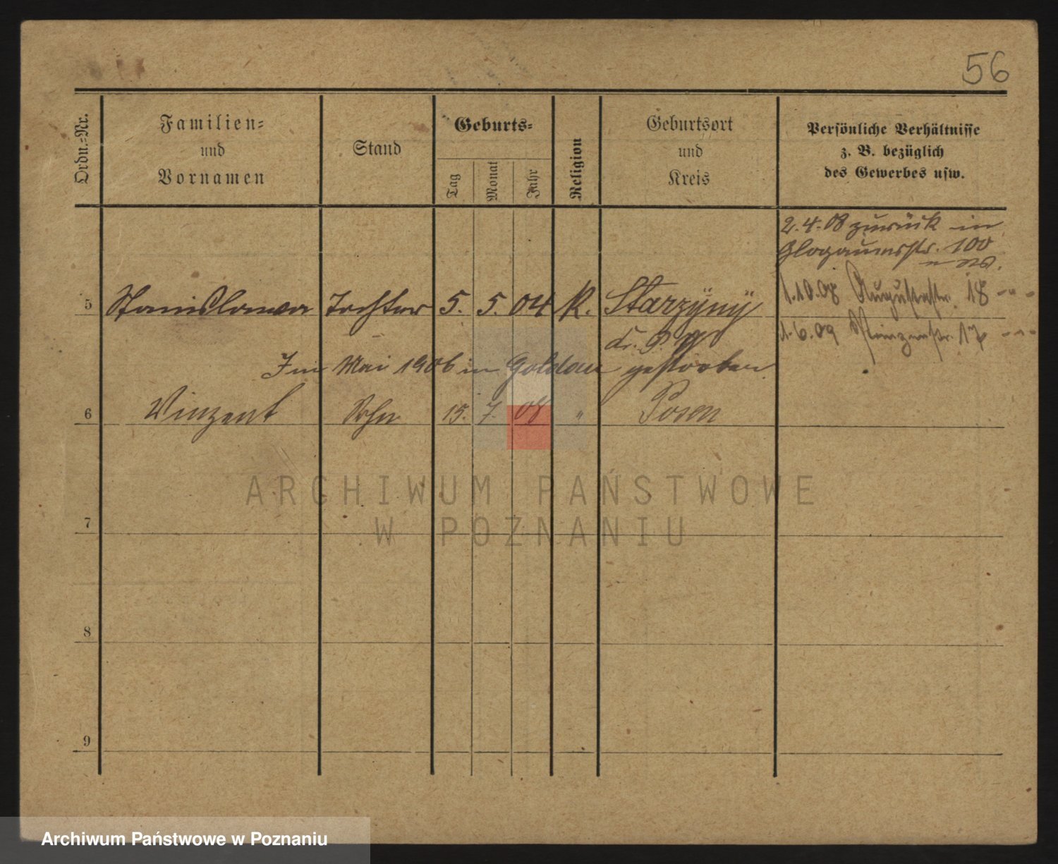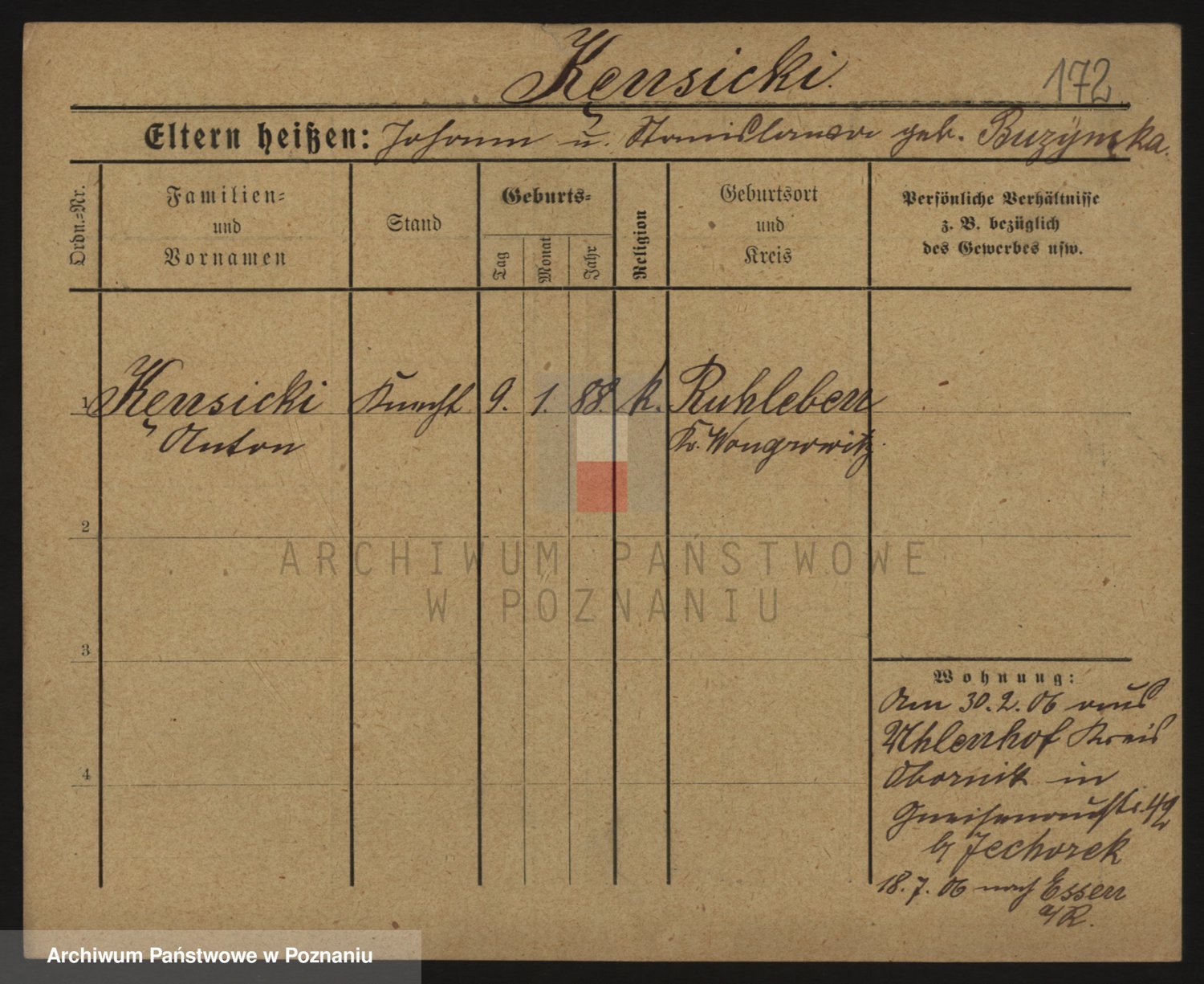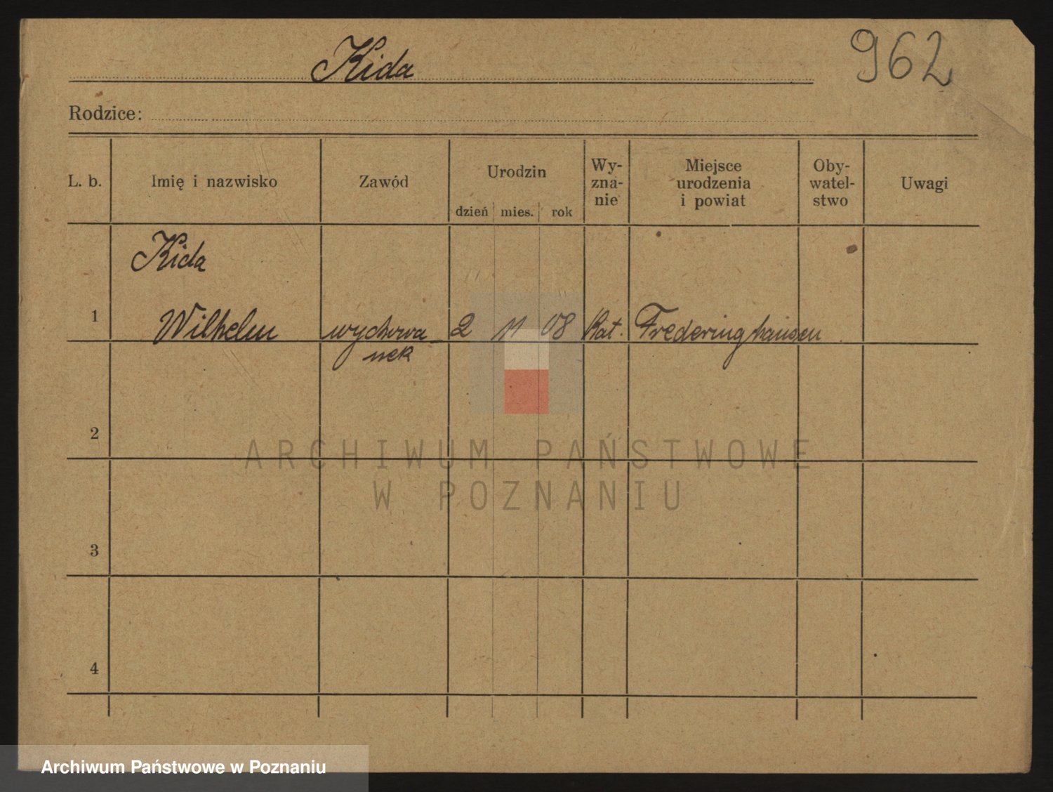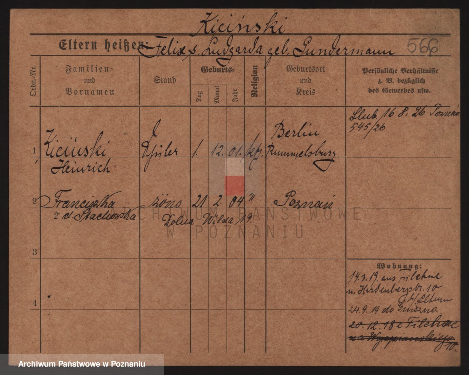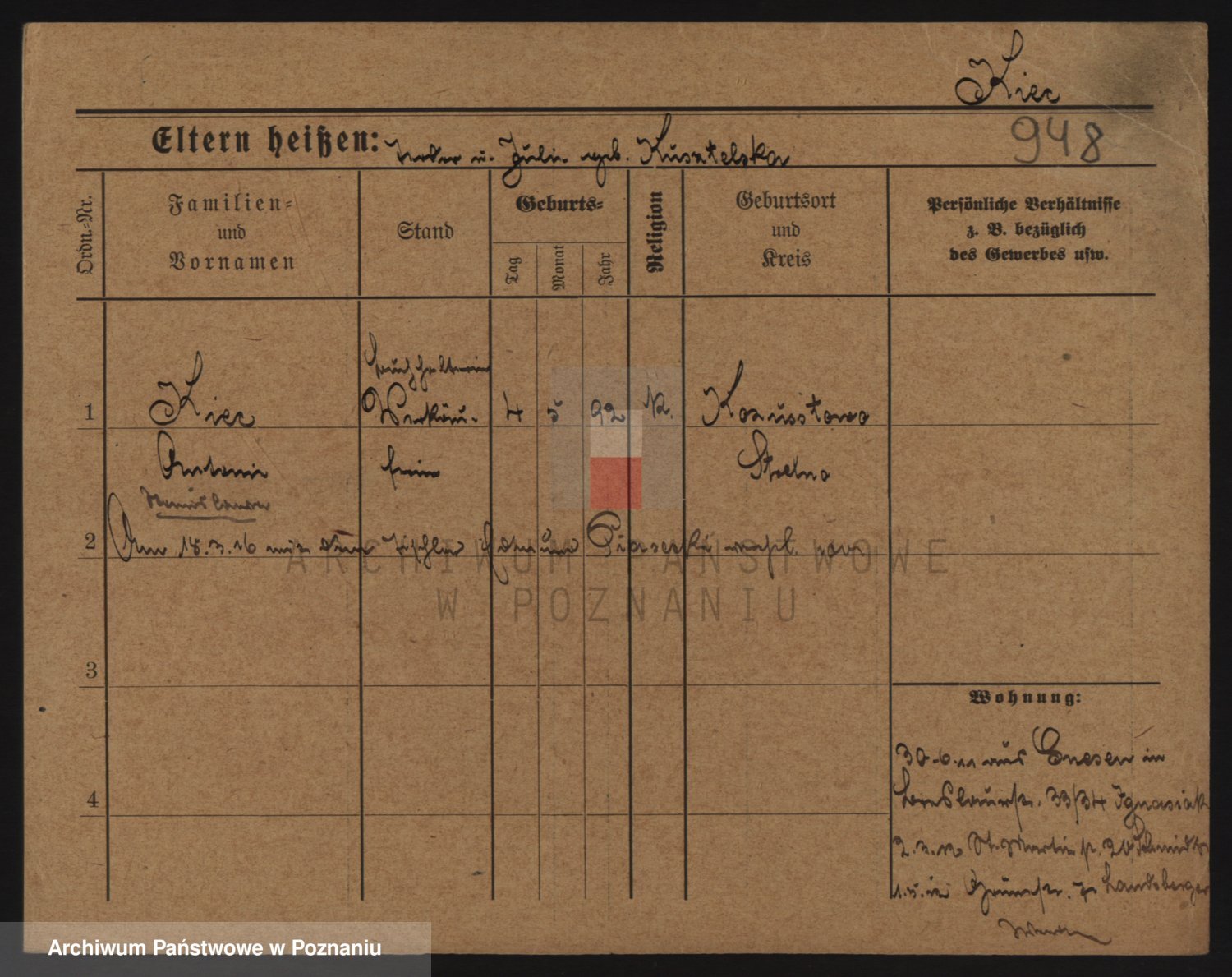 Podgląd karty osobowej dostępny jest po kliknięciu na nazwisko lub ikonkę karty. Można dokonywać powiększenia (ikony na górze) lub przechodzić między kolejnymi skanami (strzałki po bokach).