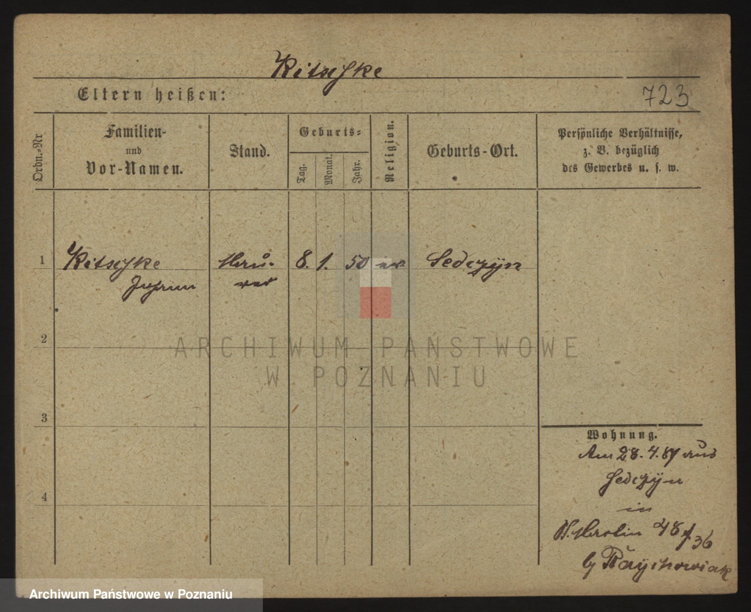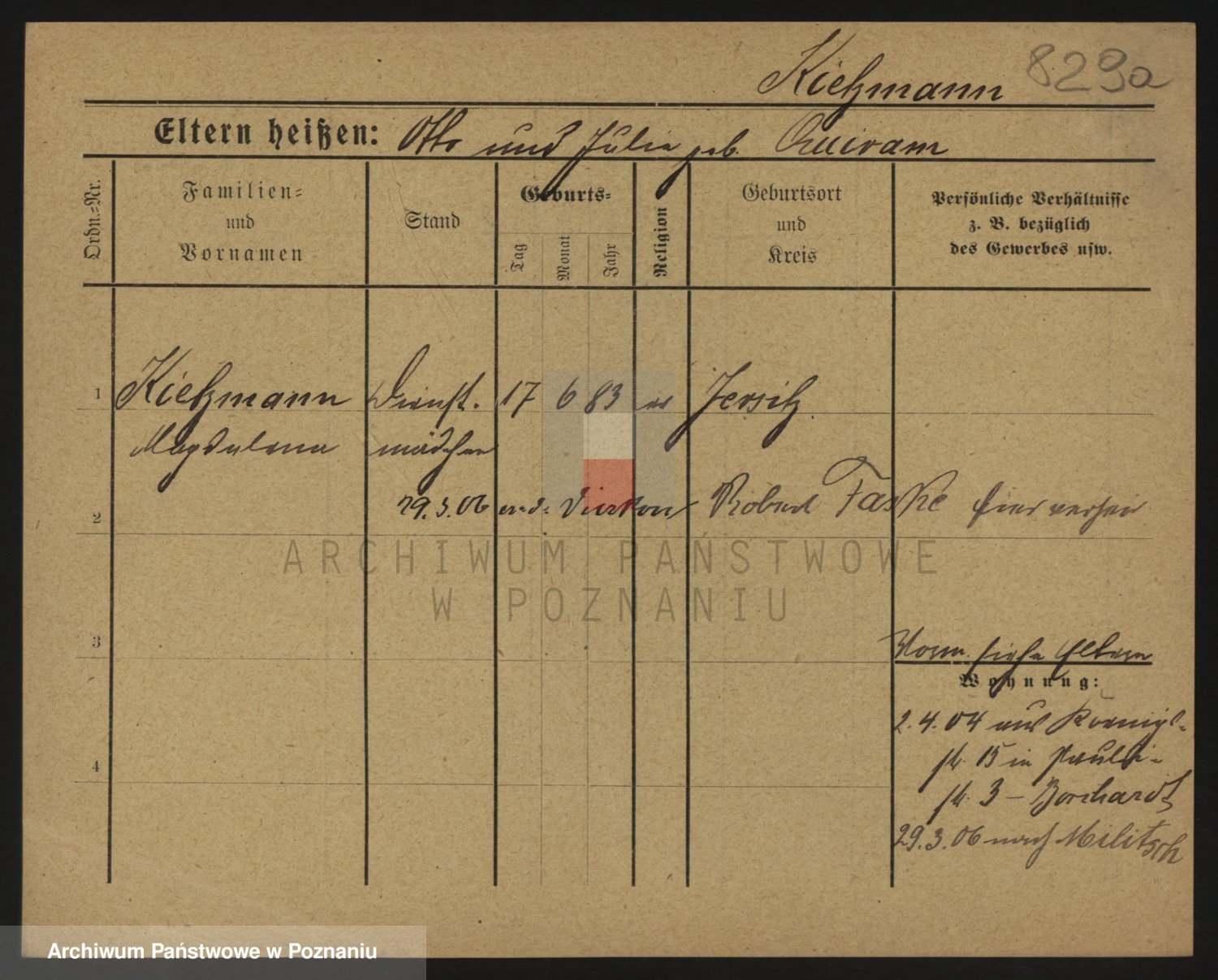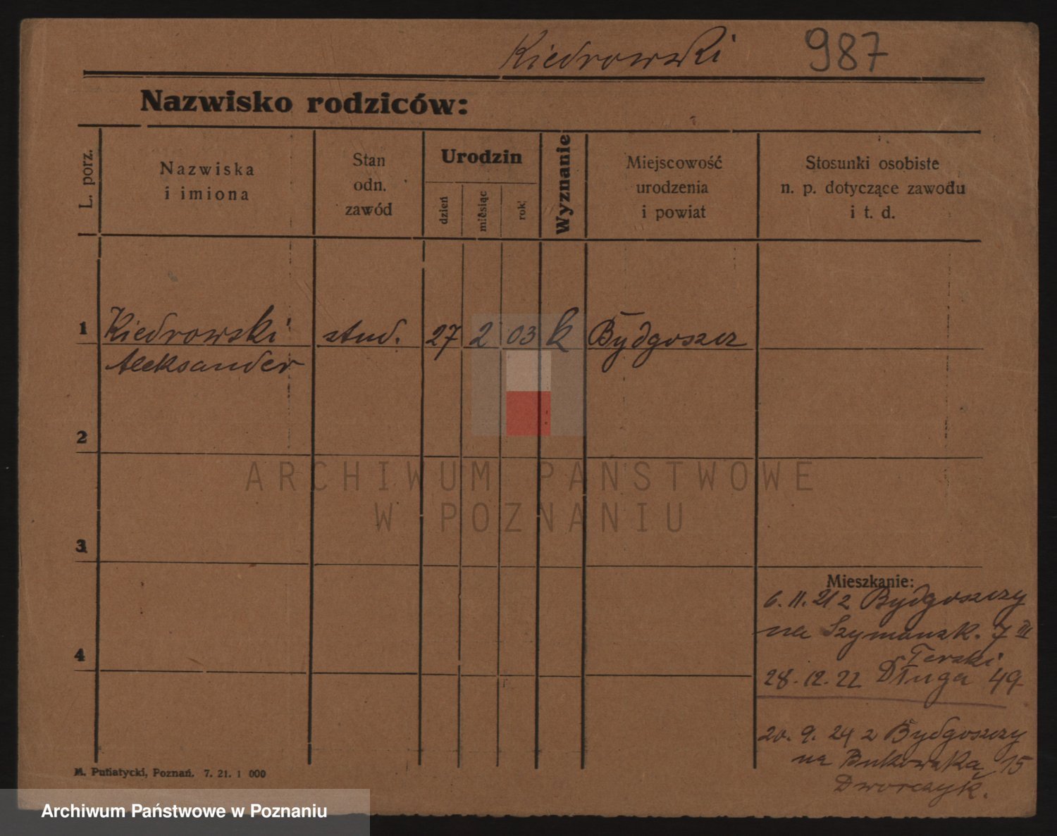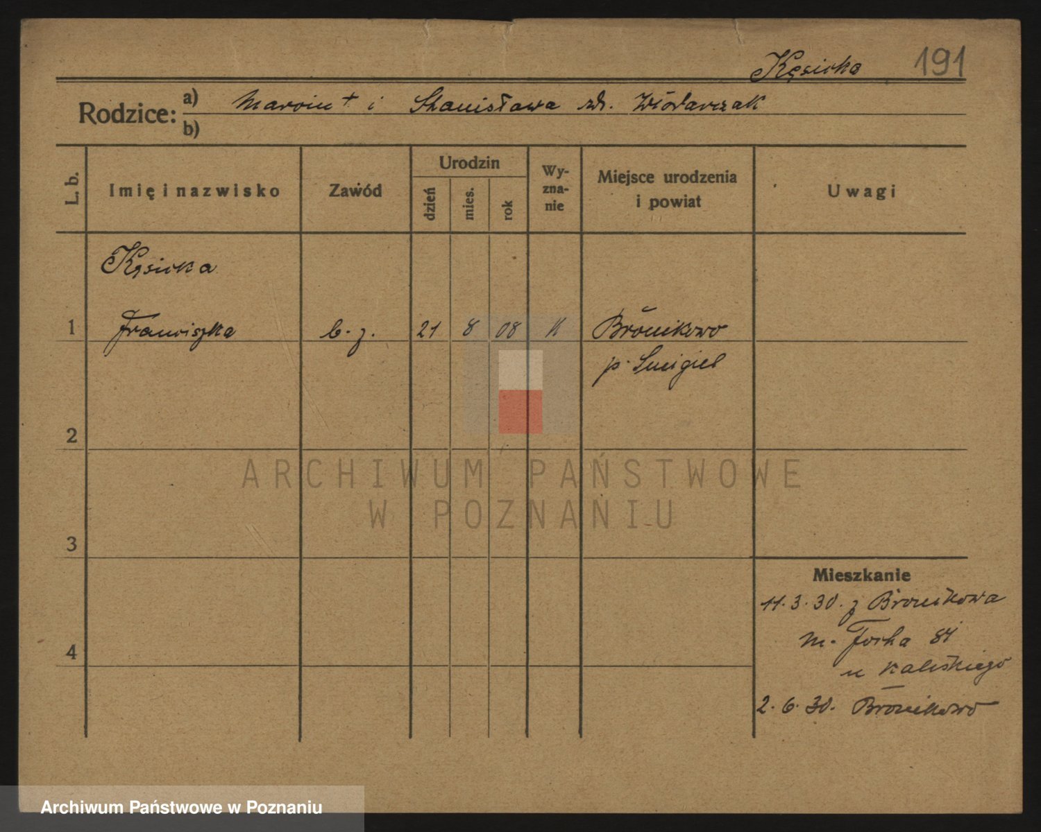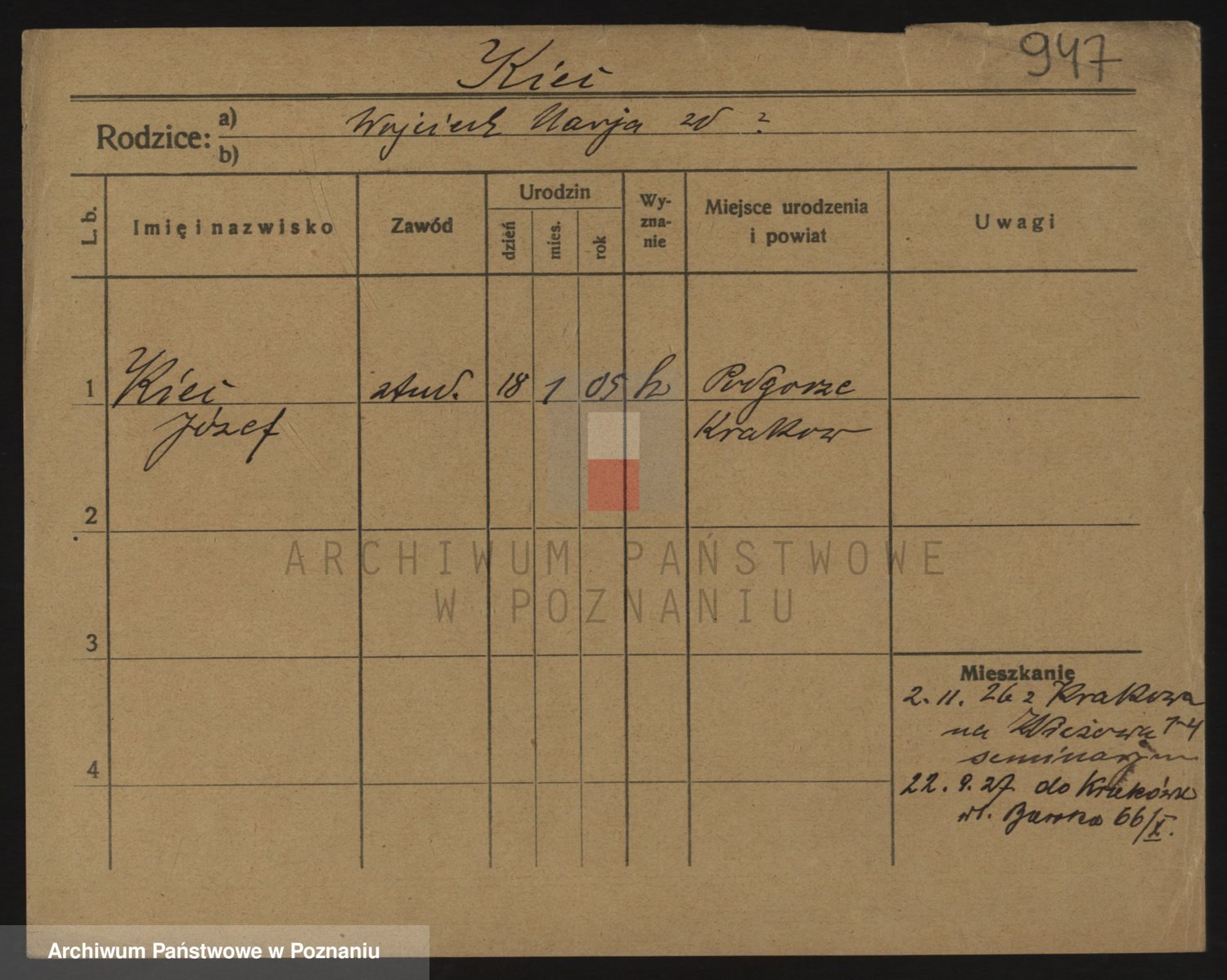 Podgląd karty osobowej dostępny jest po kliknięciu na nazwisko lub ikonkę karty. Można dokonywać powiększenia (ikony na górze) lub przechodzić między kolejnymi skanami (strzałki po bokach).