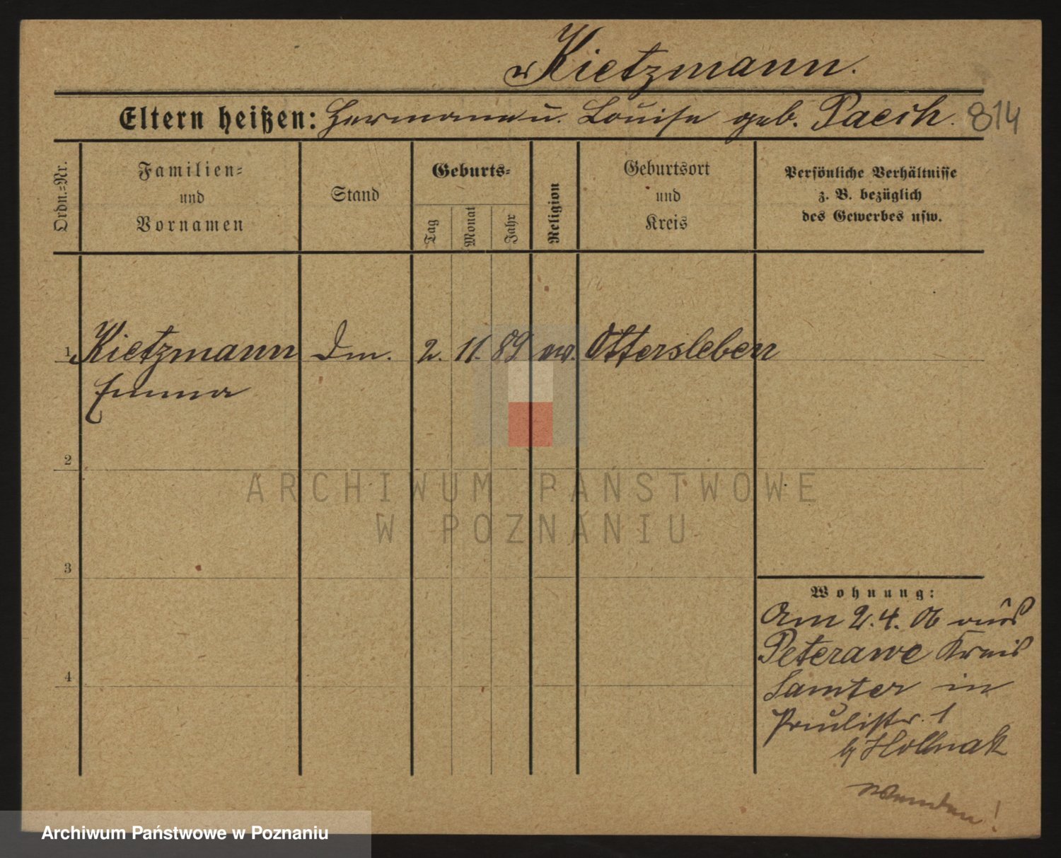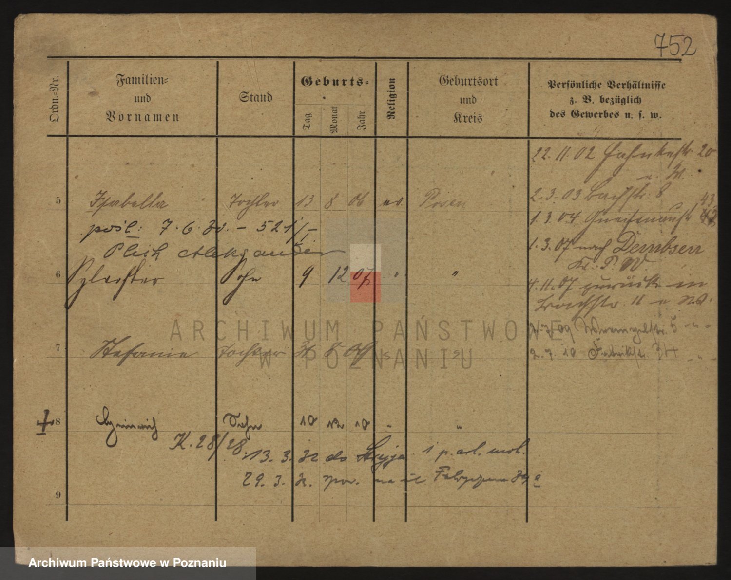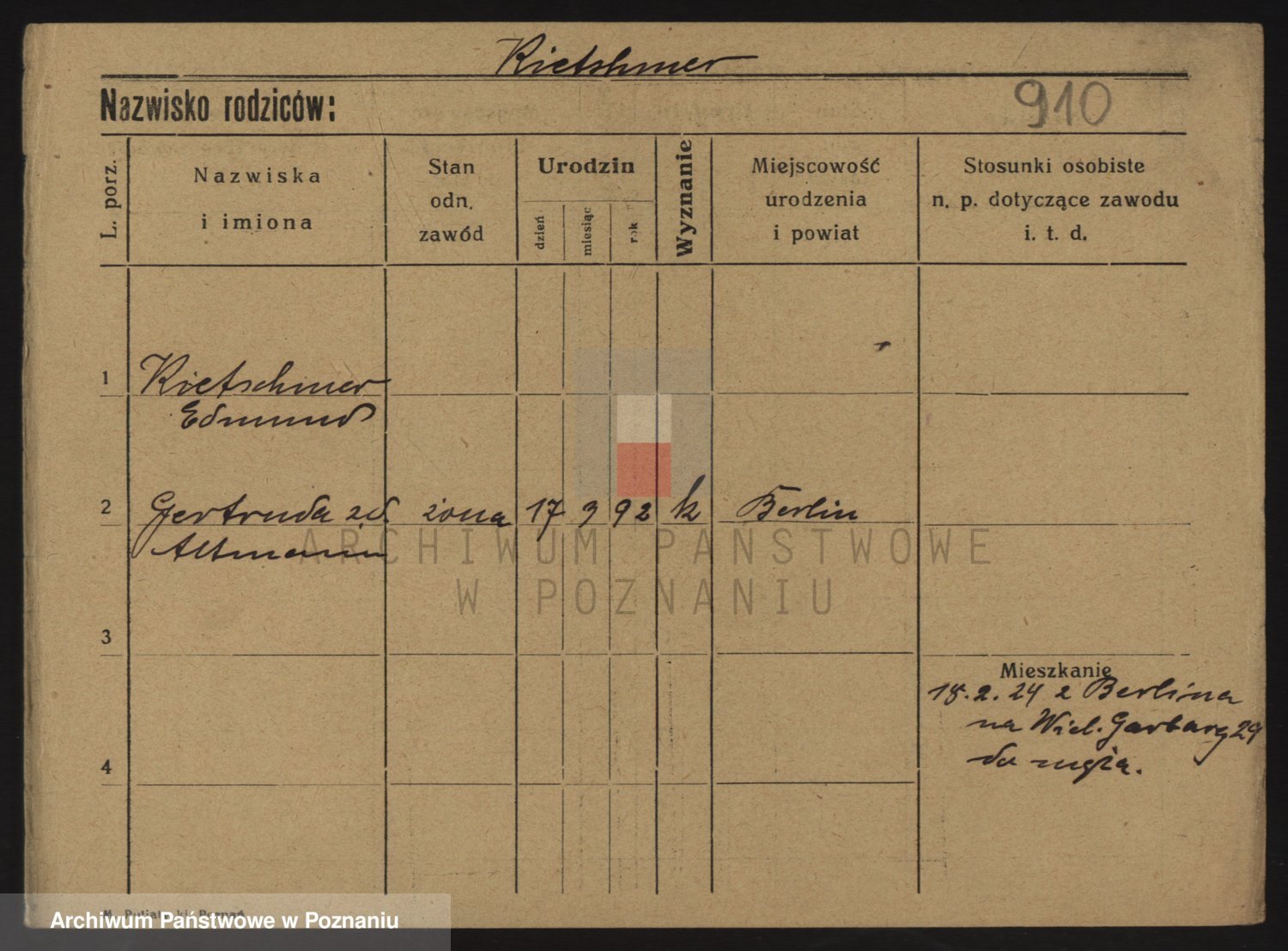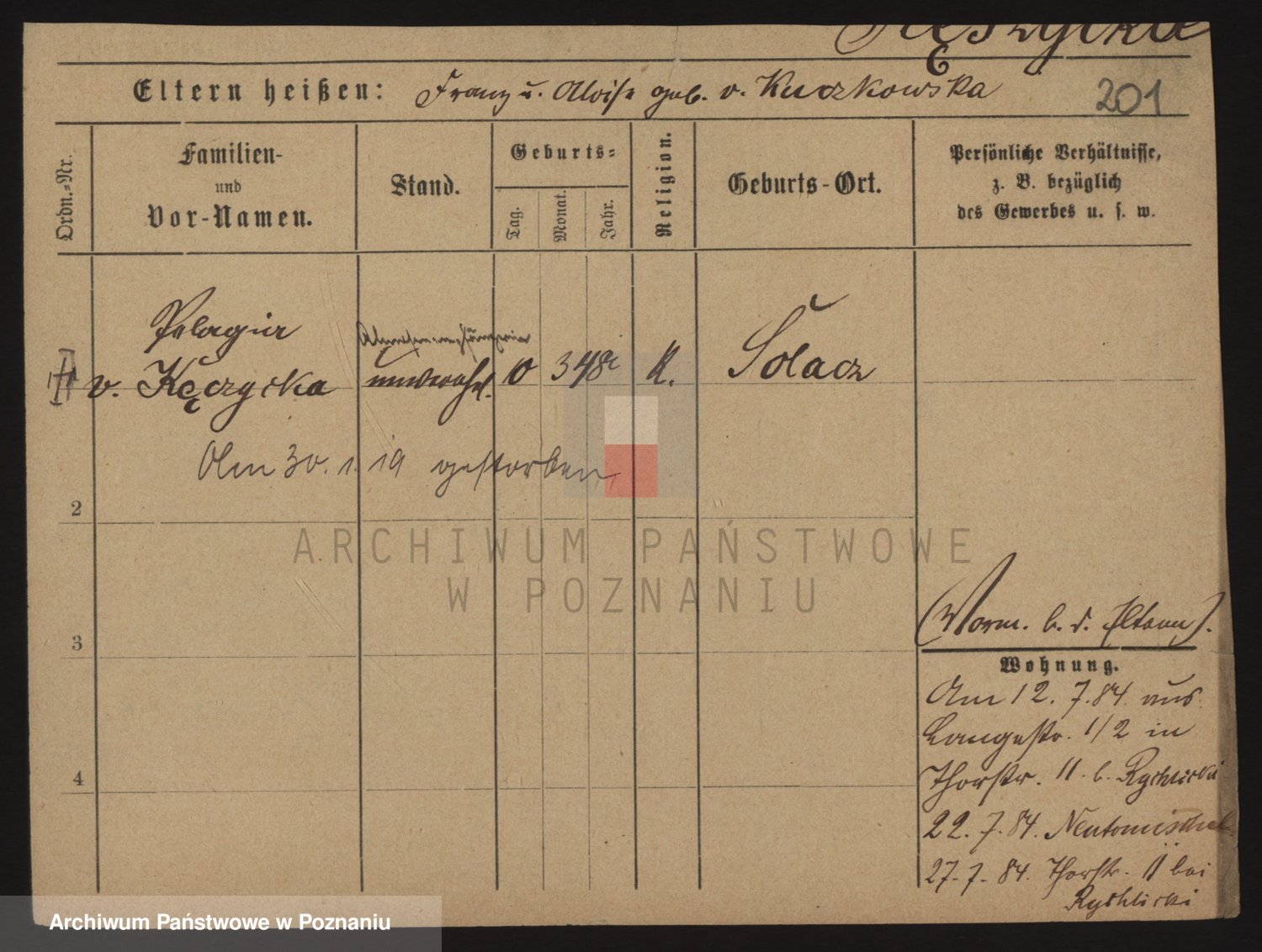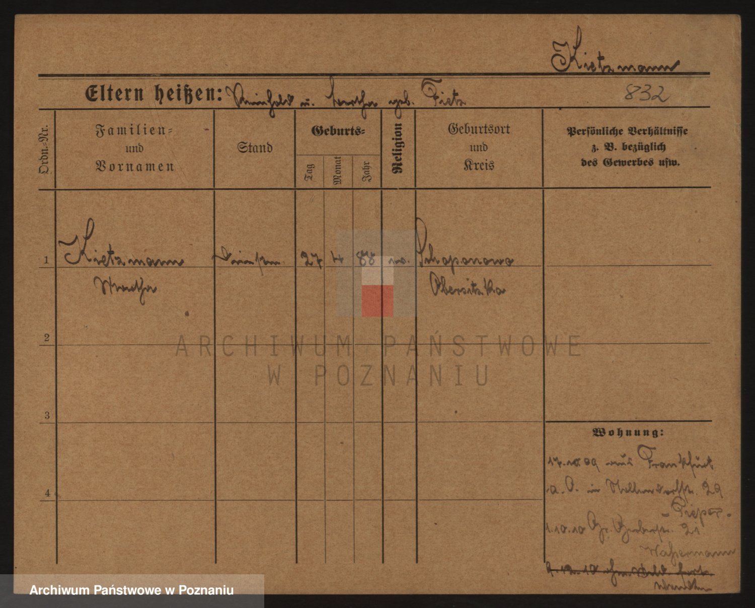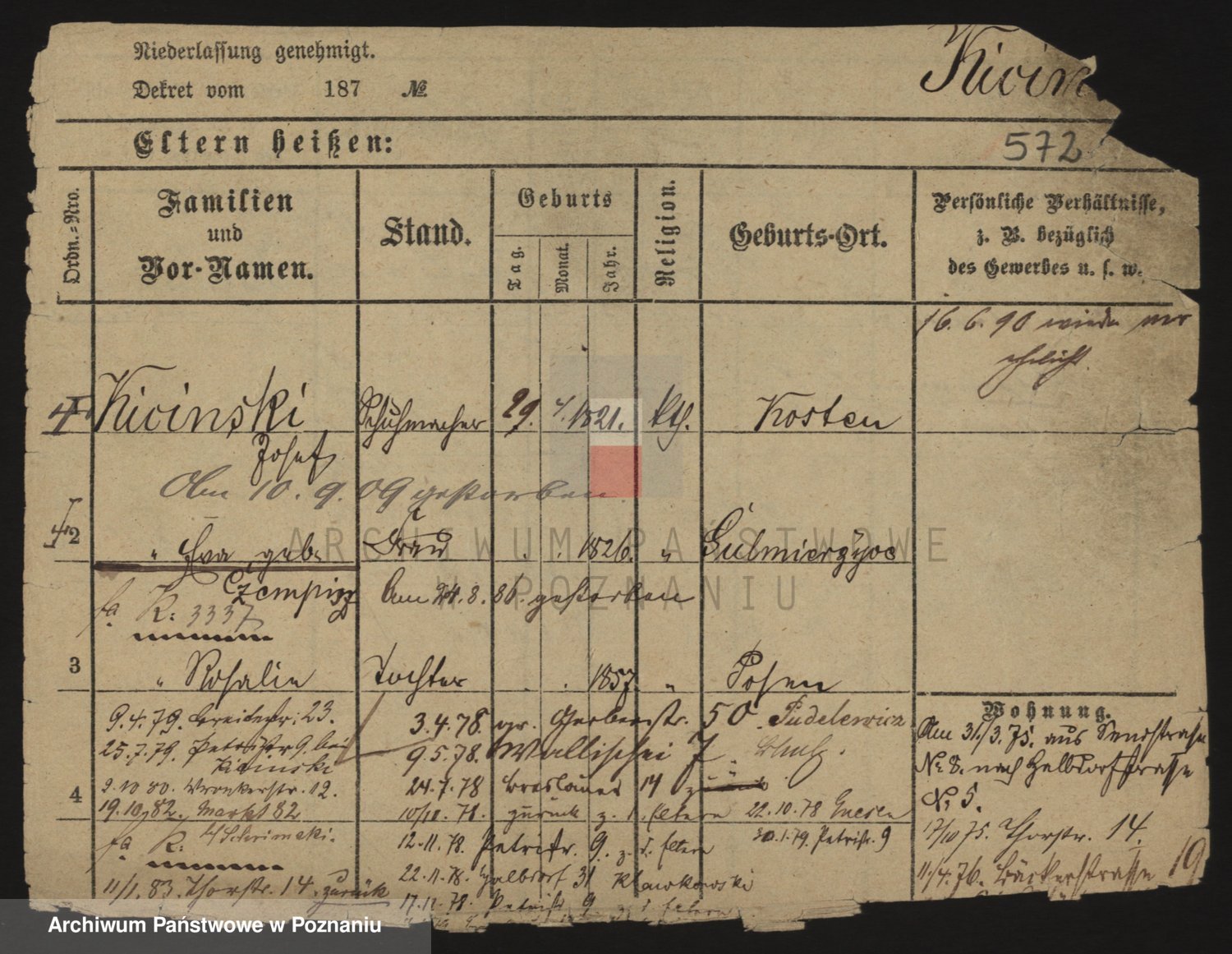 Podgląd karty osobowej dostępny jest po kliknięciu na nazwisko lub ikonkę karty. Można dokonywać powiększenia (ikony na górze) lub przechodzić między kolejnymi skanami (strzałki po bokach).