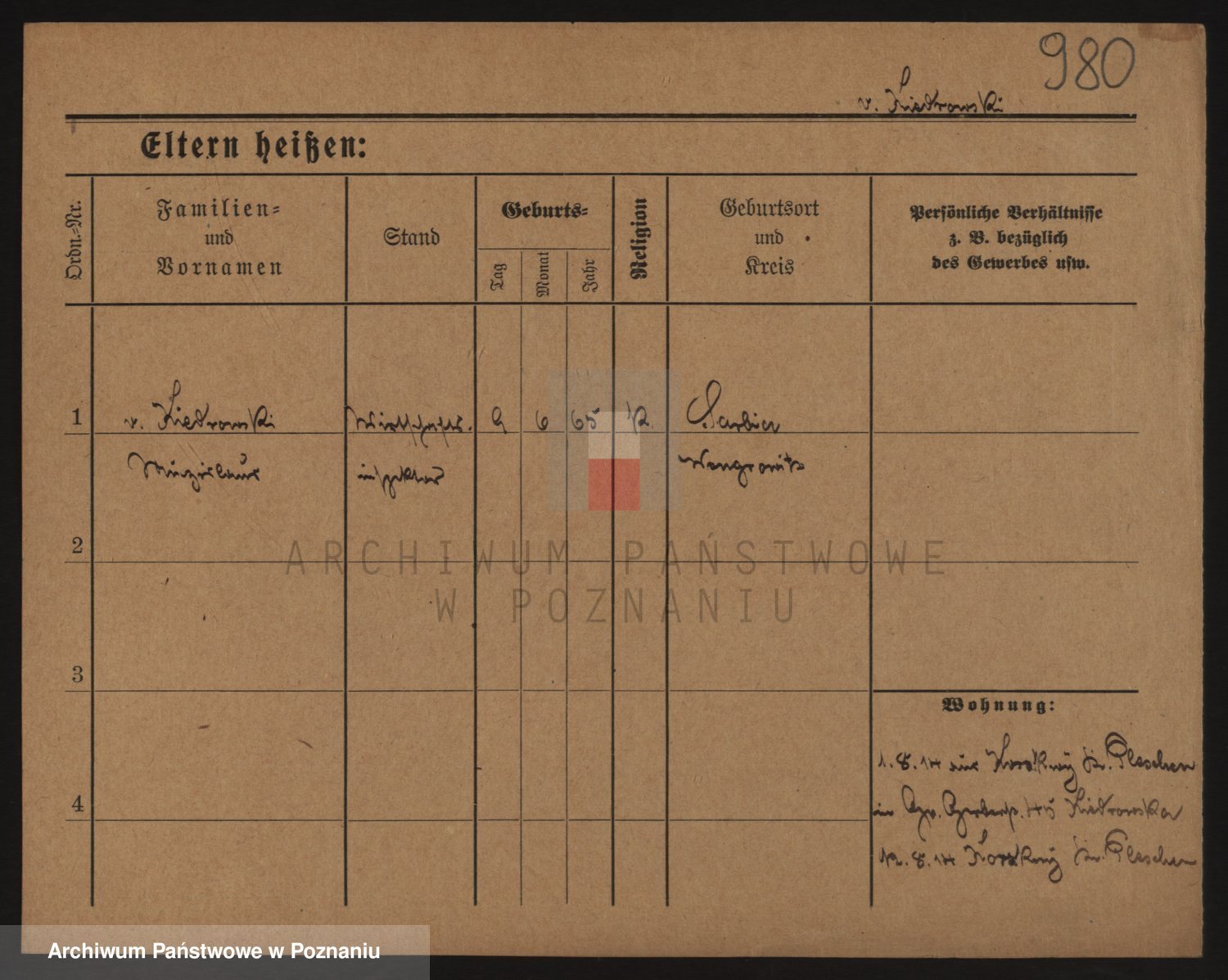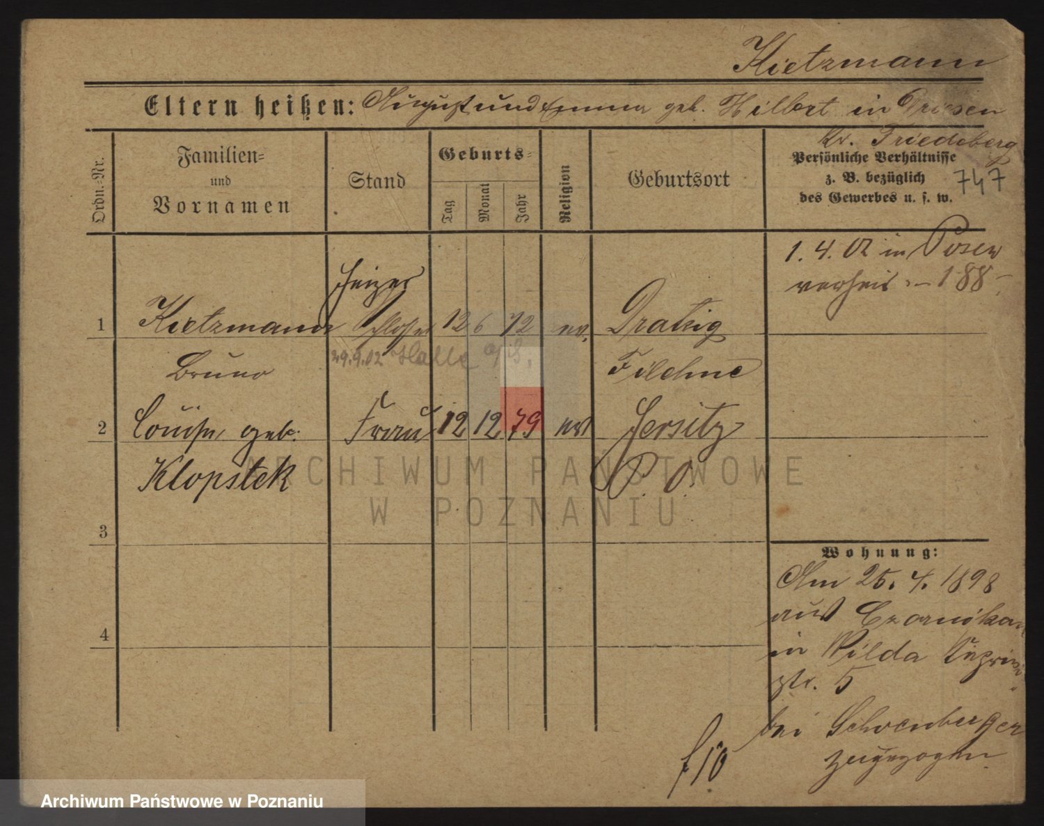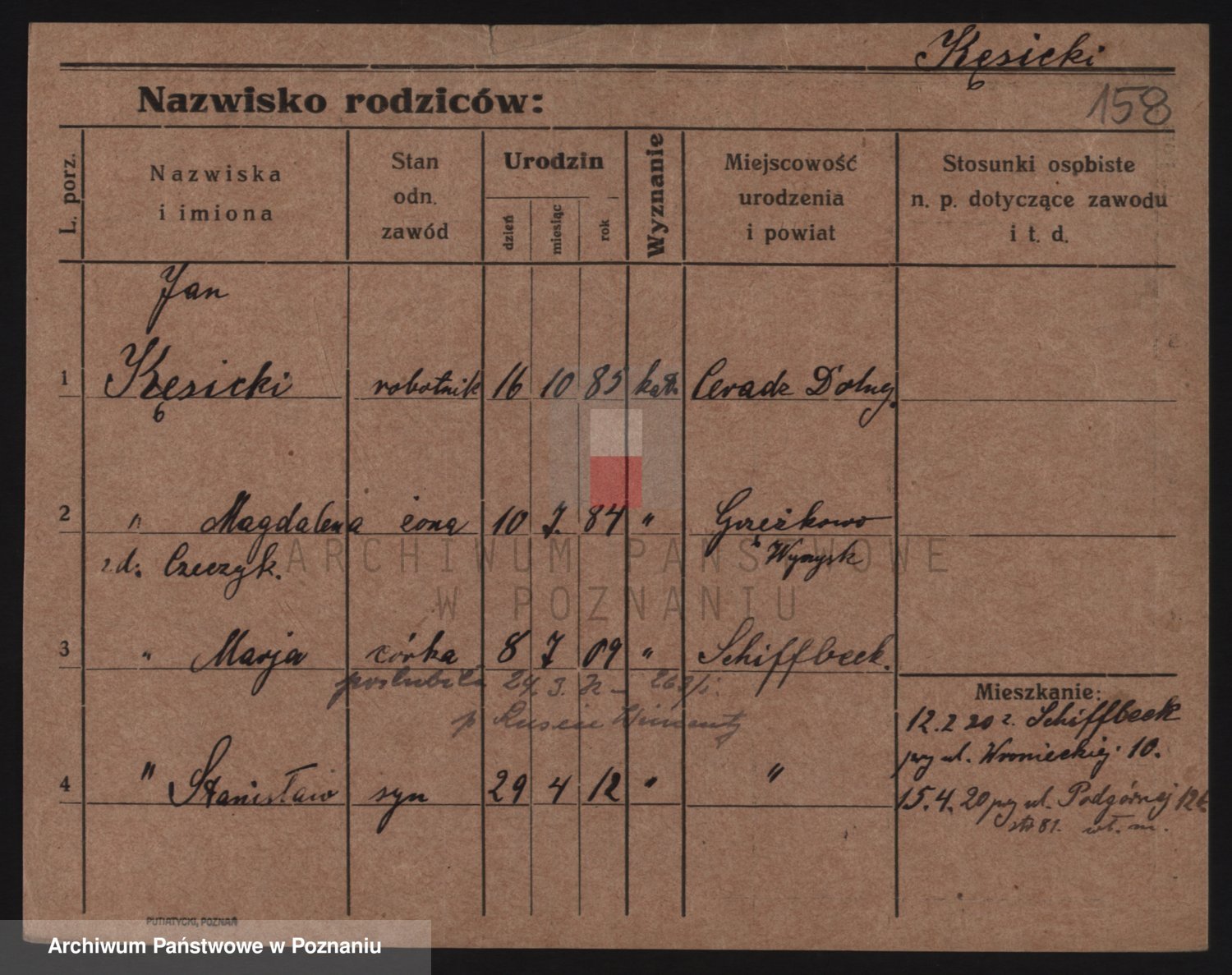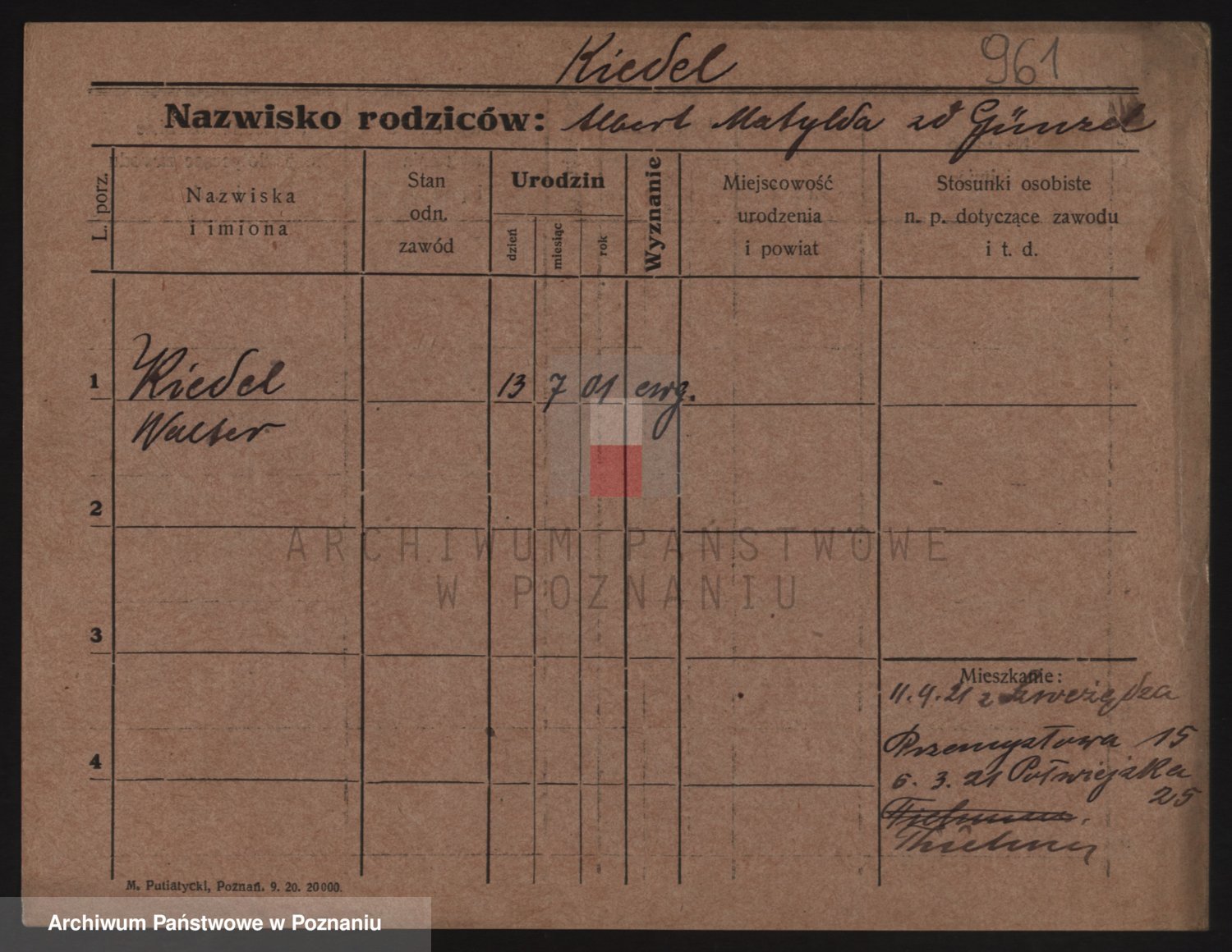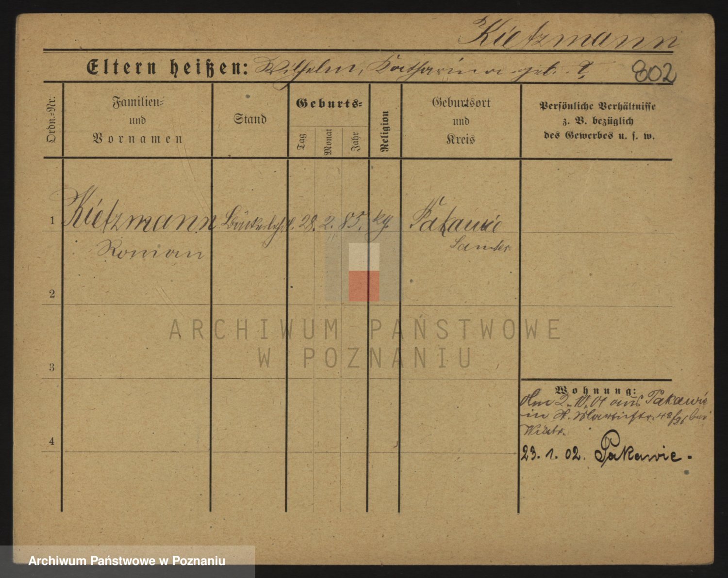 Podgląd karty osobowej dostępny jest po kliknięciu na nazwisko lub ikonkę karty. Można dokonywać powiększenia (ikony na górze) lub przechodzić między kolejnymi skanami (strzałki po bokach).