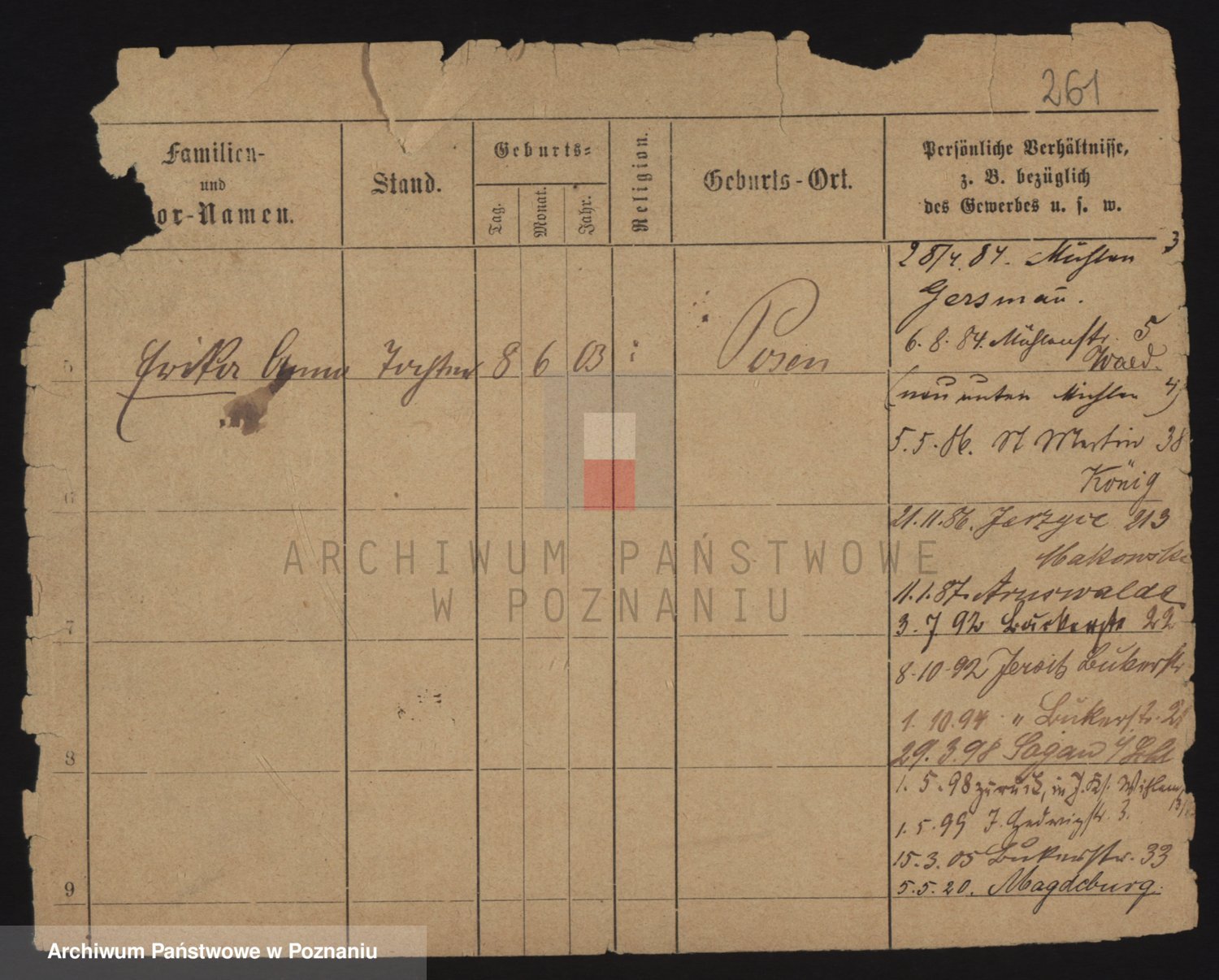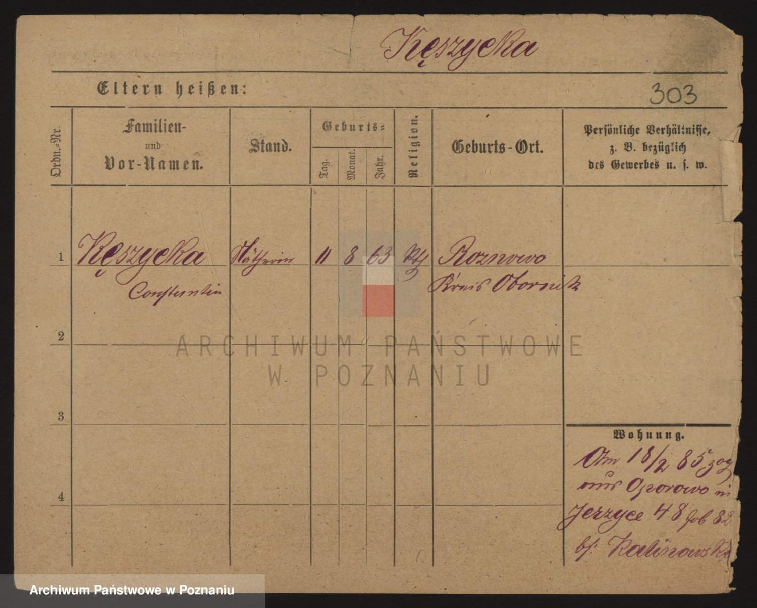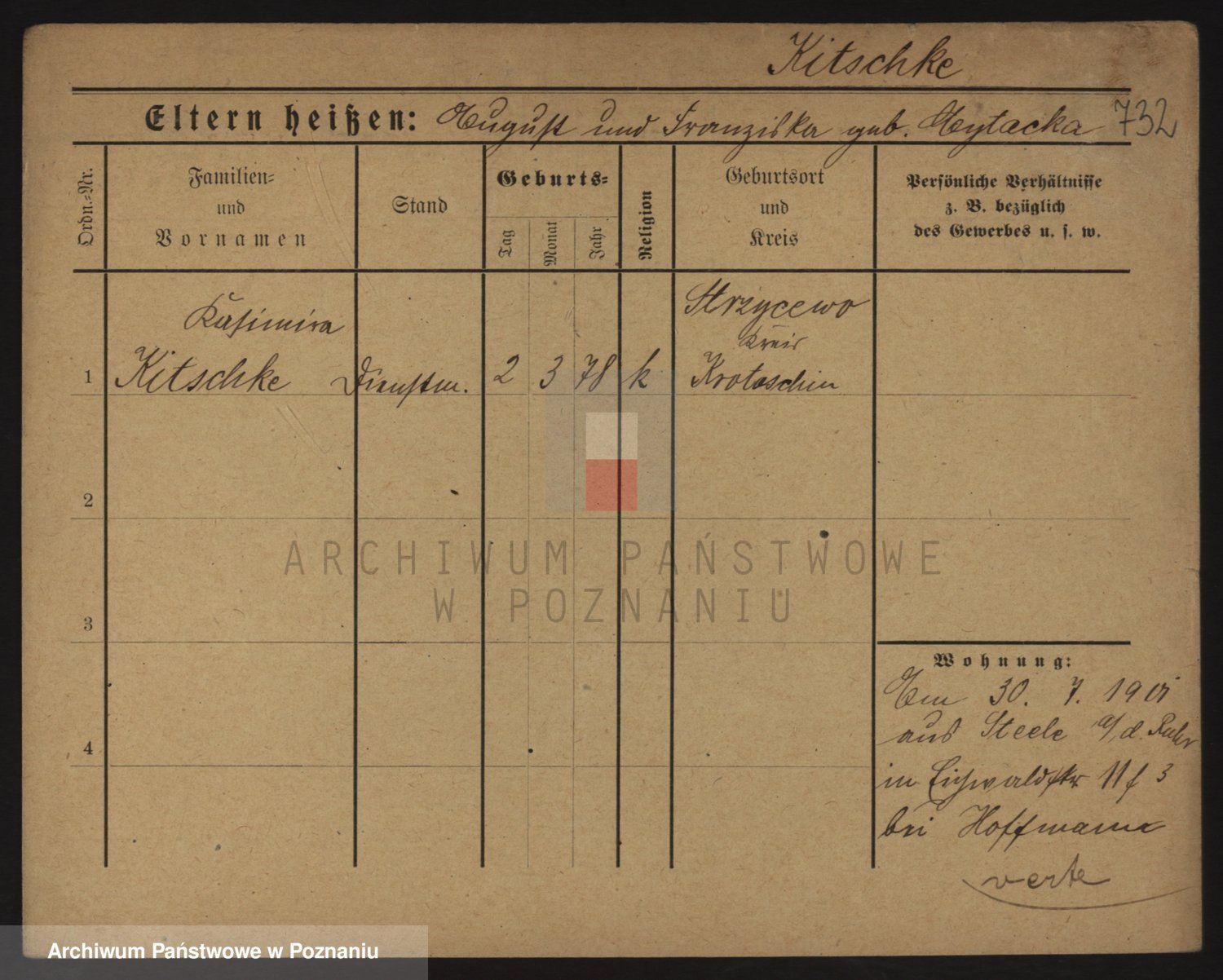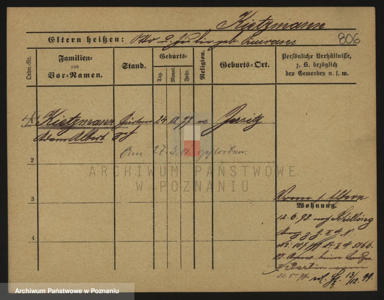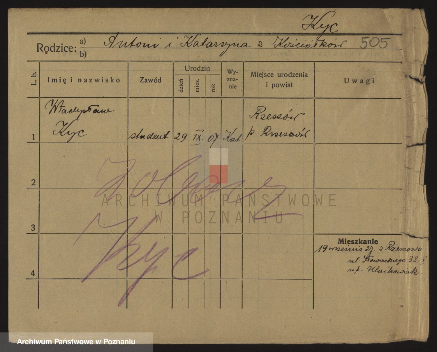 Podgląd karty osobowej dostępny jest po kliknięciu na nazwisko lub ikonkę karty. Można dokonywać powiększenia (ikony na górze) lub przechodzić między kolejnymi skanami (strzałki po bokach).