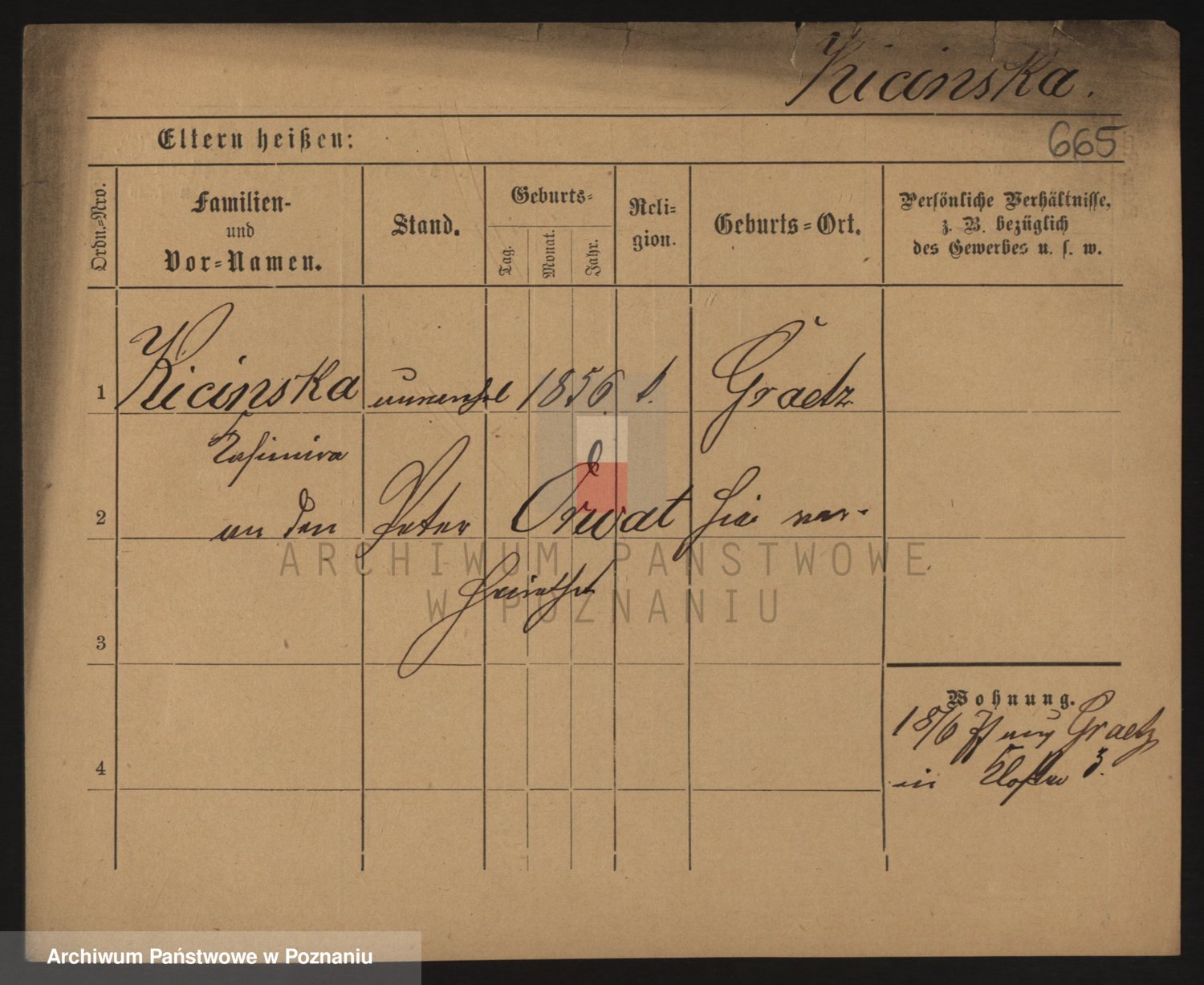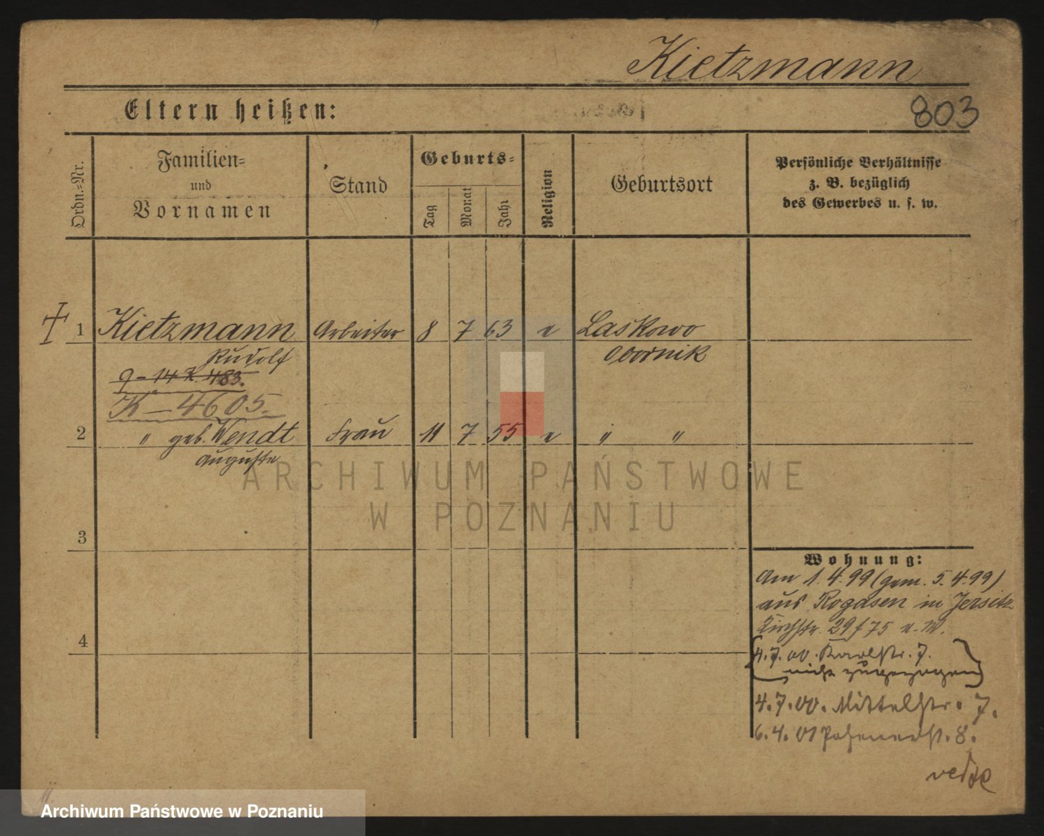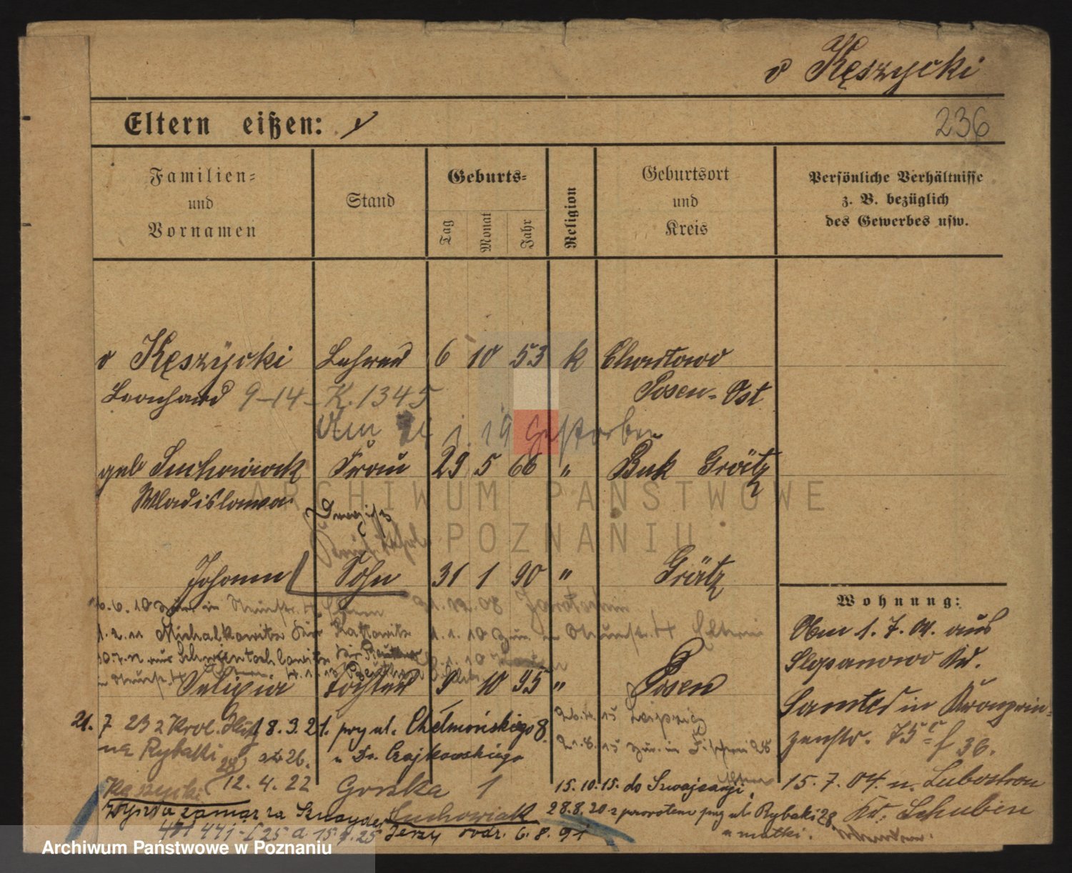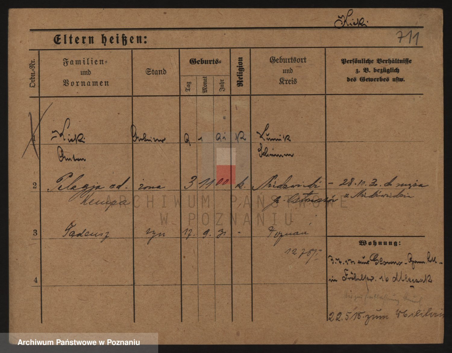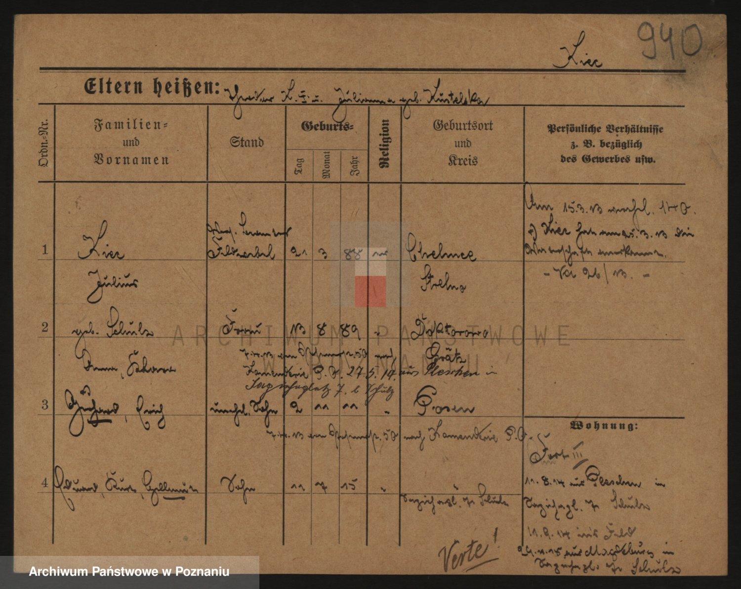 Podgląd karty osobowej dostępny jest po kliknięciu na nazwisko lub ikonkę karty. Można dokonywać powiększenia (ikony na górze) lub przechodzić między kolejnymi skanami (strzałki po bokach).