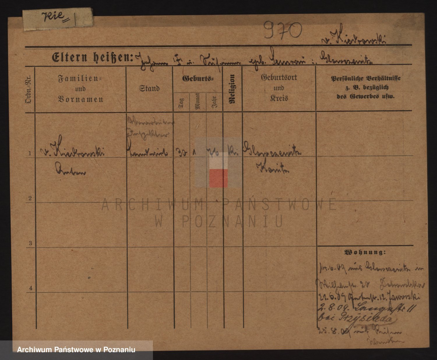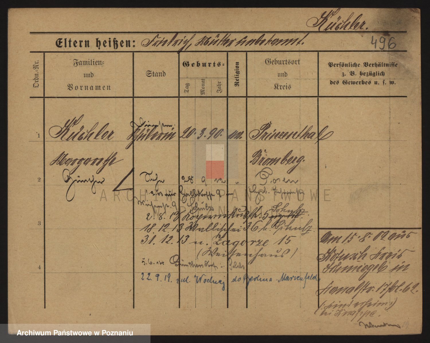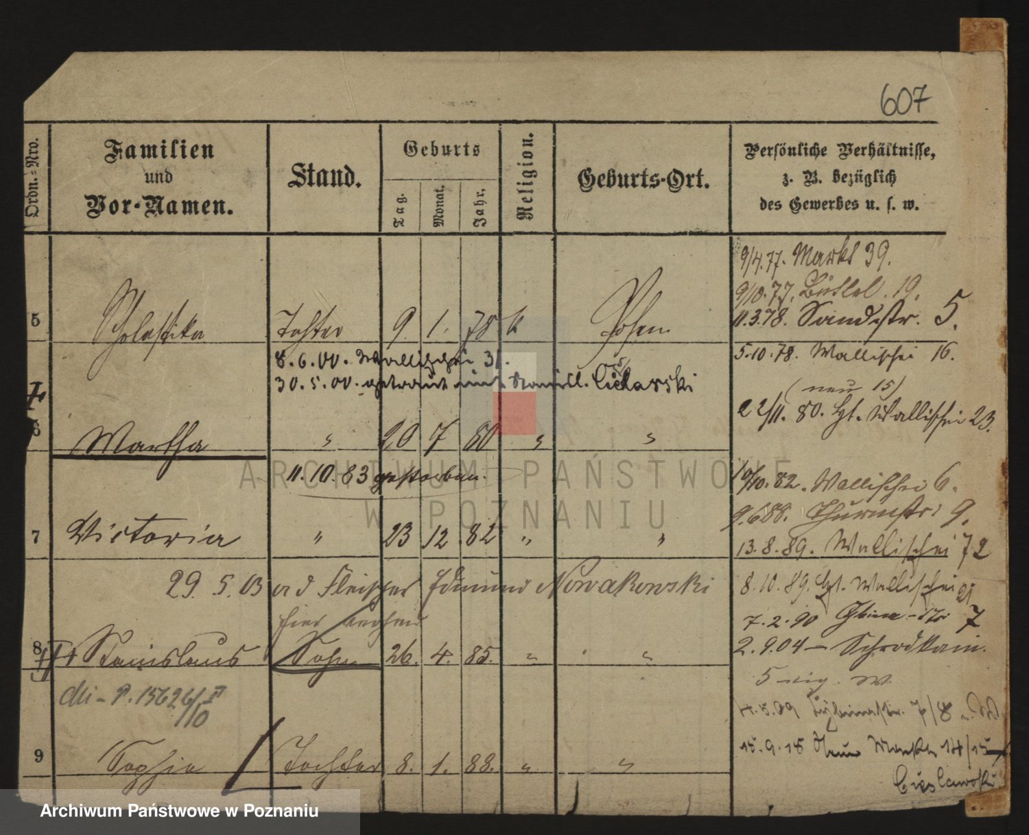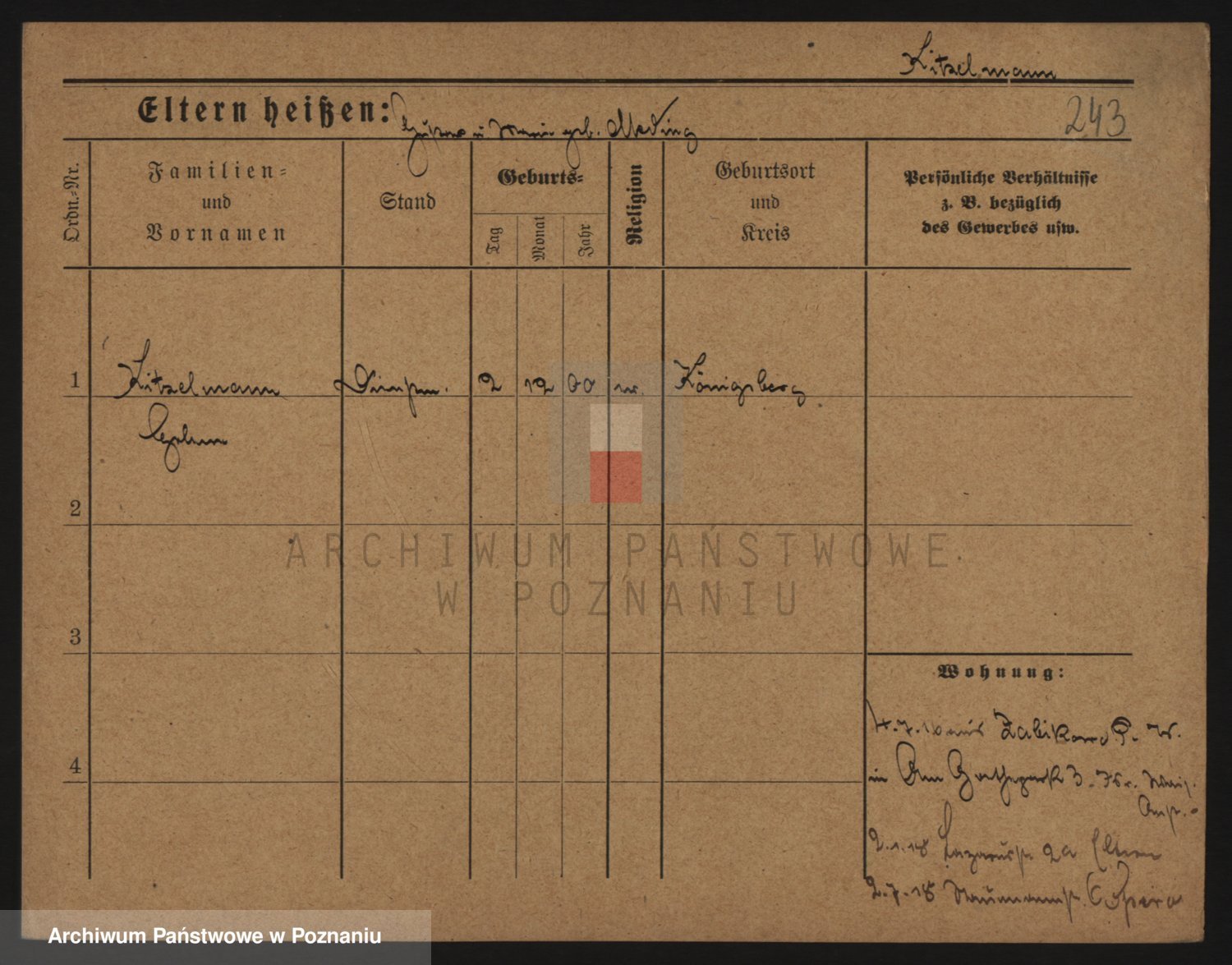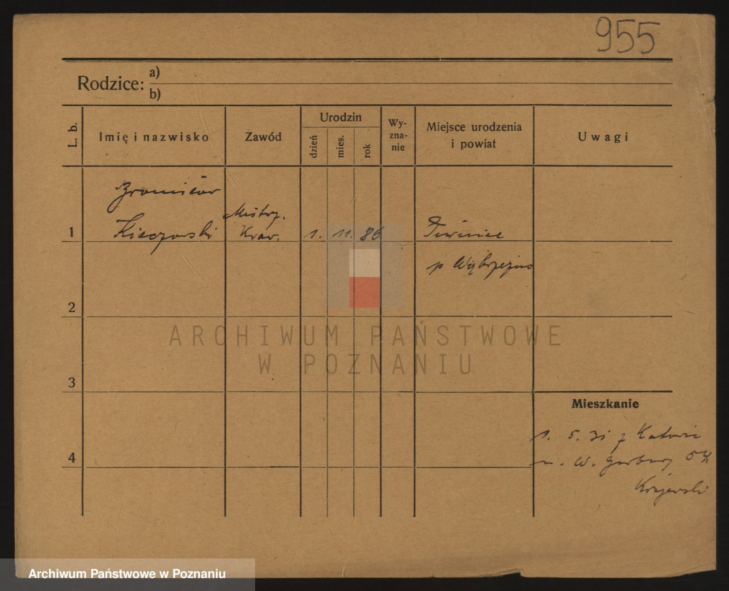 Podgląd karty osobowej dostępny jest po kliknięciu na nazwisko lub ikonkę karty. Można dokonywać powiększenia (ikony na górze) lub przechodzić między kolejnymi skanami (strzałki po bokach).