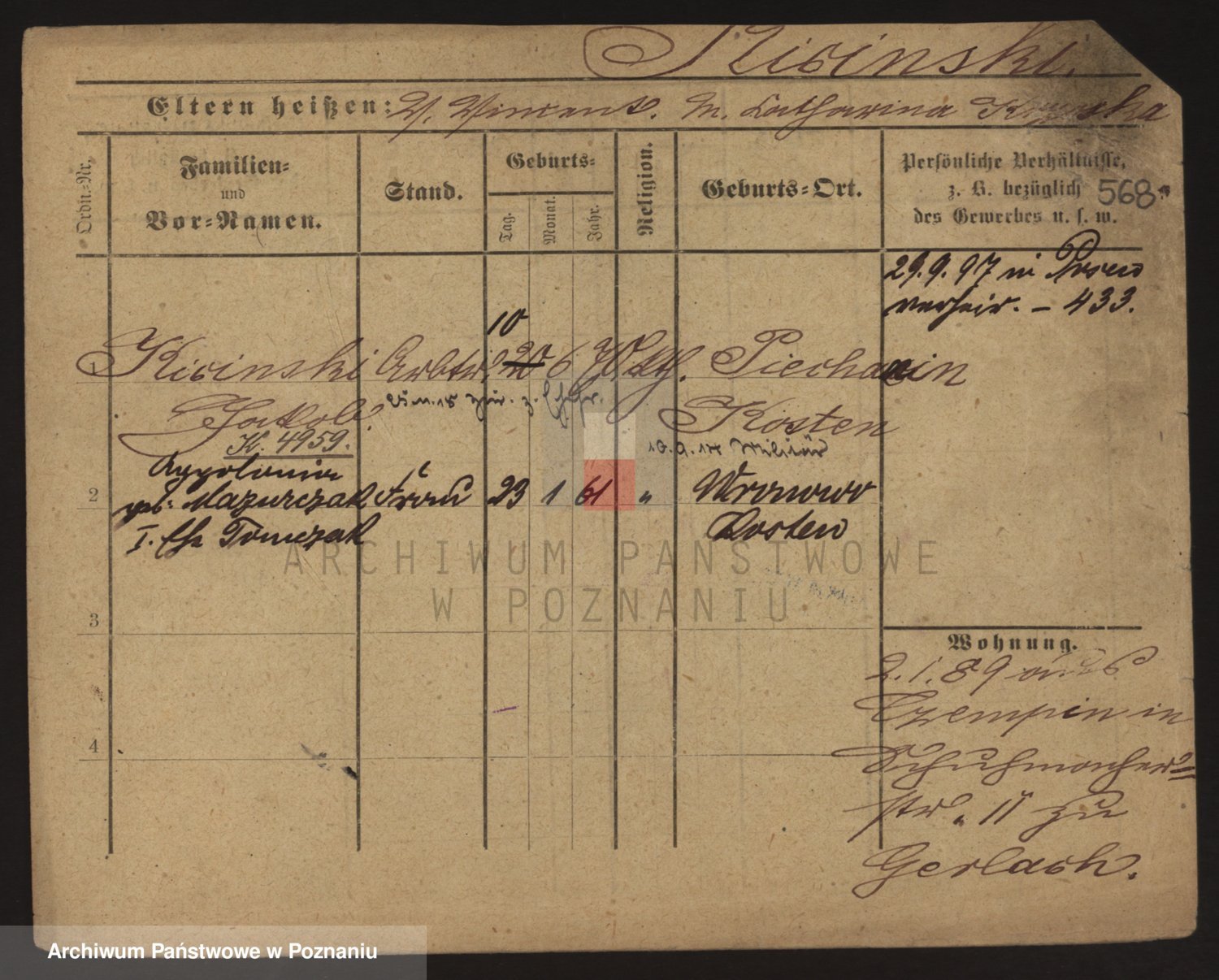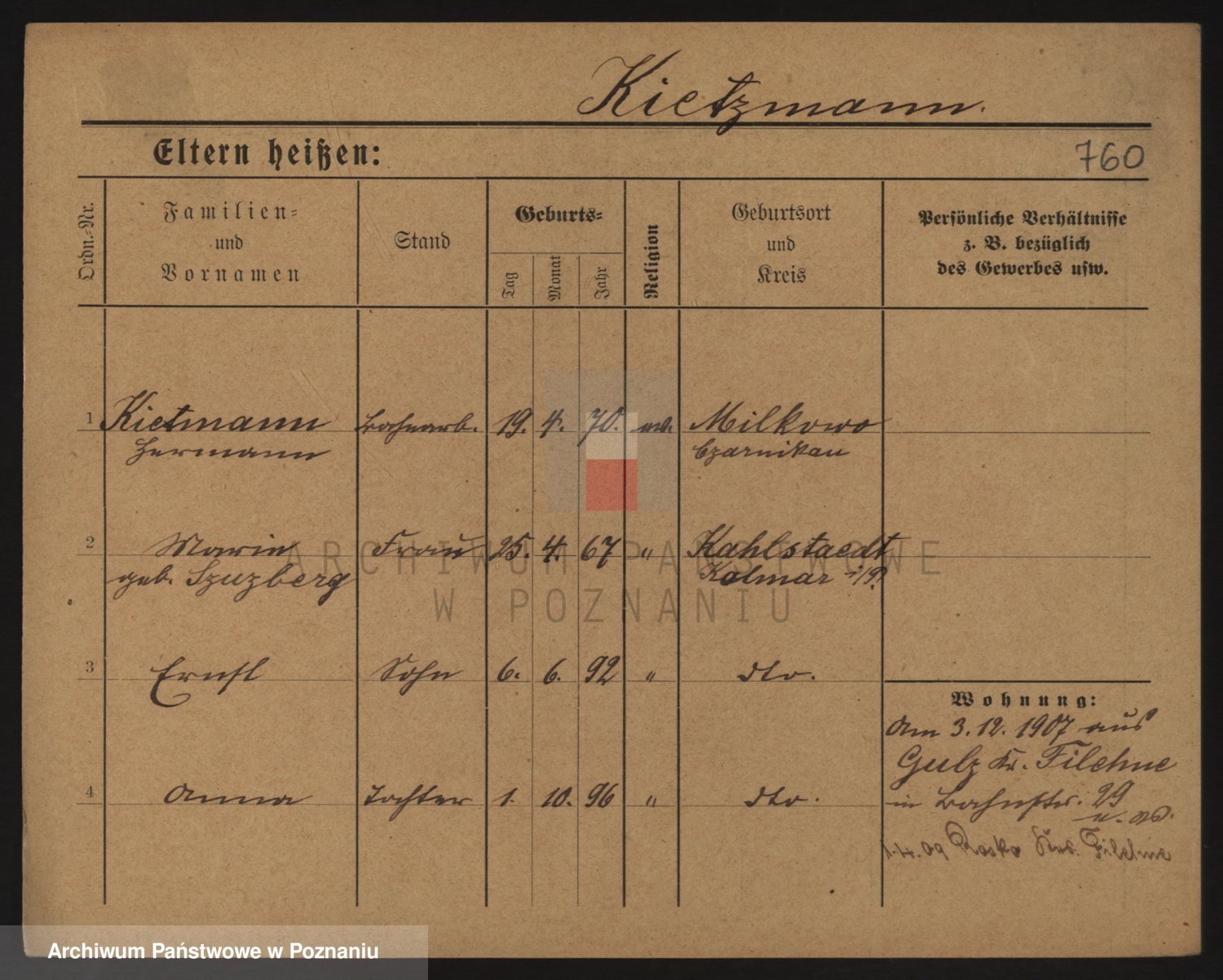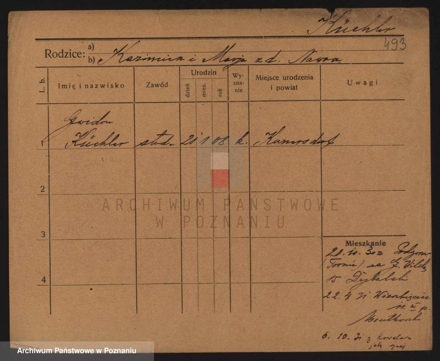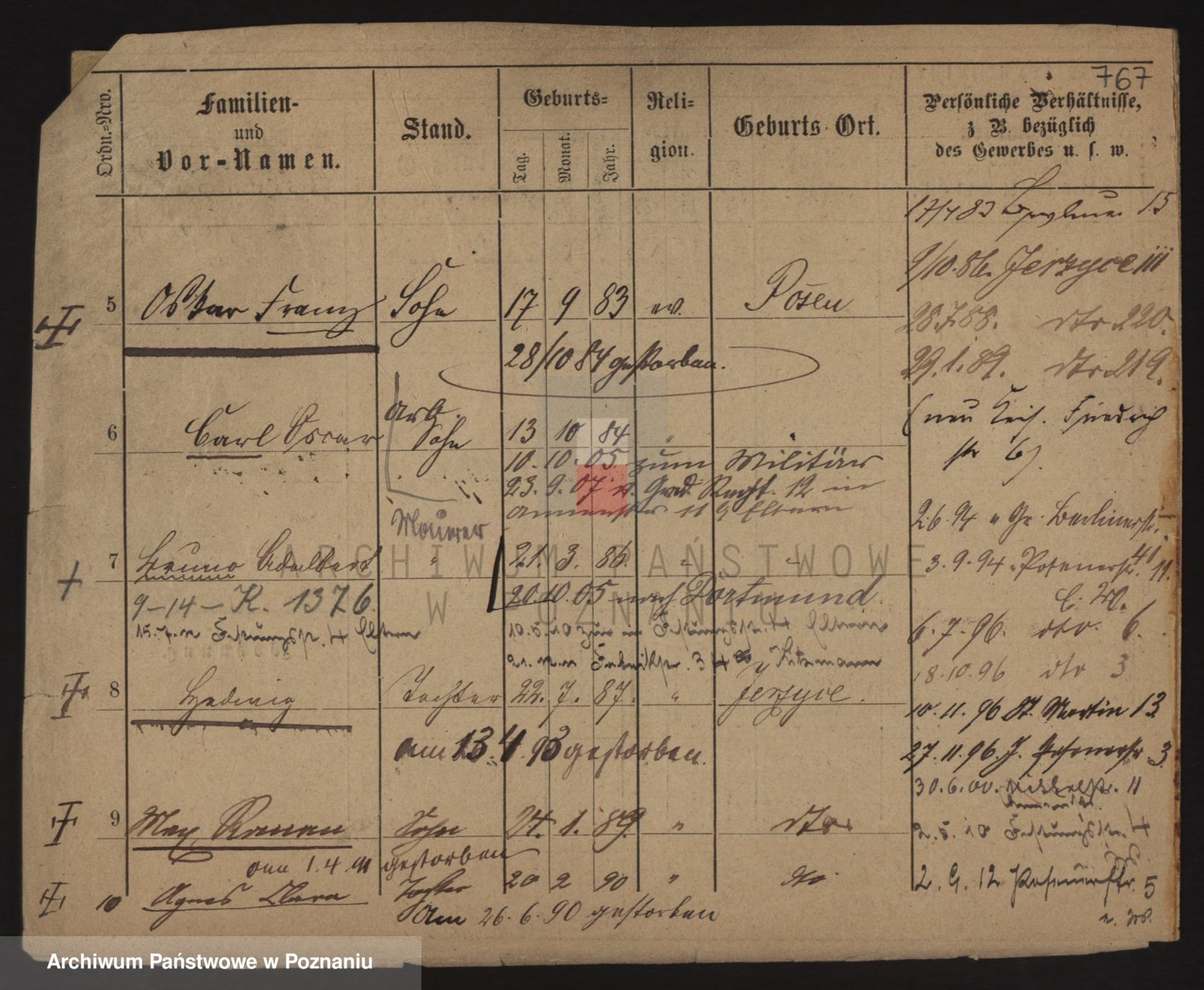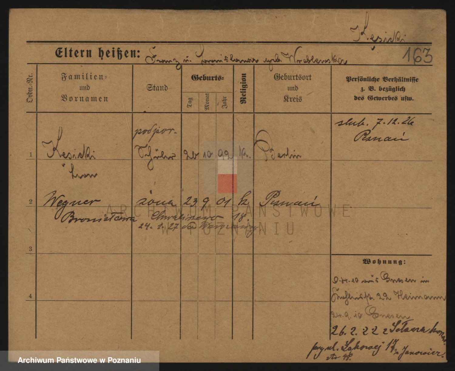 Podgląd karty osobowej dostępny jest po kliknięciu na nazwisko lub ikonkę karty. Można dokonywać powiększenia (ikony na górze) lub przechodzić między kolejnymi skanami (strzałki po bokach).