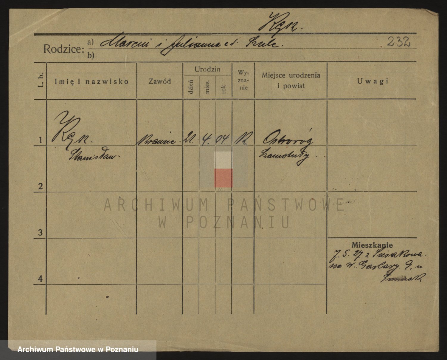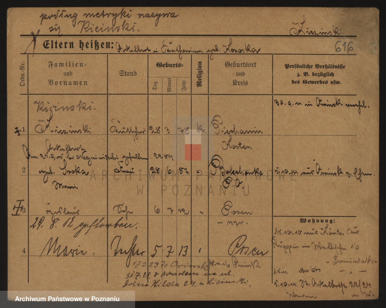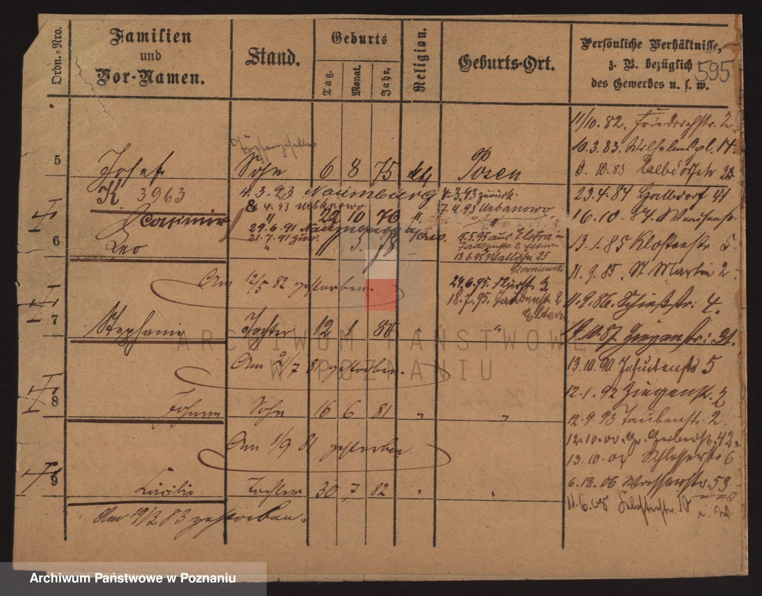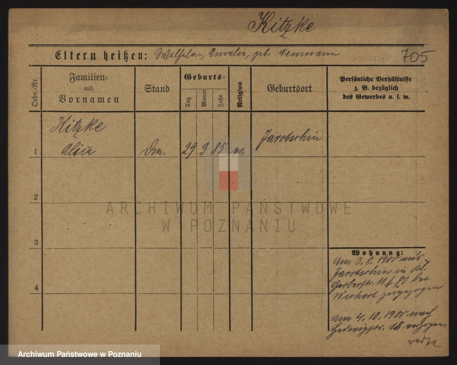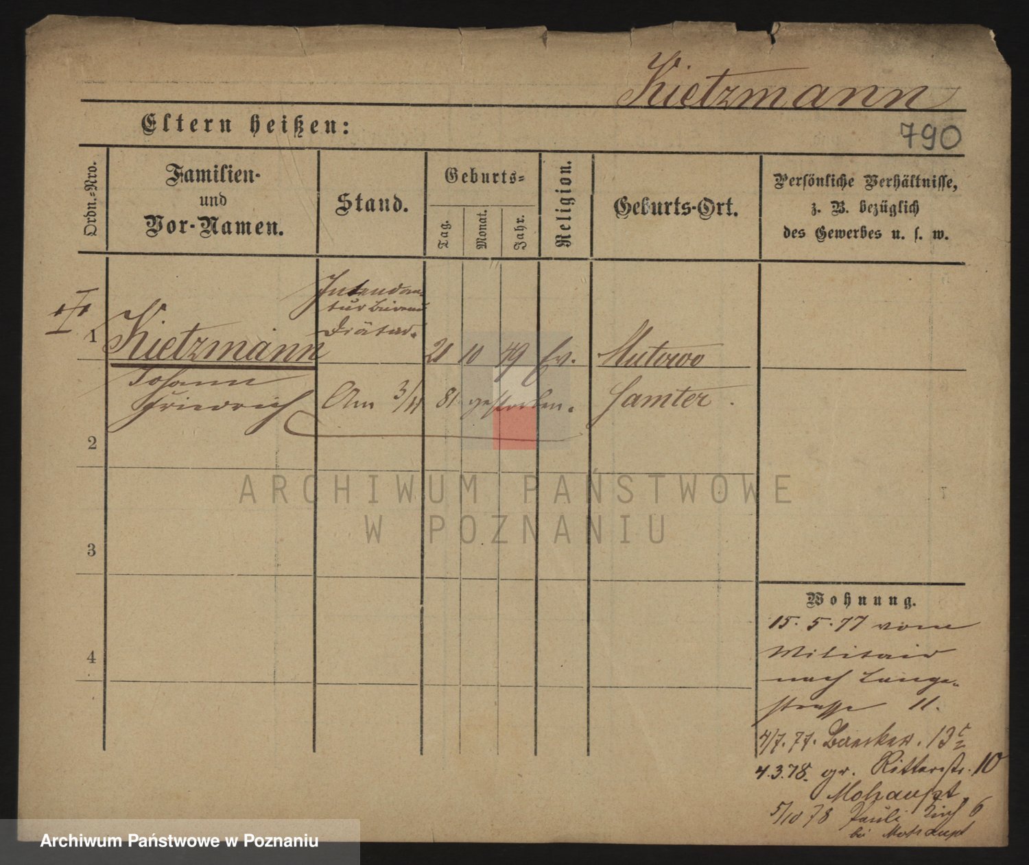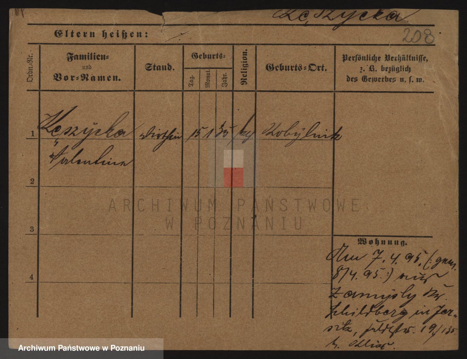 Podgląd karty osobowej dostępny jest po kliknięciu na nazwisko lub ikonkę karty. Można dokonywać powiększenia (ikony na górze) lub przechodzić między kolejnymi skanami (strzałki po bokach).