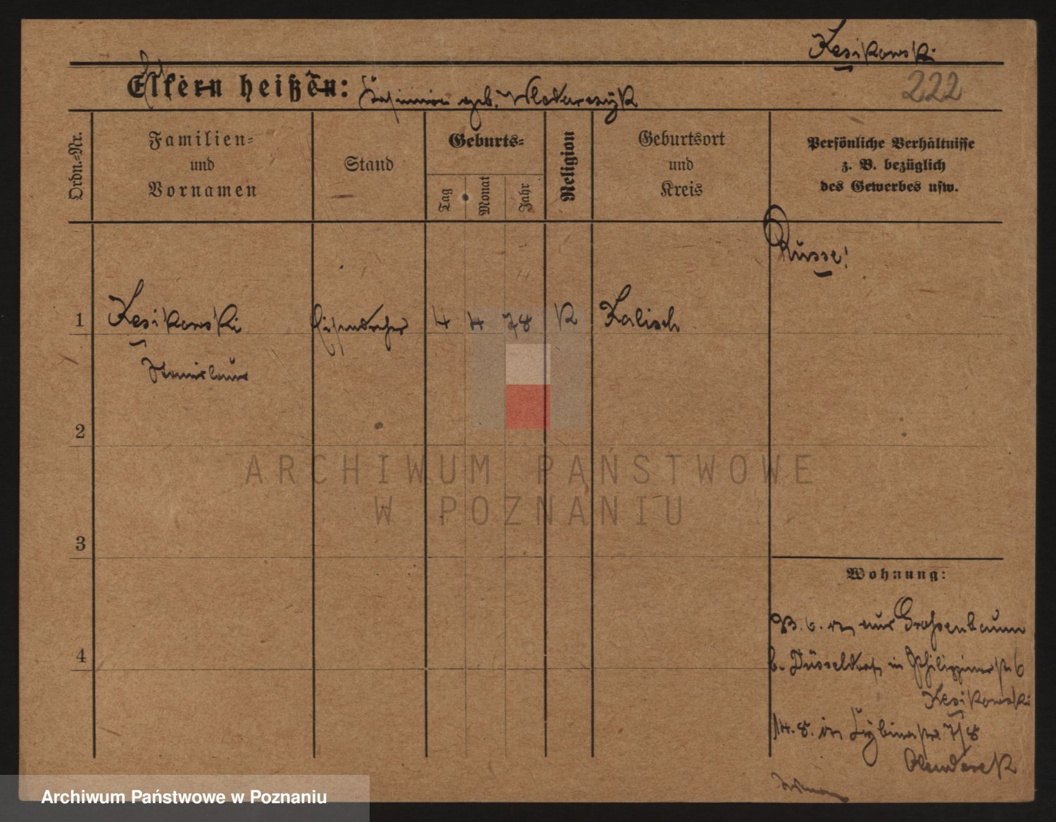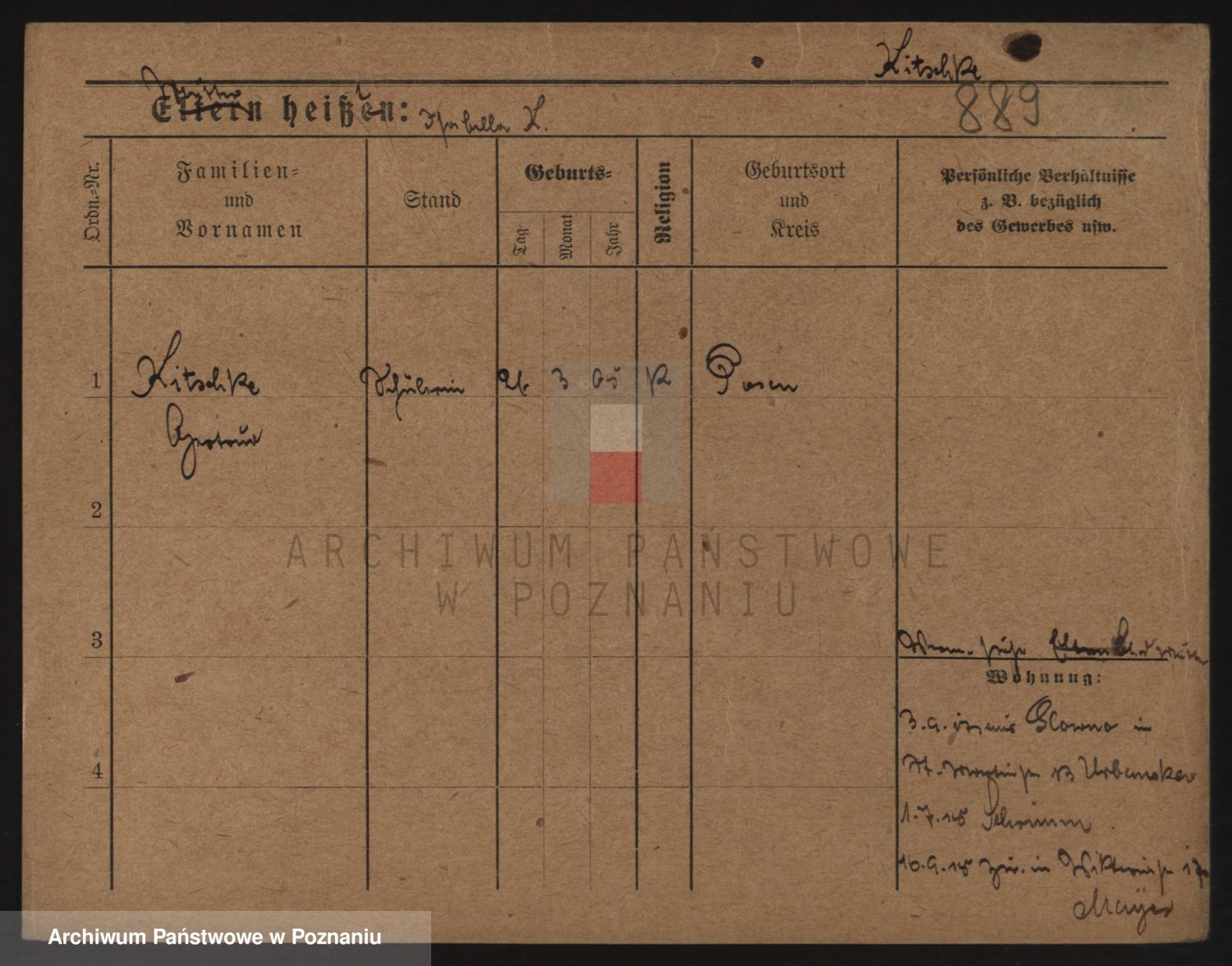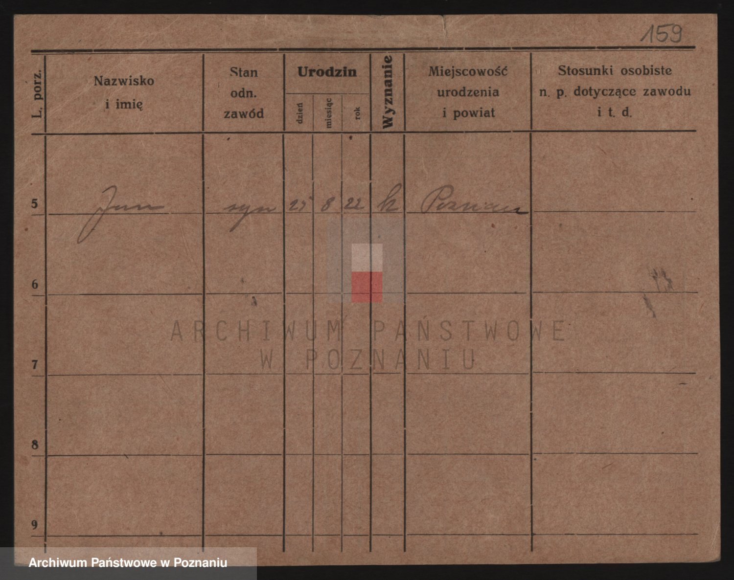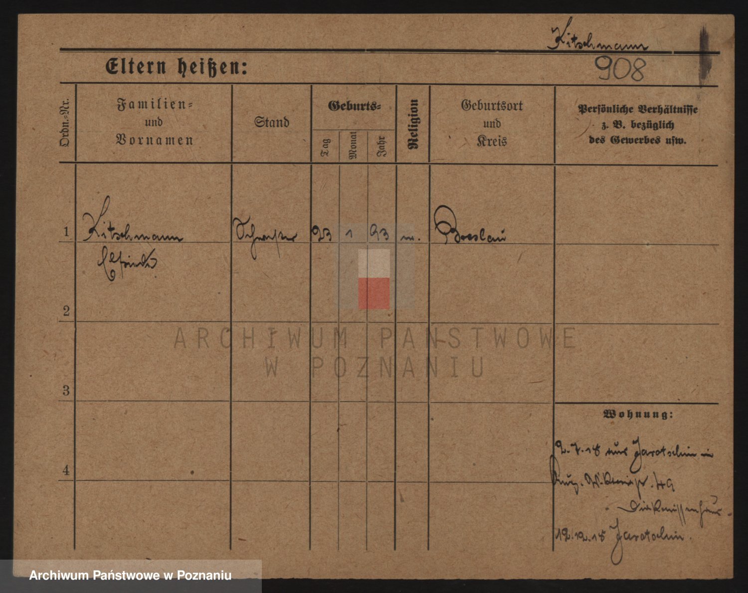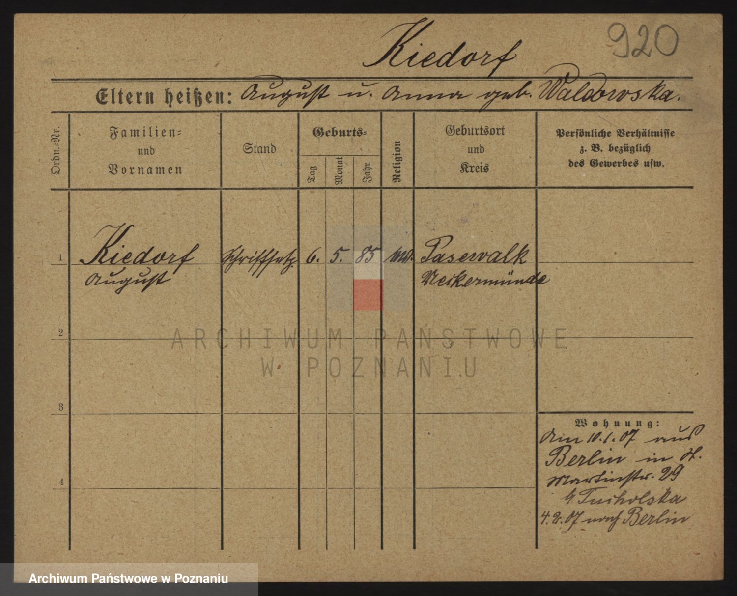 Podgląd karty osobowej dostępny jest po kliknięciu na nazwisko lub ikonkę karty. Można dokonywać powiększenia (ikony na górze) lub przechodzić między kolejnymi skanami (strzałki po bokach).