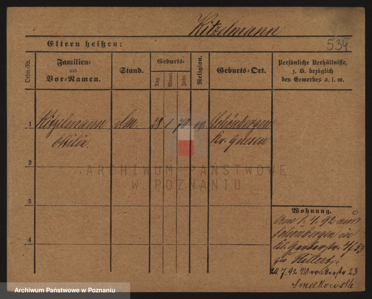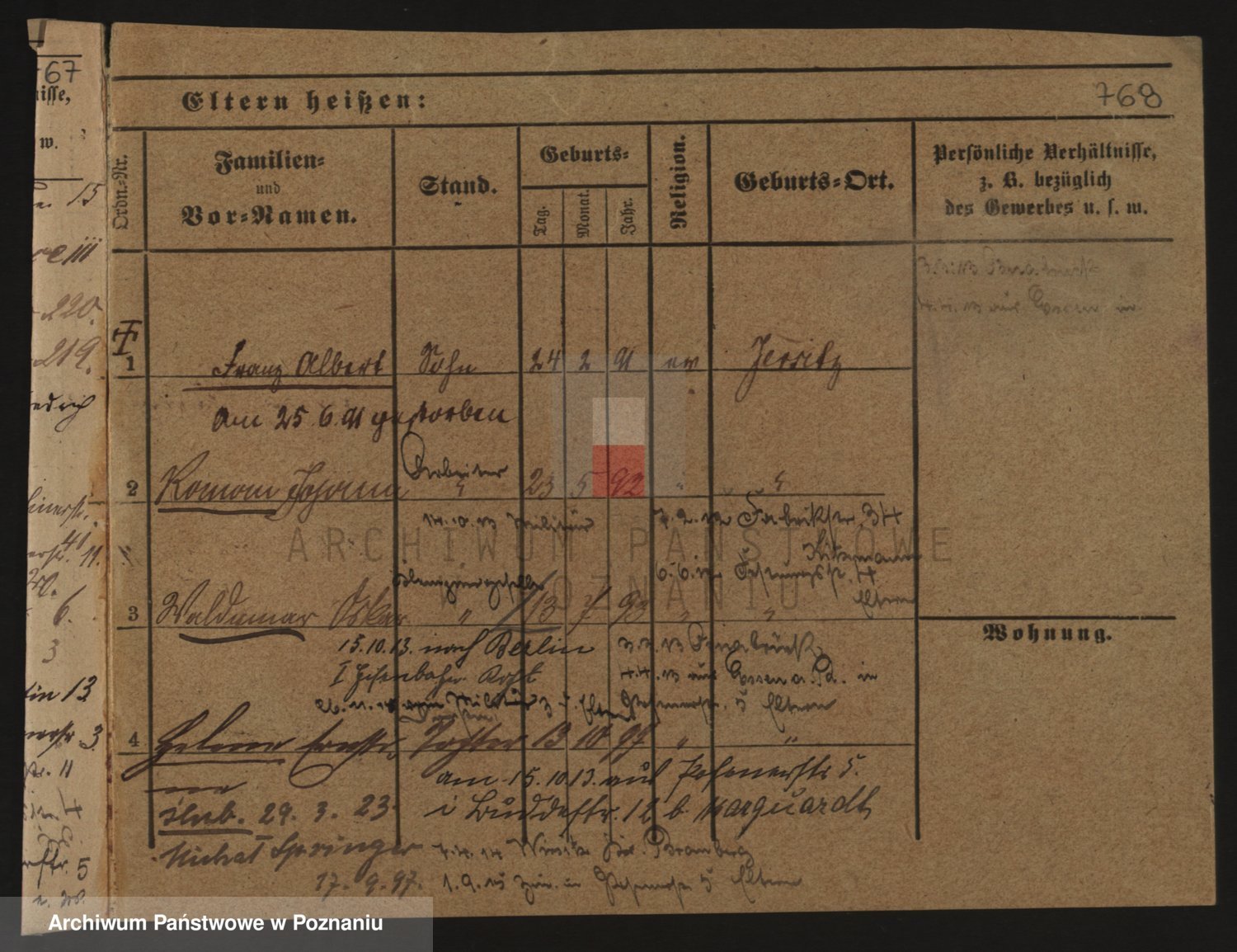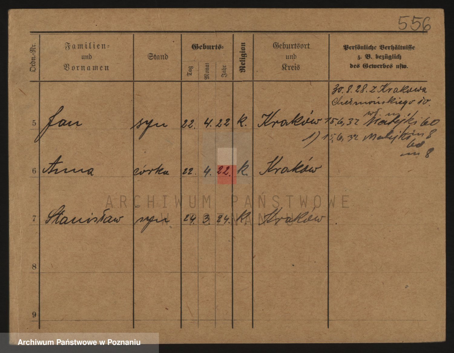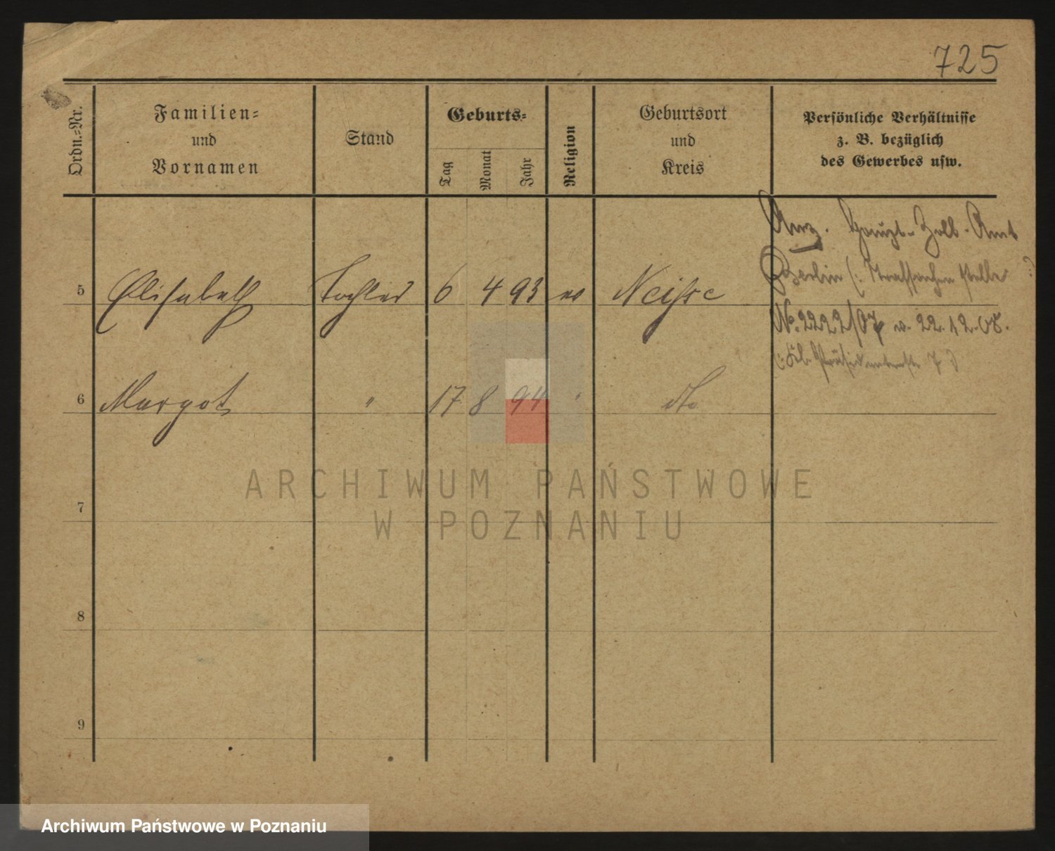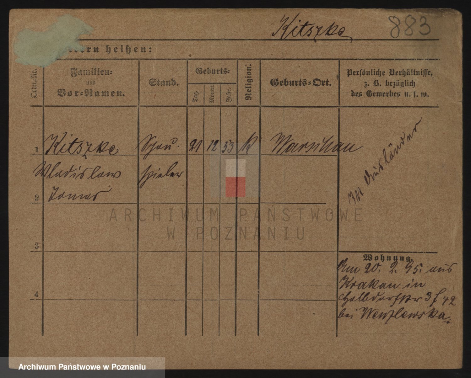 Podgląd karty osobowej dostępny jest po kliknięciu na nazwisko lub ikonkę karty. Można dokonywać powiększenia (ikony na górze) lub przechodzić między kolejnymi skanami (strzałki po bokach).