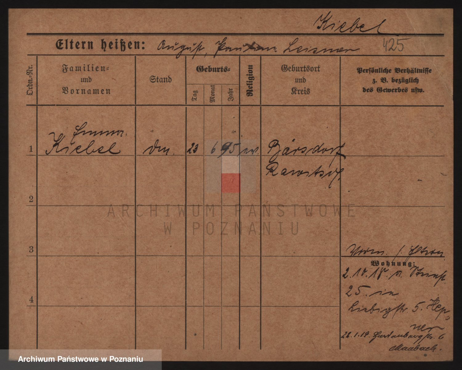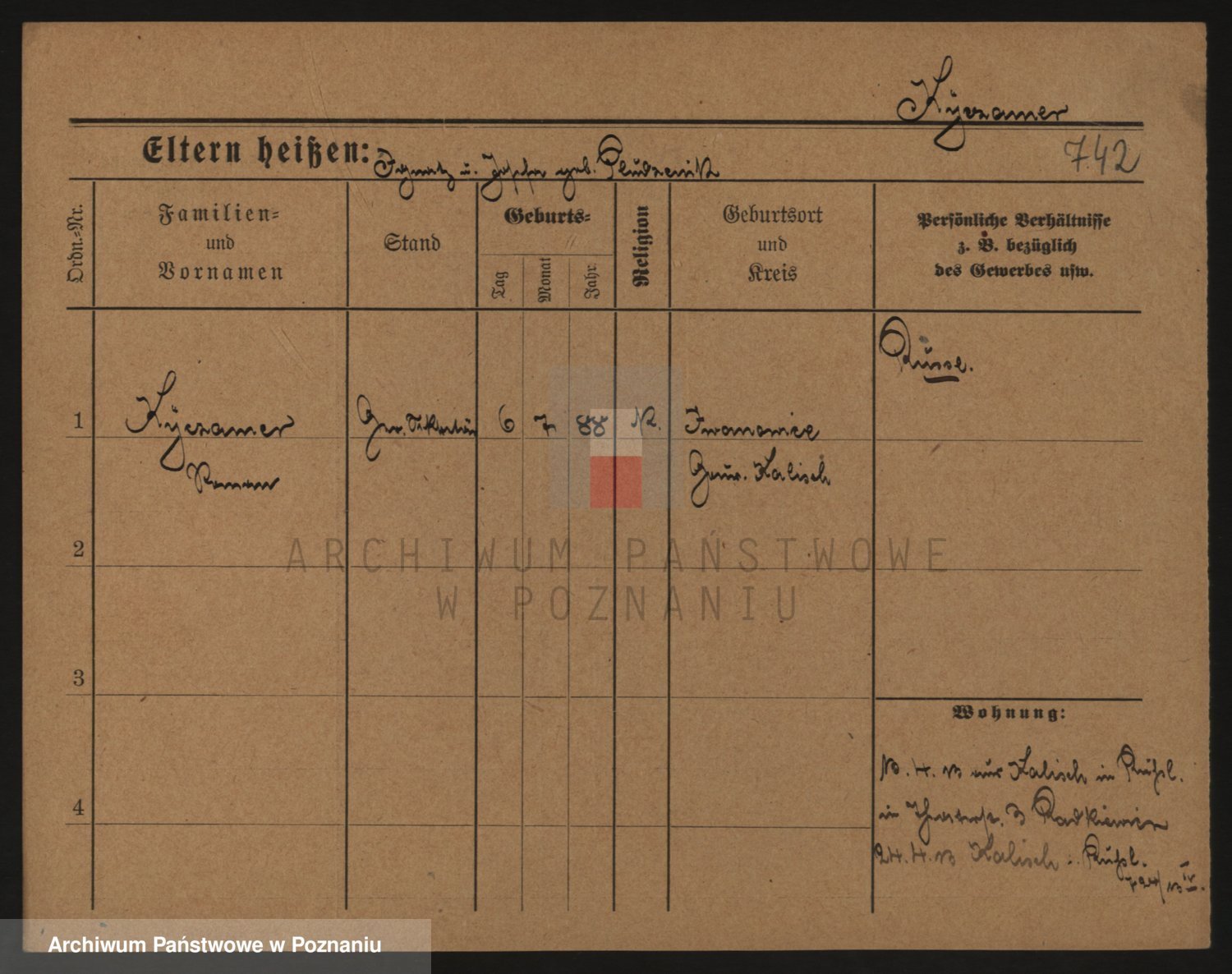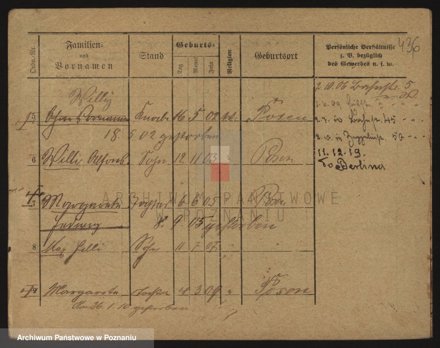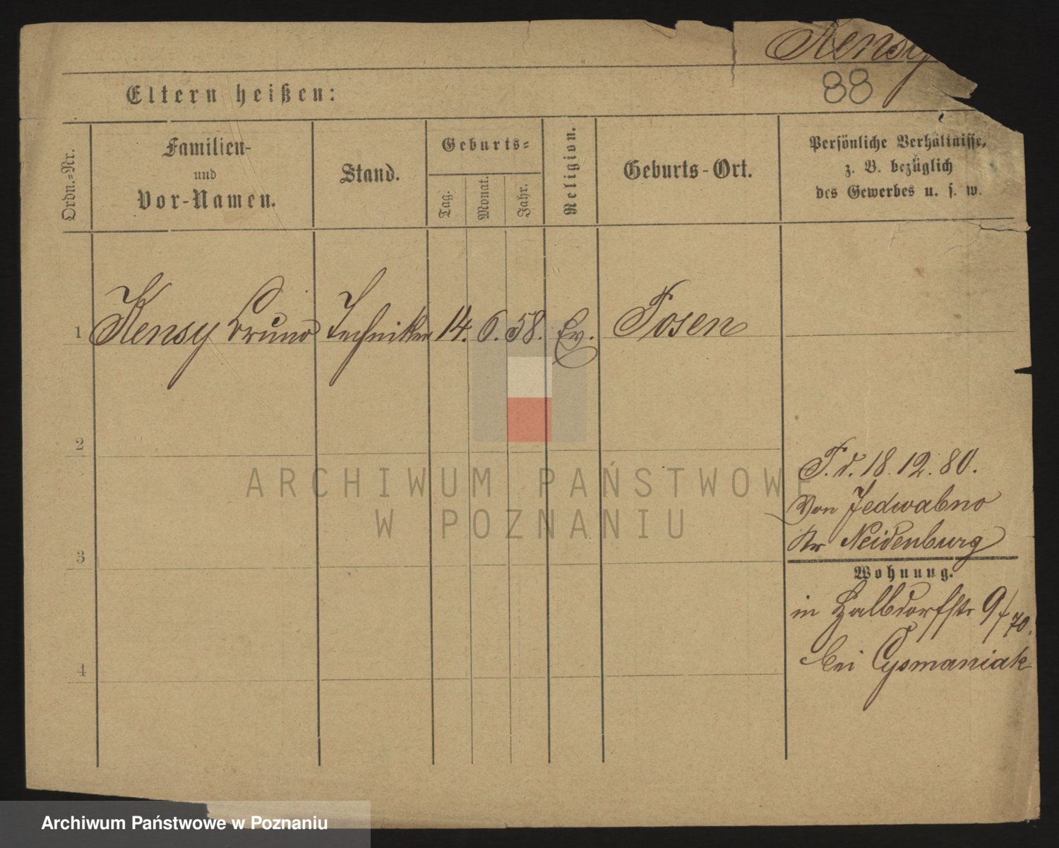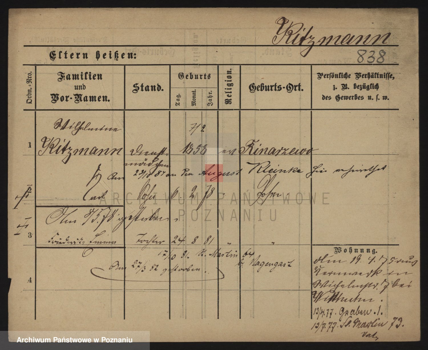 Podgląd karty osobowej dostępny jest po kliknięciu na nazwisko lub ikonkę karty. Można dokonywać powiększenia (ikony na górze) lub przechodzić między kolejnymi skanami (strzałki po bokach).
