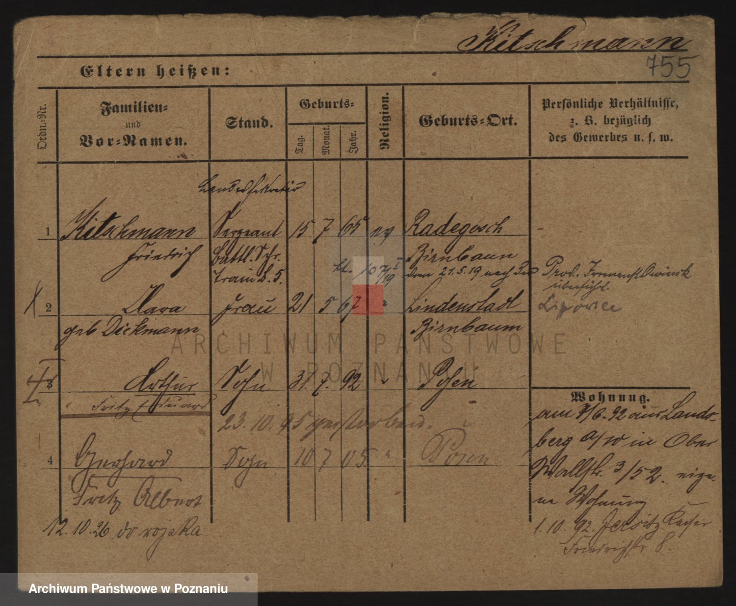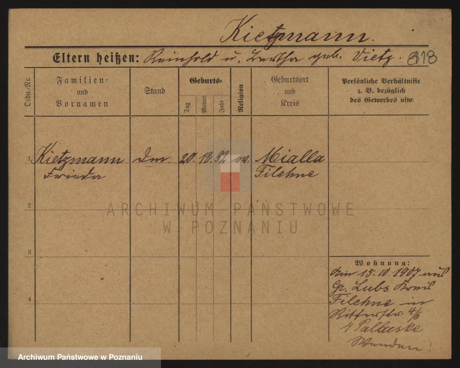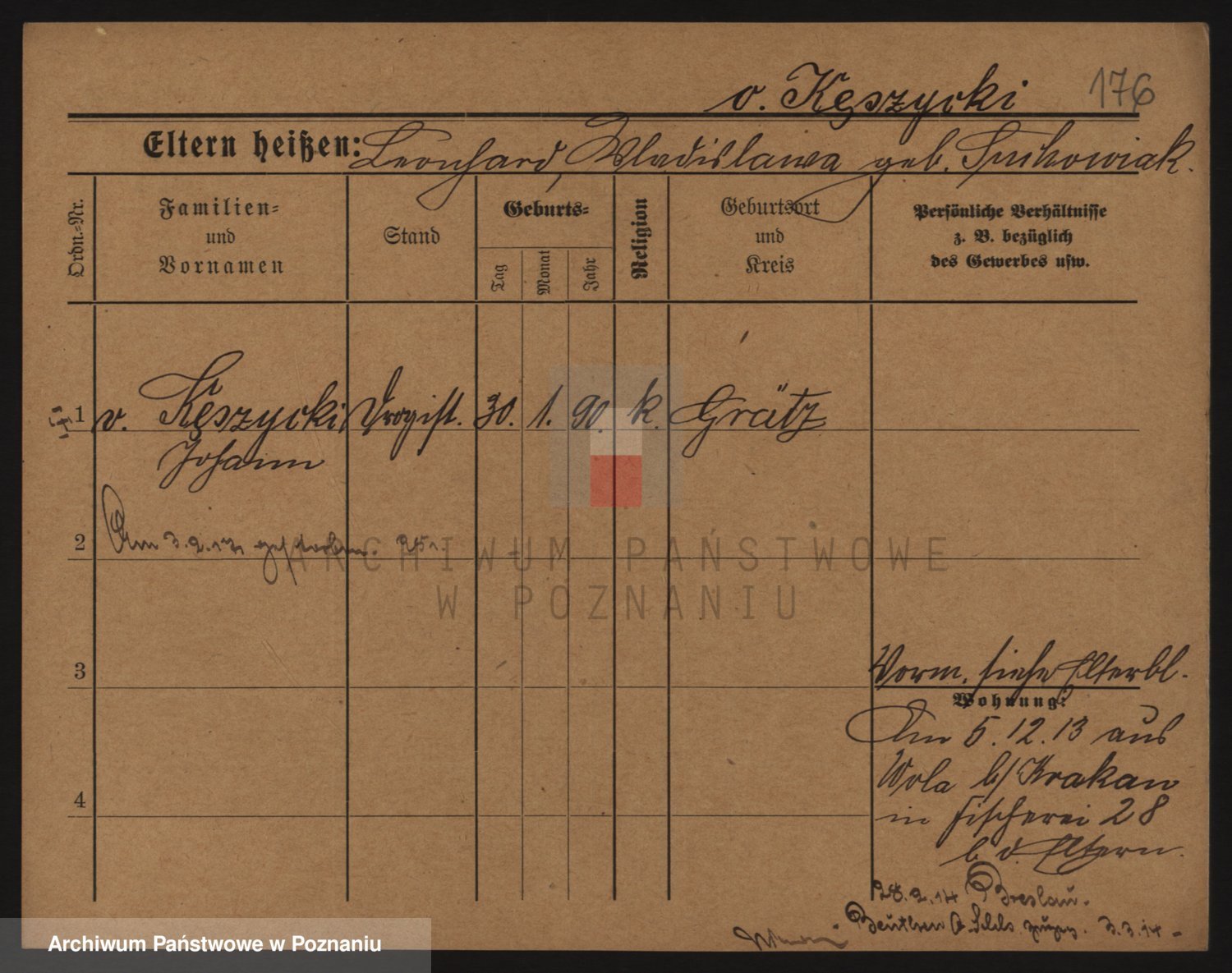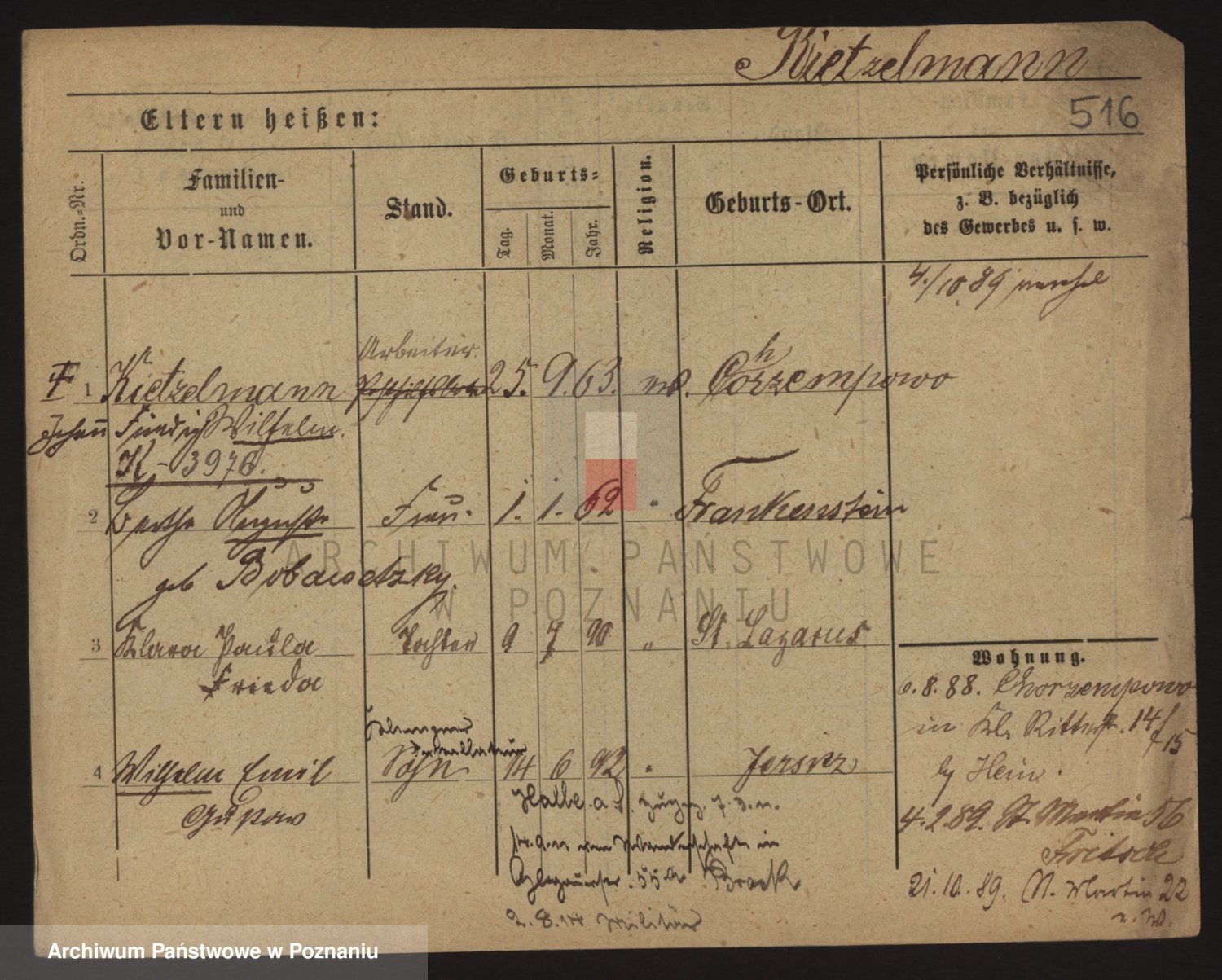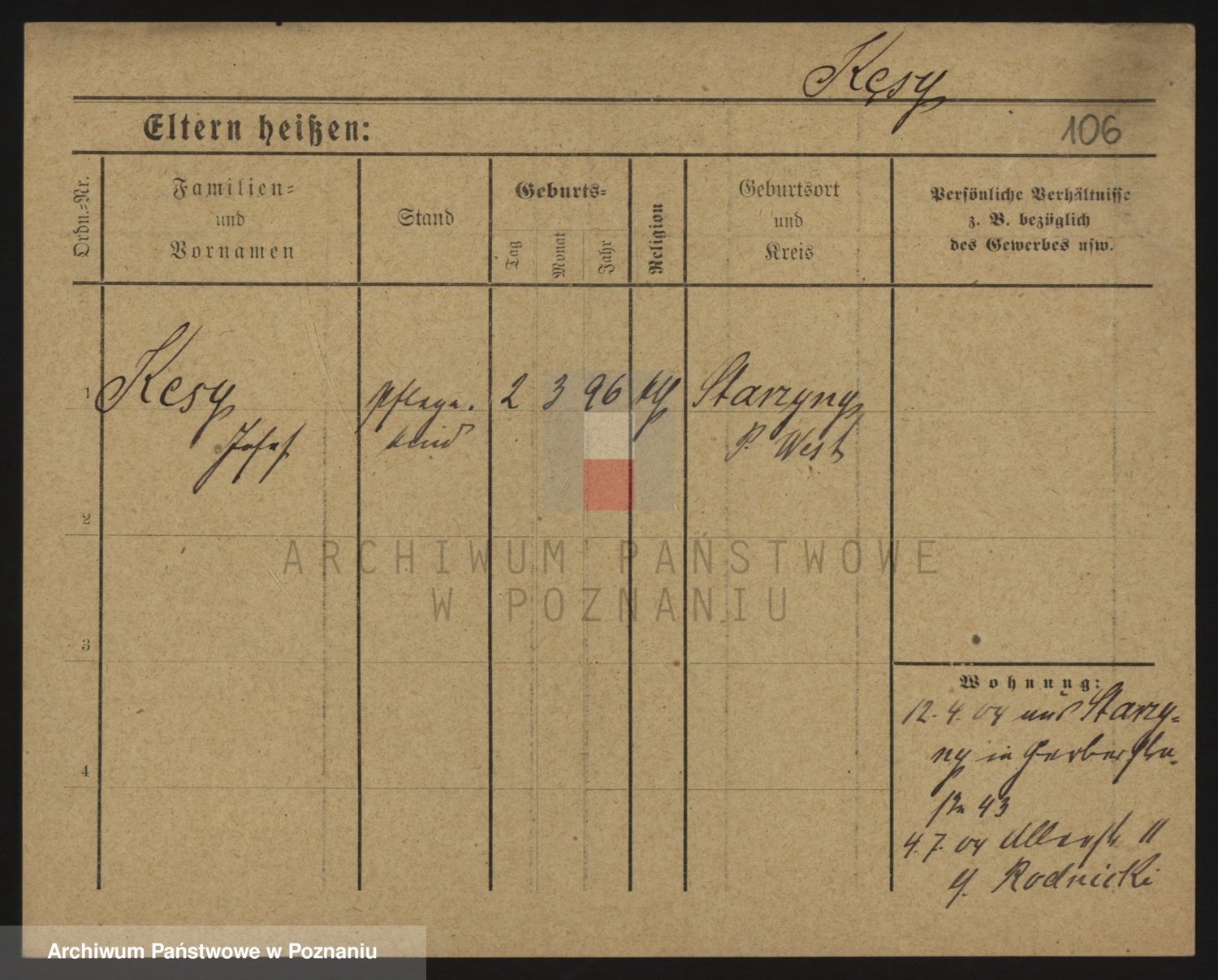 Podgląd karty osobowej dostępny jest po kliknięciu na nazwisko lub ikonkę karty. Można dokonywać powiększenia (ikony na górze) lub przechodzić między kolejnymi skanami (strzałki po bokach).
