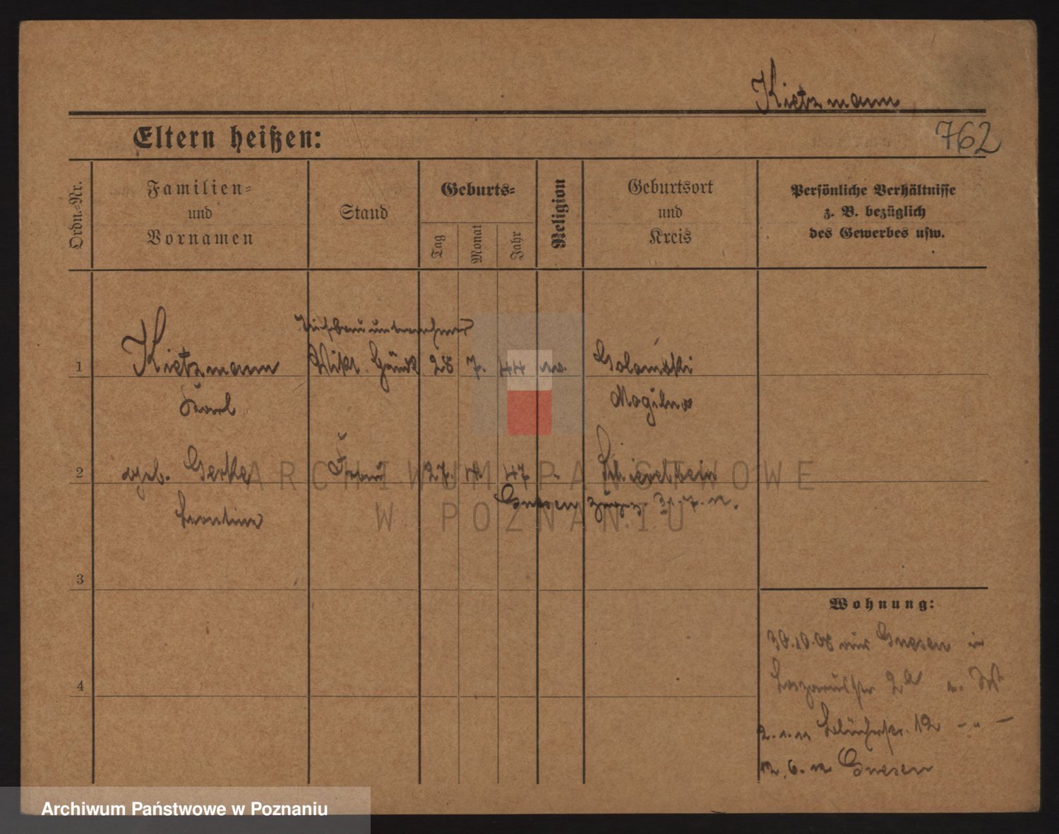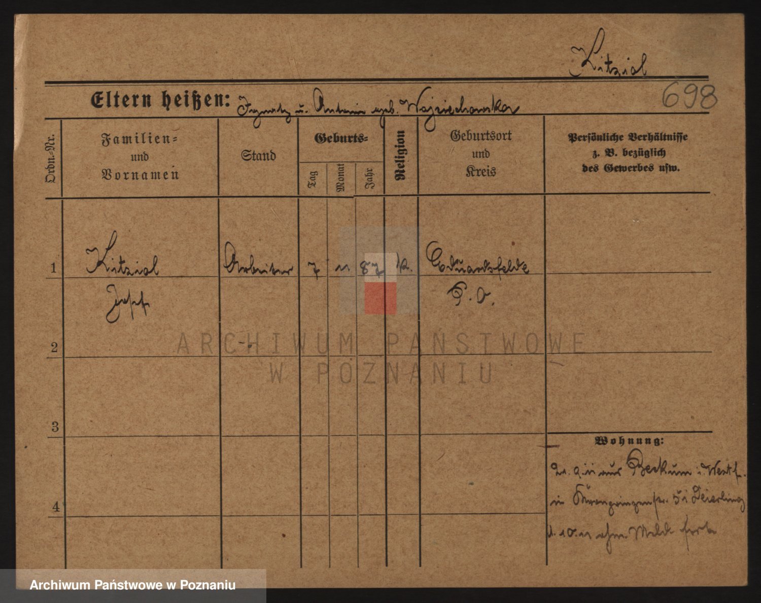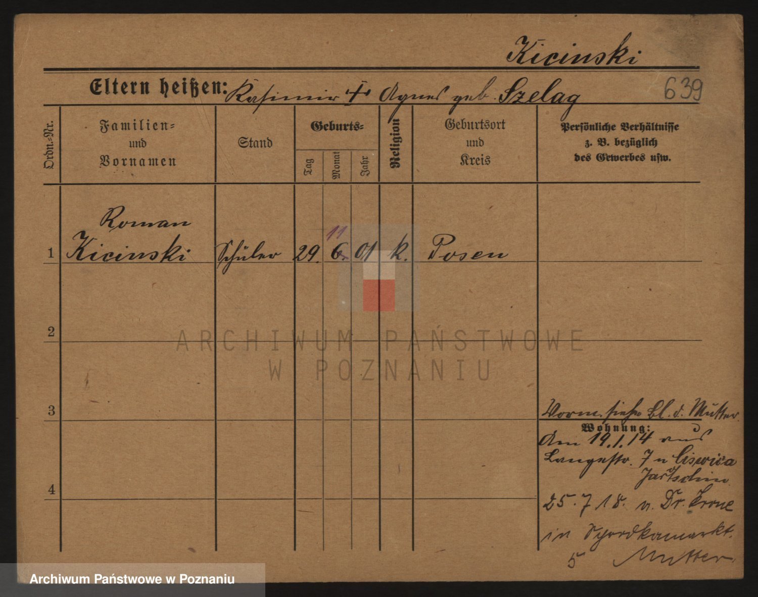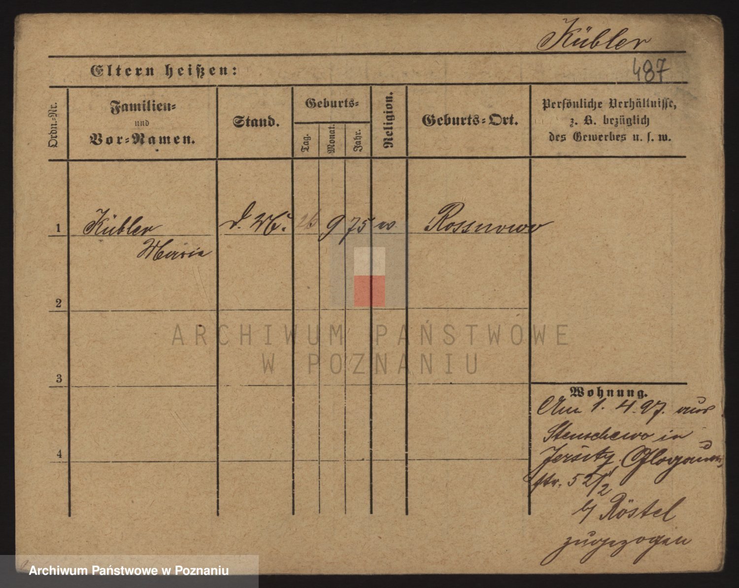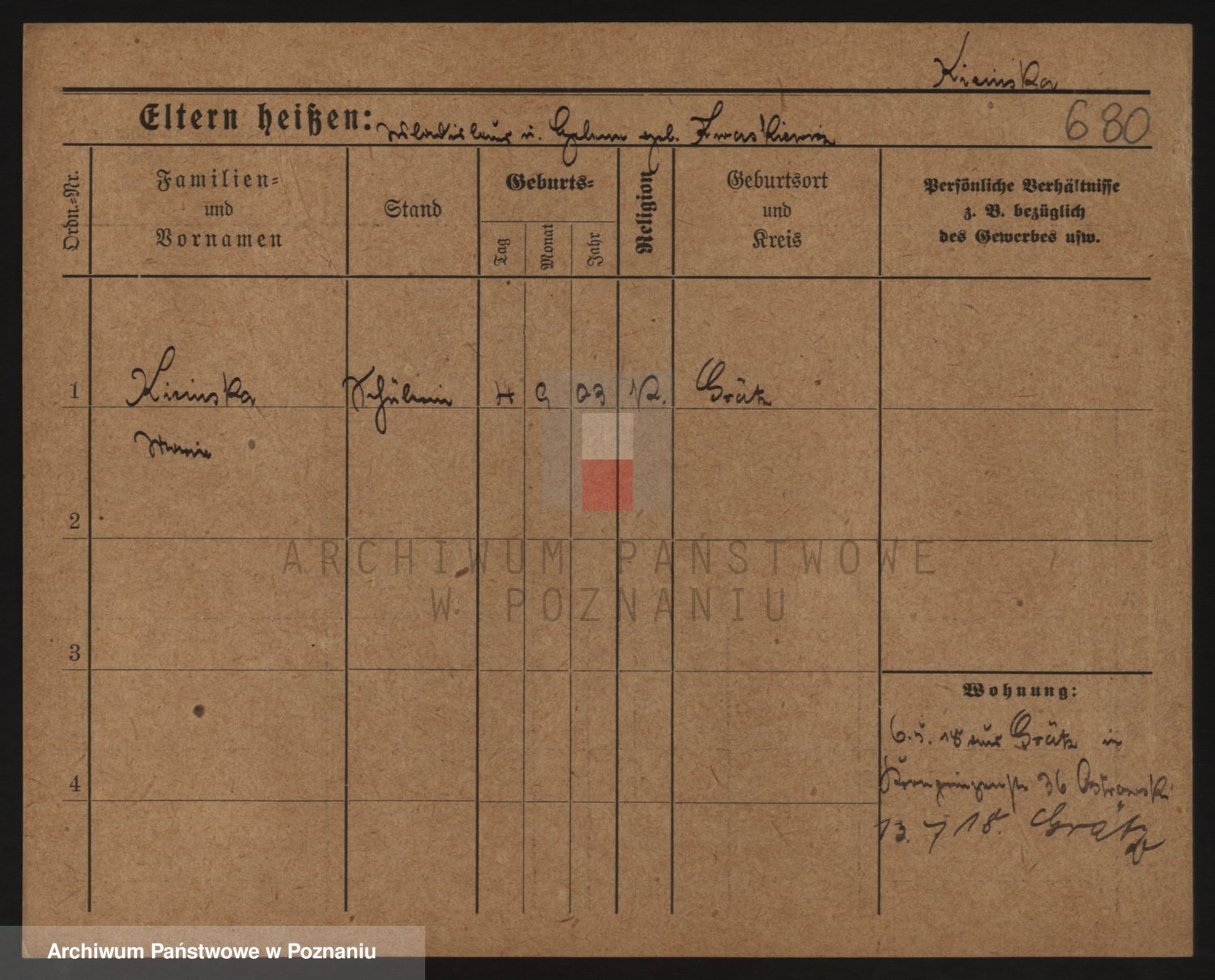 Podgląd karty osobowej dostępny jest po kliknięciu na nazwisko lub ikonkę karty. Można dokonywać powiększenia (ikony na górze) lub przechodzić między kolejnymi skanami (strzałki po bokach).