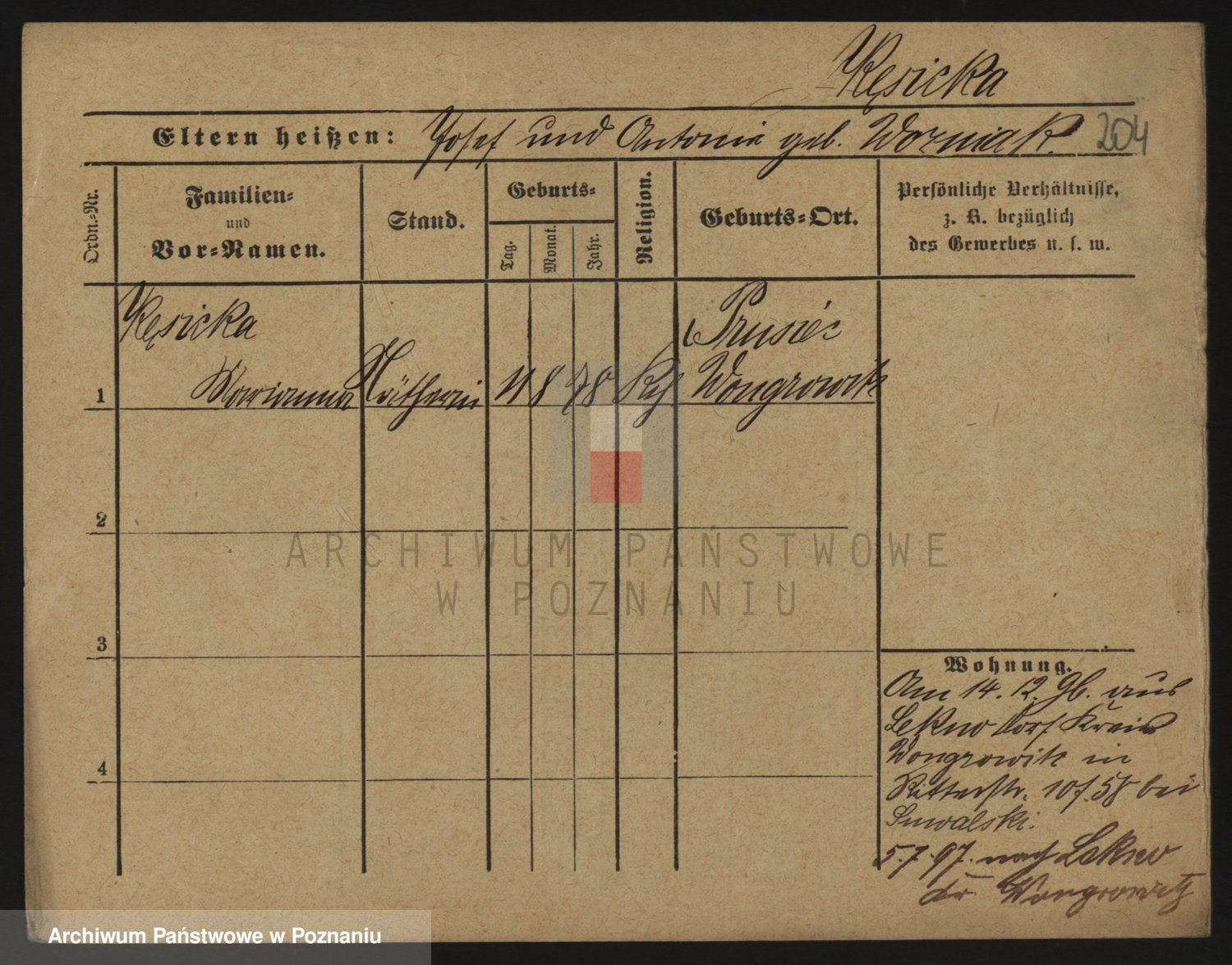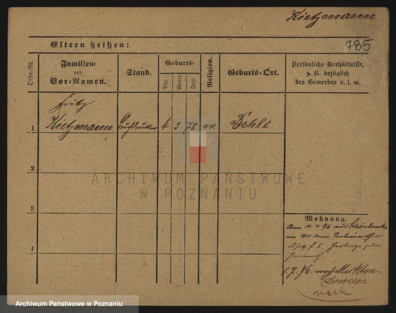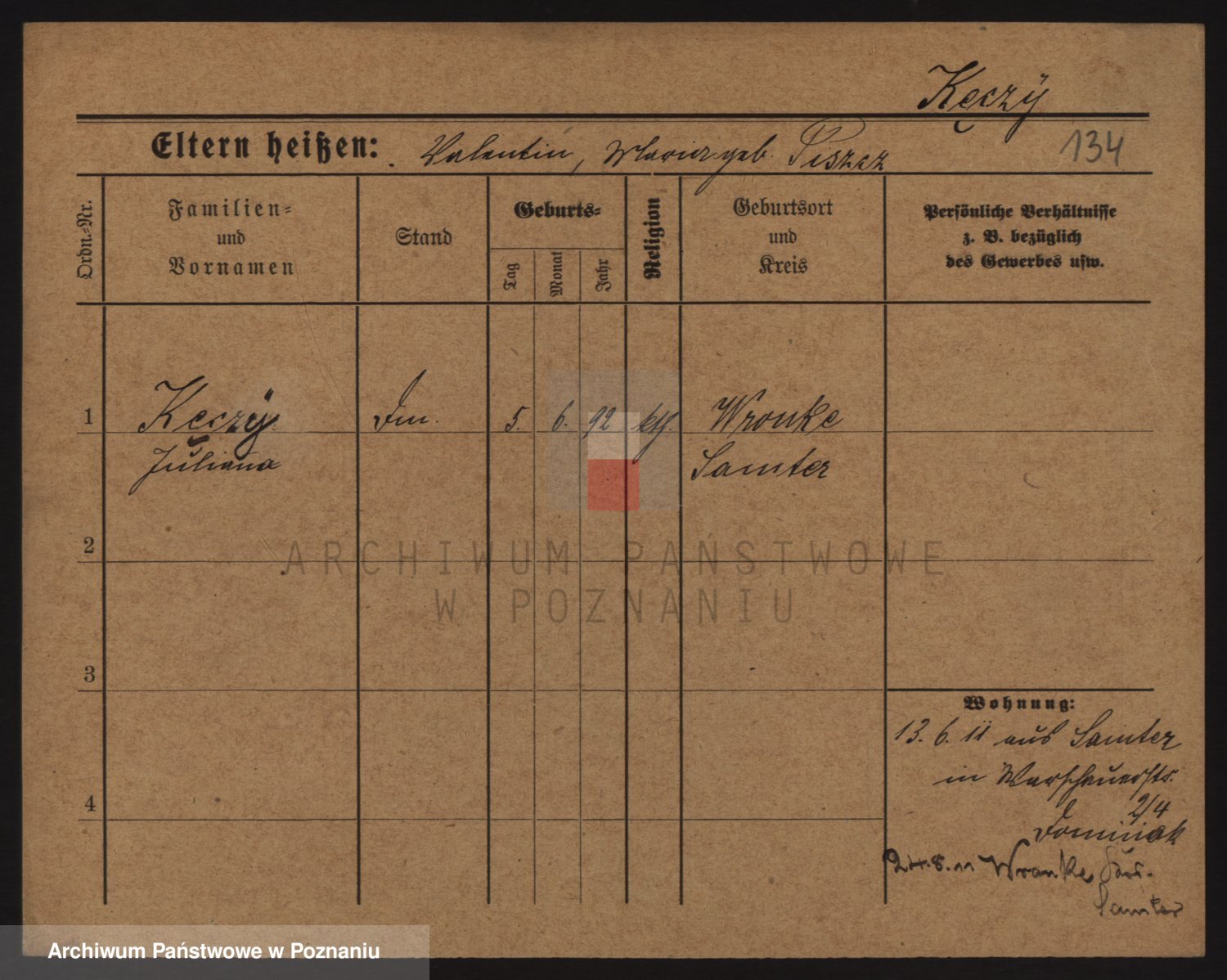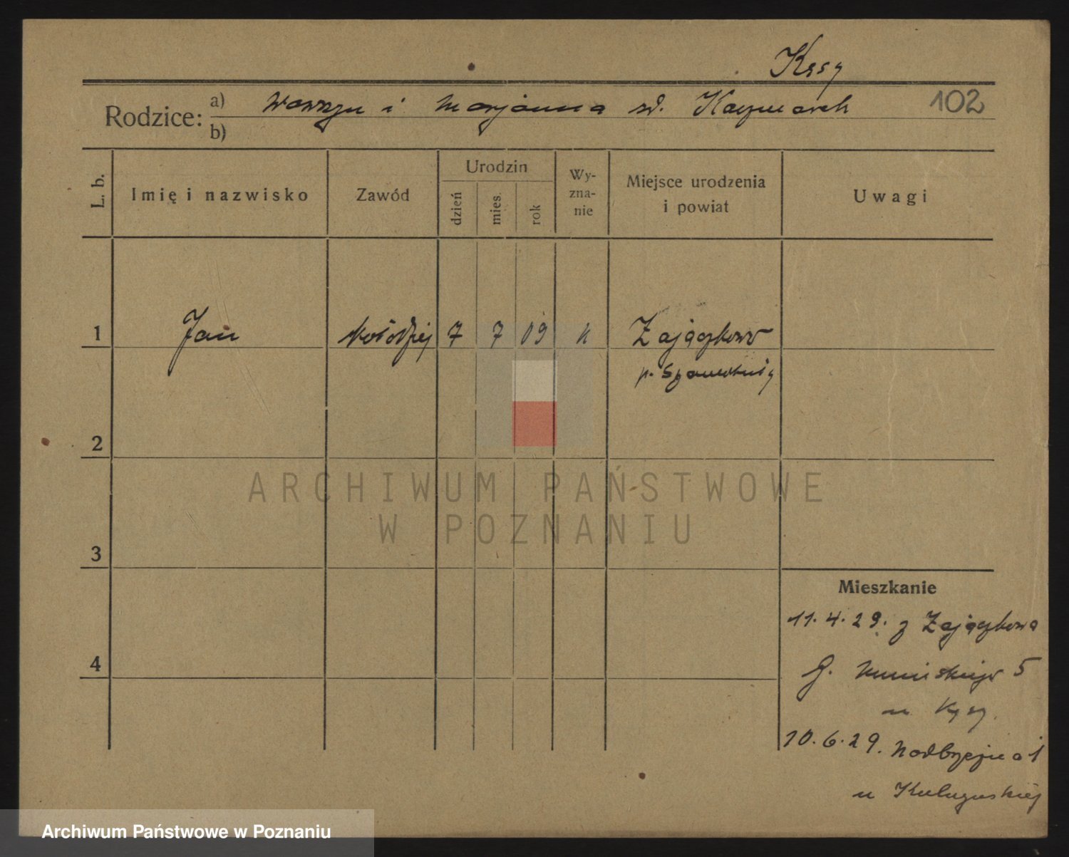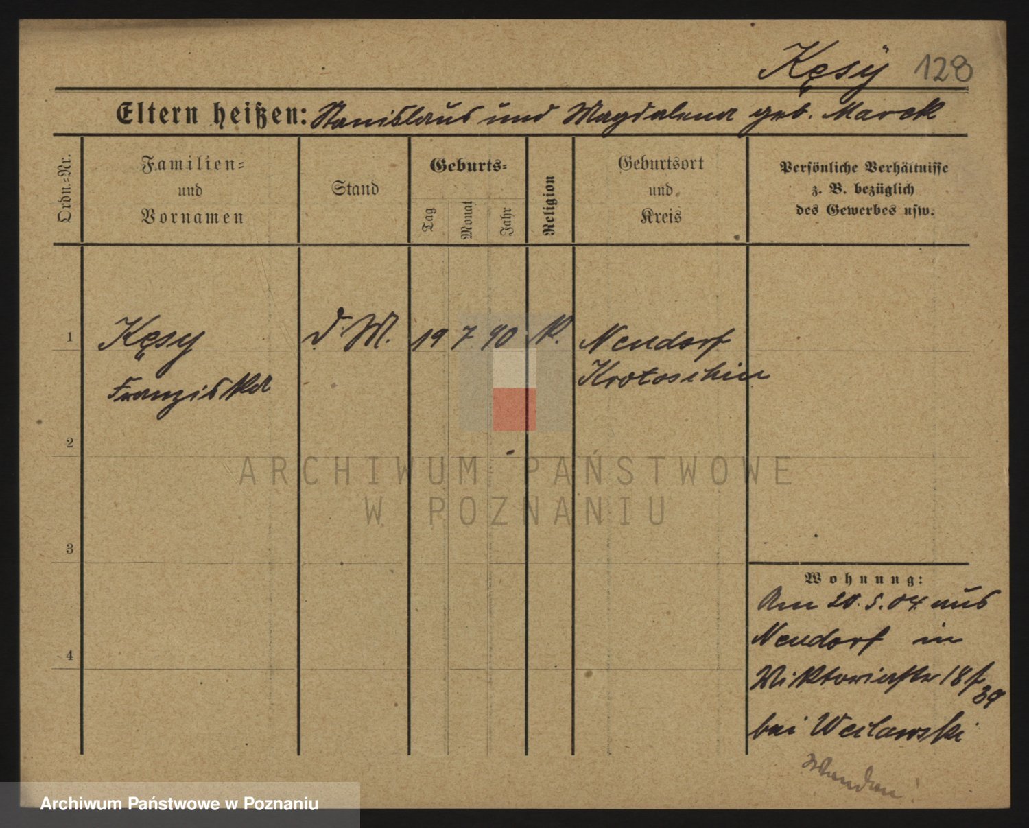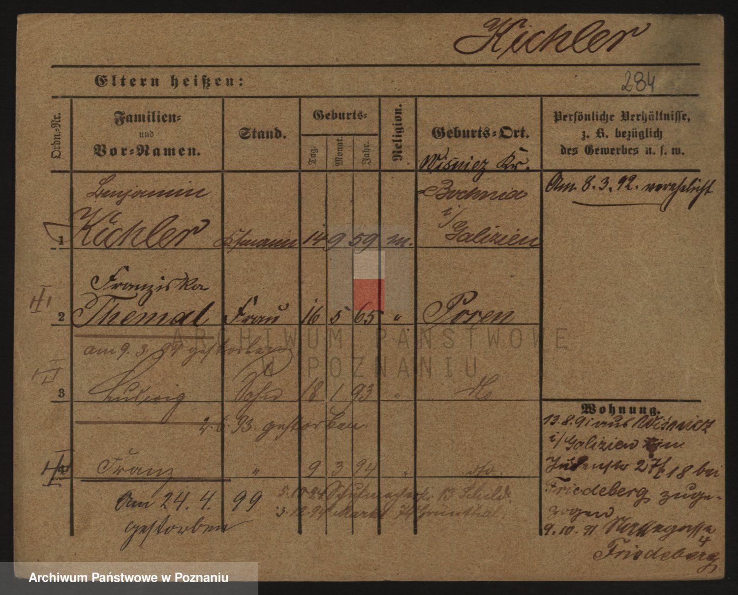 Podgląd karty osobowej dostępny jest po kliknięciu na nazwisko lub ikonkę karty. Można dokonywać powiększenia (ikony na górze) lub przechodzić między kolejnymi skanami (strzałki po bokach).