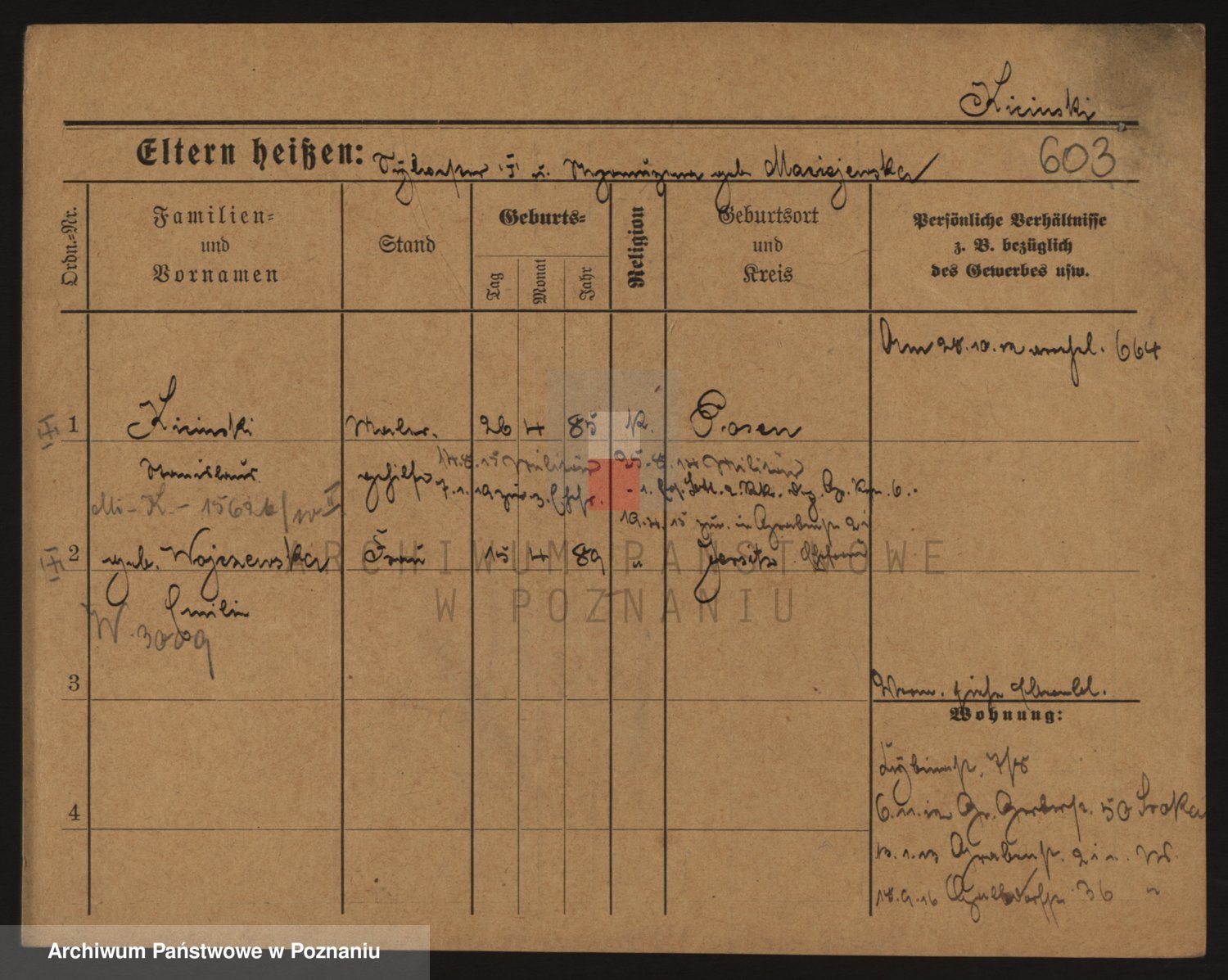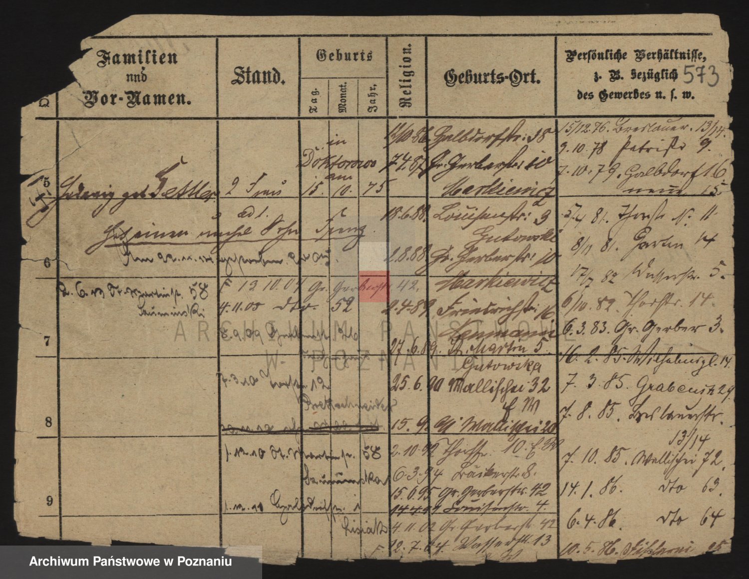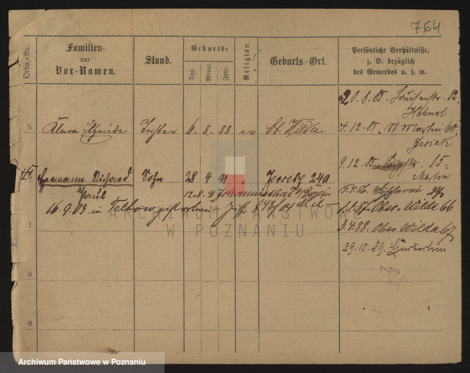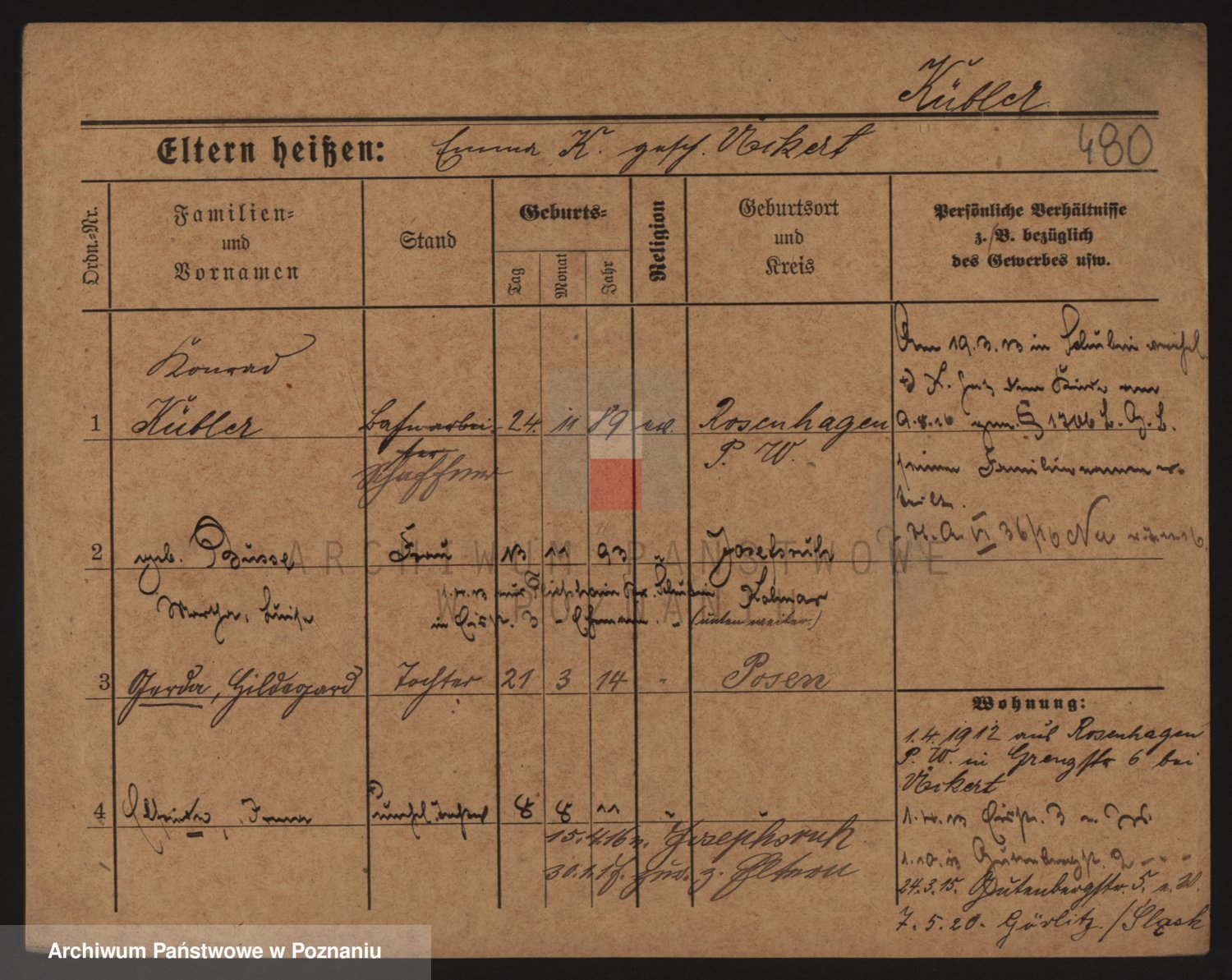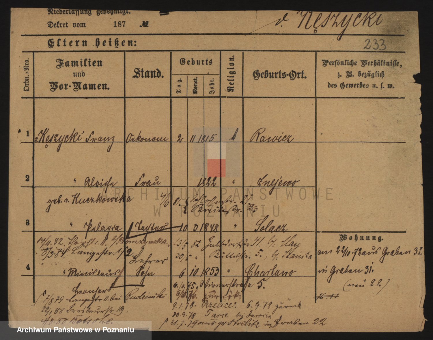Podgląd karty osobowej dostępny jest po kliknięciu na nazwisko lub ikonkę karty. Można dokonywać powiększenia (ikony na górze) lub przechodzić między kolejnymi skanami (strzałki po bokach).