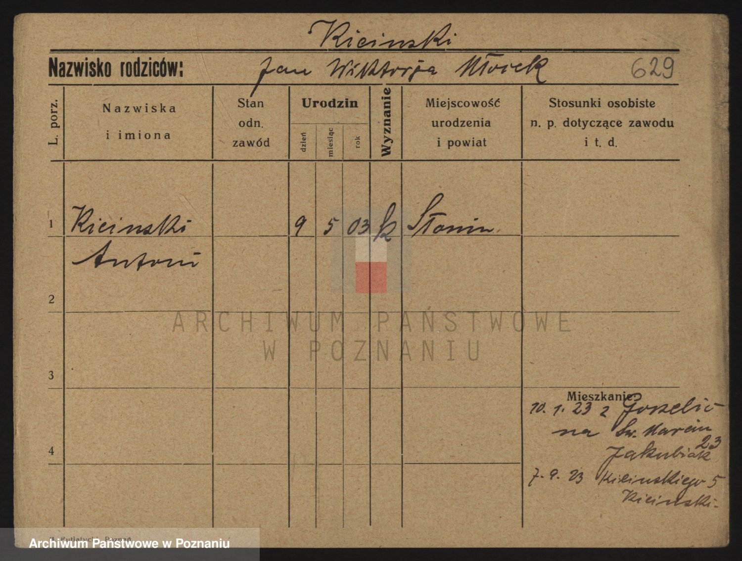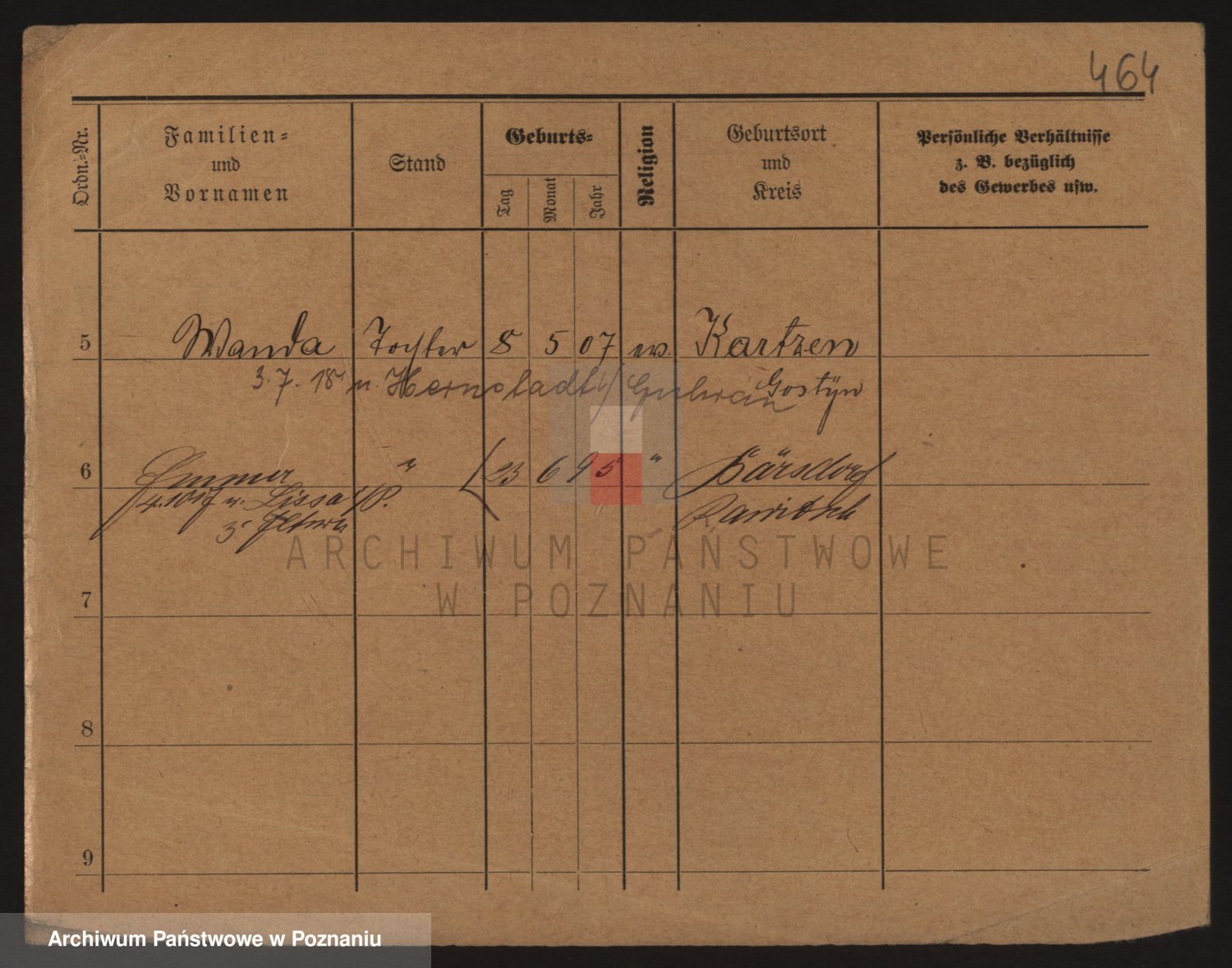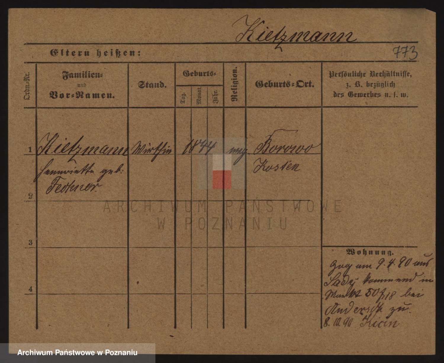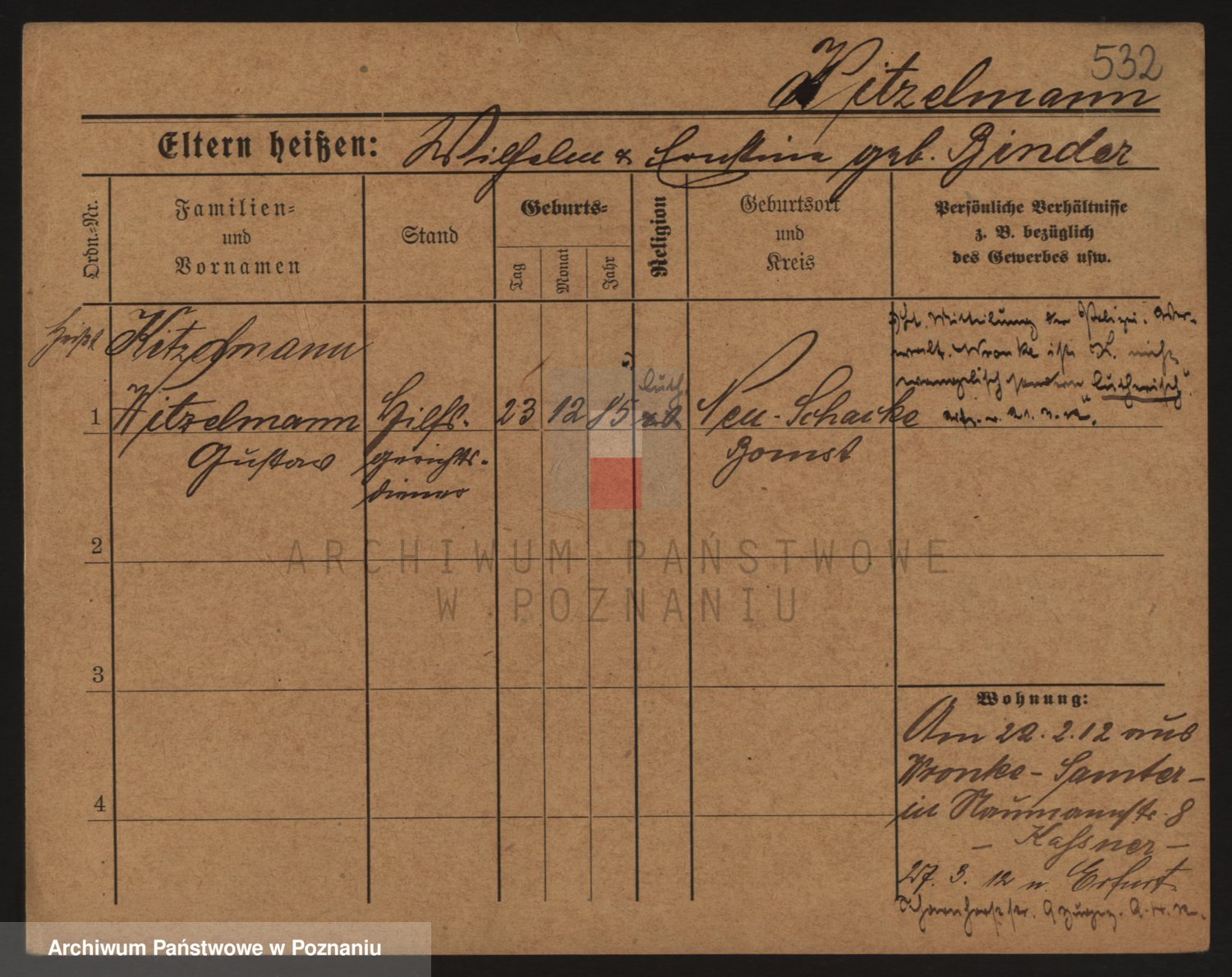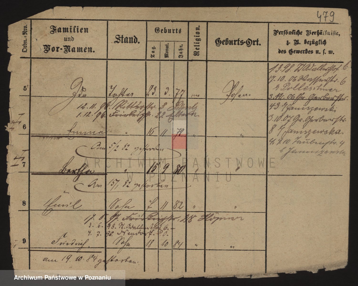 Podgląd karty osobowej dostępny jest po kliknięciu na nazwisko lub ikonkę karty. Można dokonywać powiększenia (ikony na górze) lub przechodzić między kolejnymi skanami (strzałki po bokach).