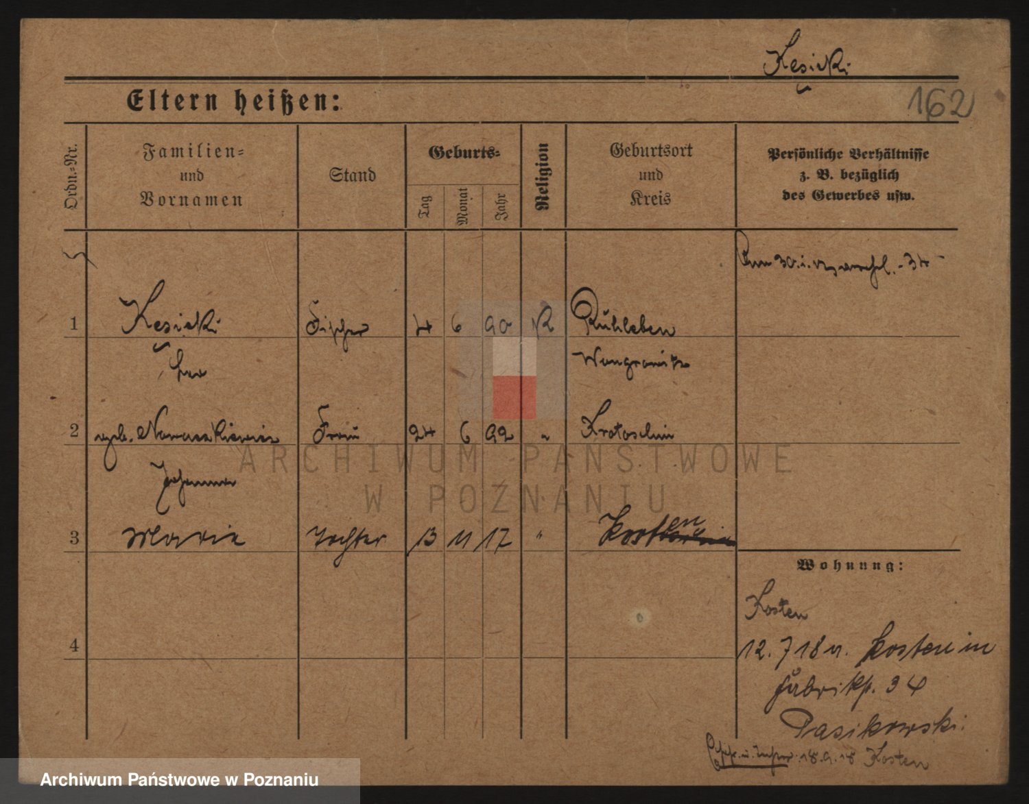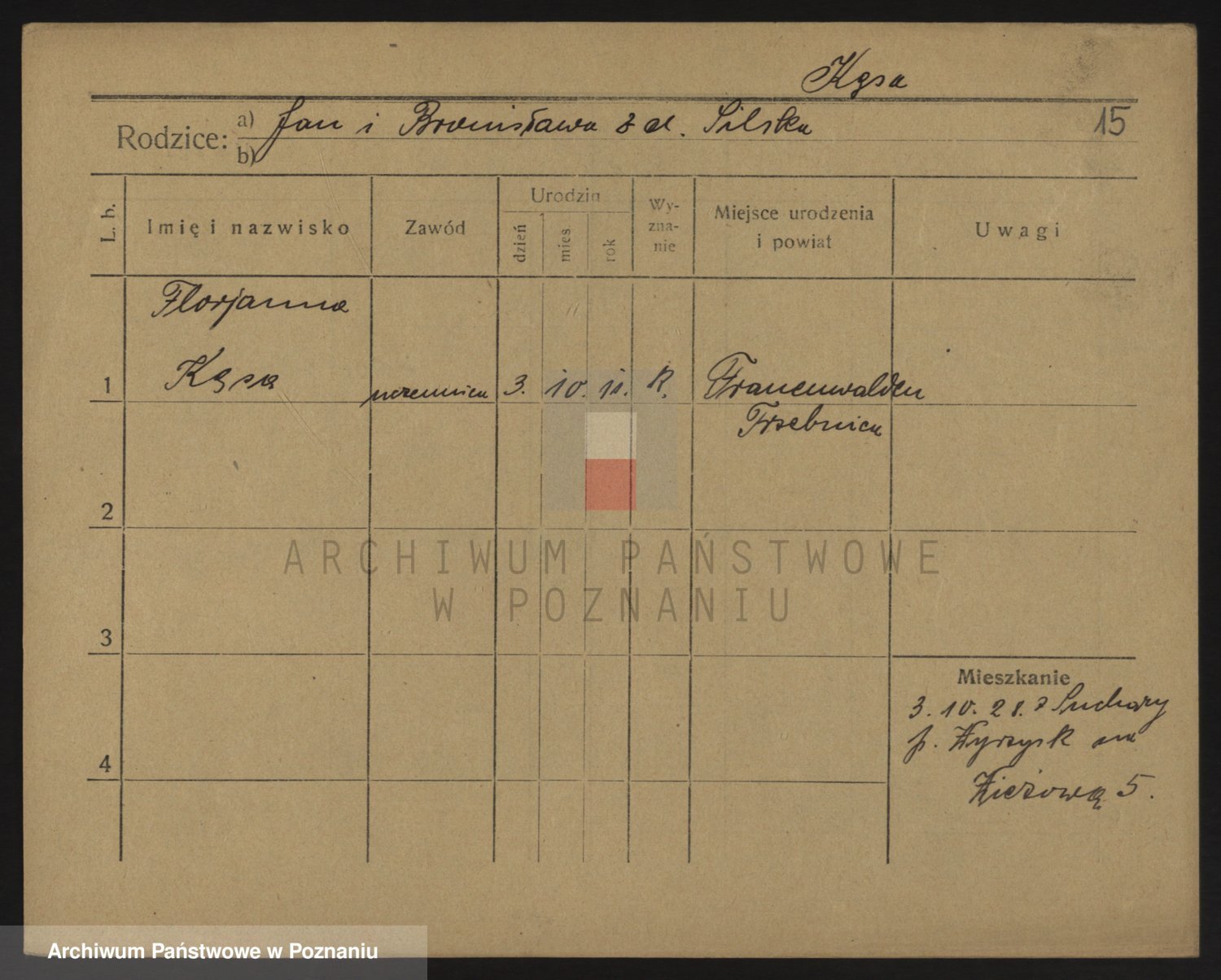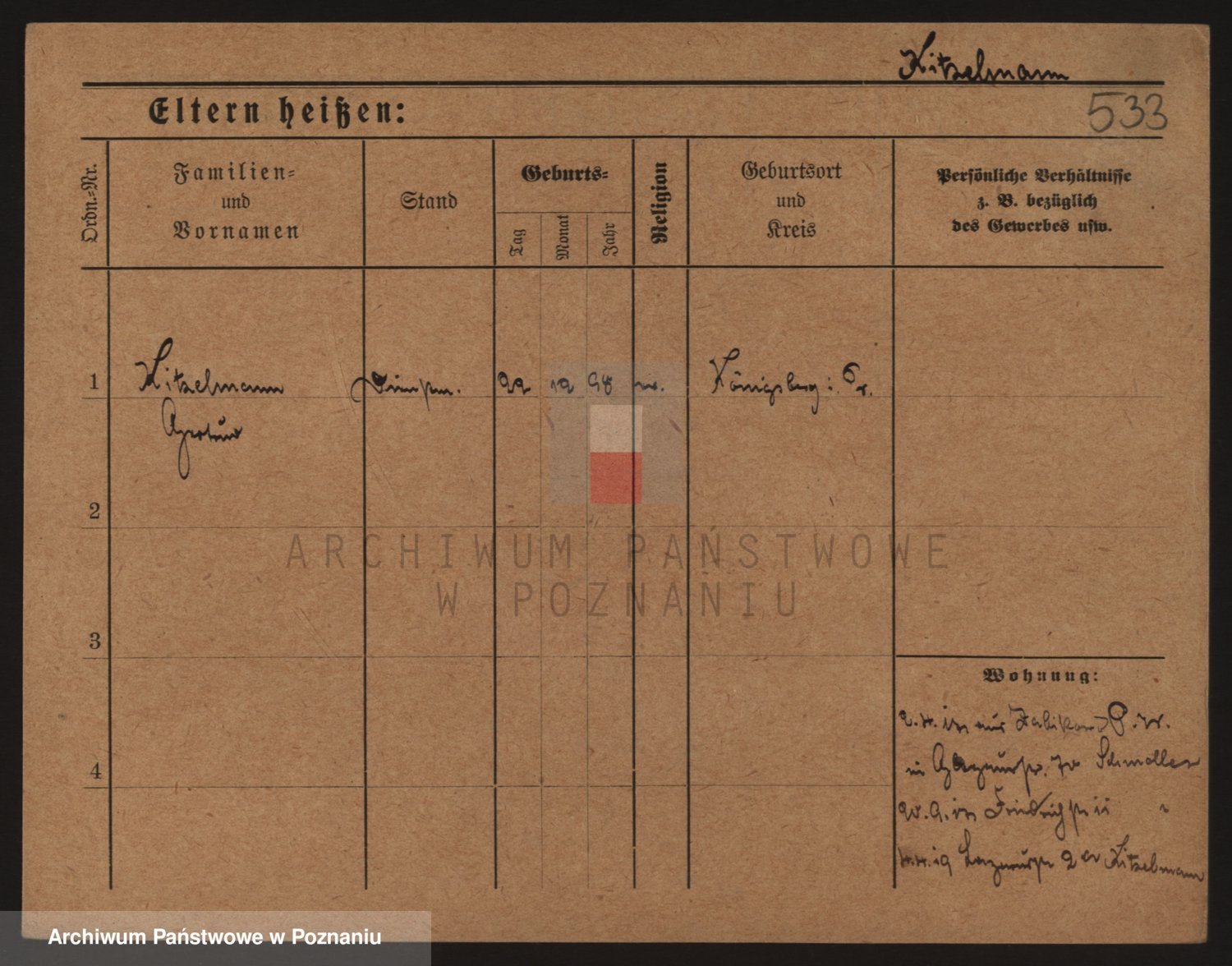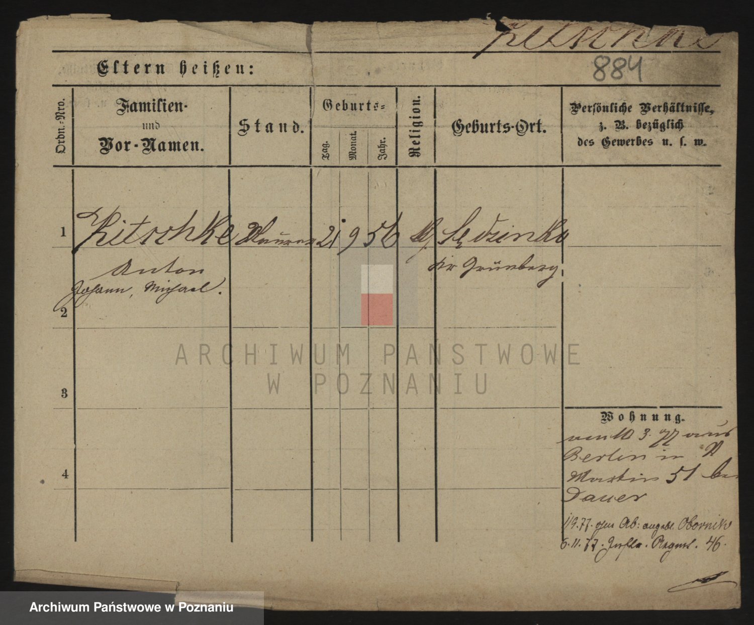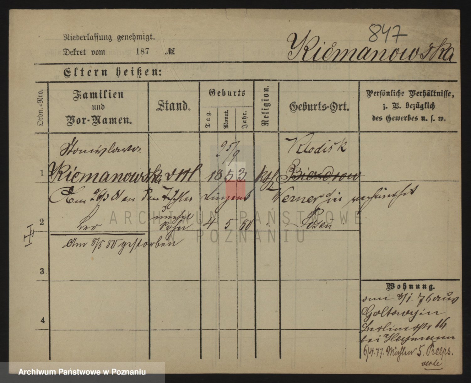 Podgląd karty osobowej dostępny jest po kliknięciu na nazwisko lub ikonkę karty. Można dokonywać powiększenia (ikony na górze) lub przechodzić między kolejnymi skanami (strzałki po bokach).