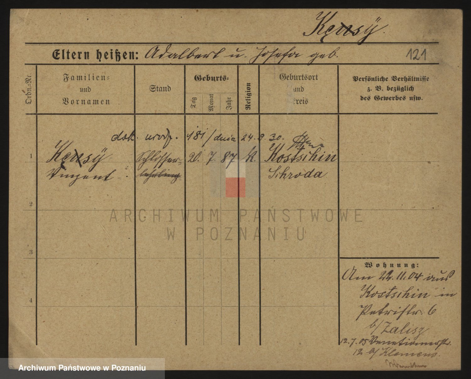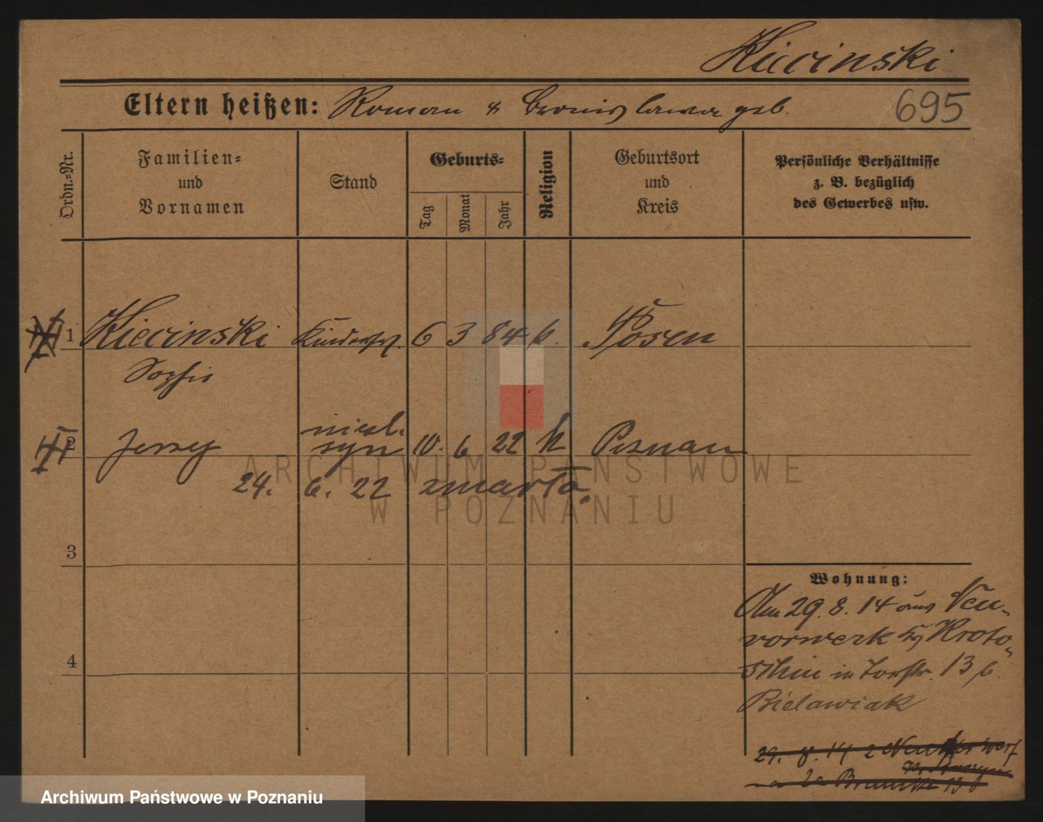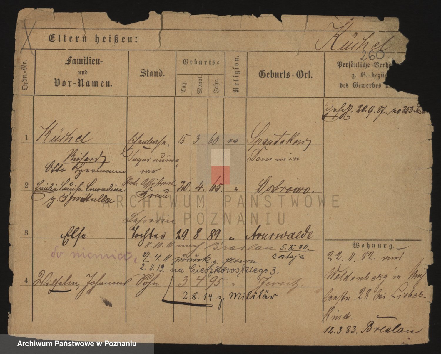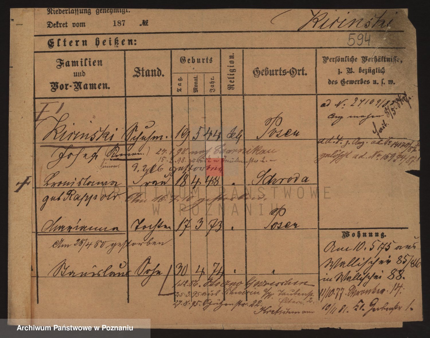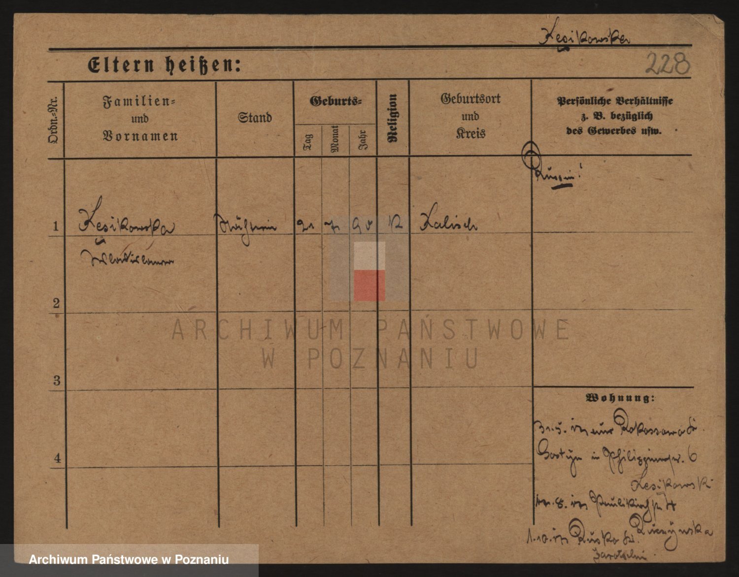Podgląd karty osobowej dostępny jest po kliknięciu na nazwisko lub ikonkę karty. Można dokonywać powiększenia (ikony na górze) lub przechodzić między kolejnymi skanami (strzałki po bokach).