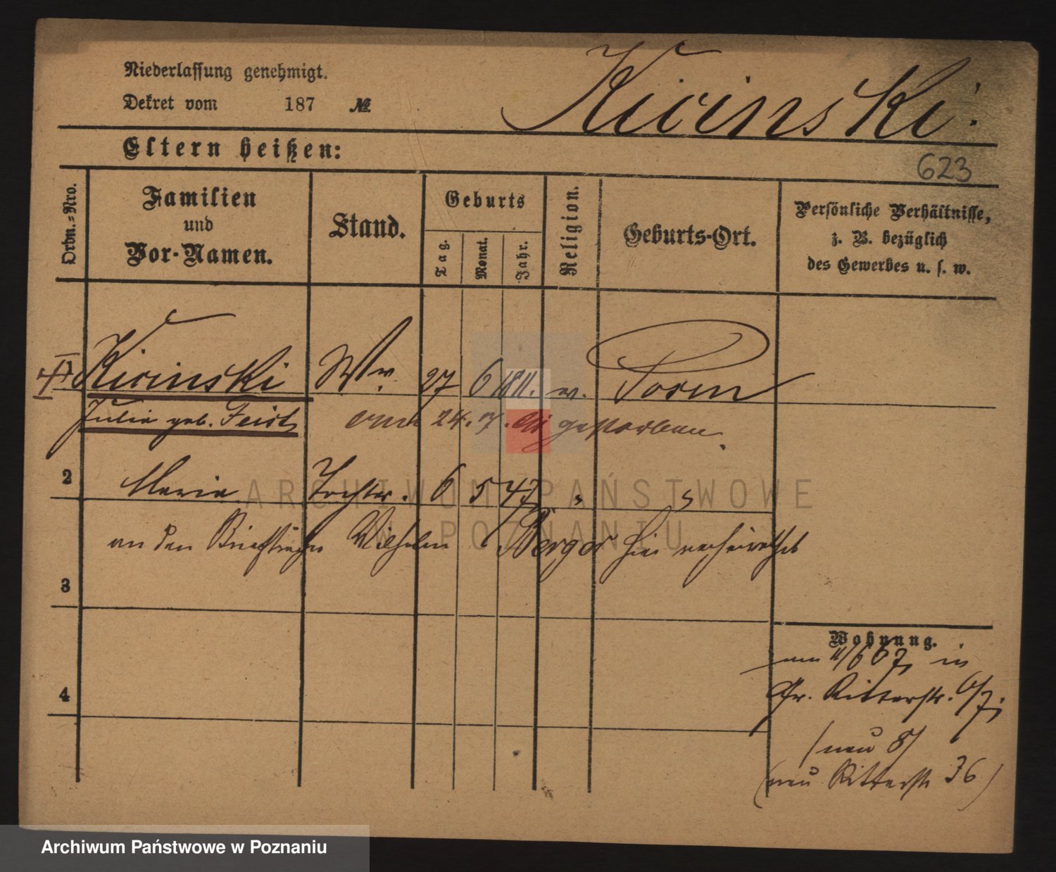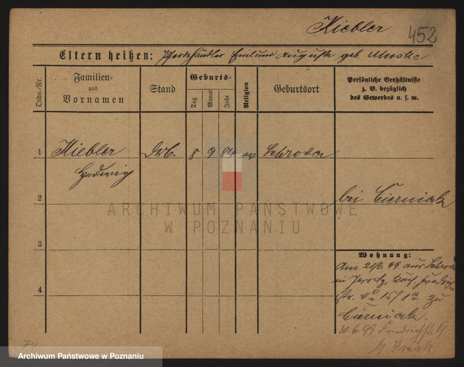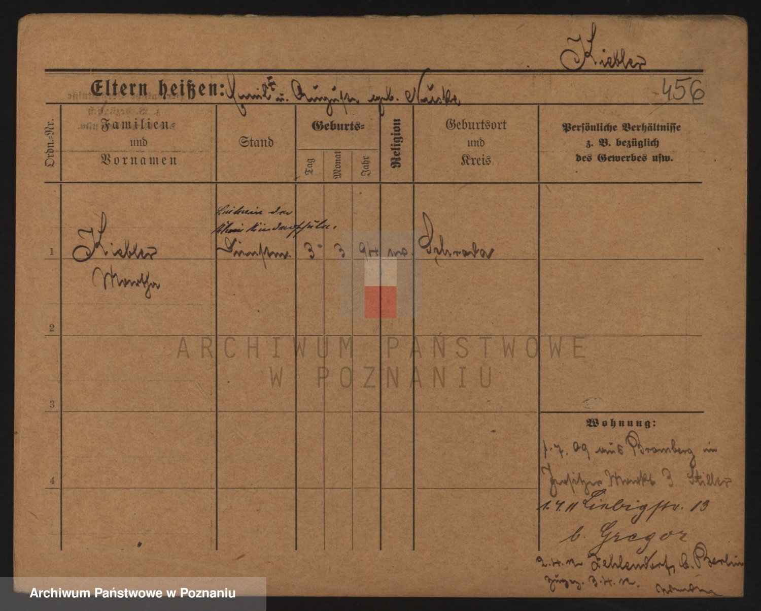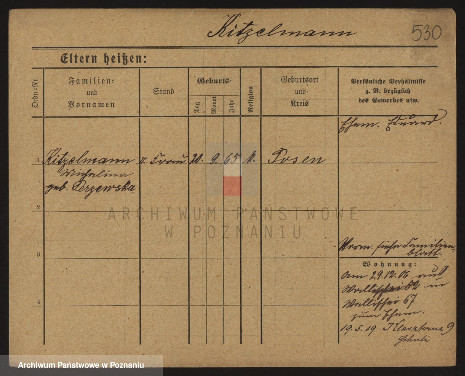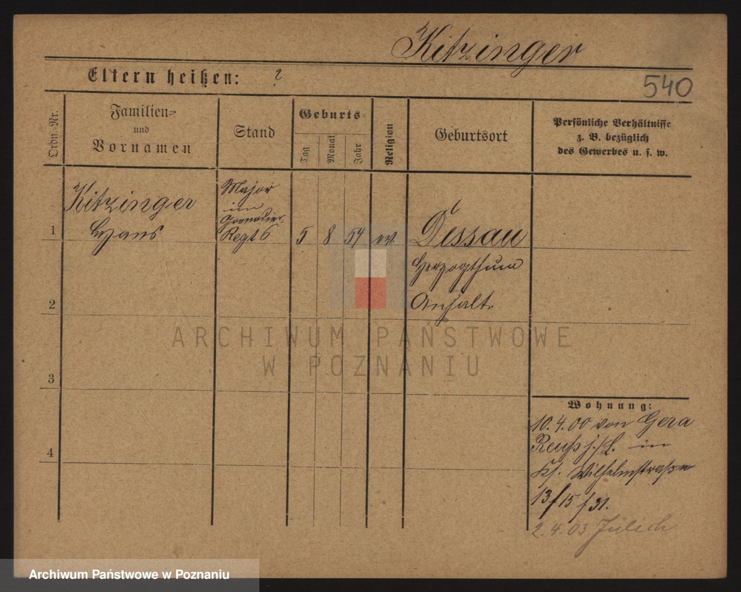 Podgląd karty osobowej dostępny jest po kliknięciu na nazwisko lub ikonkę karty. Można dokonywać powiększenia (ikony na górze) lub przechodzić między kolejnymi skanami (strzałki po bokach).