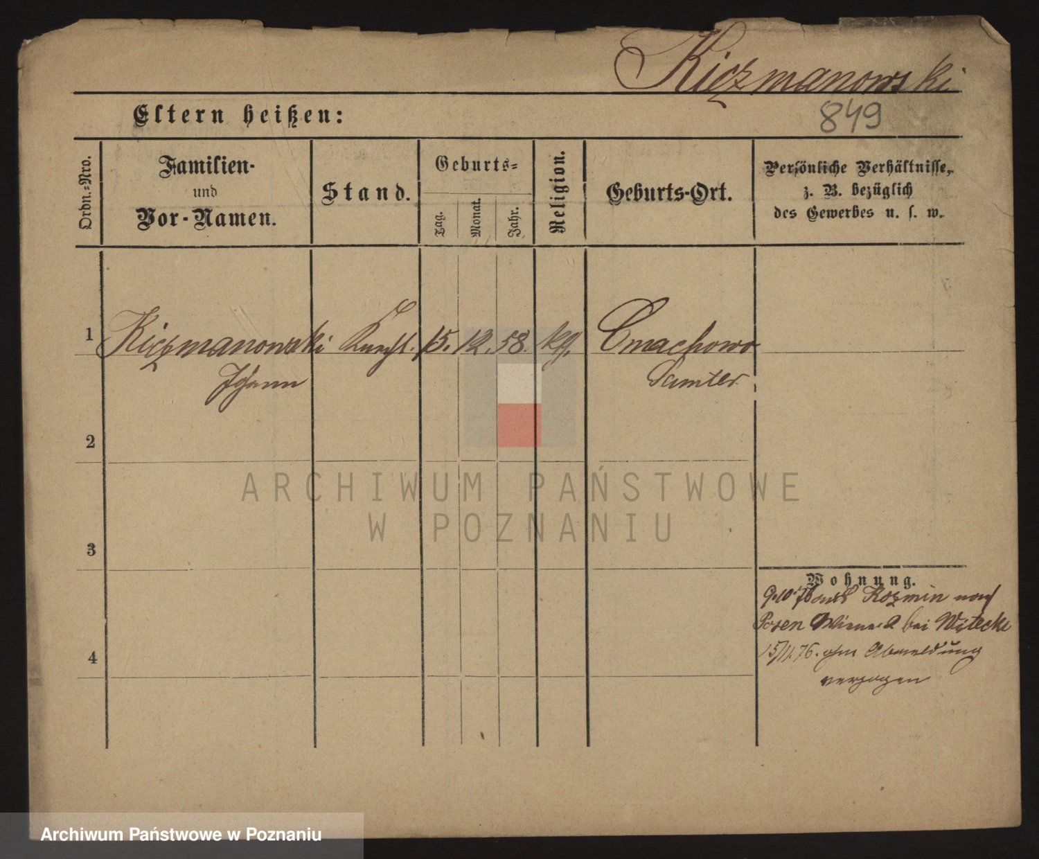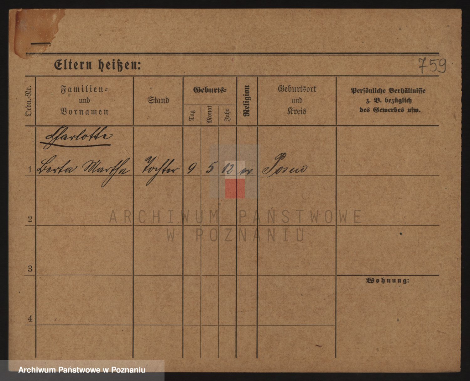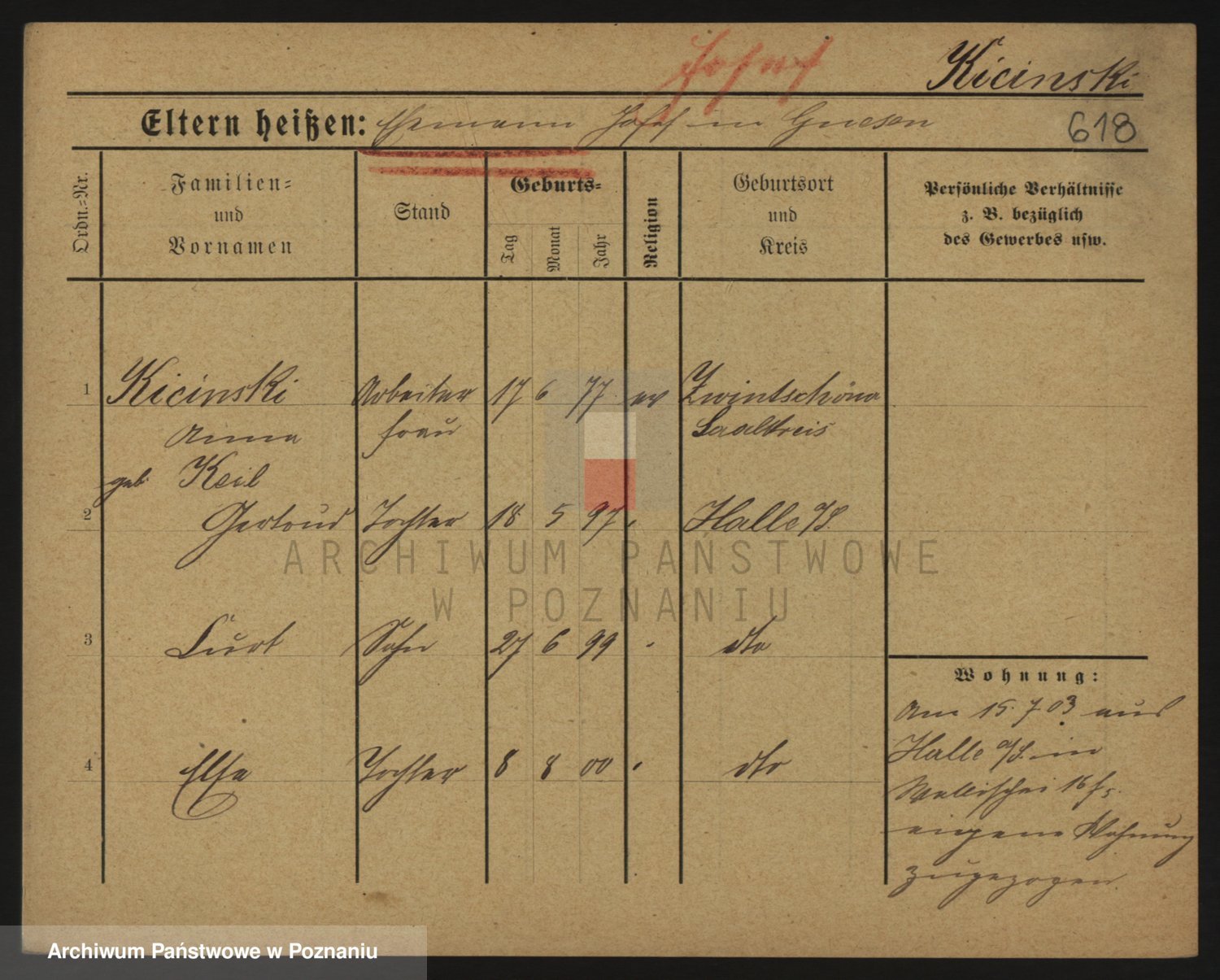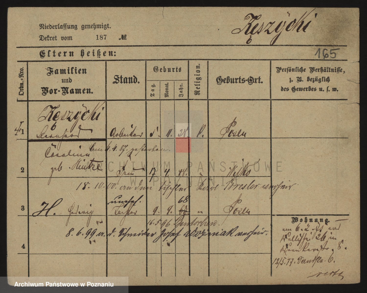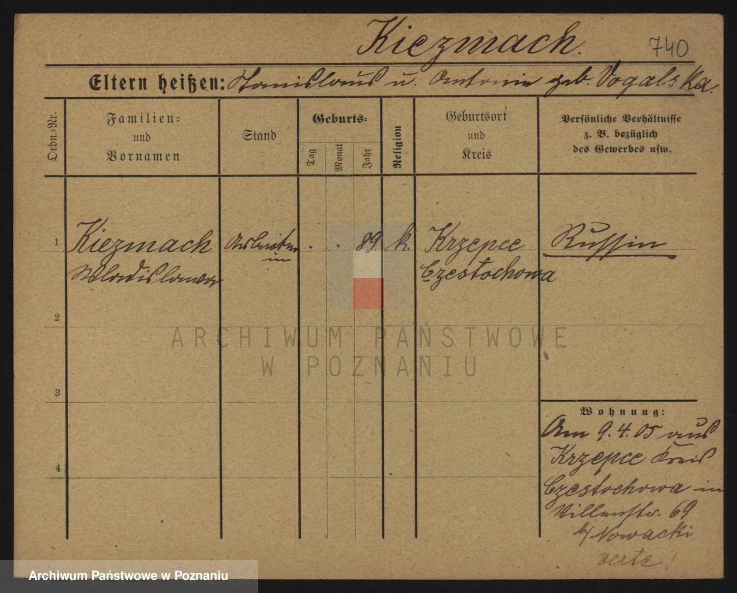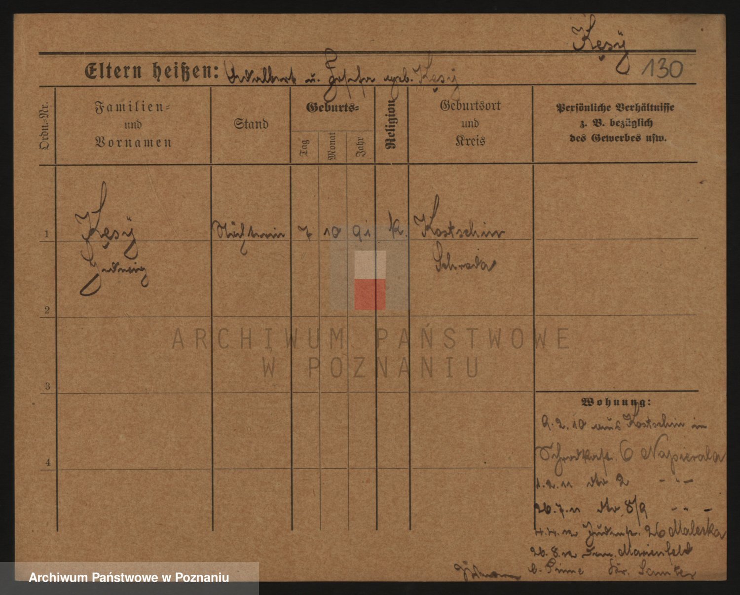 Podgląd karty osobowej dostępny jest po kliknięciu na nazwisko lub ikonkę karty. Można dokonywać powiększenia (ikony na górze) lub przechodzić między kolejnymi skanami (strzałki po bokach).