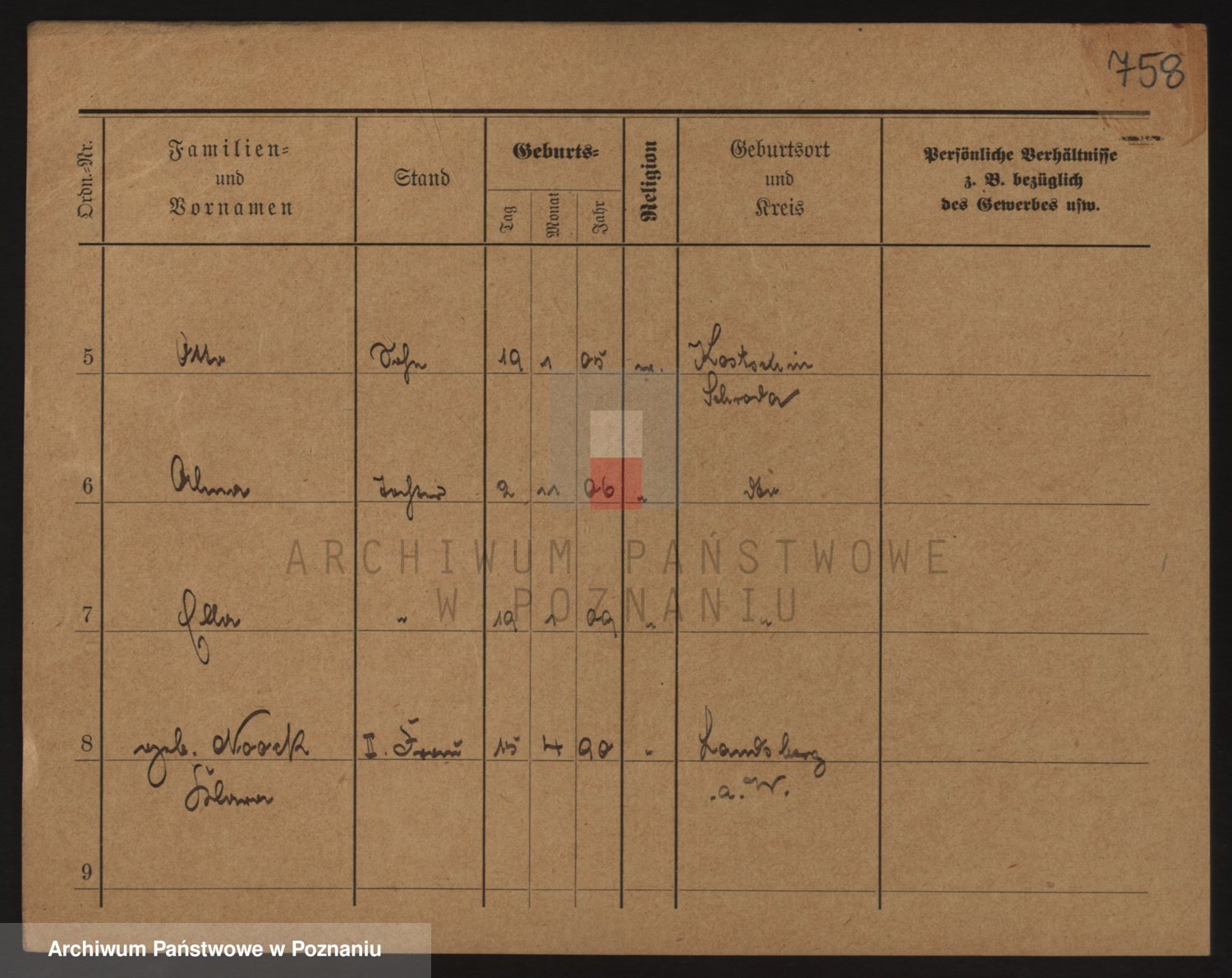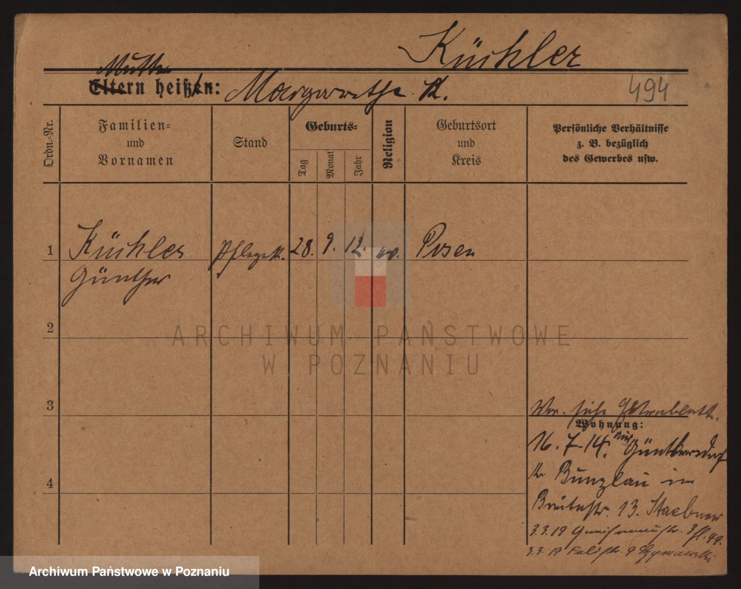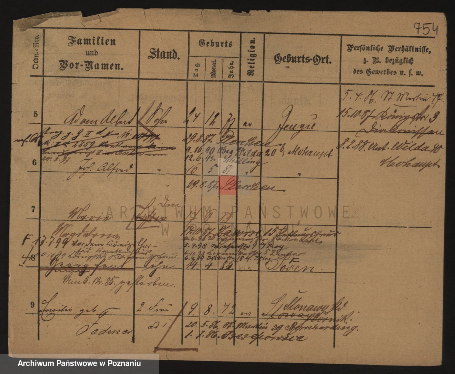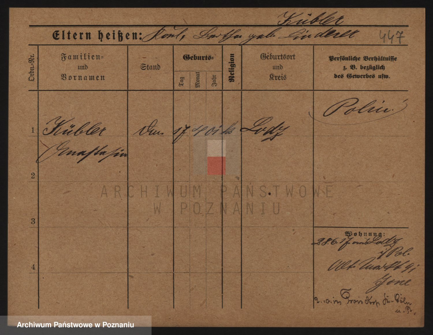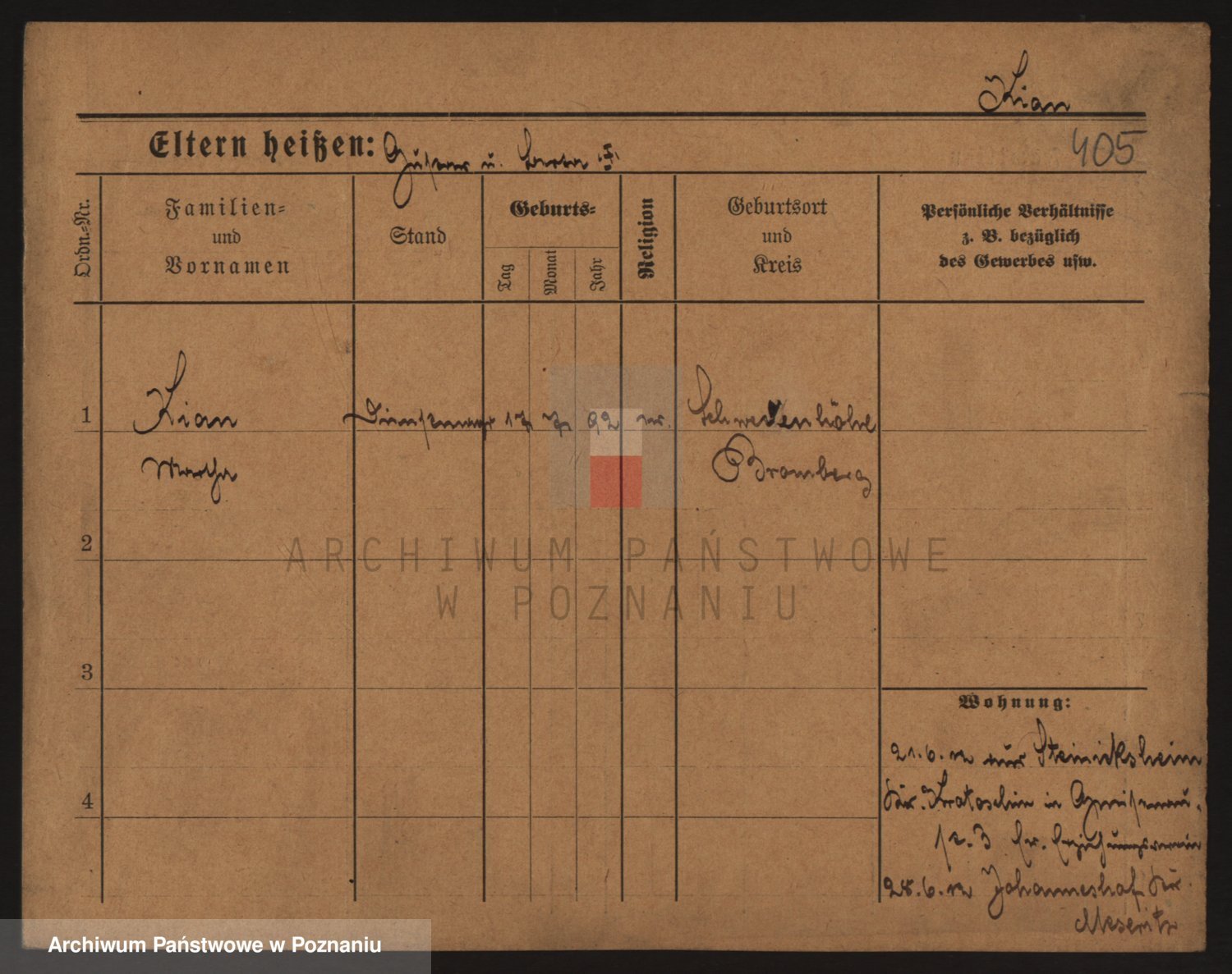 Podgląd karty osobowej dostępny jest po kliknięciu na nazwisko lub ikonkę karty. Można dokonywać powiększenia (ikony na górze) lub przechodzić między kolejnymi skanami (strzałki po bokach).