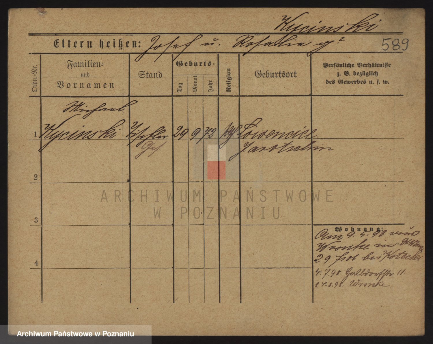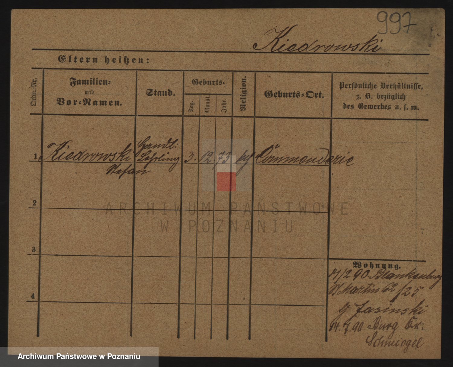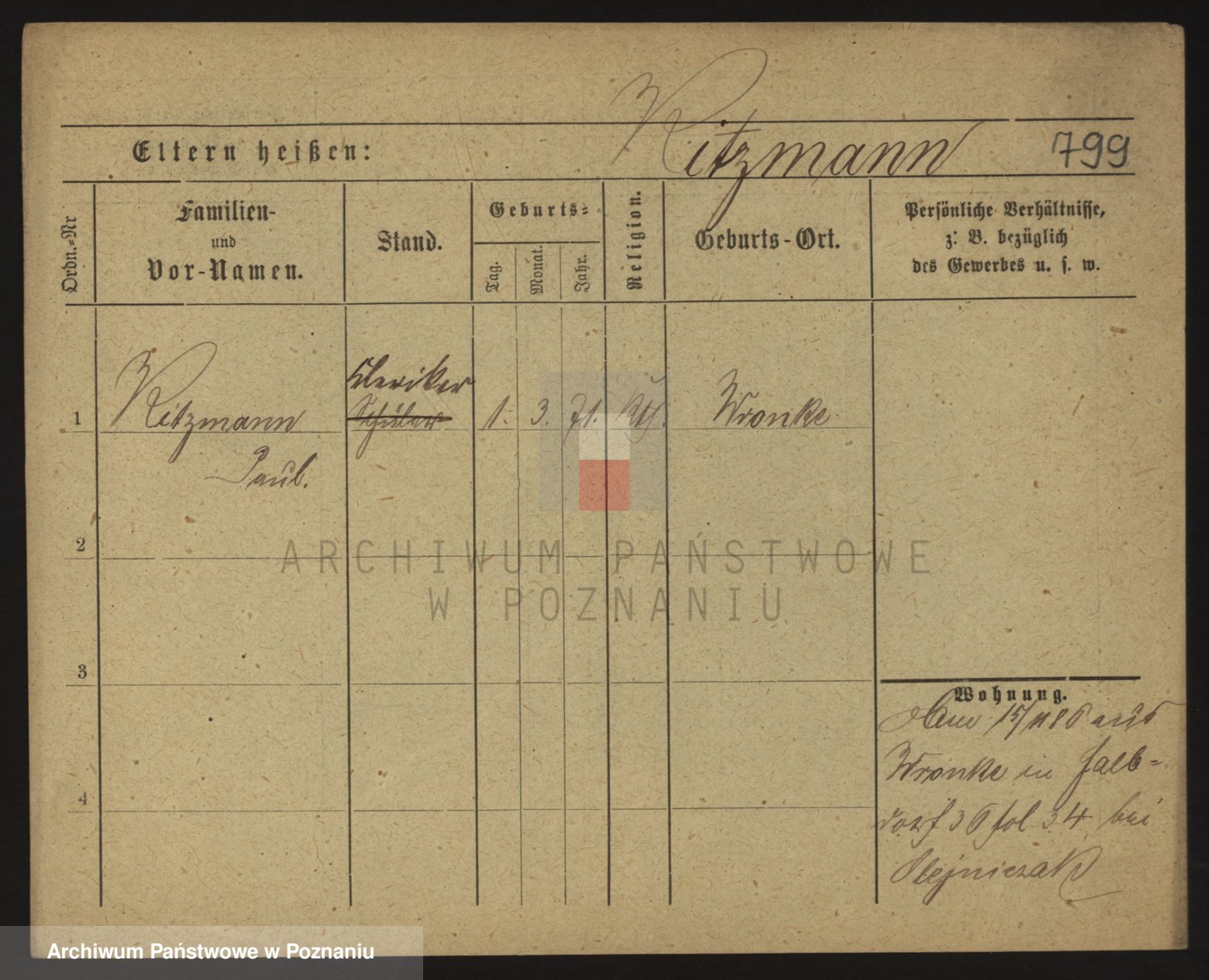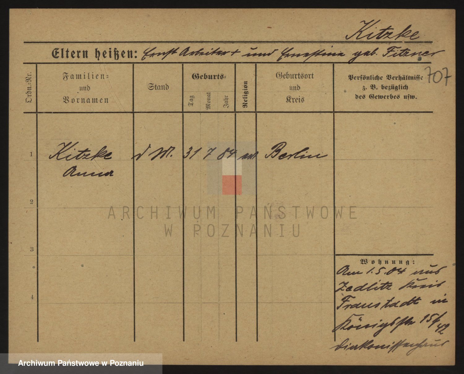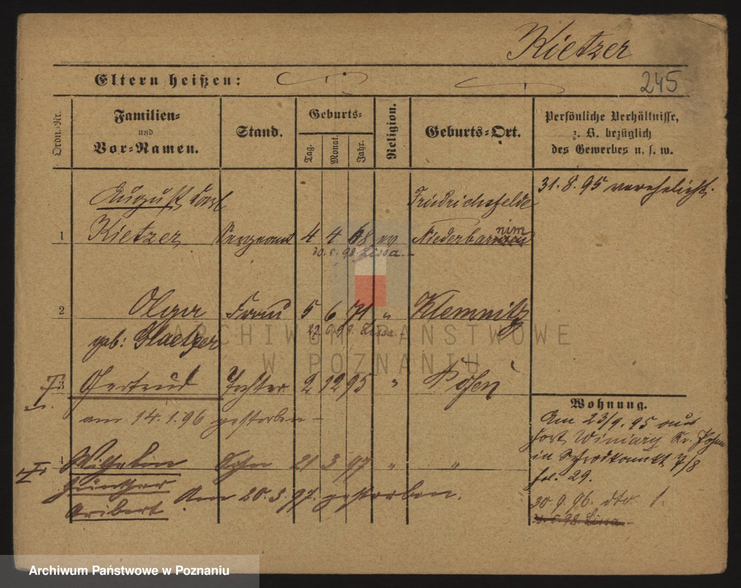 Podgląd karty osobowej dostępny jest po kliknięciu na nazwisko lub ikonkę karty. Można dokonywać powiększenia (ikony na górze) lub przechodzić między kolejnymi skanami (strzałki po bokach).