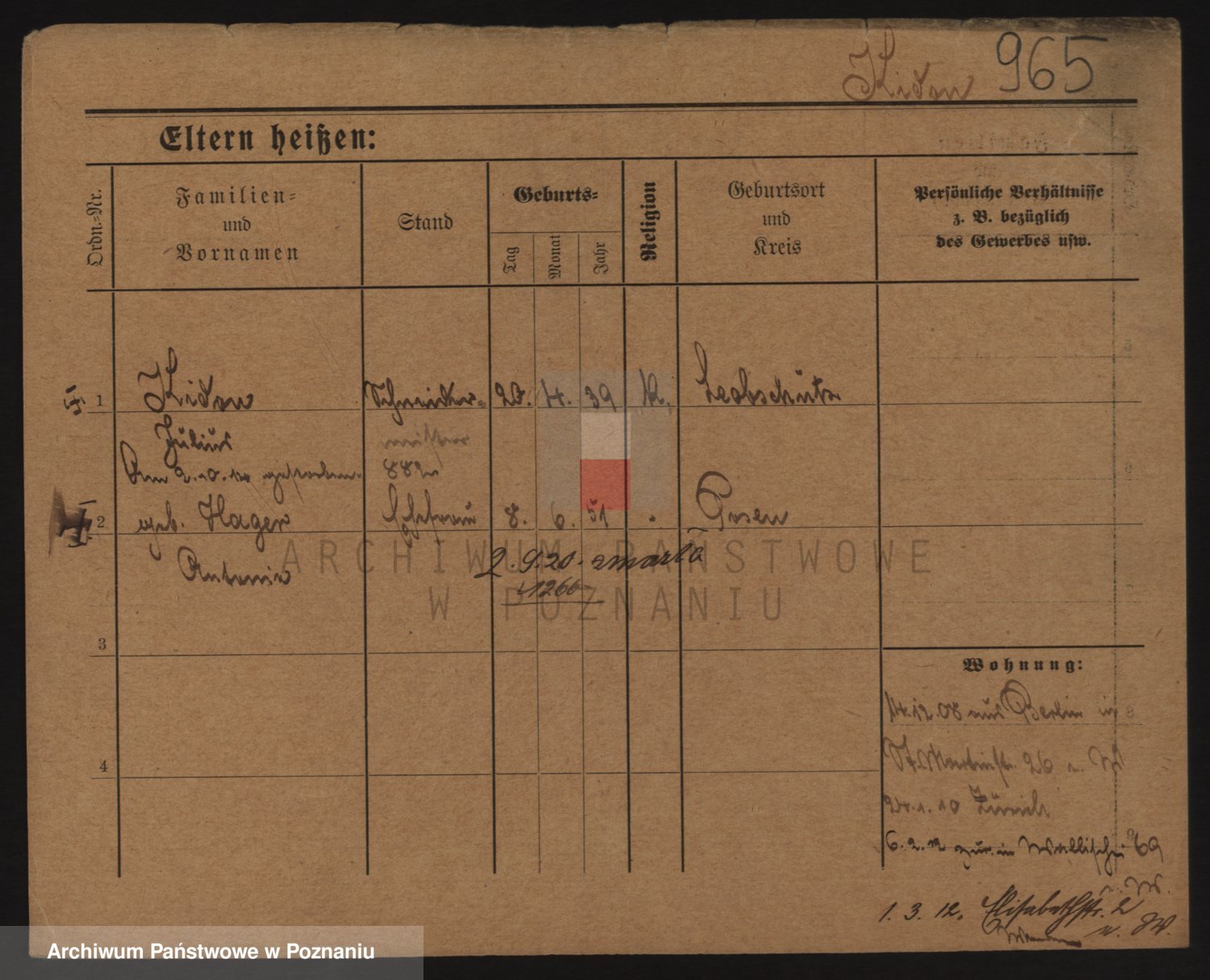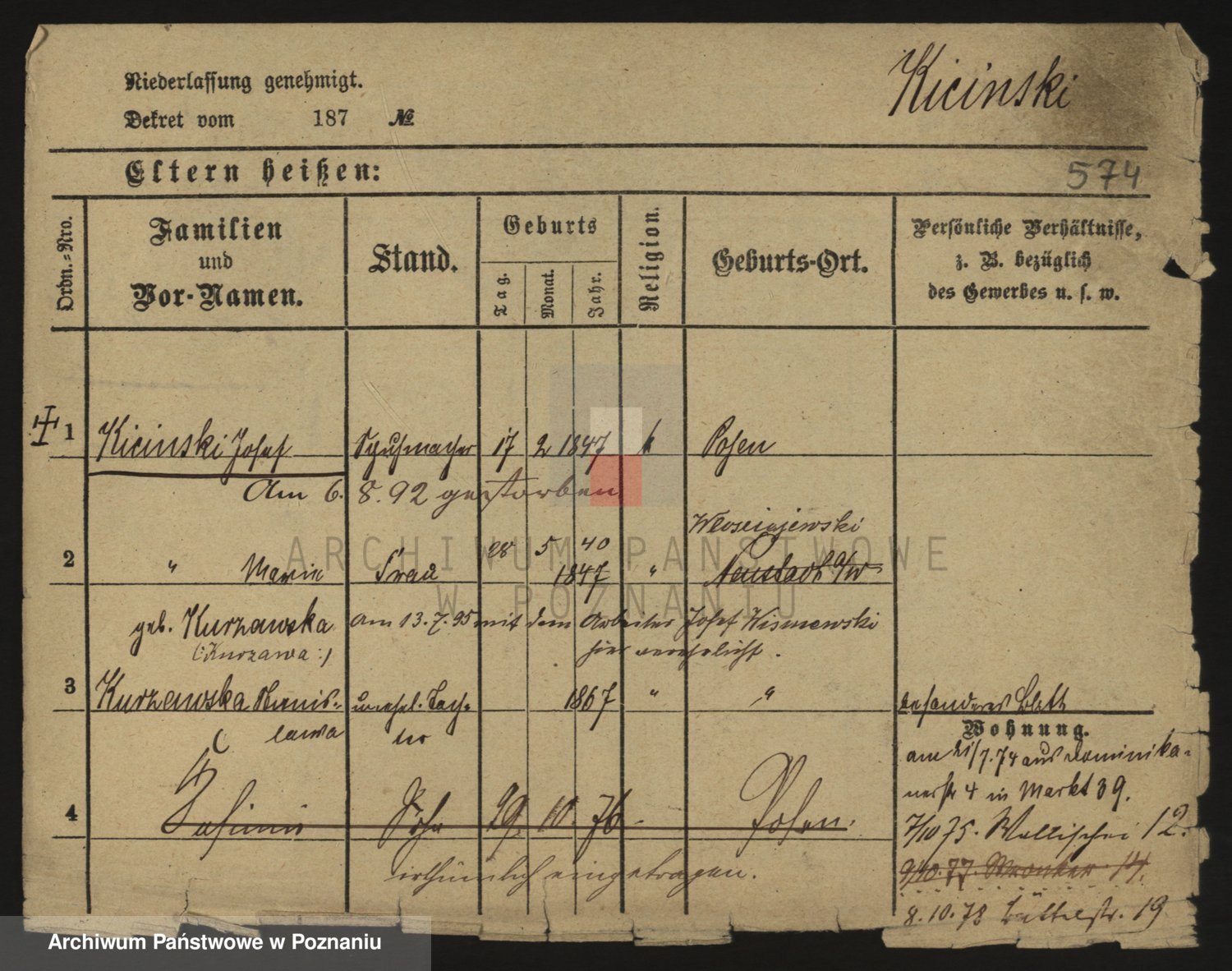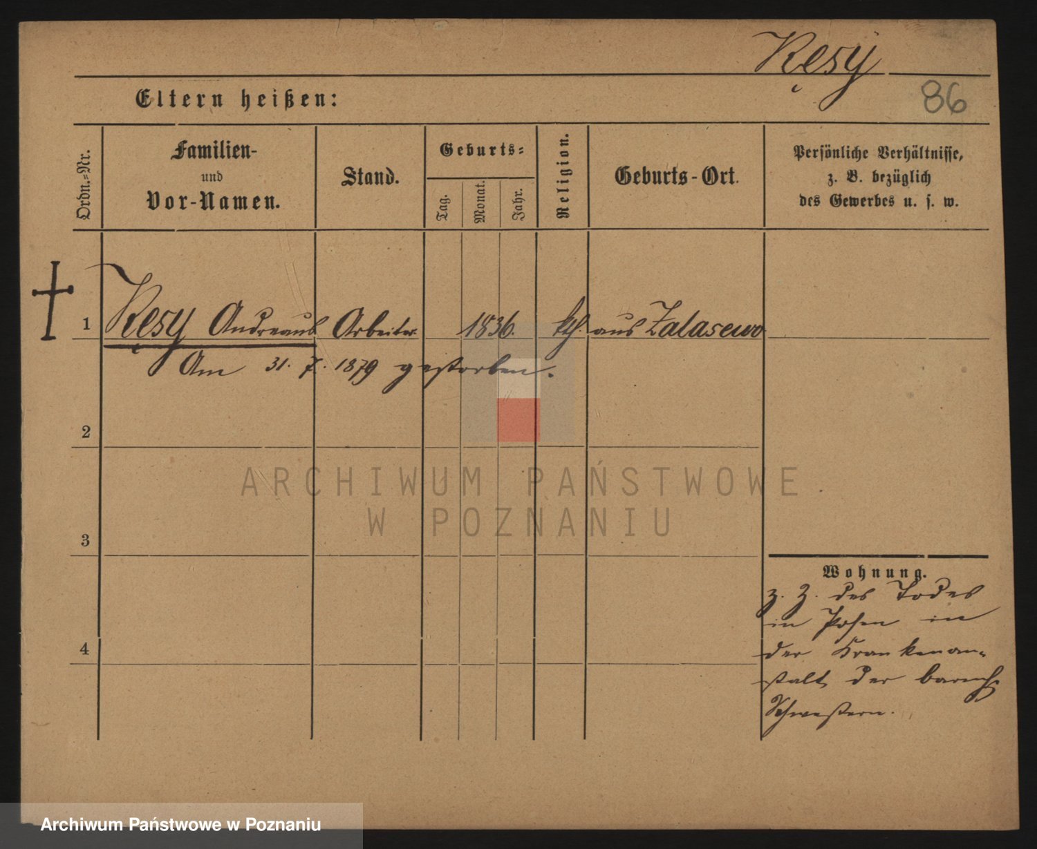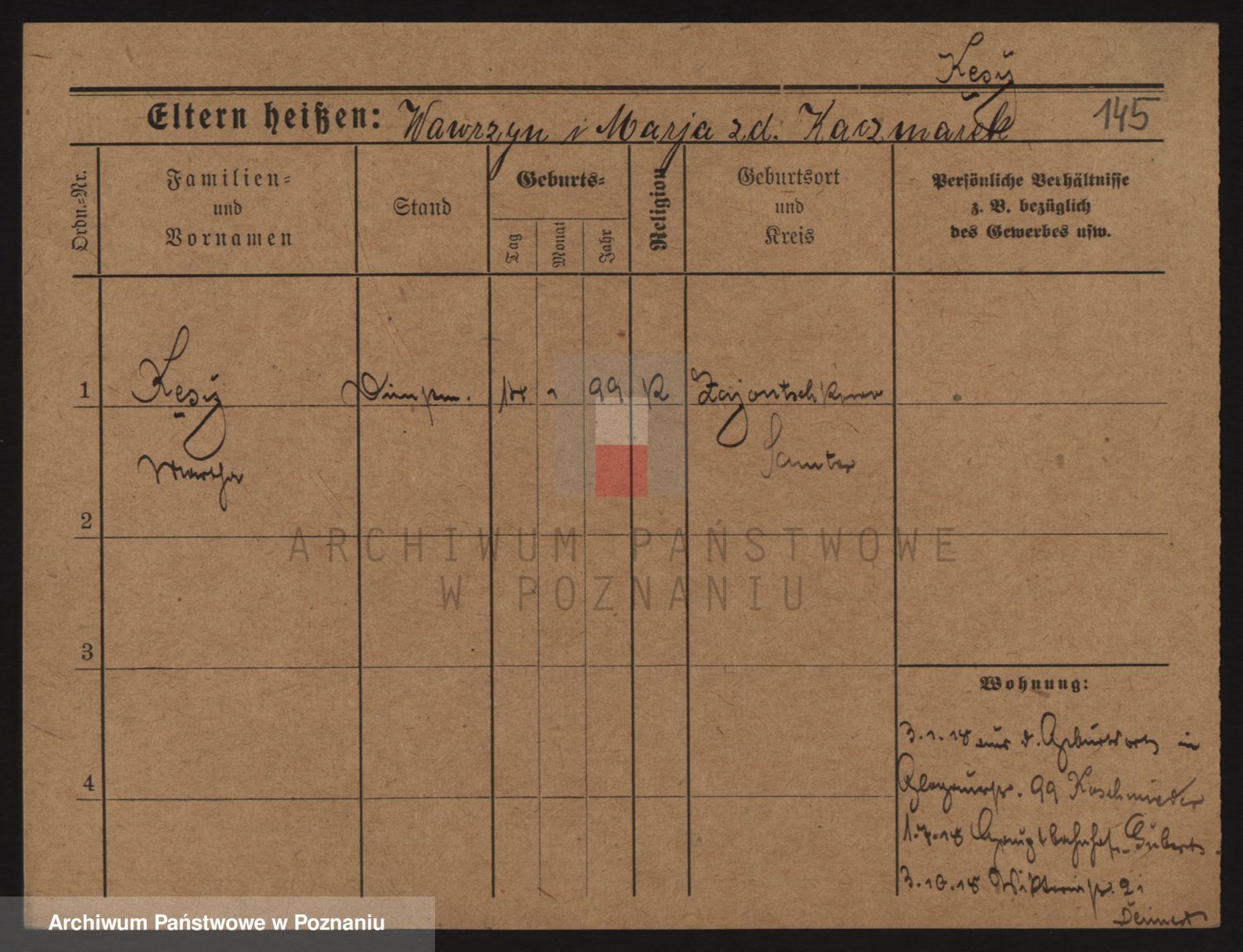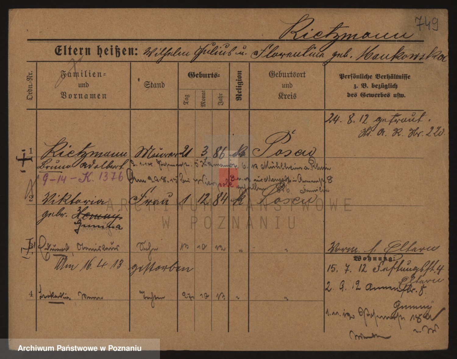 Podgląd karty osobowej dostępny jest po kliknięciu na nazwisko lub ikonkę karty. Można dokonywać powiększenia (ikony na górze) lub przechodzić między kolejnymi skanami (strzałki po bokach).