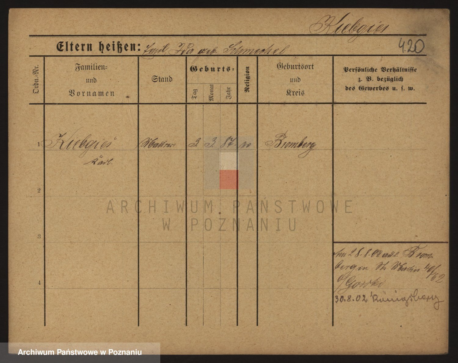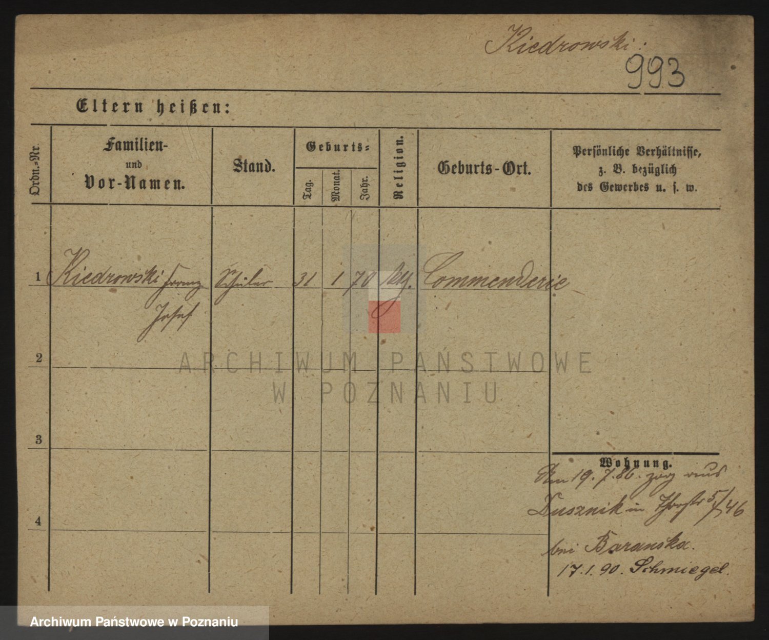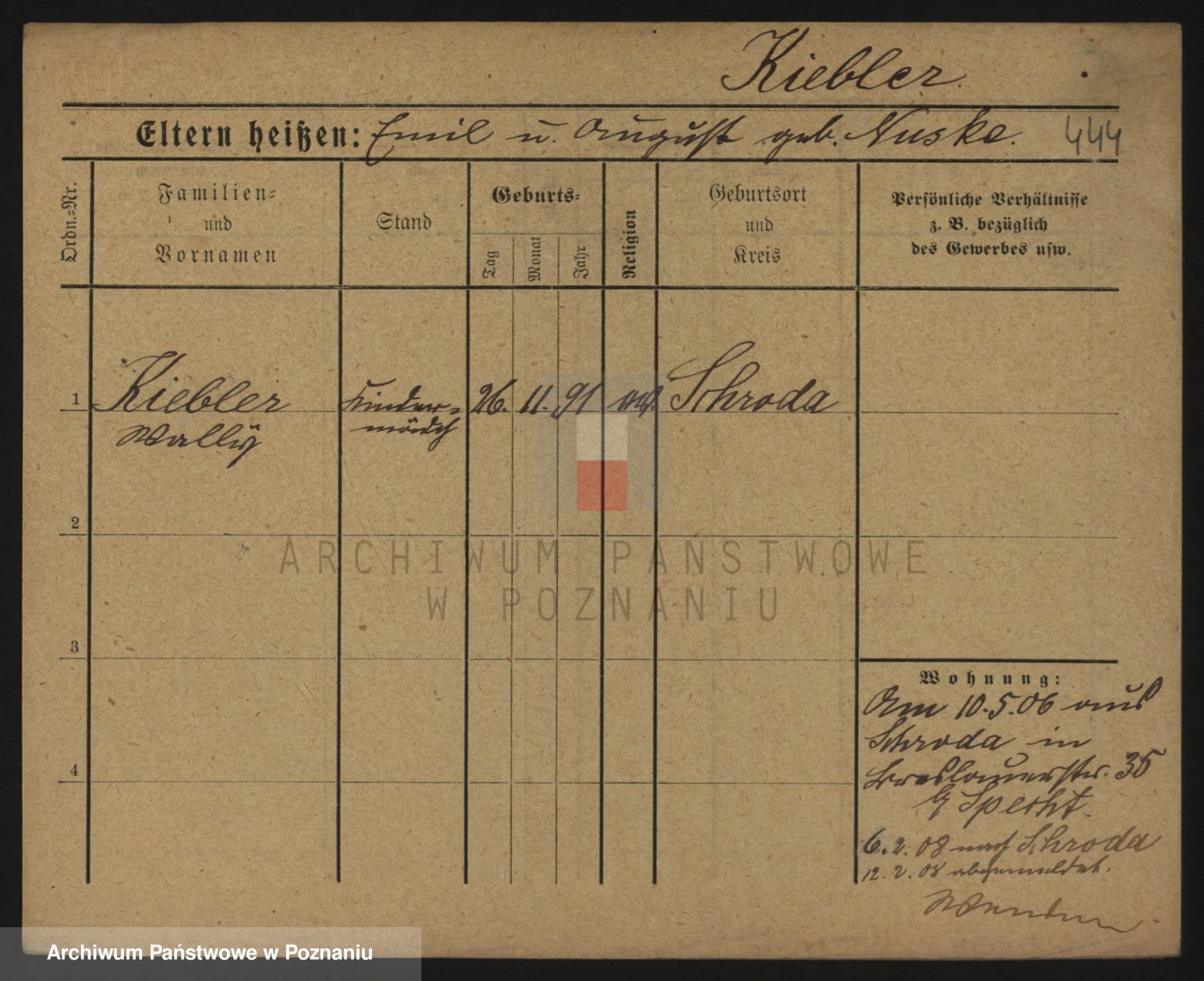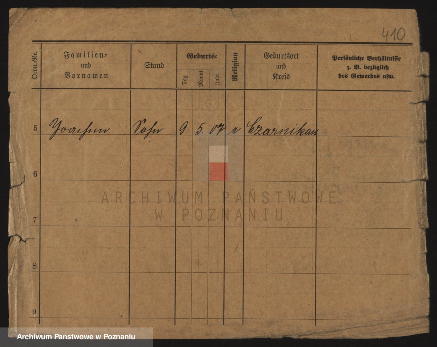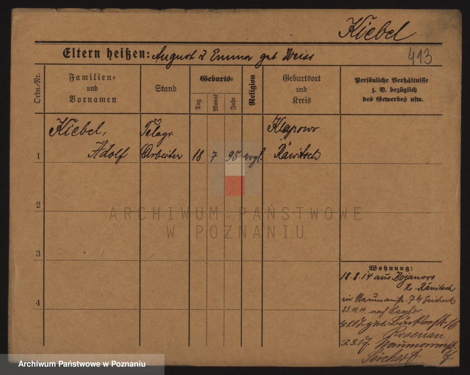 Podgląd karty osobowej dostępny jest po kliknięciu na nazwisko lub ikonkę karty. Można dokonywać powiększenia (ikony na górze) lub przechodzić między kolejnymi skanami (strzałki po bokach).