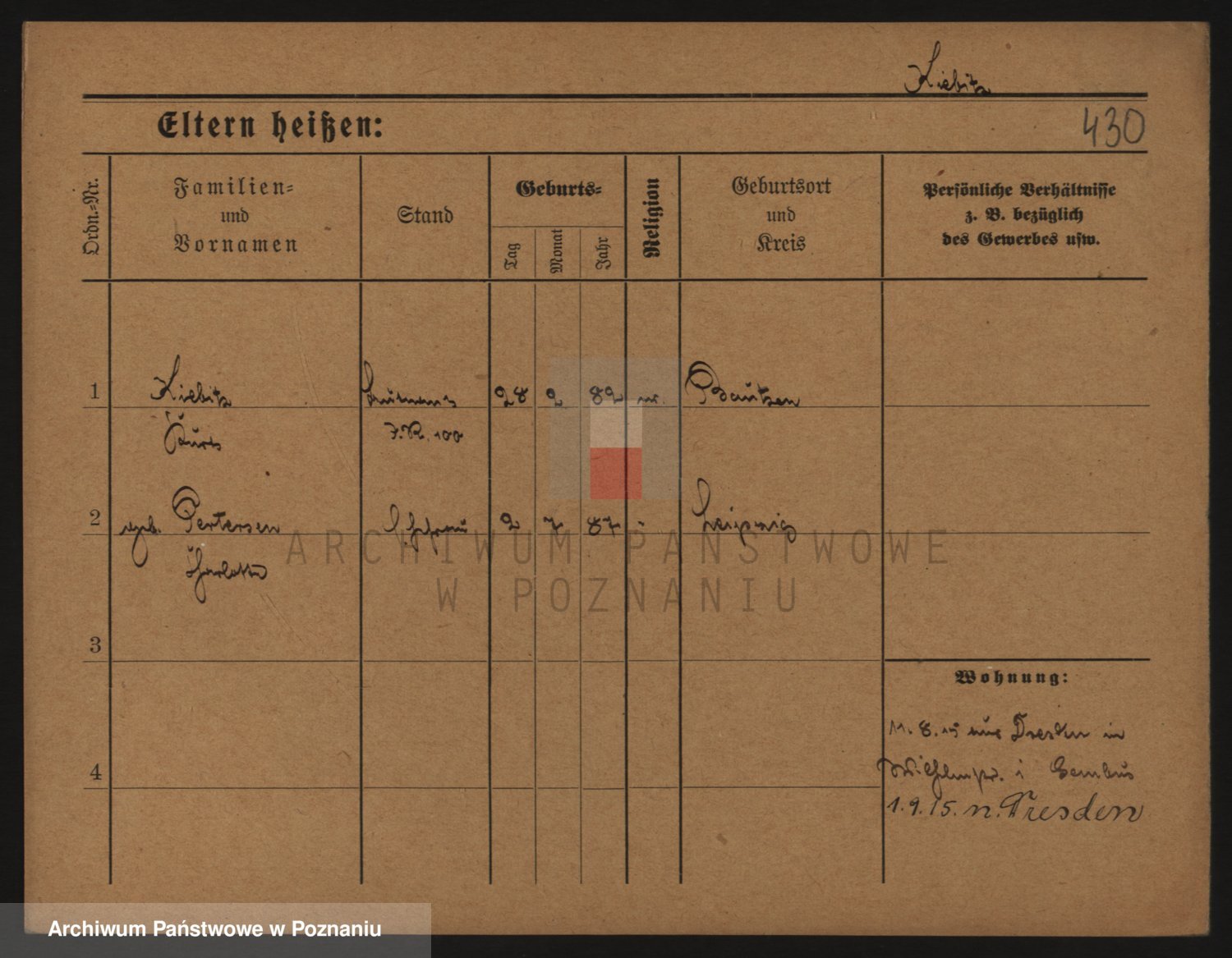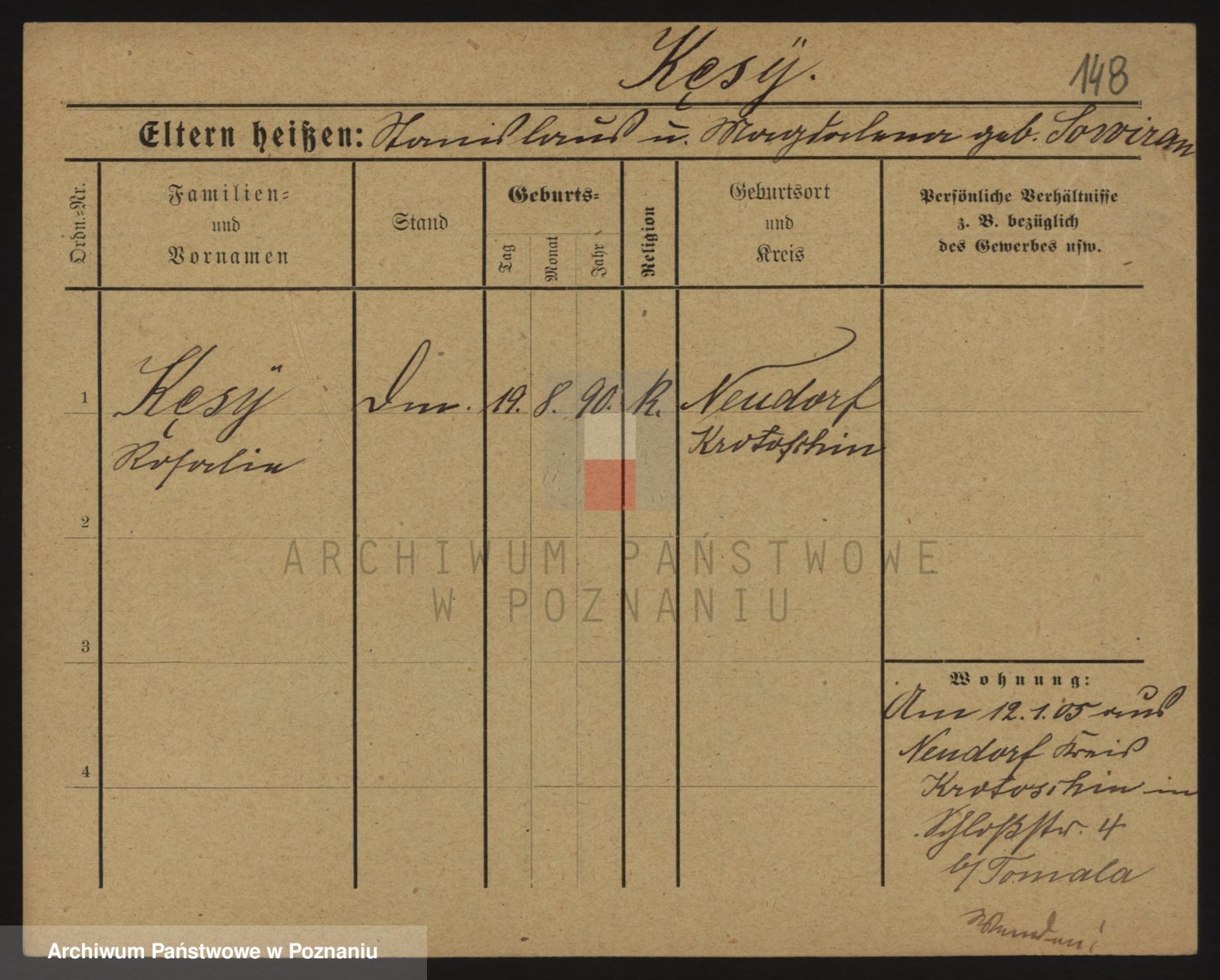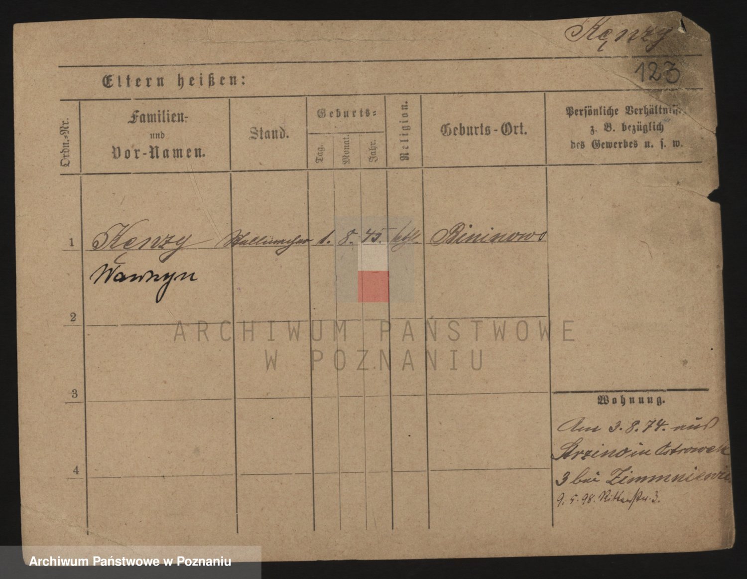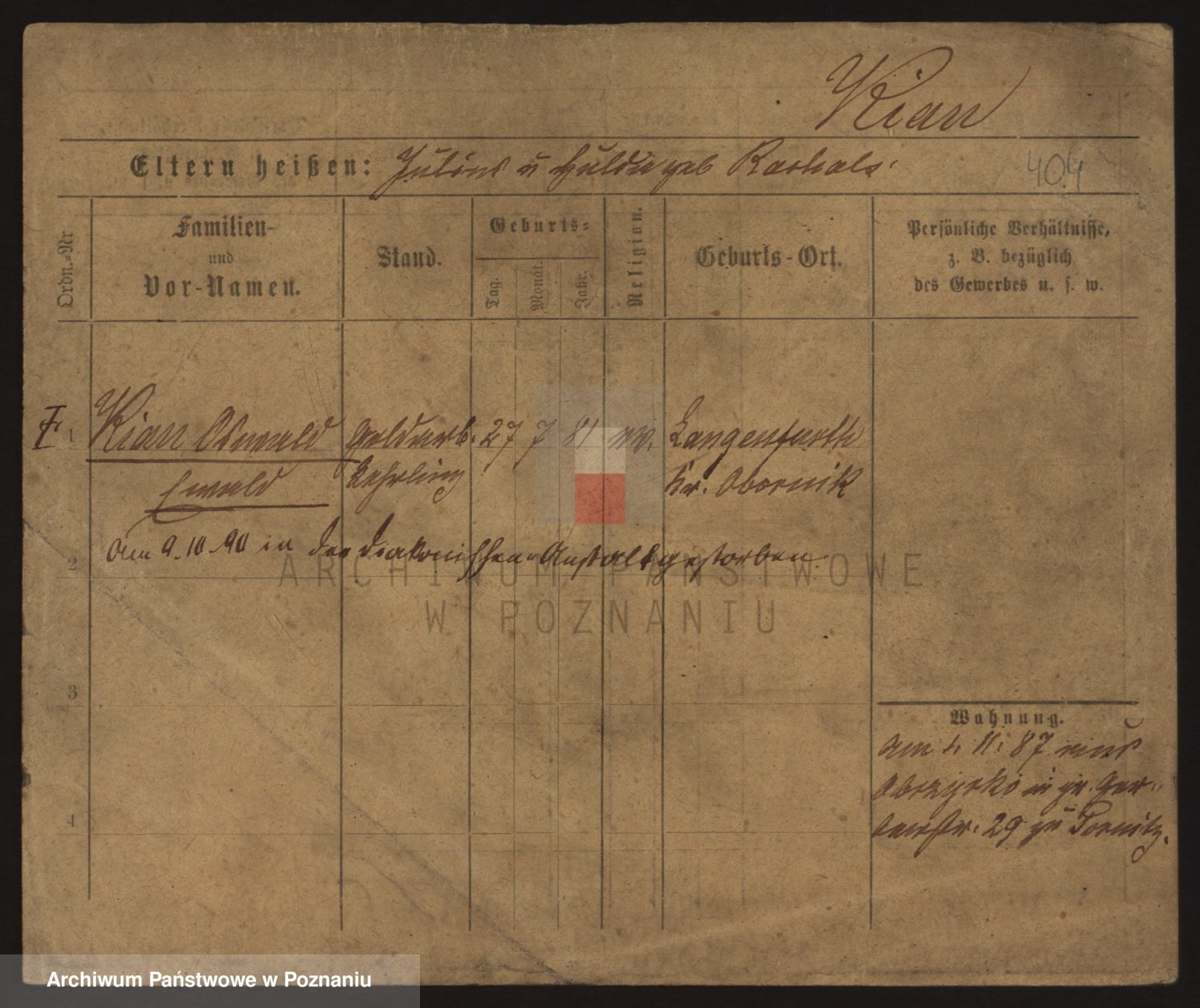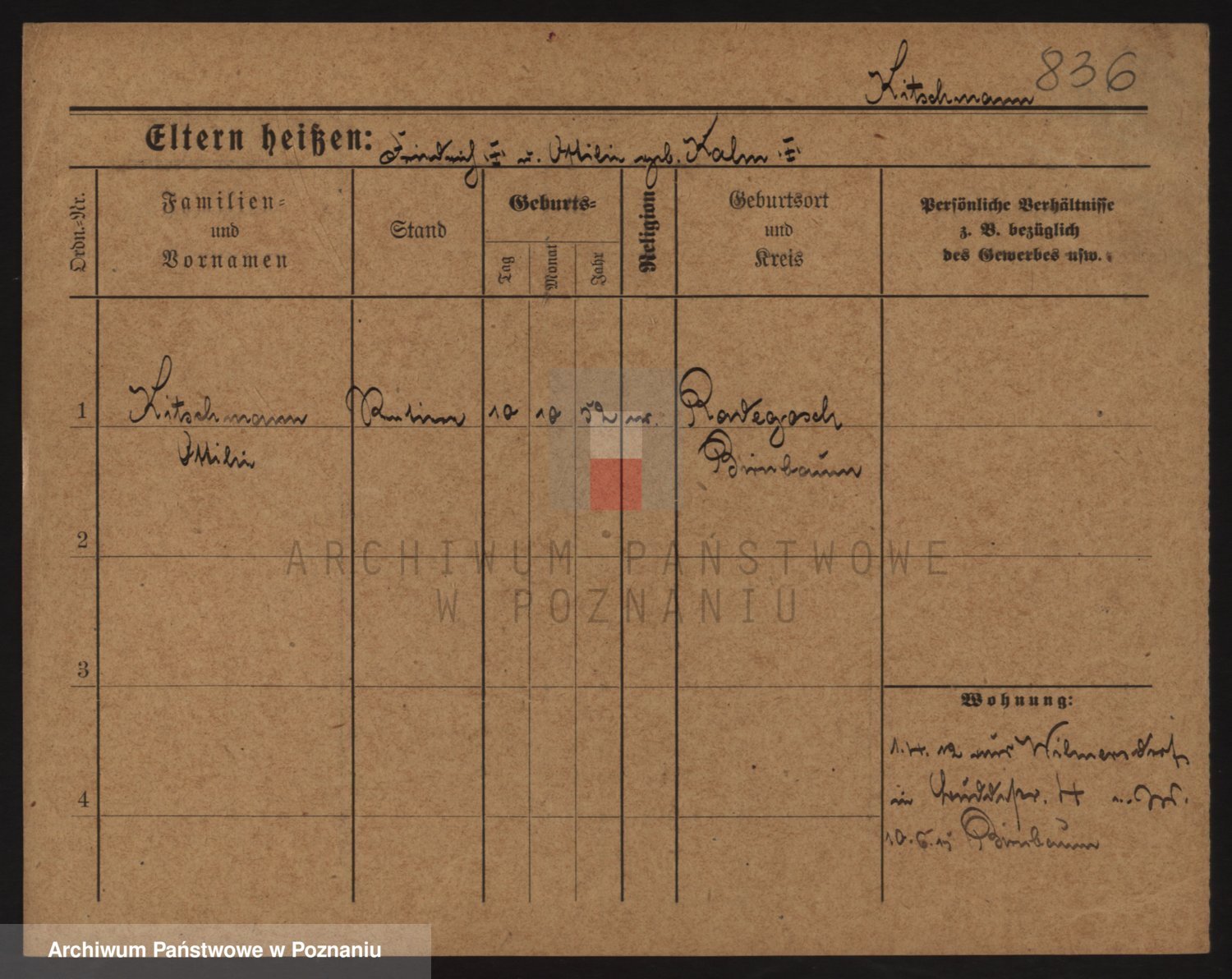 Podgląd karty osobowej dostępny jest po kliknięciu na nazwisko lub ikonkę karty. Można dokonywać powiększenia (ikony na górze) lub przechodzić między kolejnymi skanami (strzałki po bokach).
