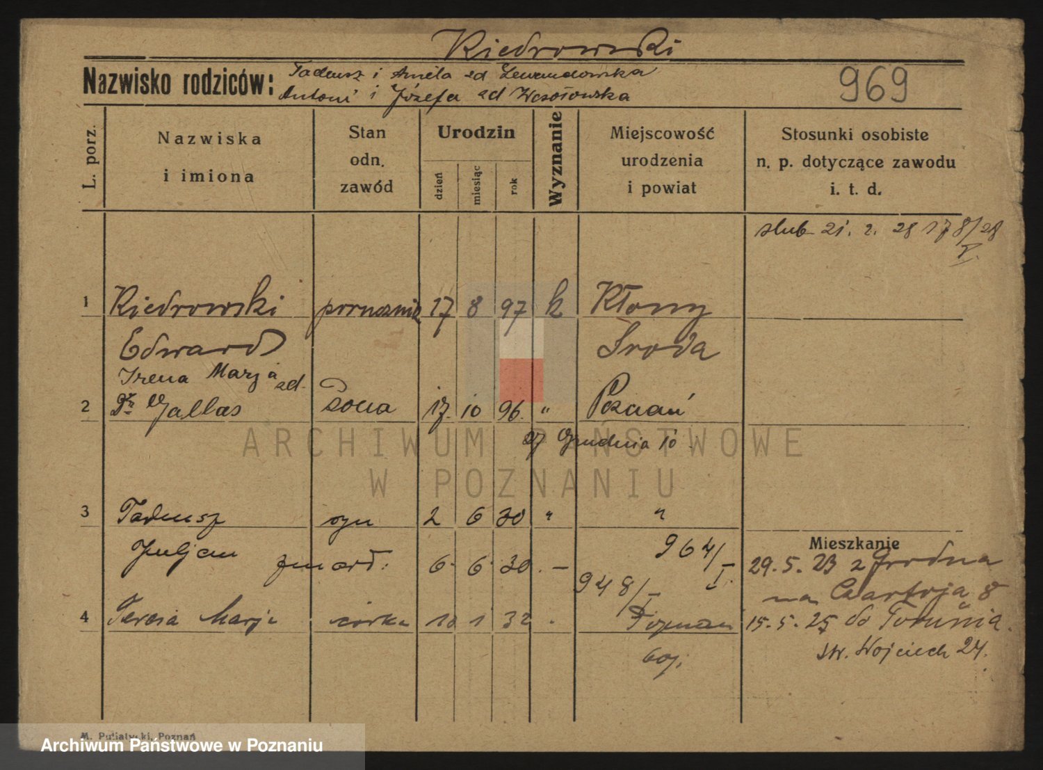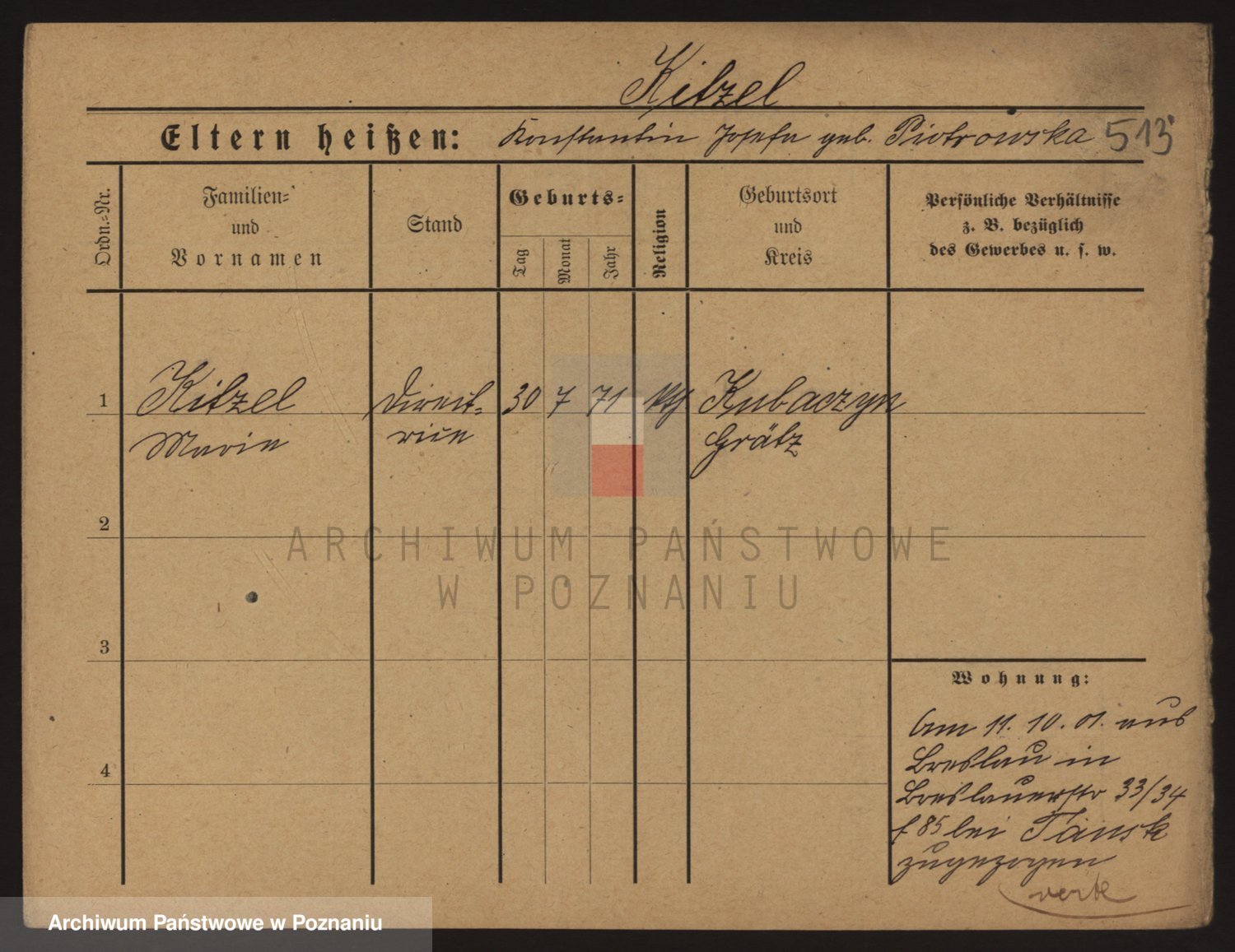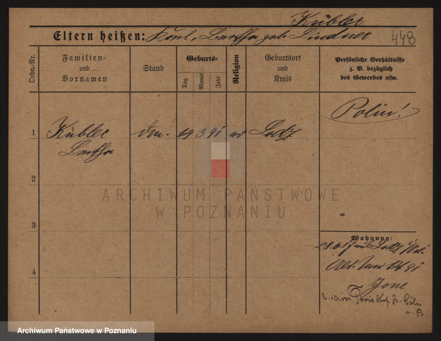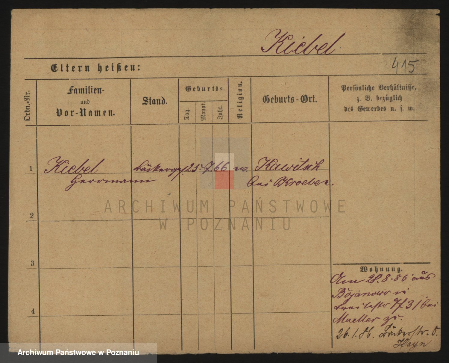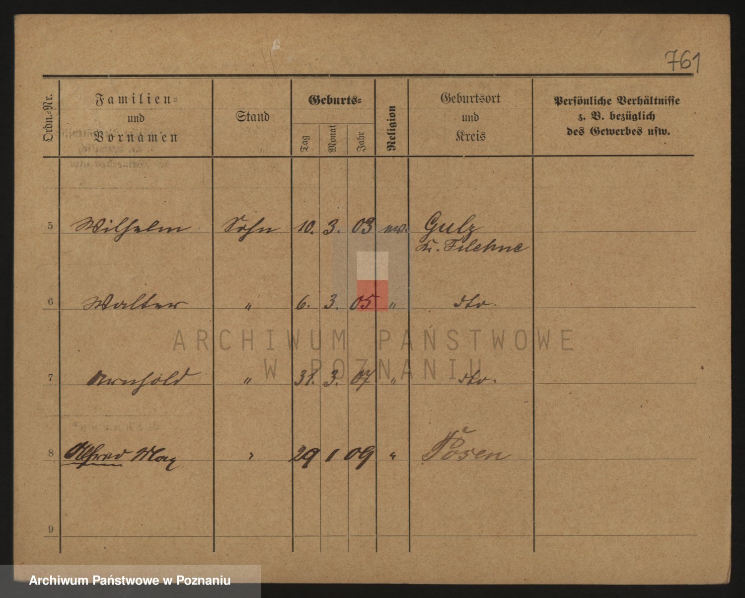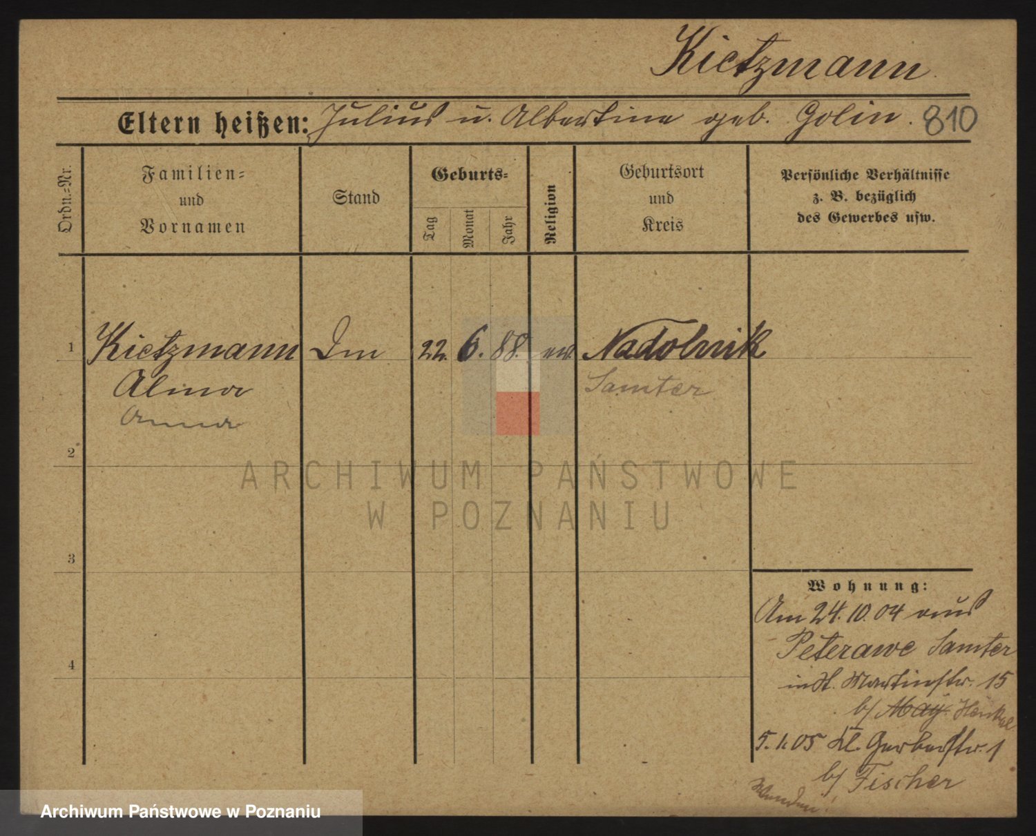 Podgląd karty osobowej dostępny jest po kliknięciu na nazwisko lub ikonkę karty. Można dokonywać powiększenia (ikony na górze) lub przechodzić między kolejnymi skanami (strzałki po bokach).