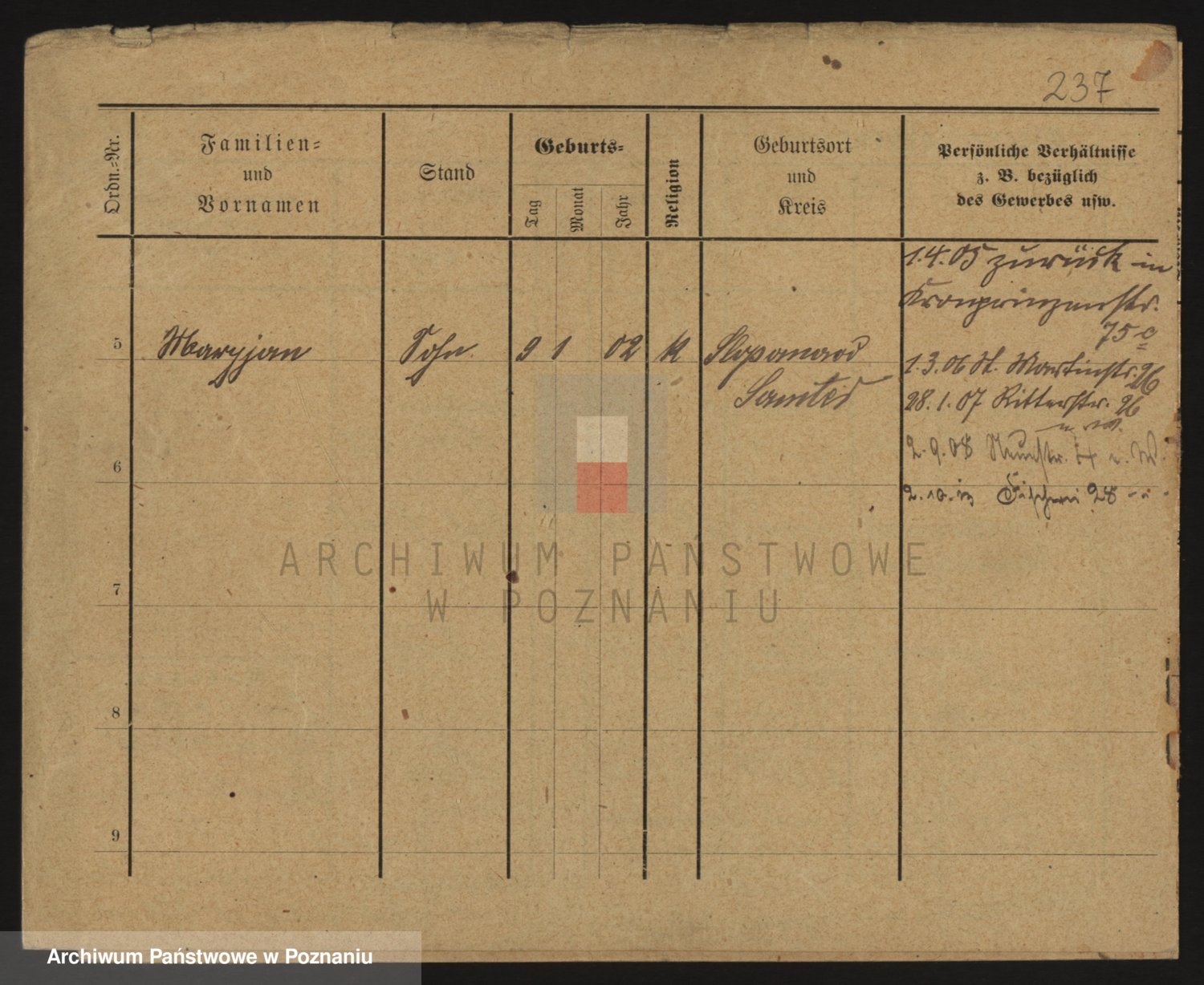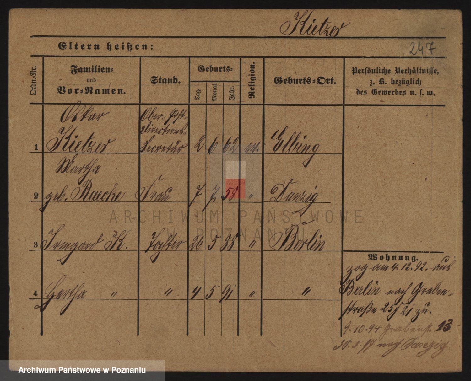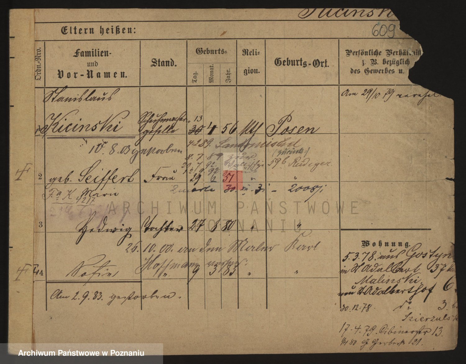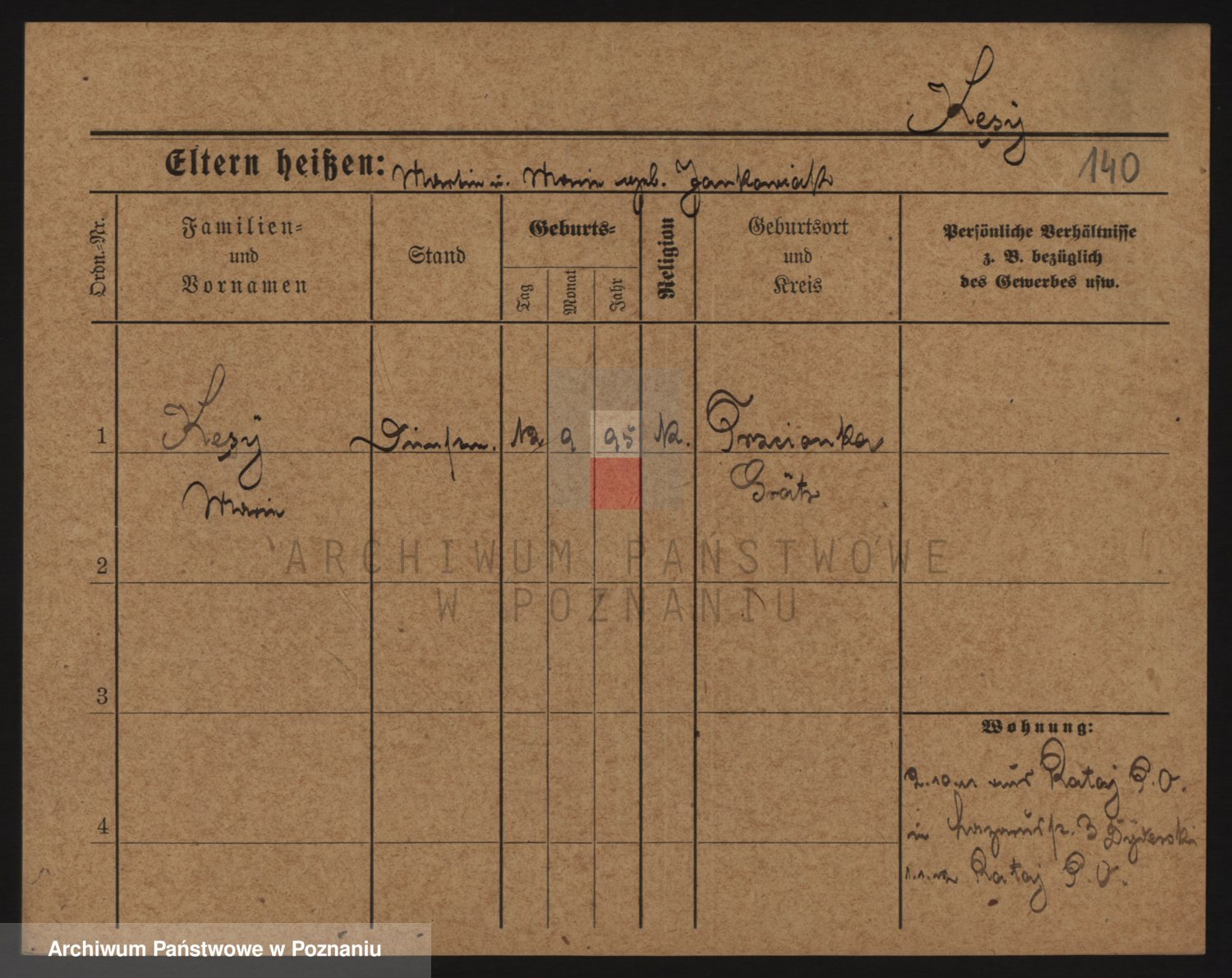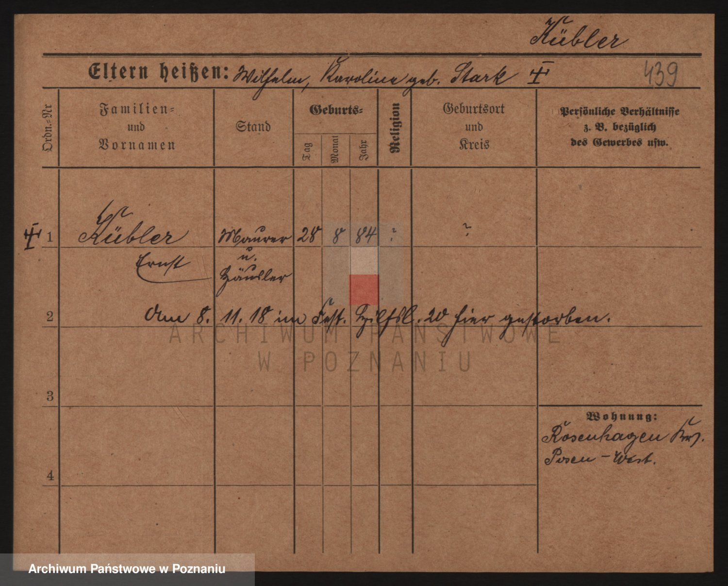 Podgląd karty osobowej dostępny jest po kliknięciu na nazwisko lub ikonkę karty. Można dokonywać powiększenia (ikony na górze) lub przechodzić między kolejnymi skanami (strzałki po bokach).