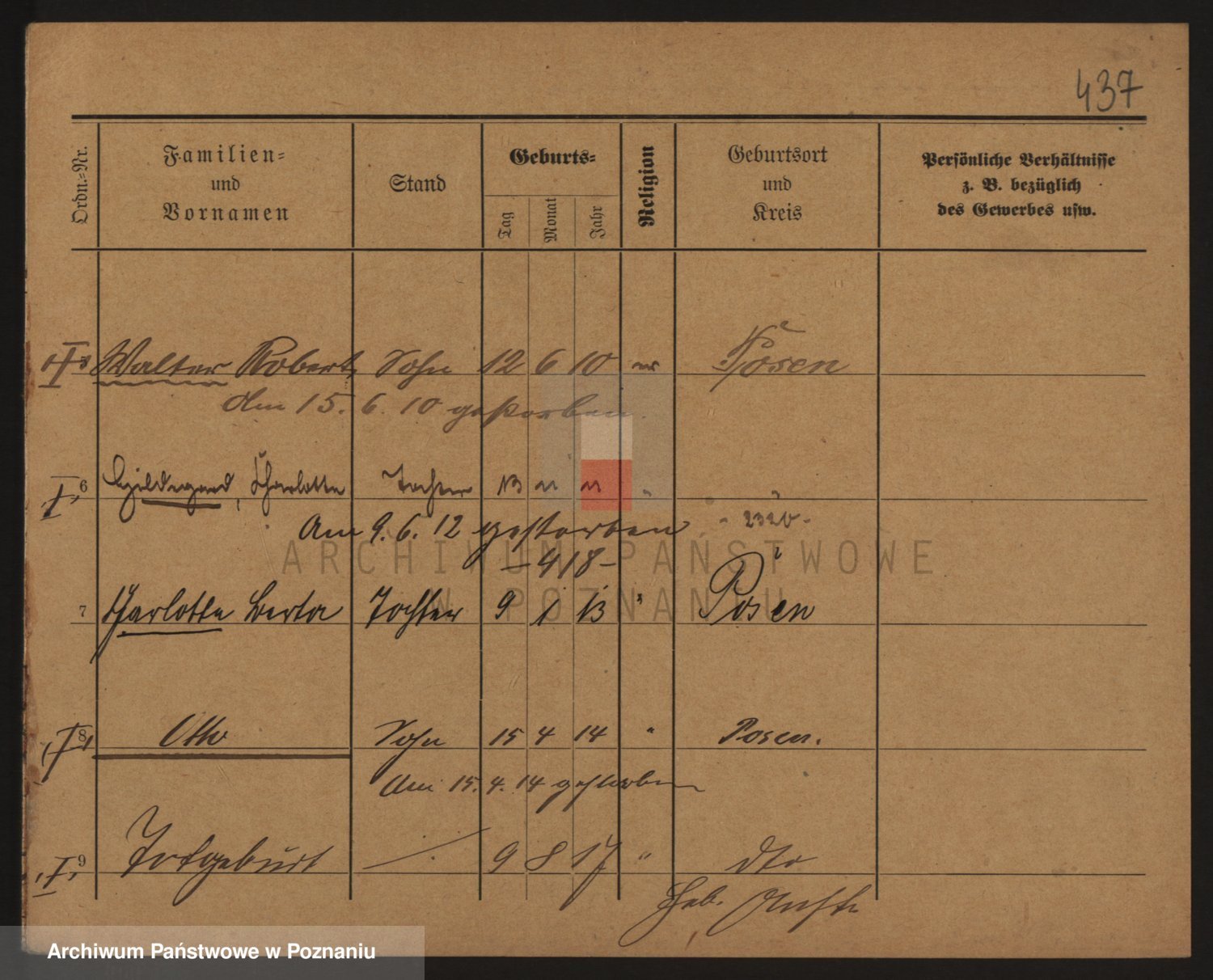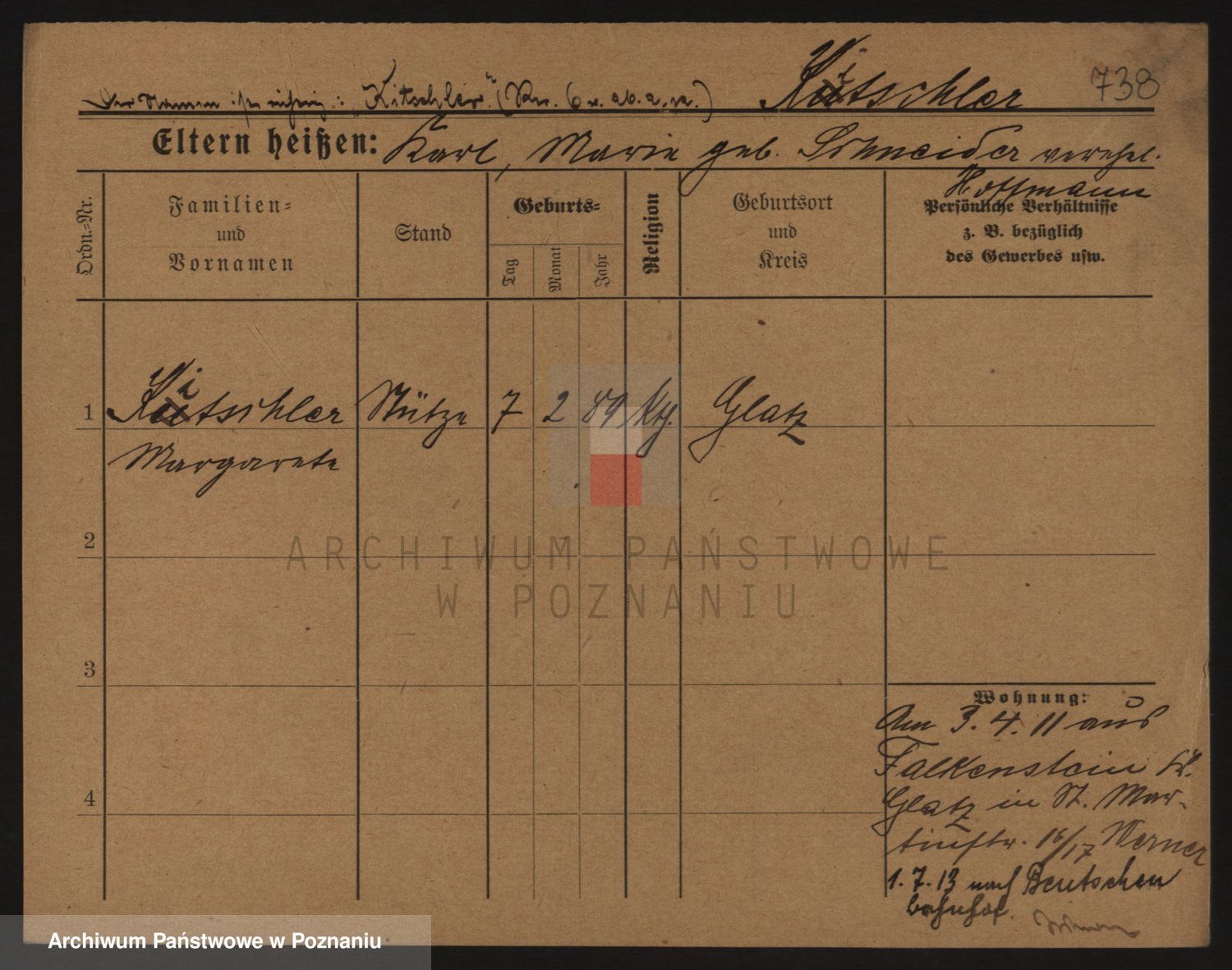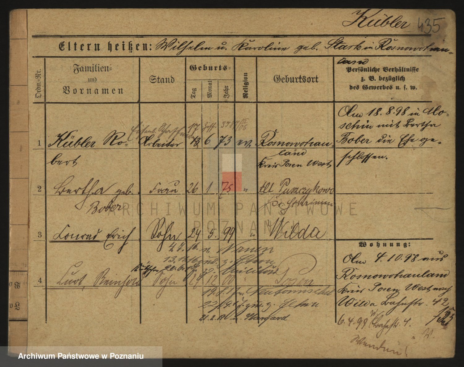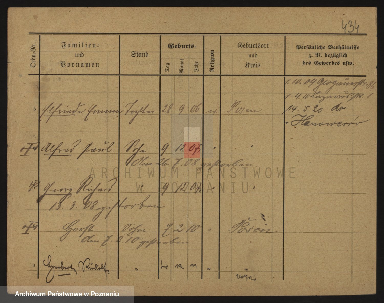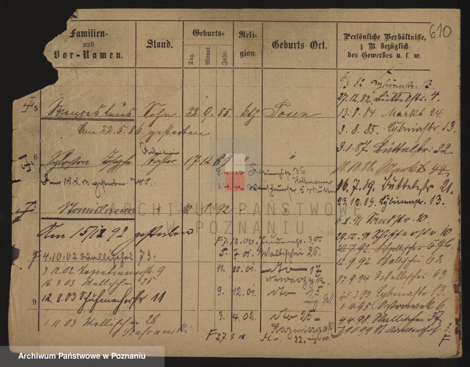 Podgląd karty osobowej dostępny jest po kliknięciu na nazwisko lub ikonkę karty. Można dokonywać powiększenia (ikony na górze) lub przechodzić między kolejnymi skanami (strzałki po bokach).