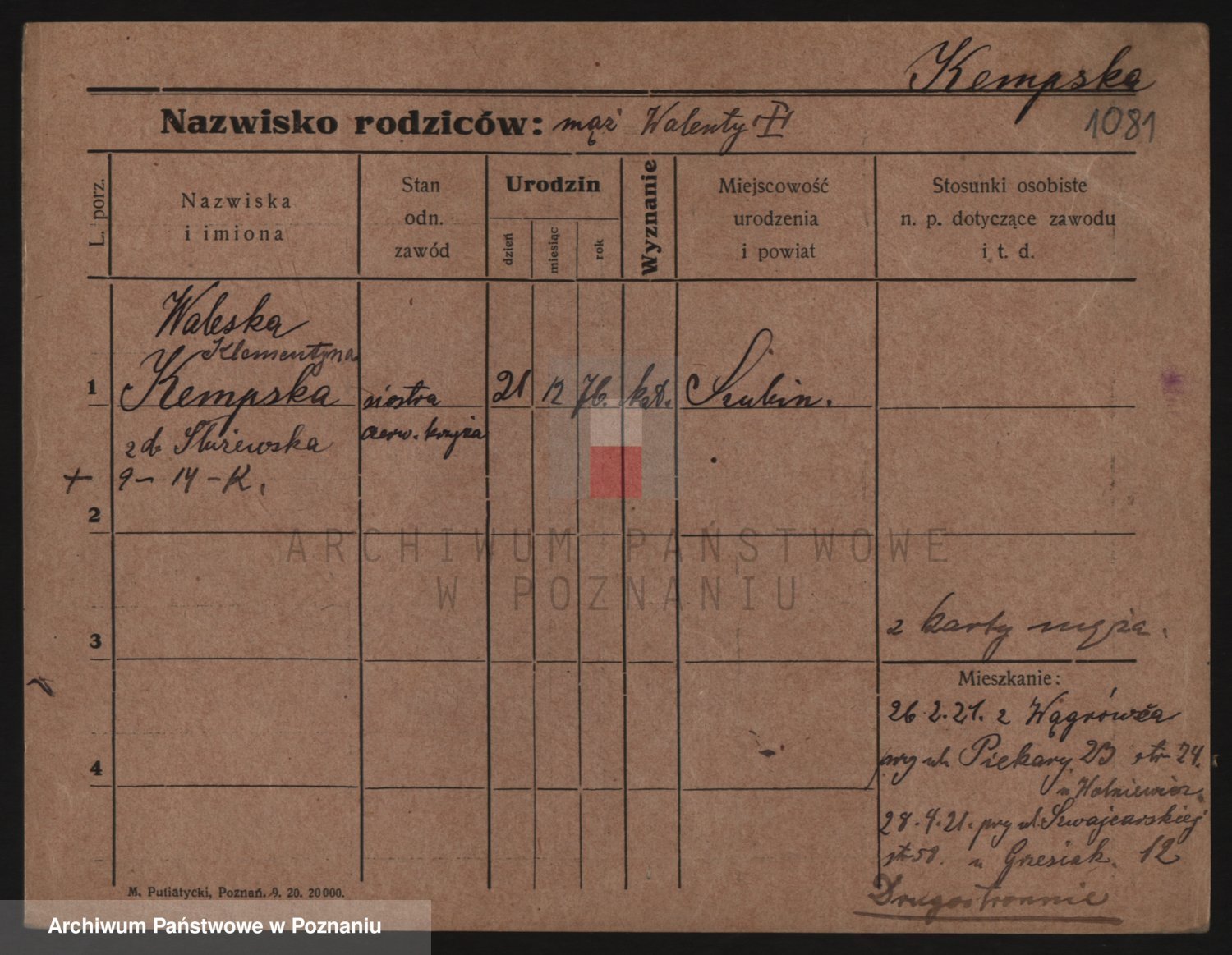 Kempska z d. Służewska, Waleska Klementyna