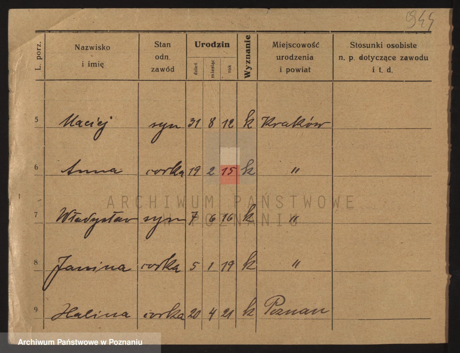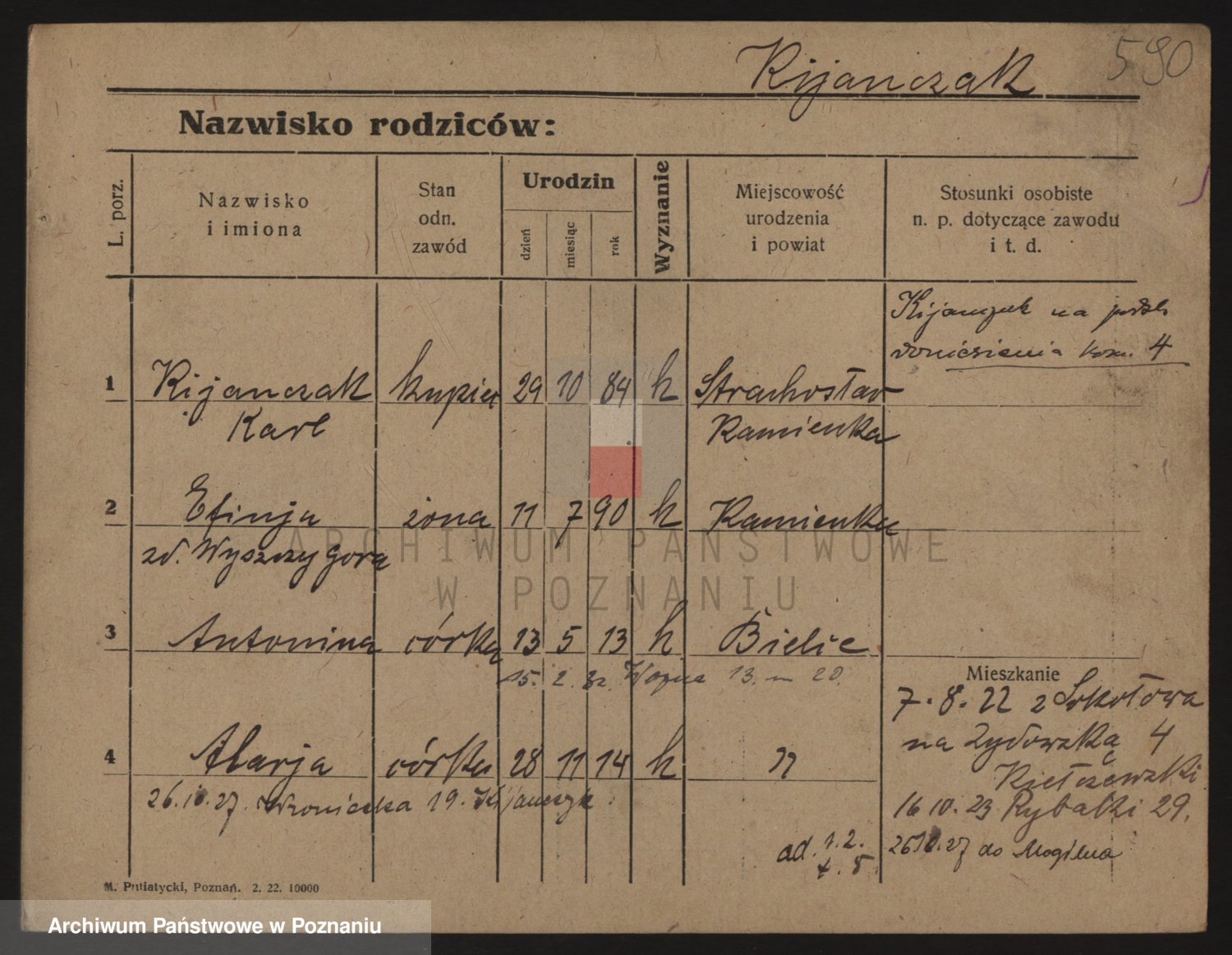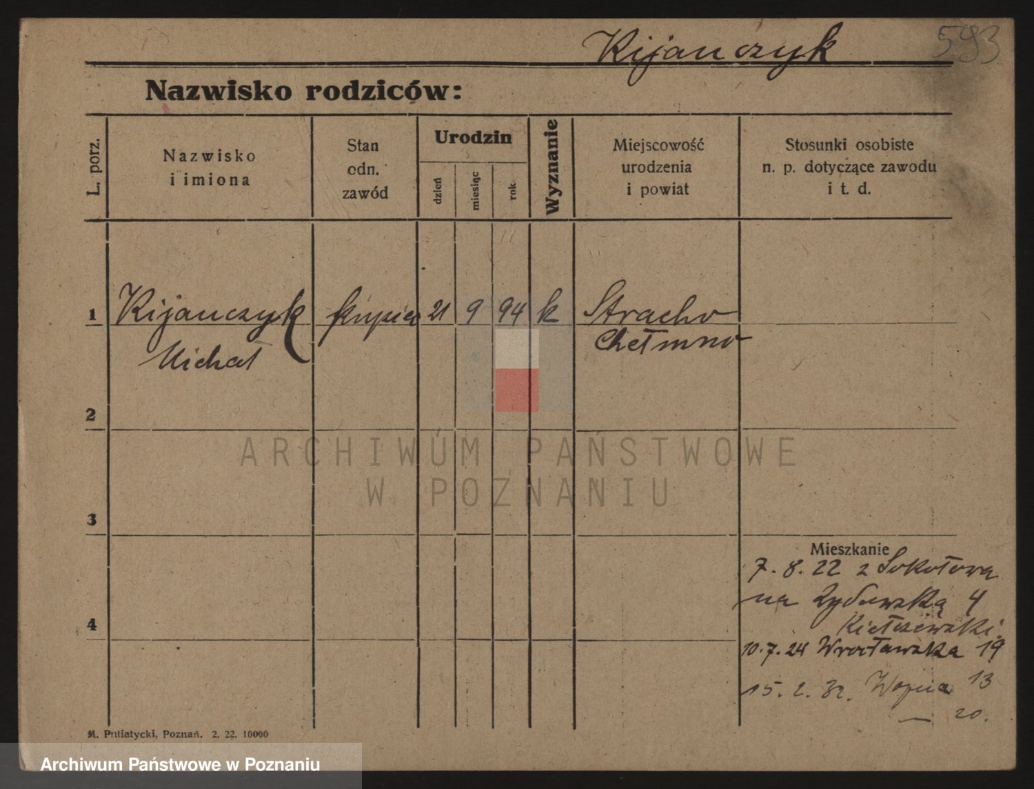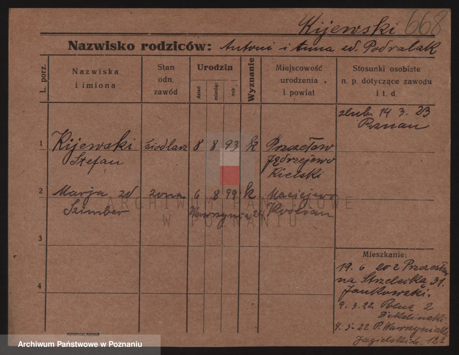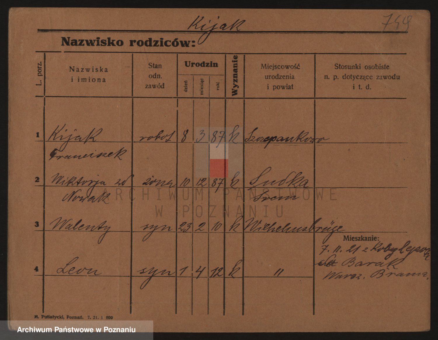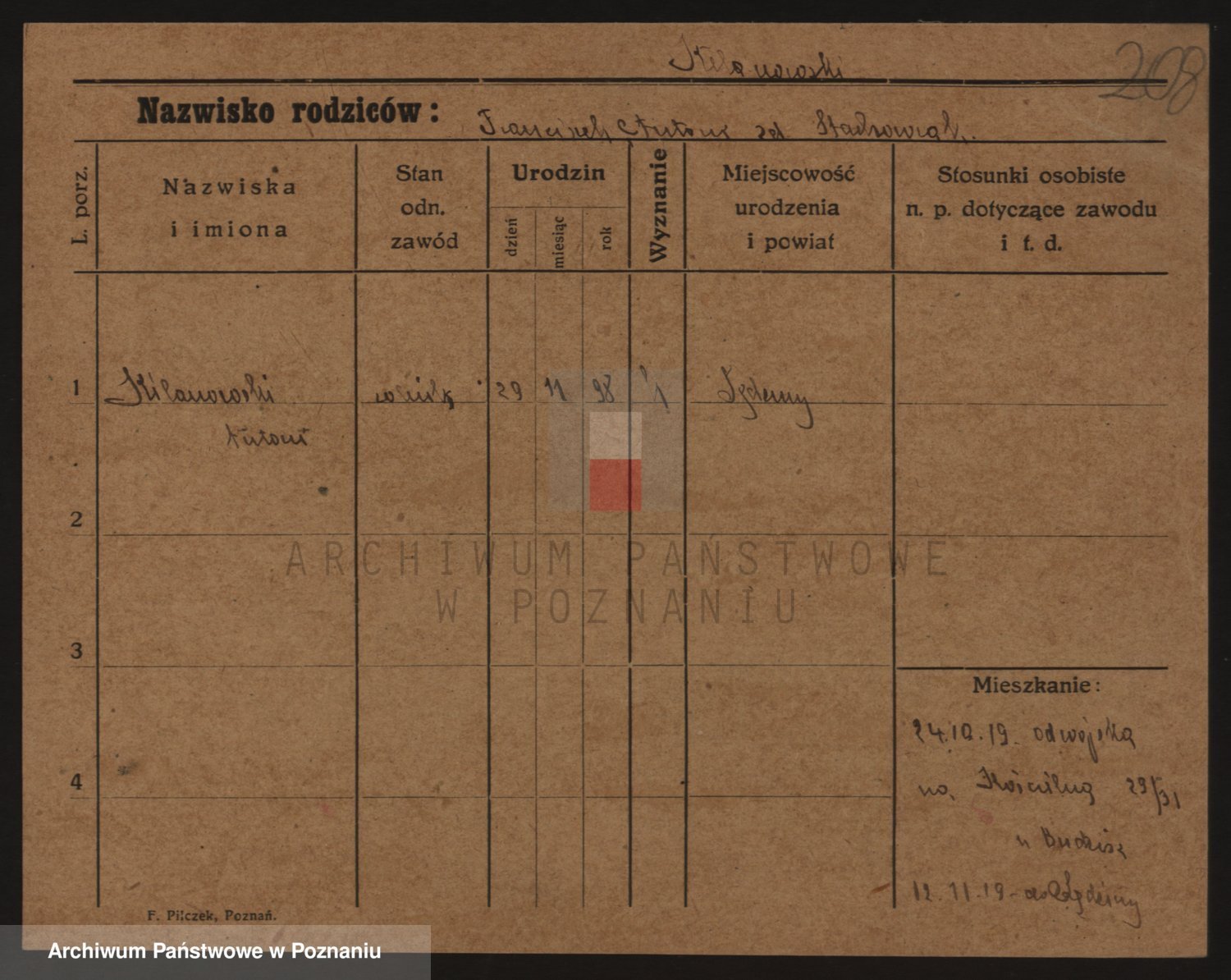 Podgląd karty osobowej dostępny jest po kliknięciu na nazwisko lub ikonkę karty. Można dokonywać powiększenia (ikony na górze) lub przechodzić między kolejnymi skanami (strzałki po bokach).